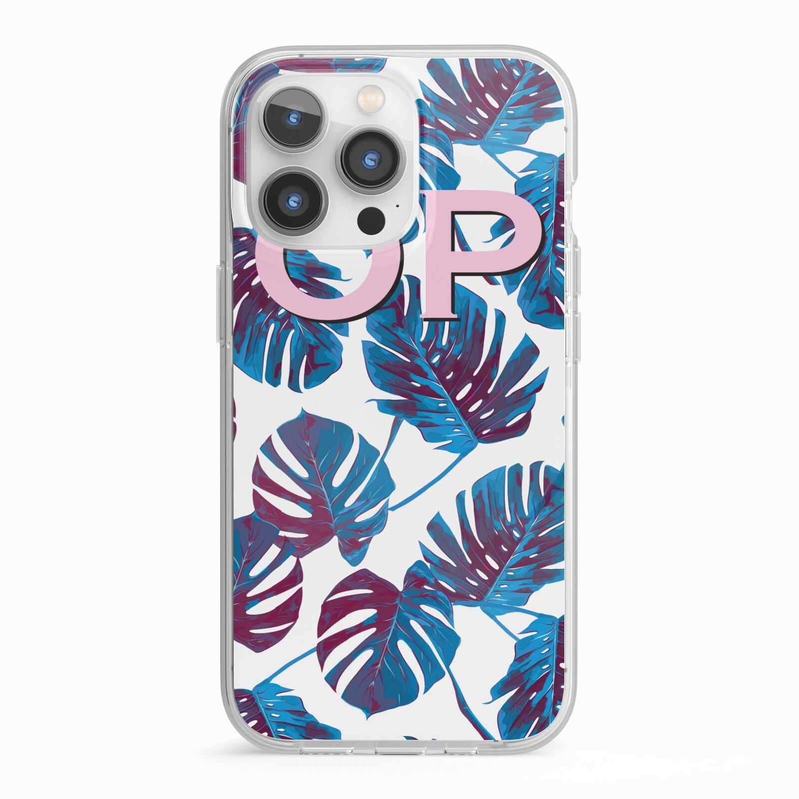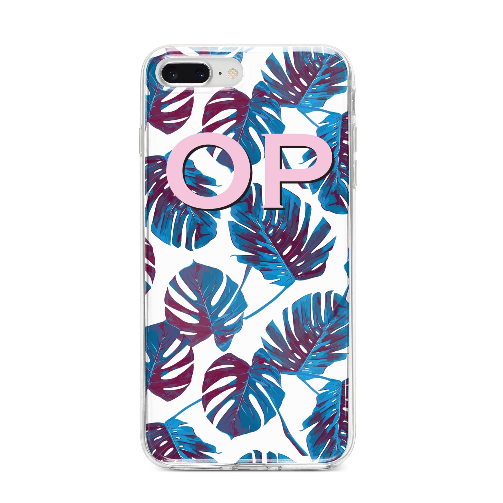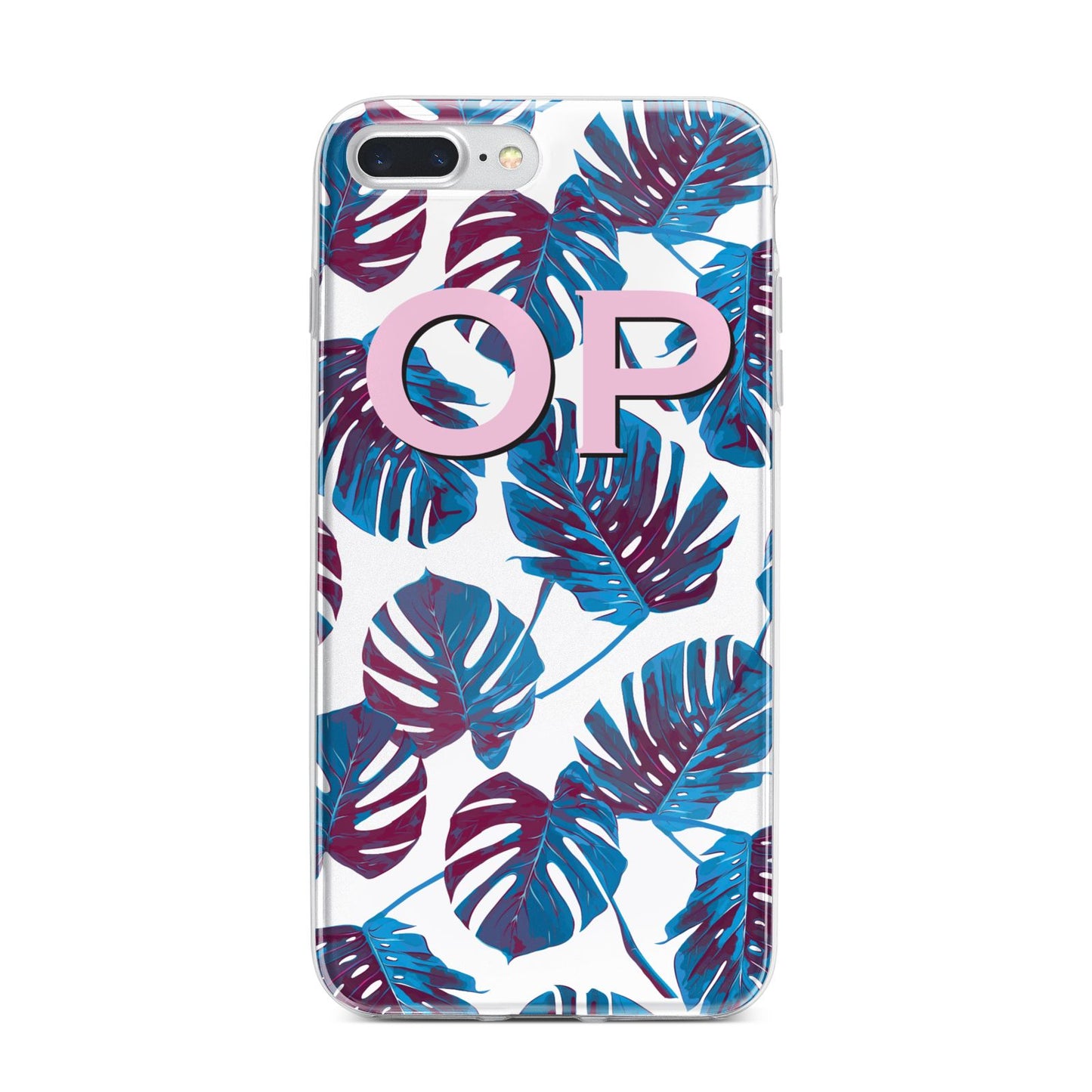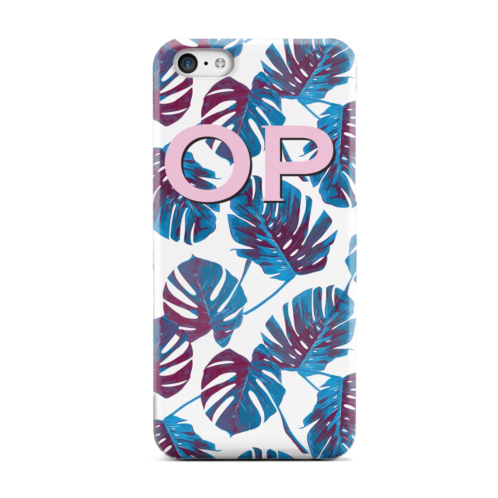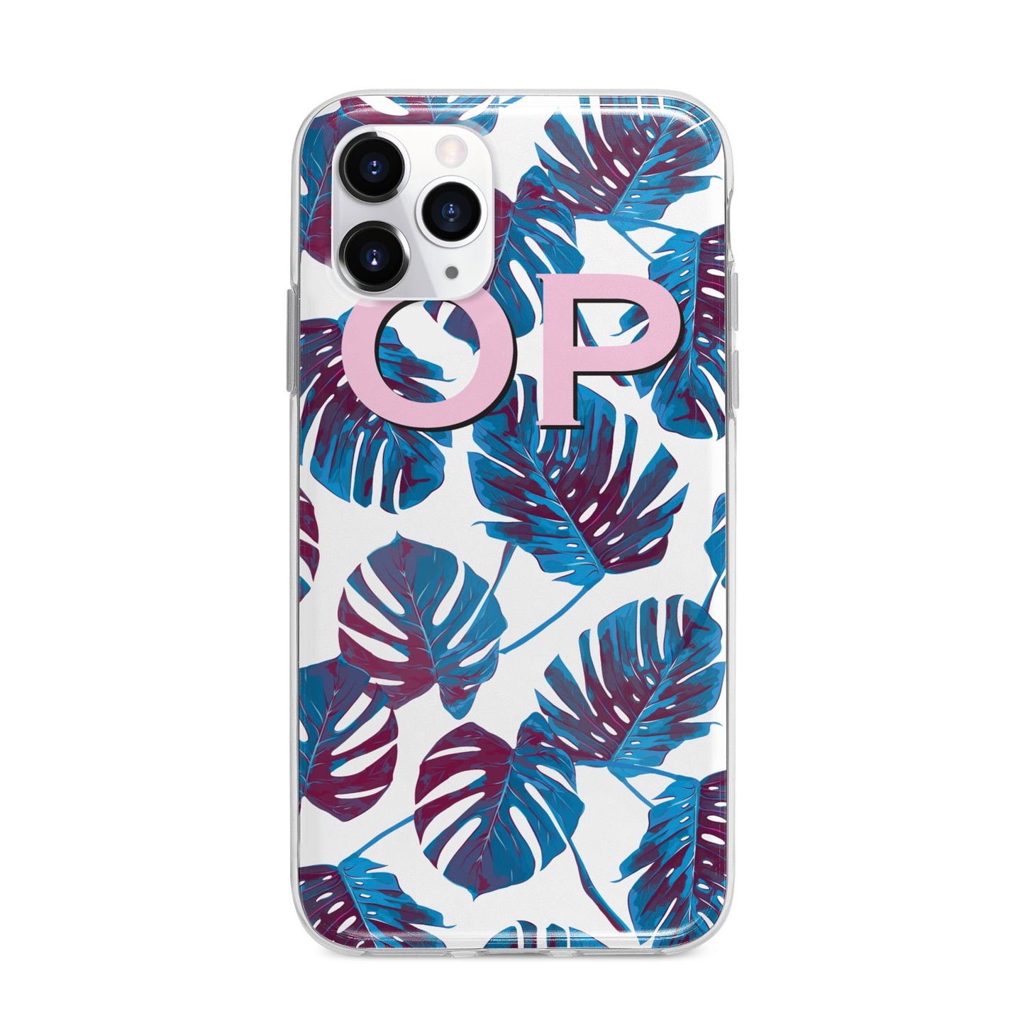 Personalised Blue Monstera Leaves Apple iPhone Case
