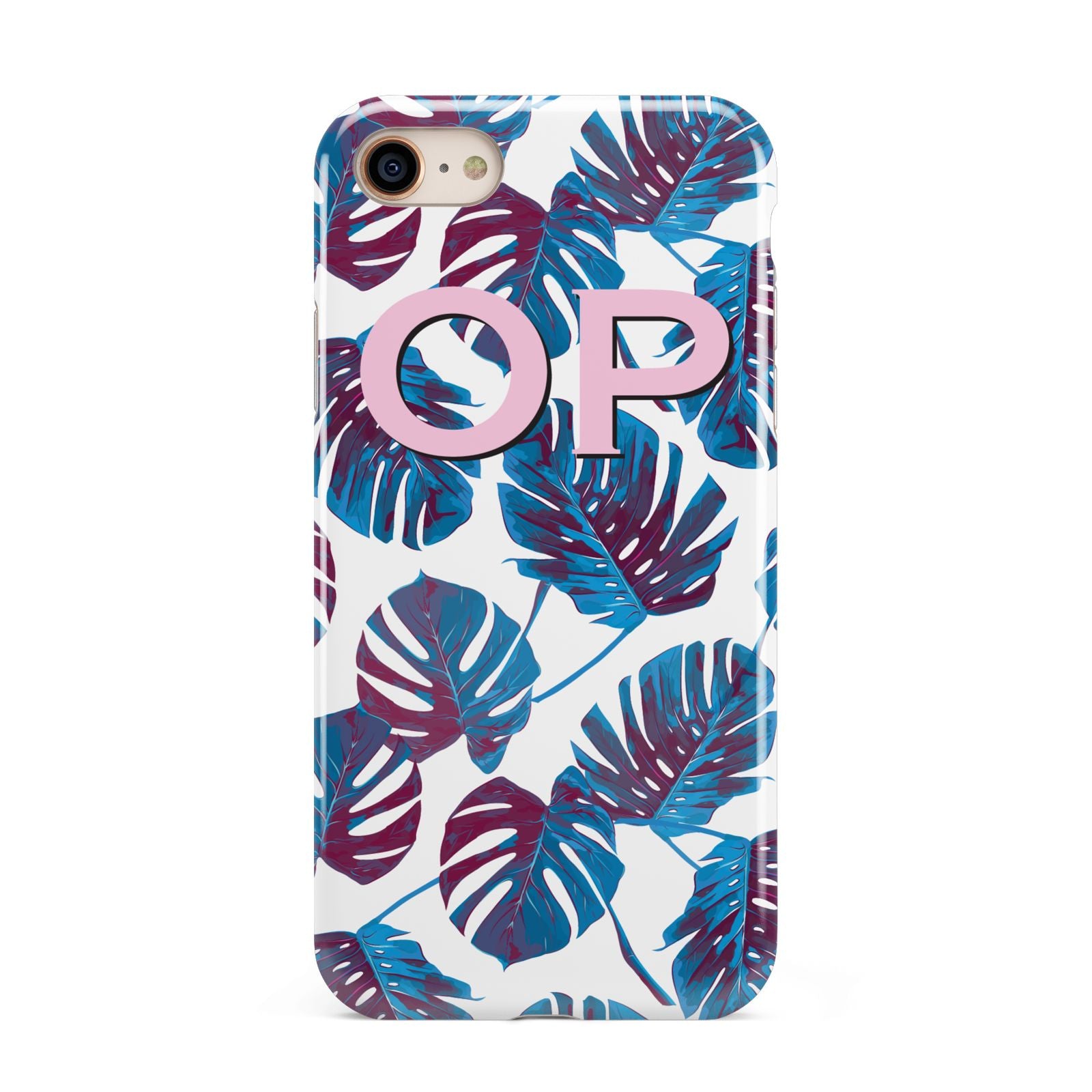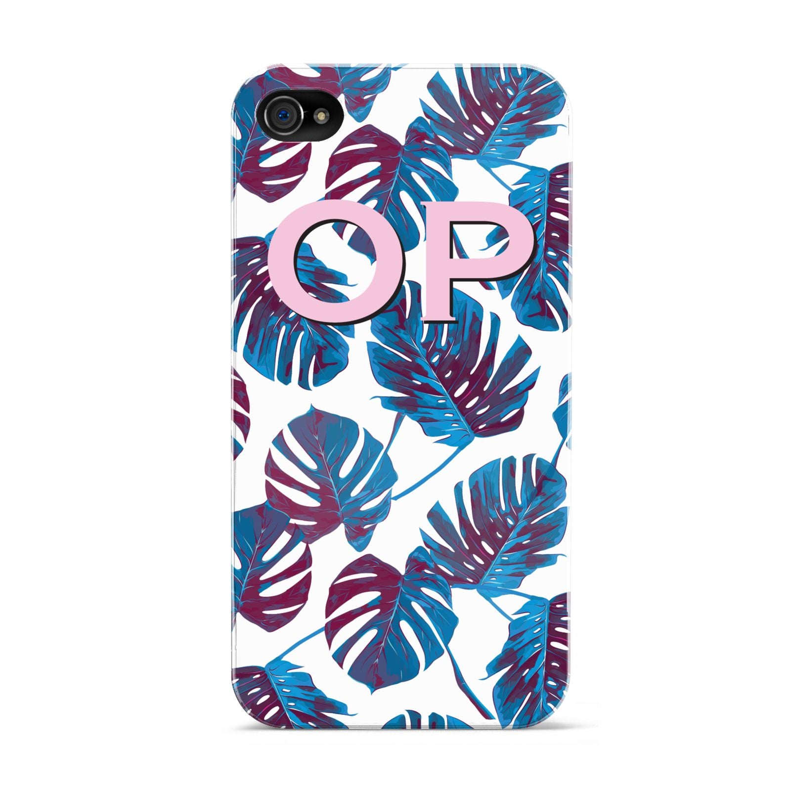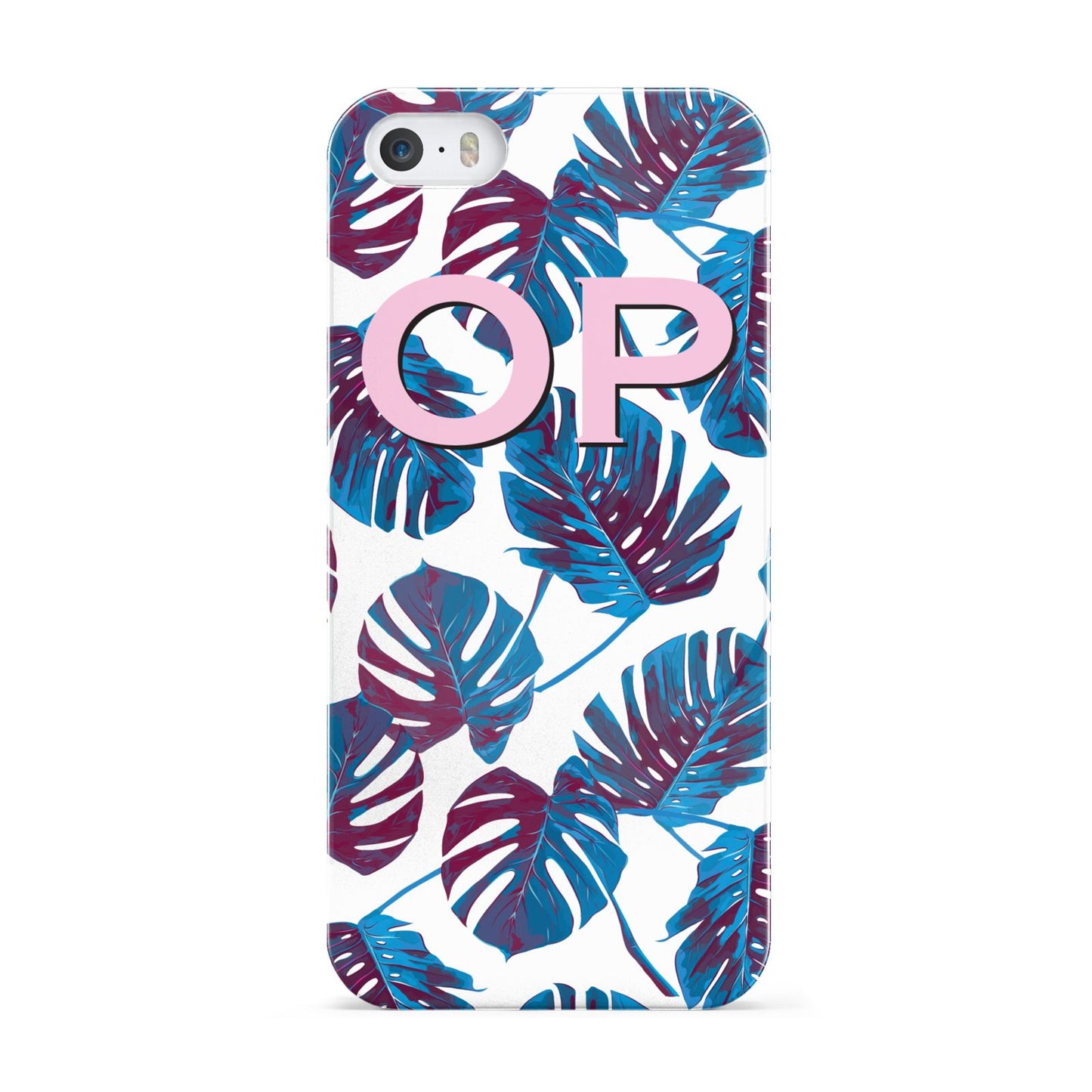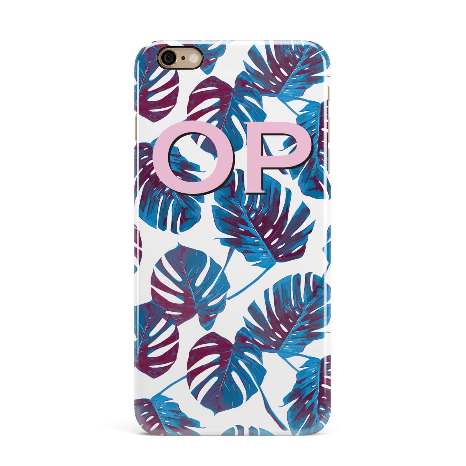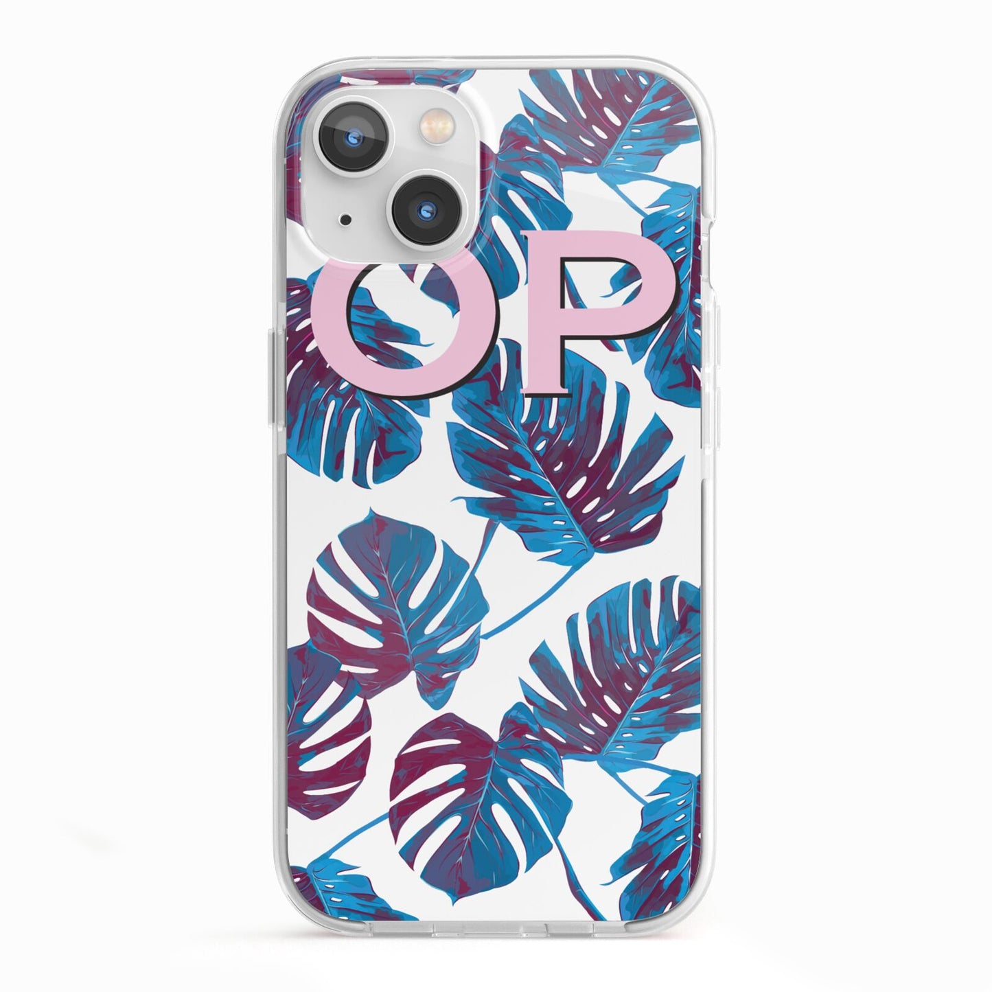 Personalised Blue Monstera Leaves Apple iPhone Case