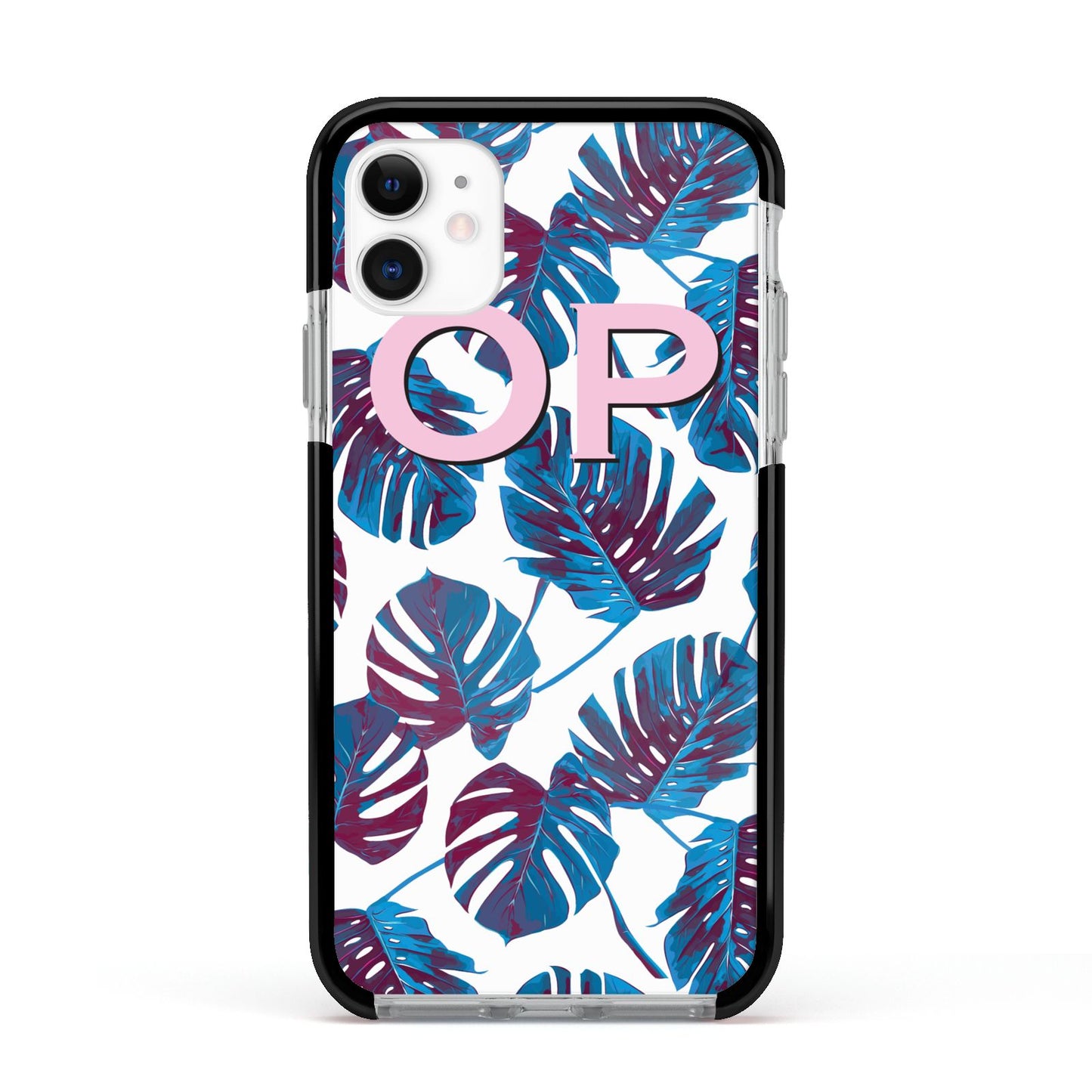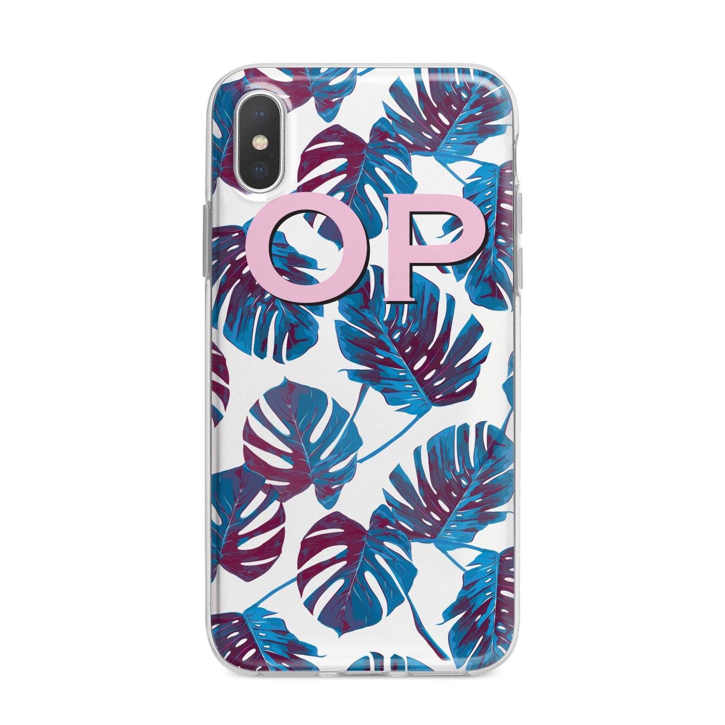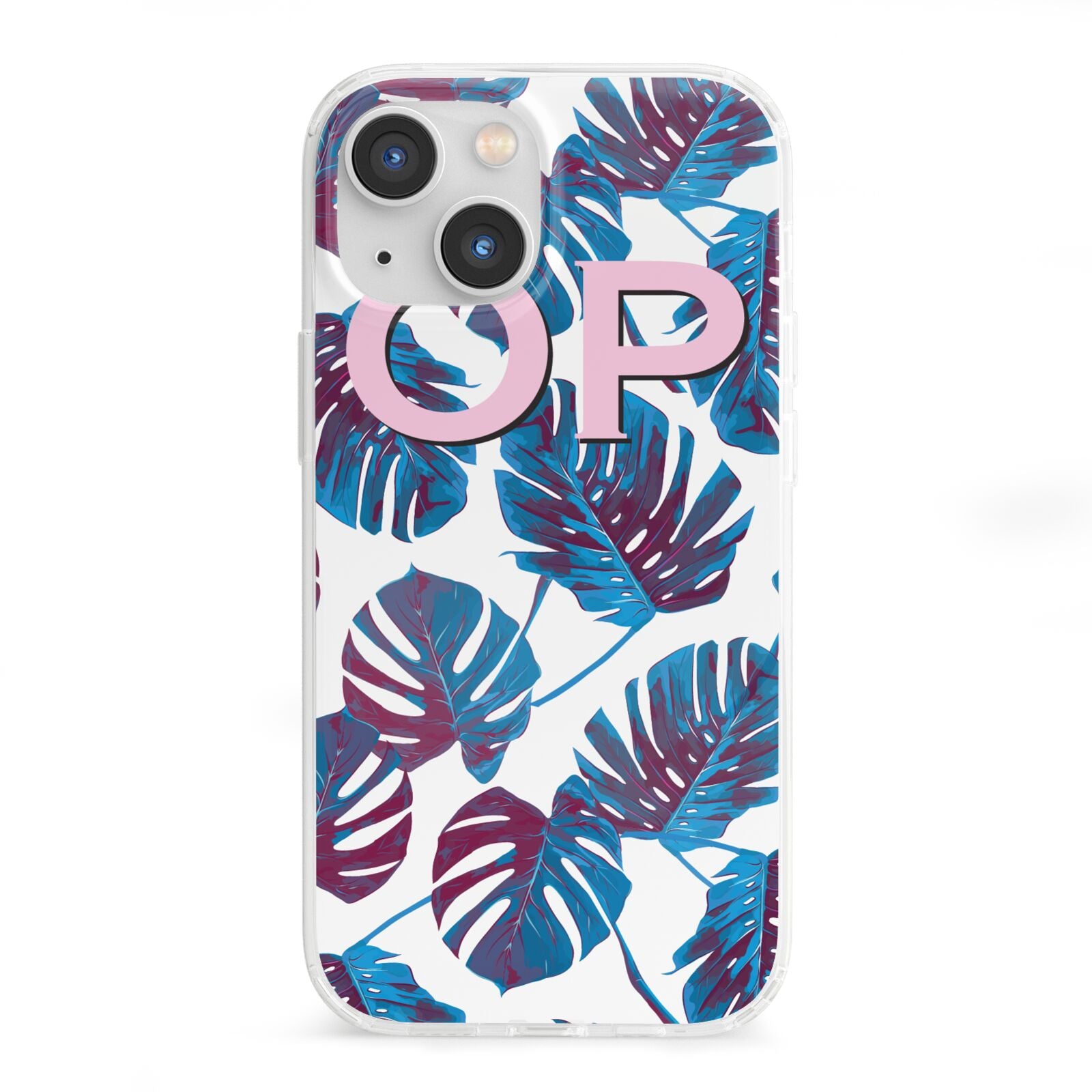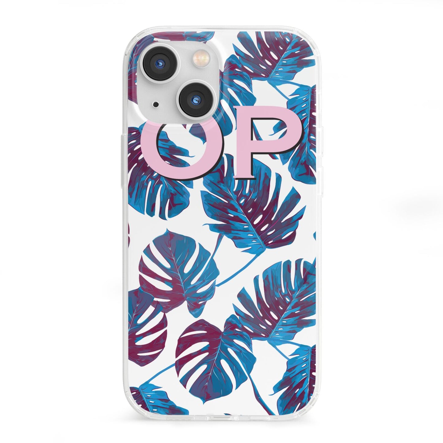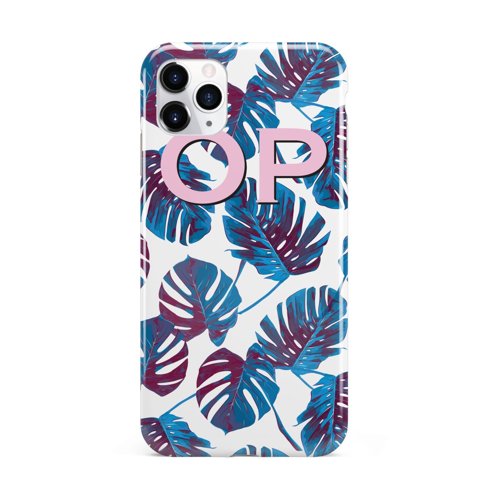 Personalised Blue Monstera Leaves Apple iPhone Case