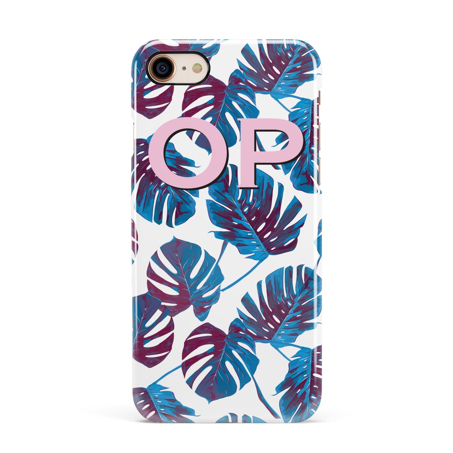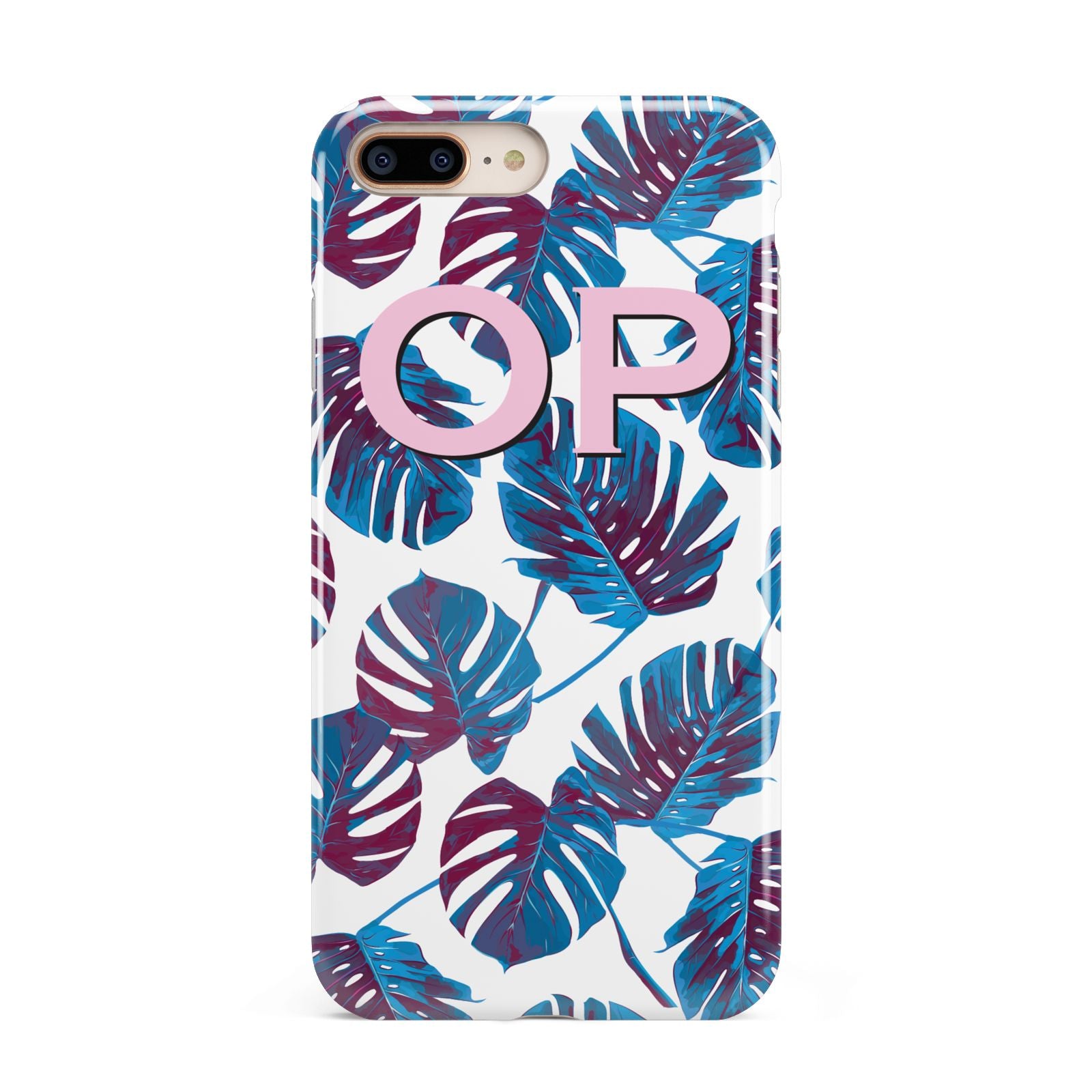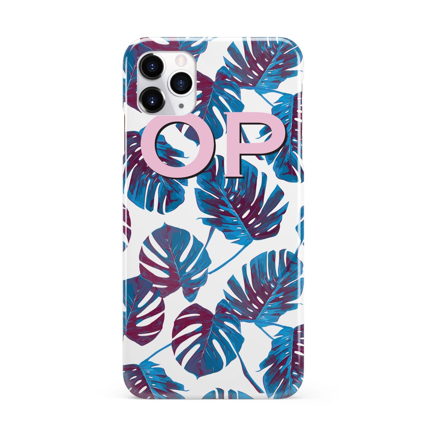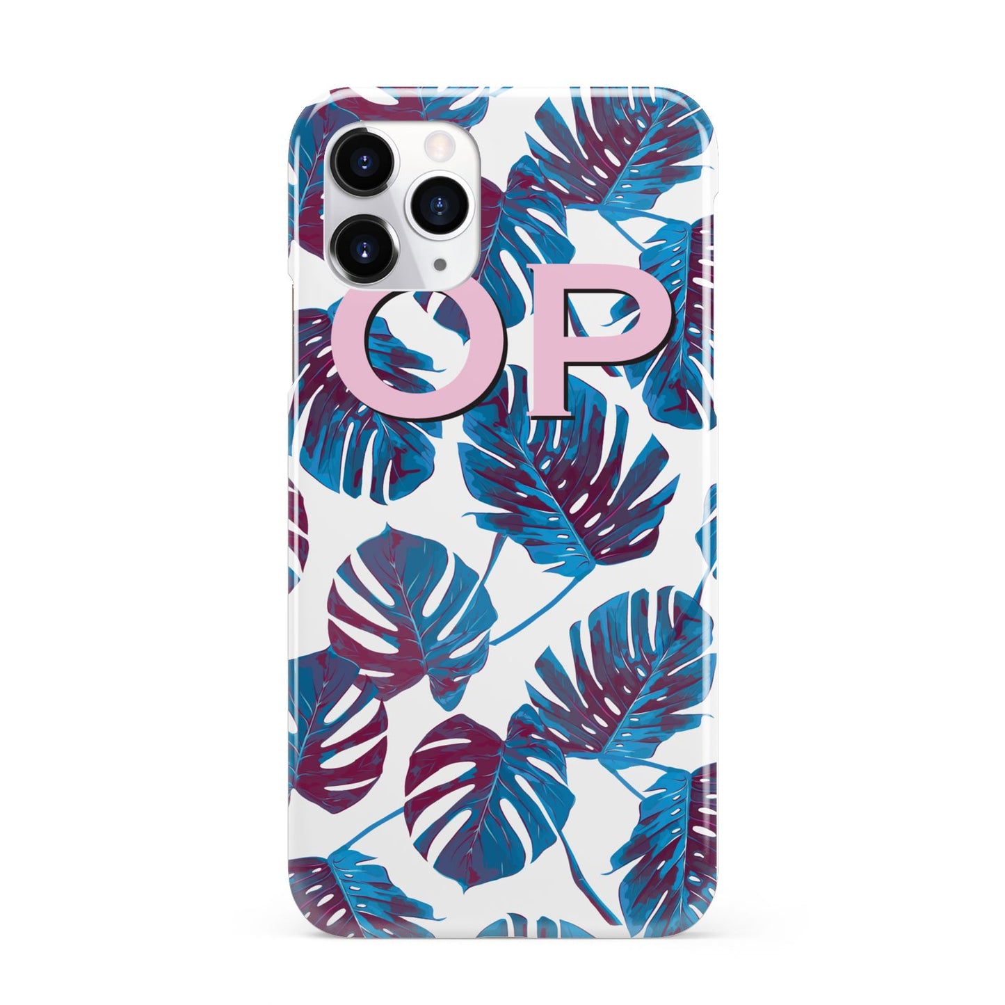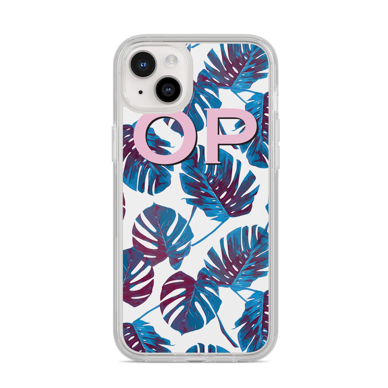 Personalised Blue Monstera Leaves Apple iPhone Case