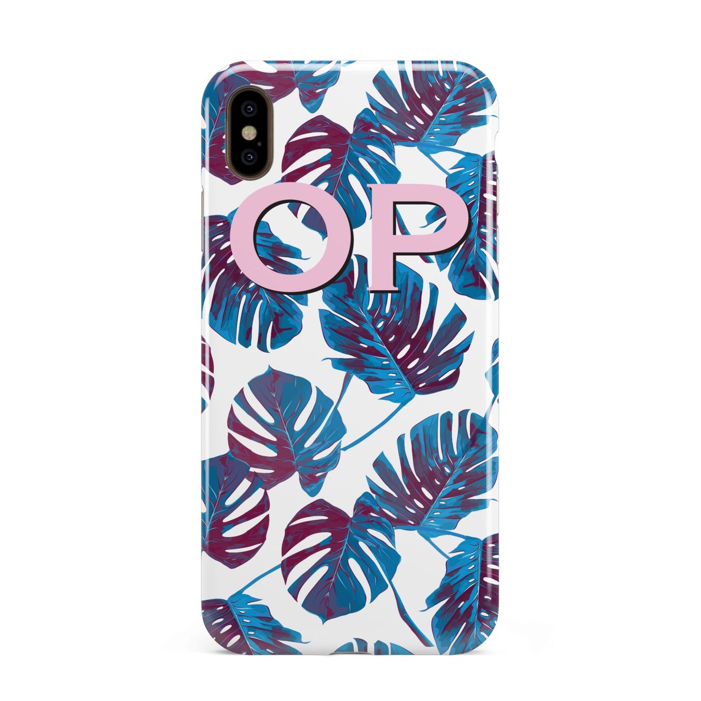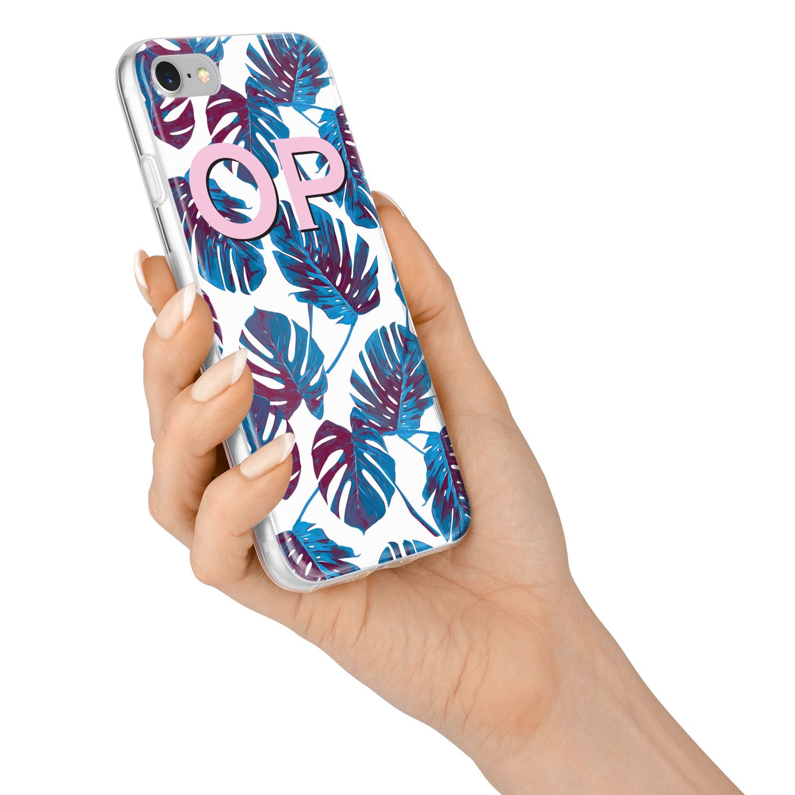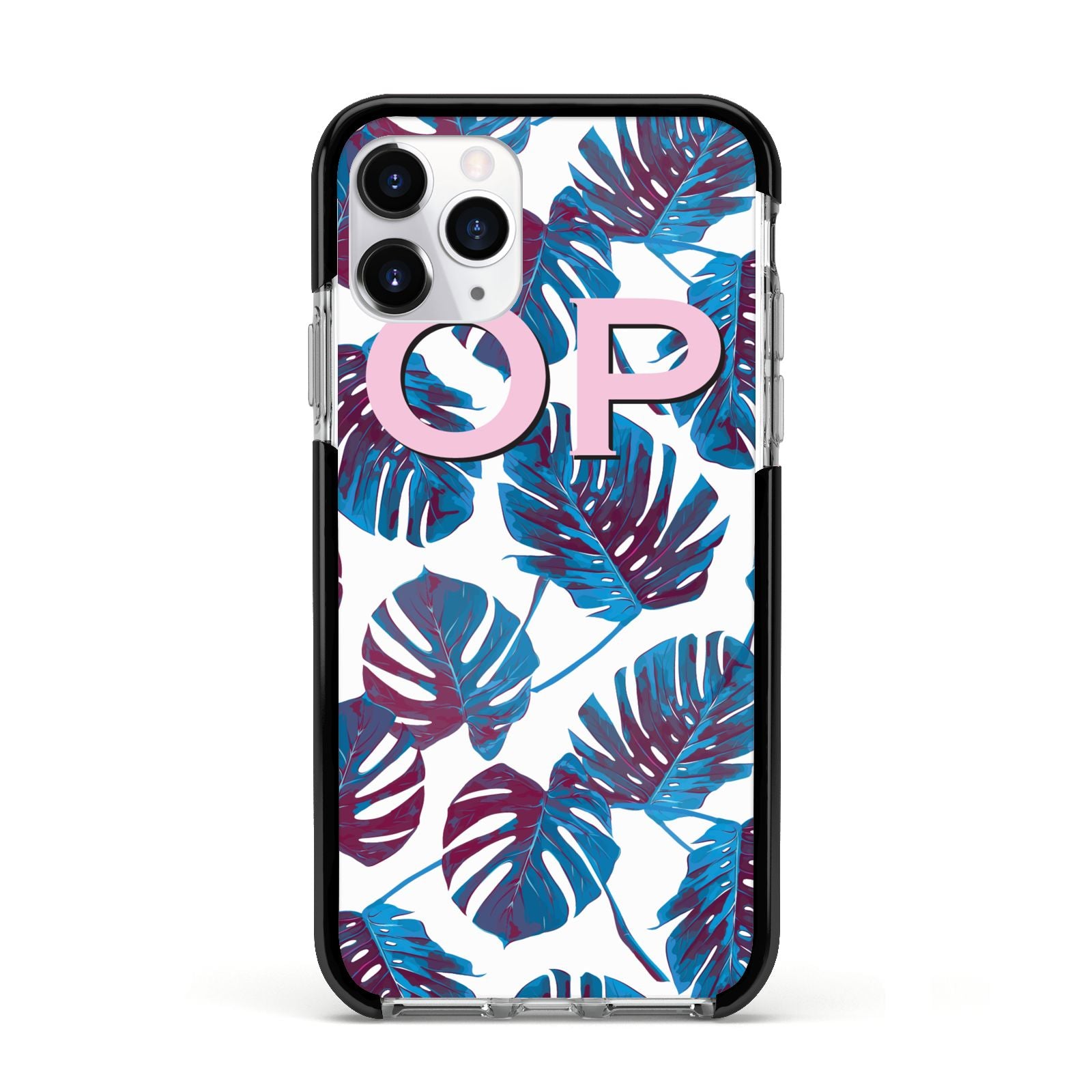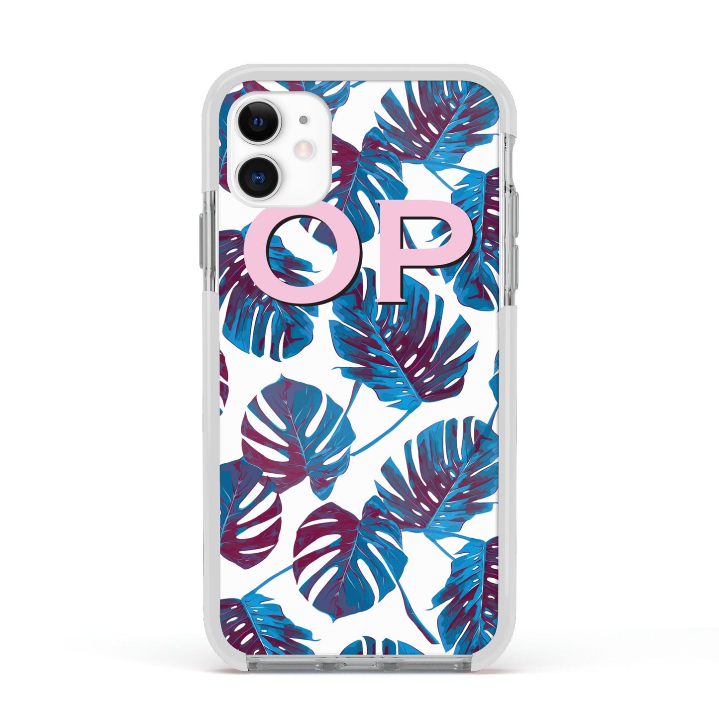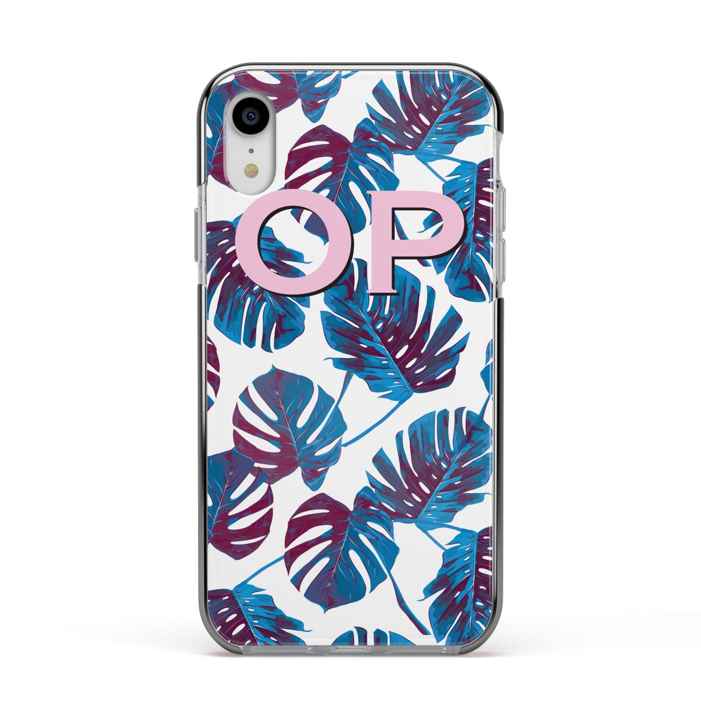 Personalised Blue Monstera Leaves Apple iPhone Case