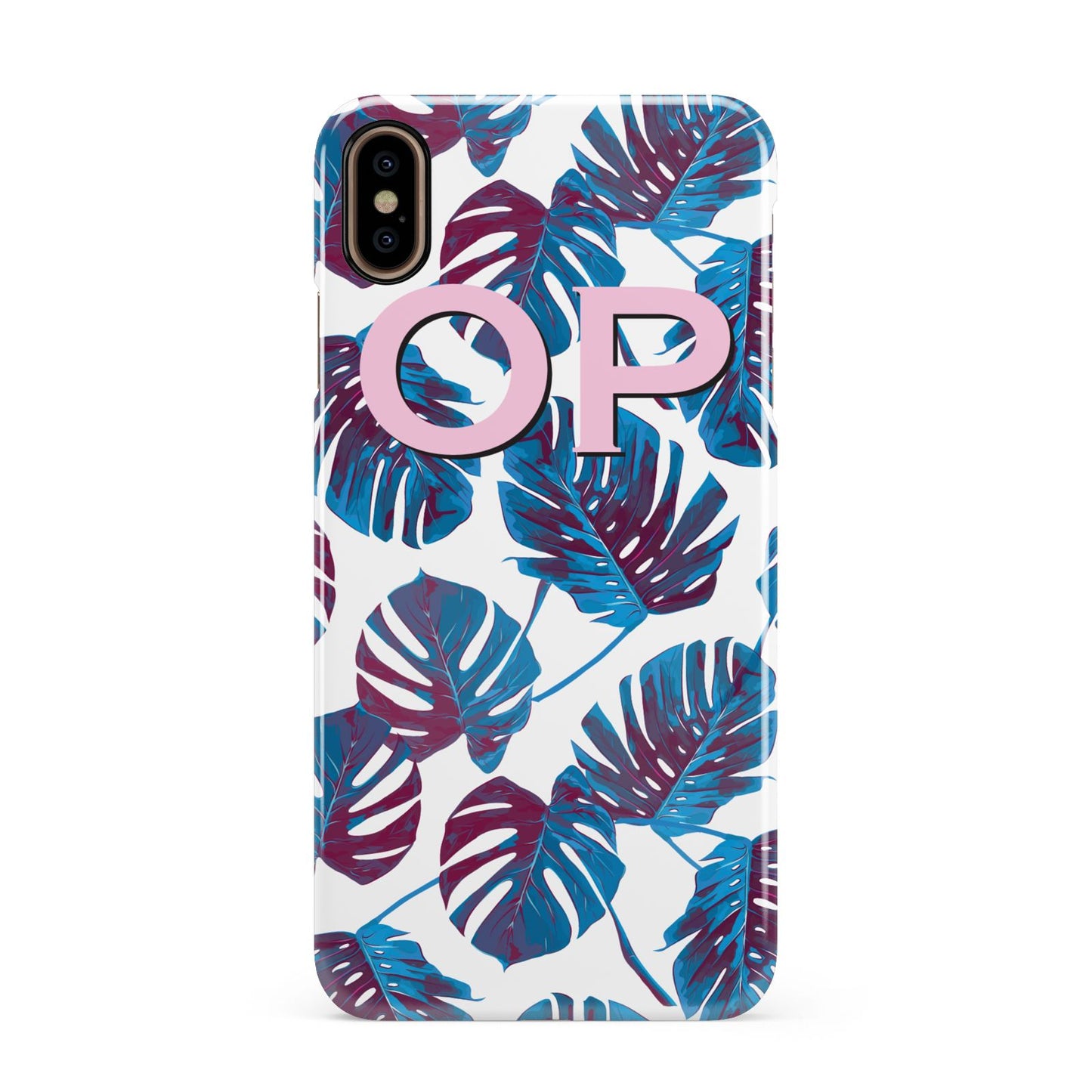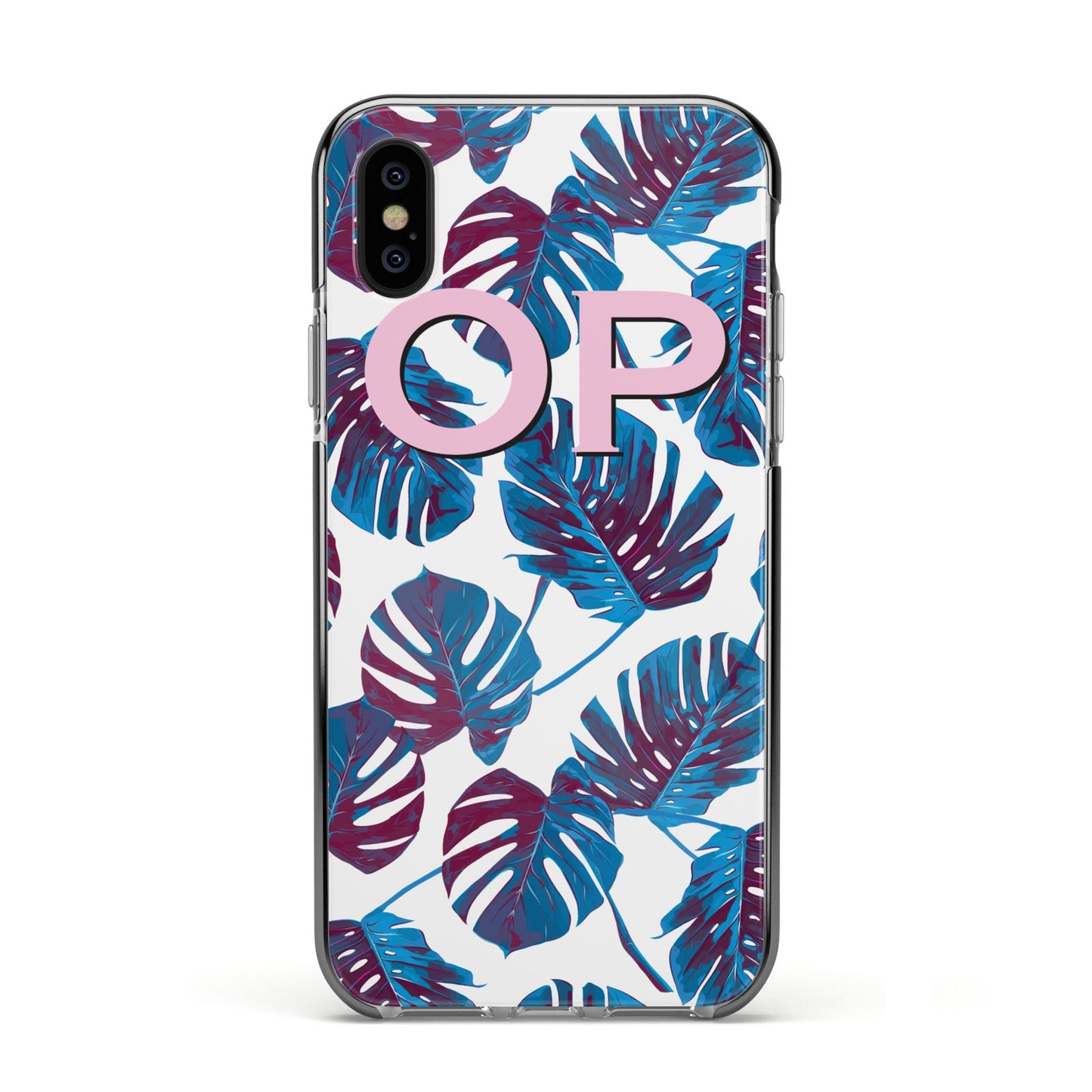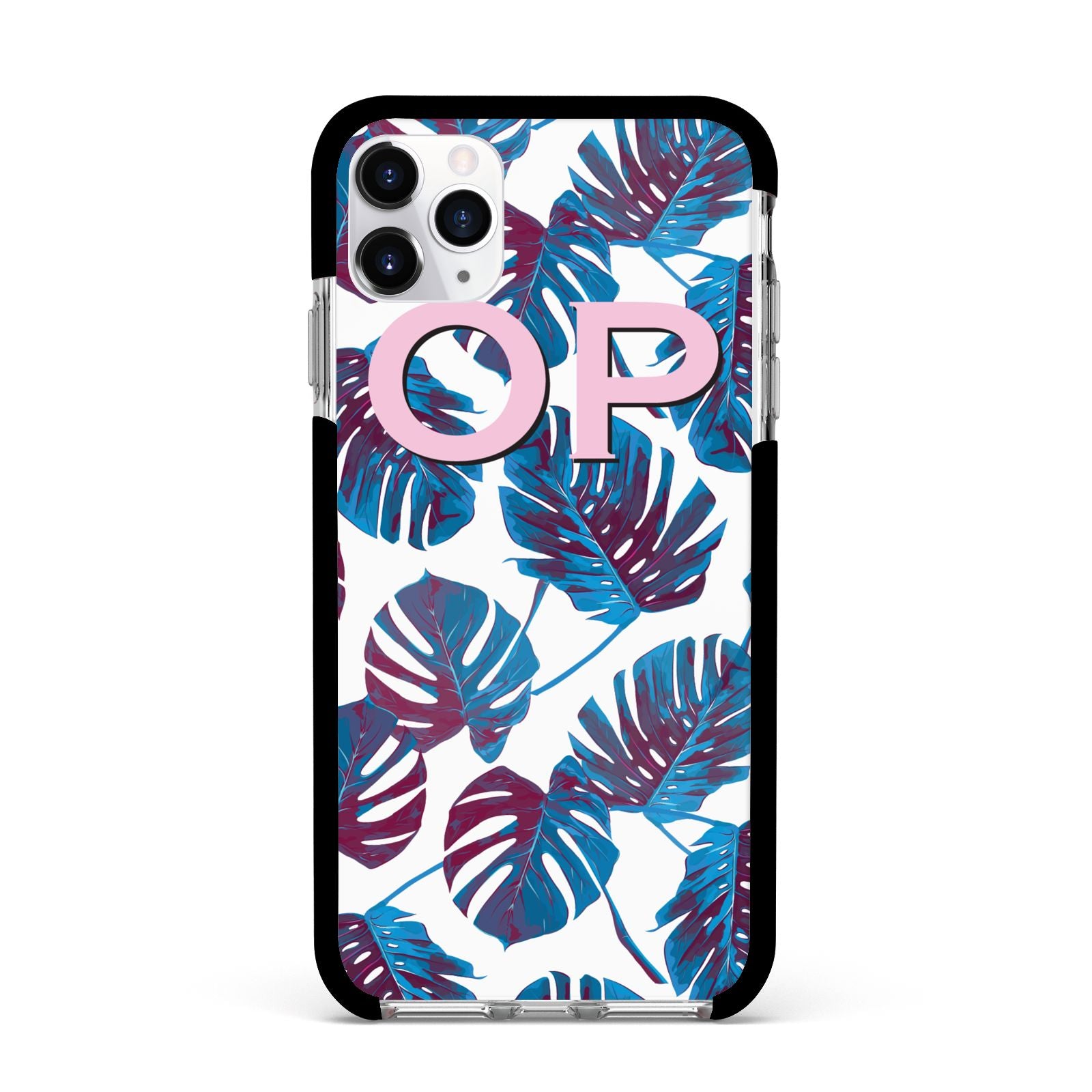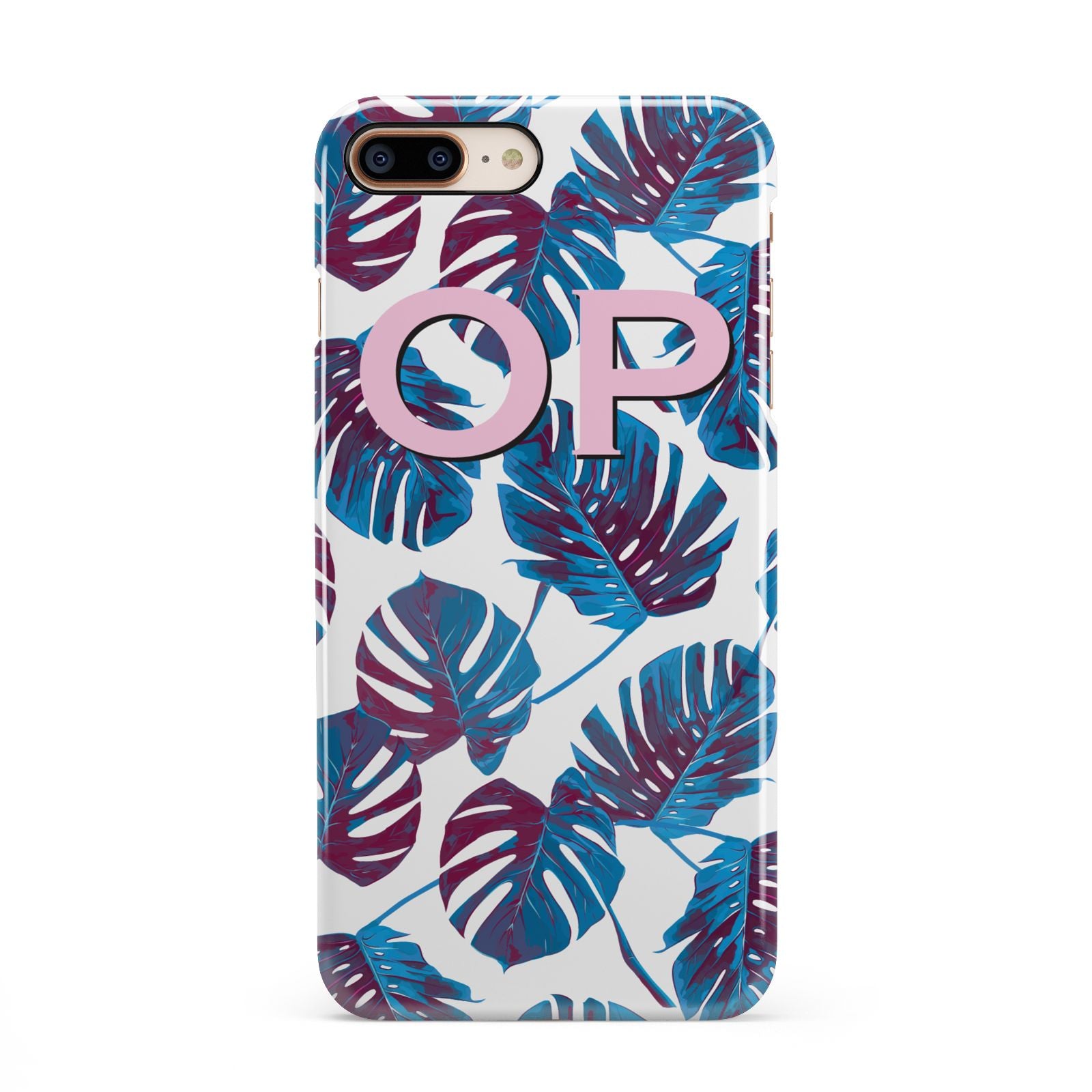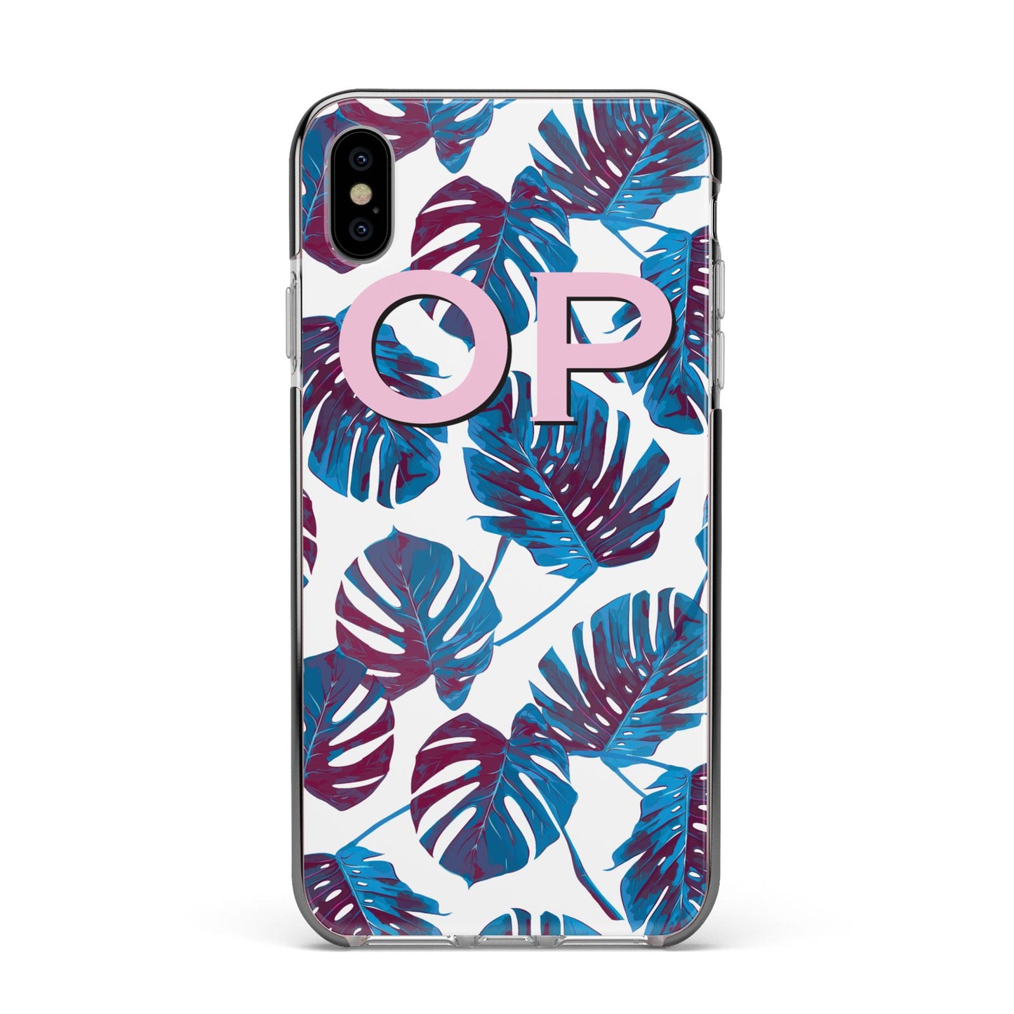 Personalised Blue Monstera Leaves Apple iPhone Case