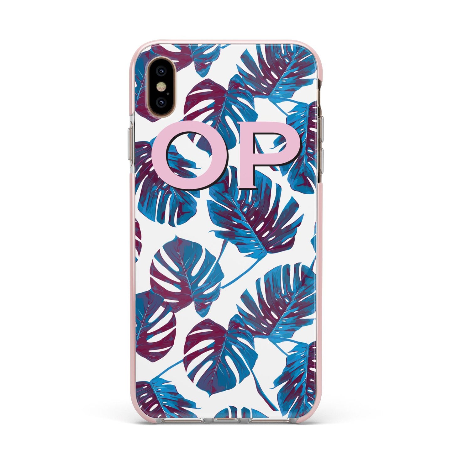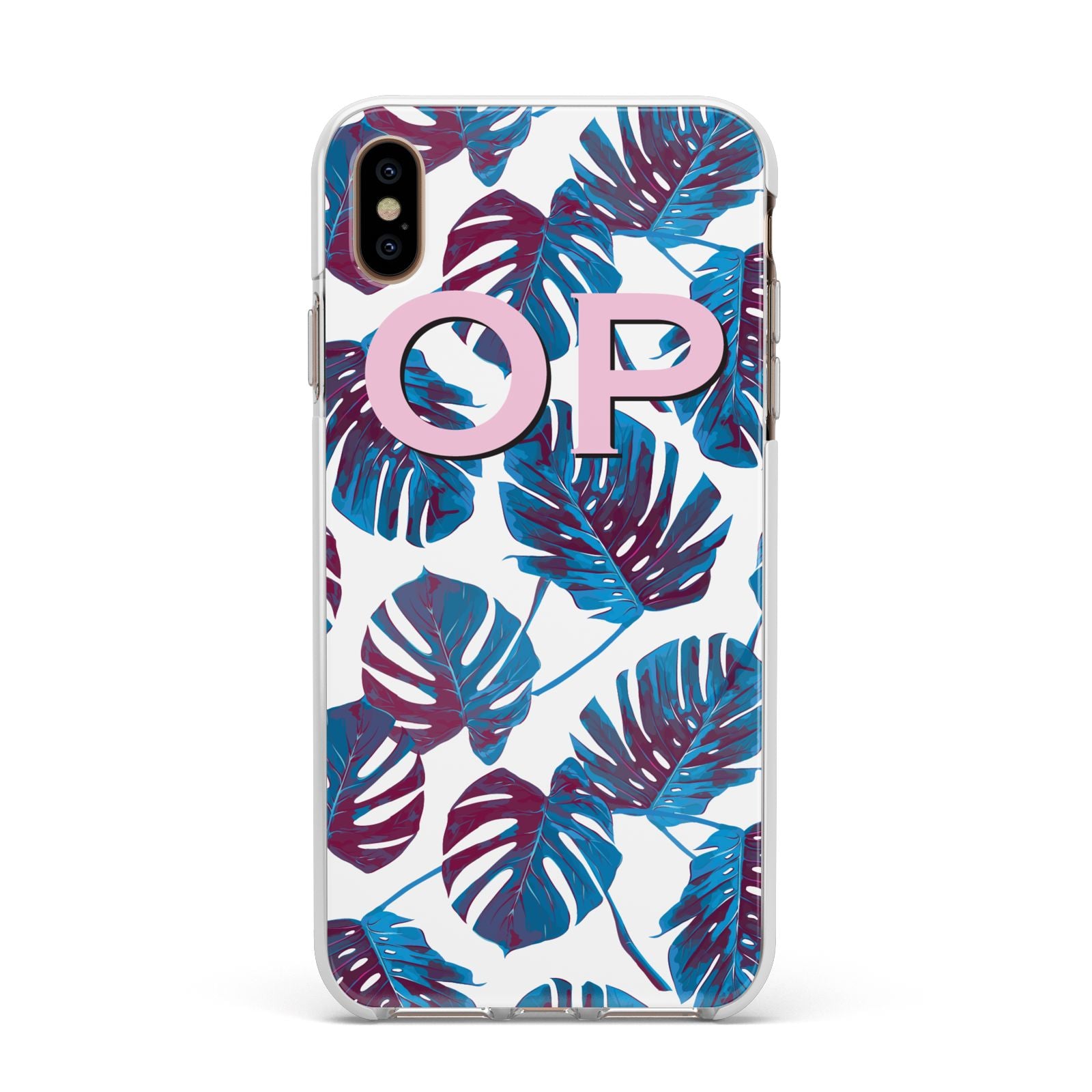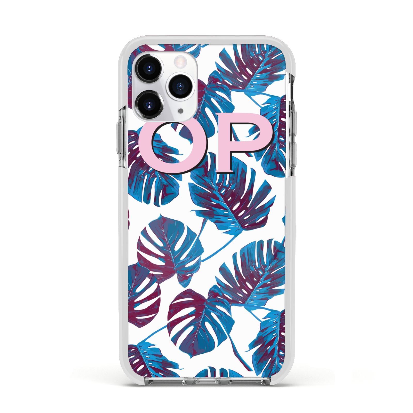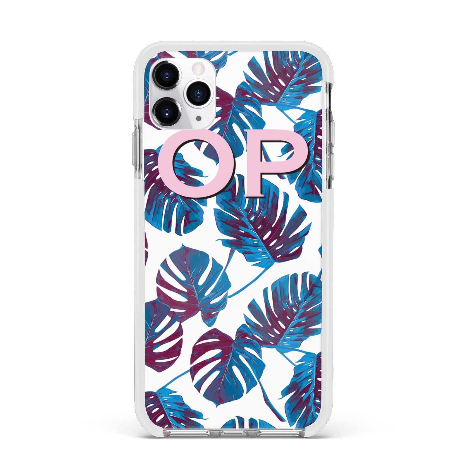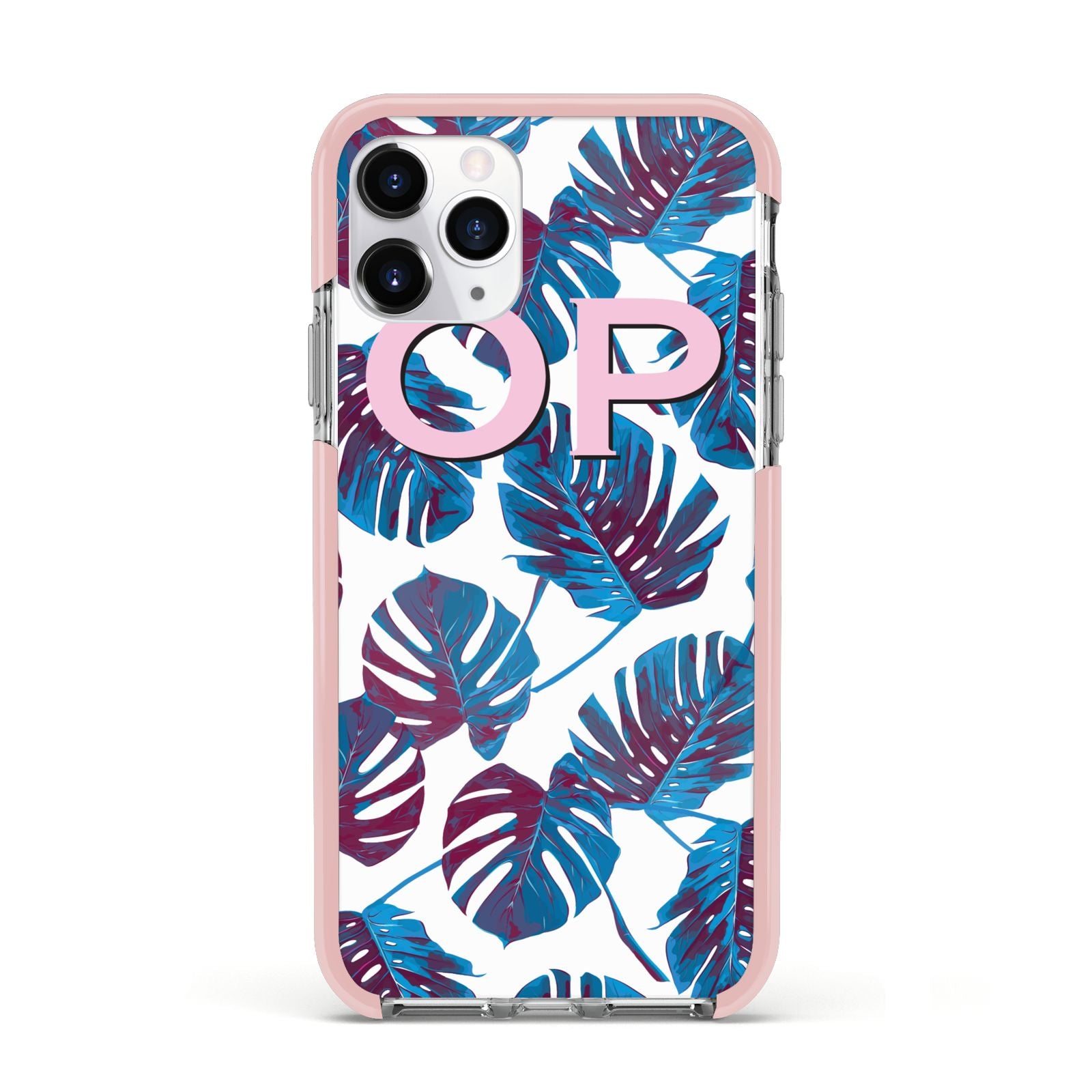 Personalised Blue Monstera Leaves Apple iPhone Case