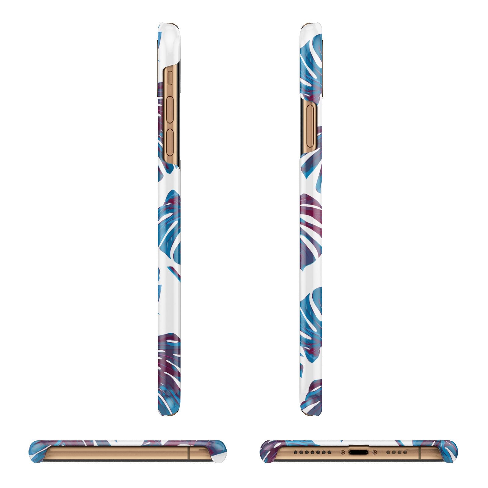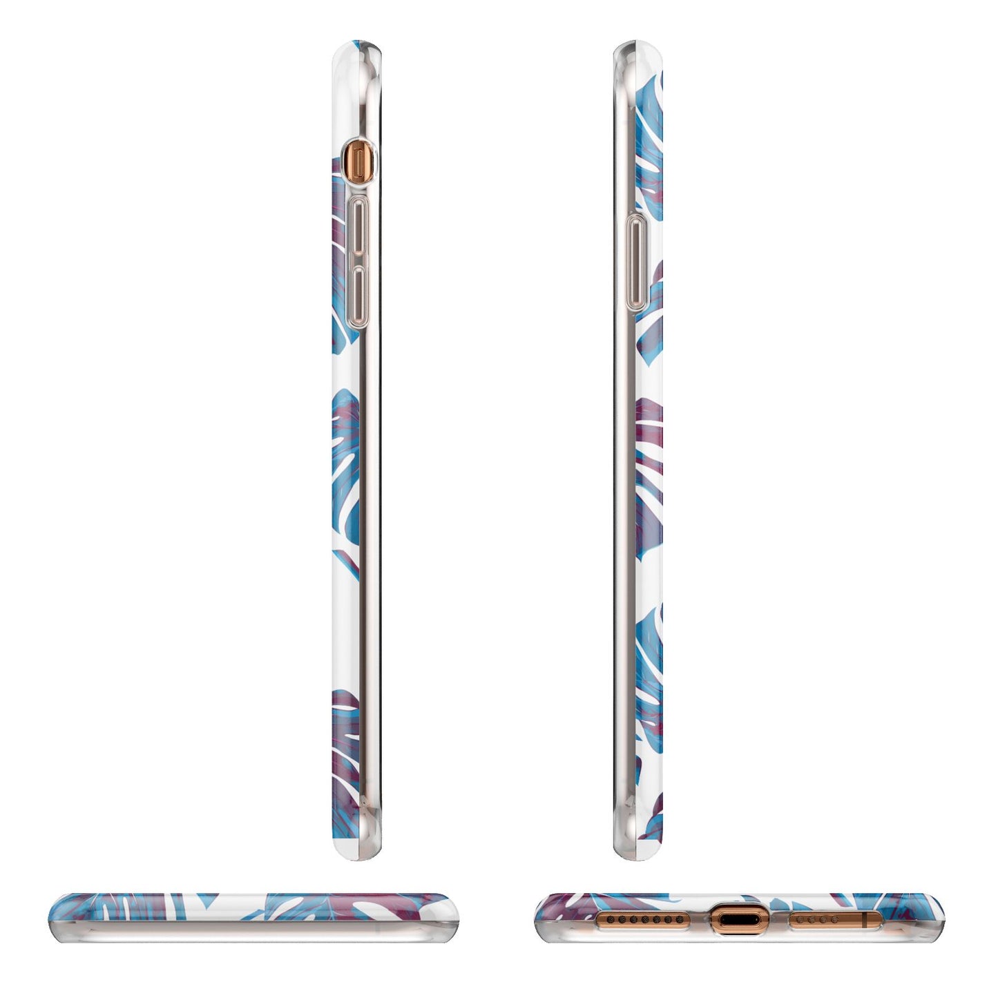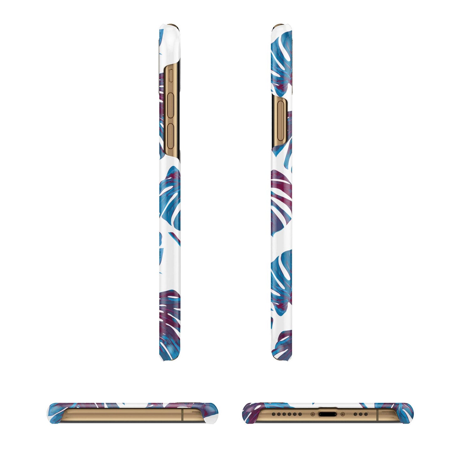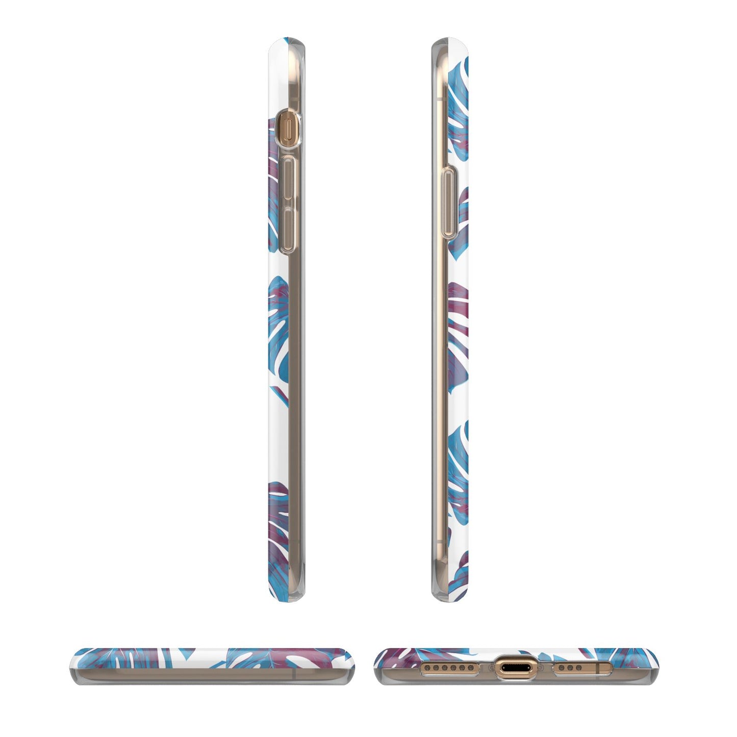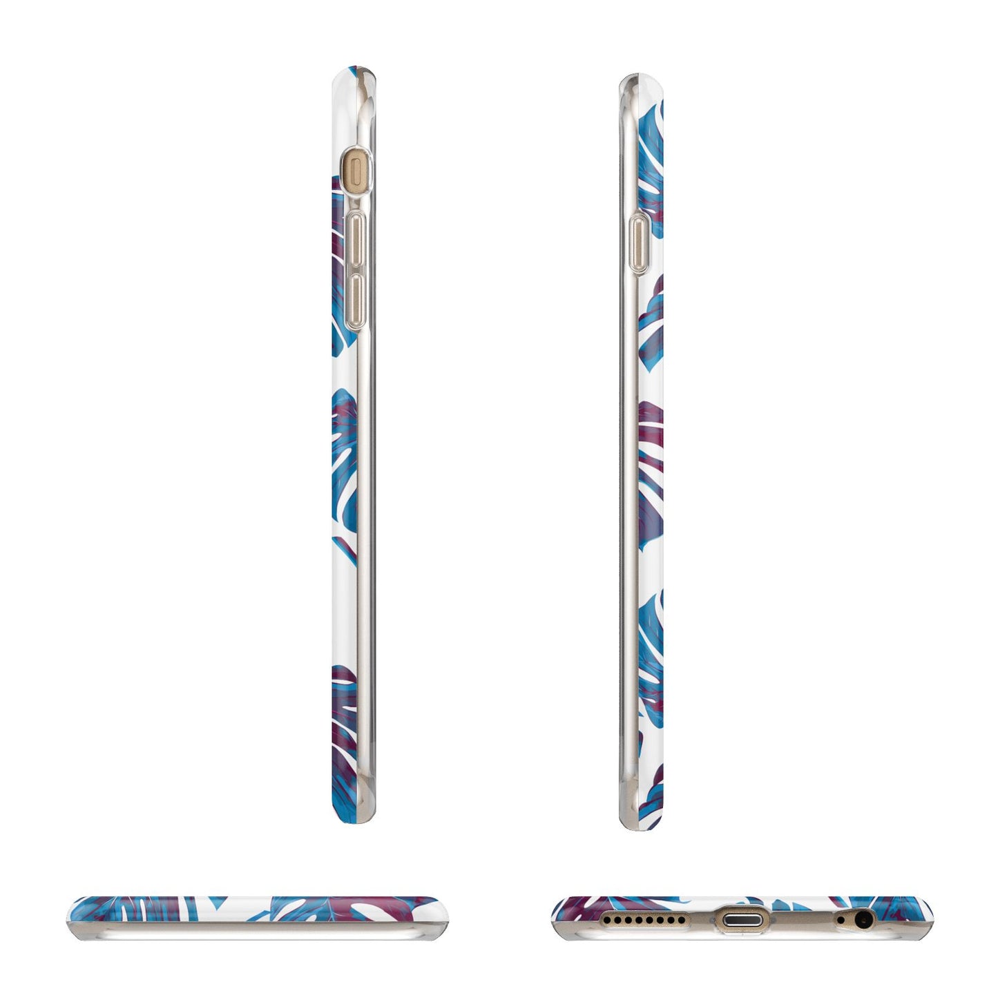 Personalised Blue Monstera Leaves Apple iPhone Case