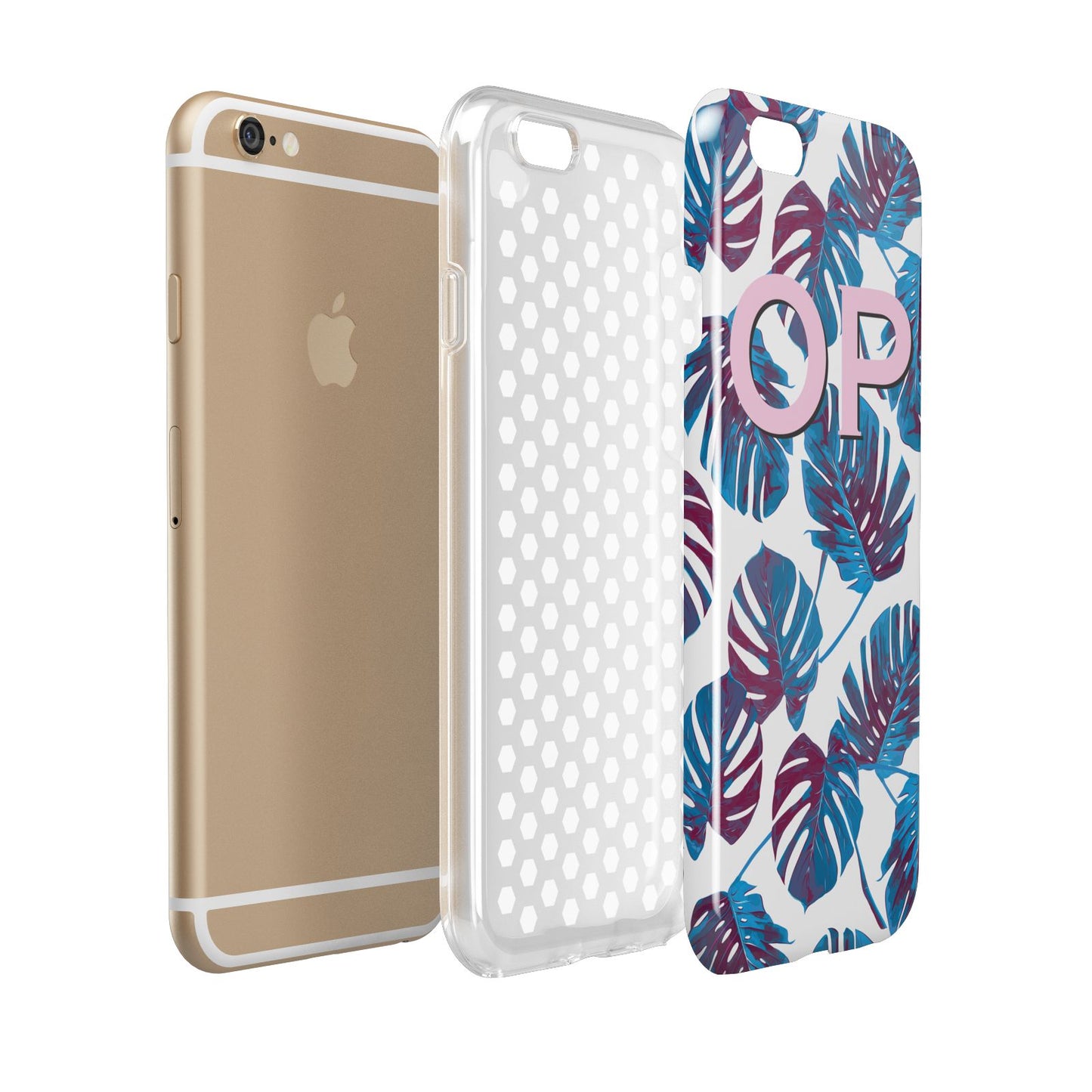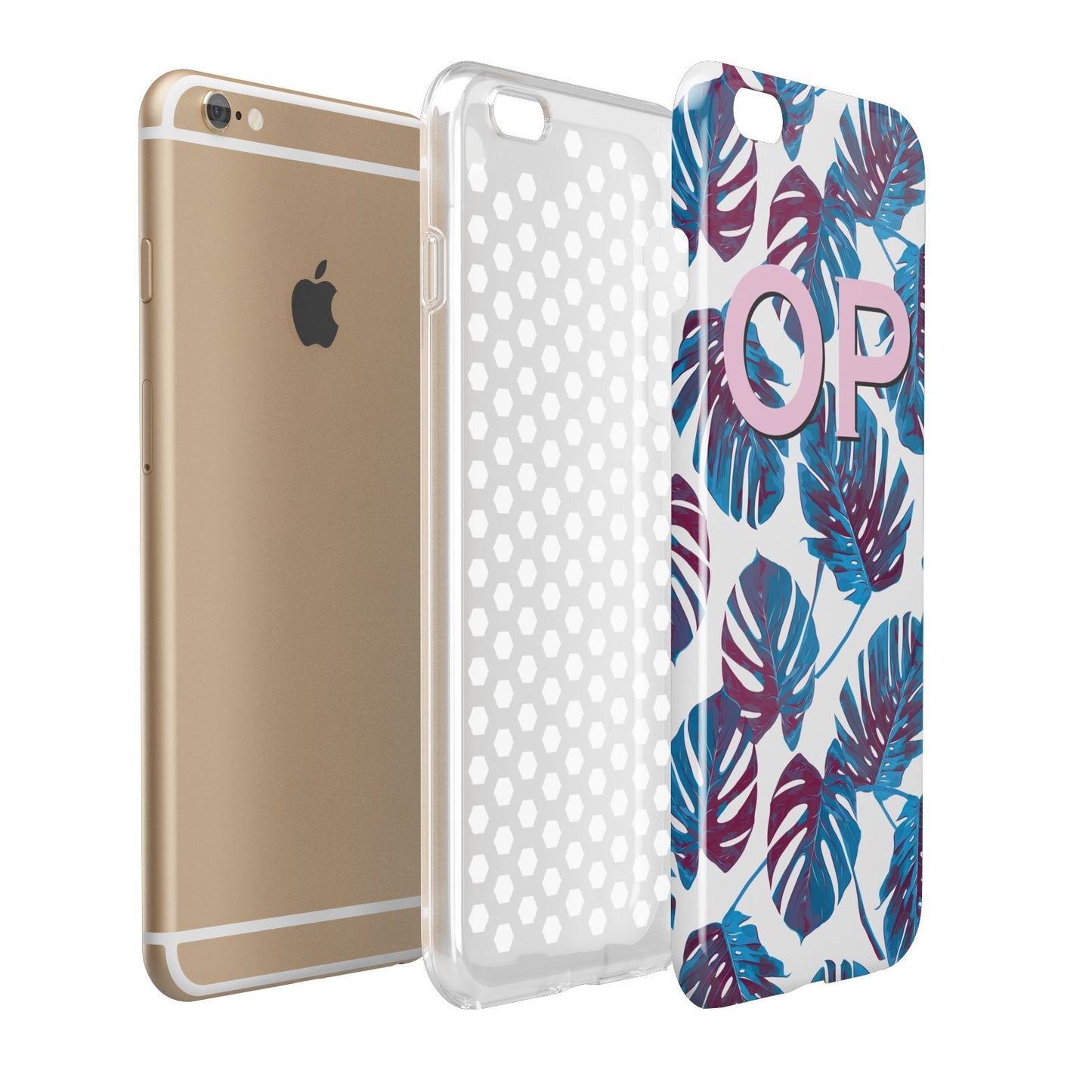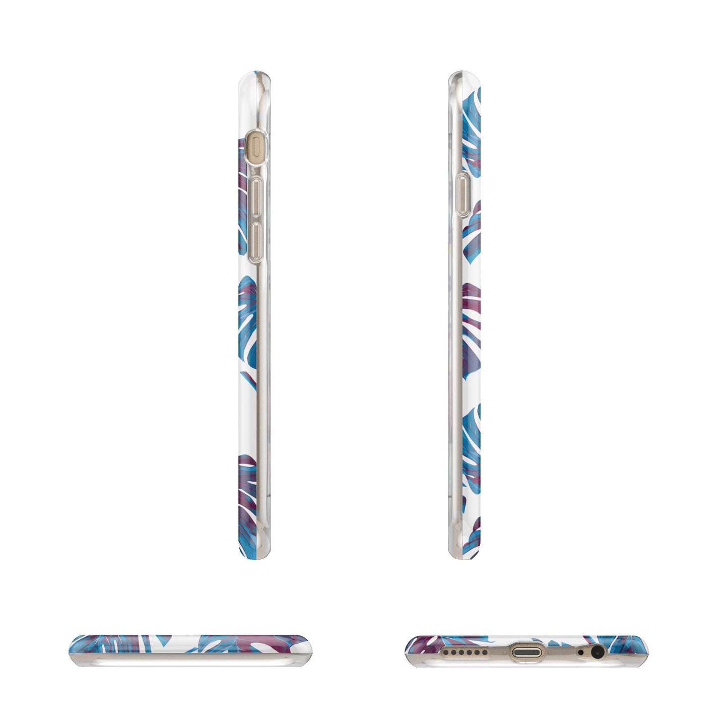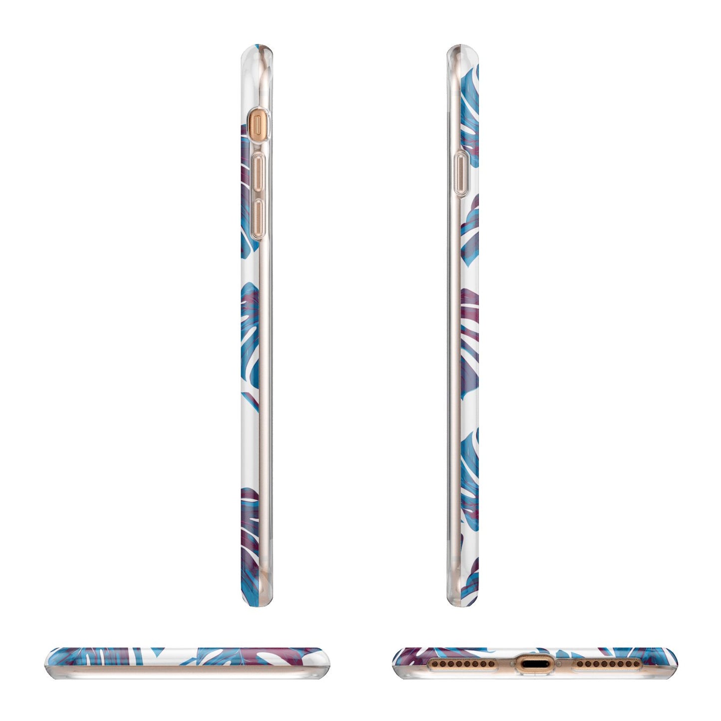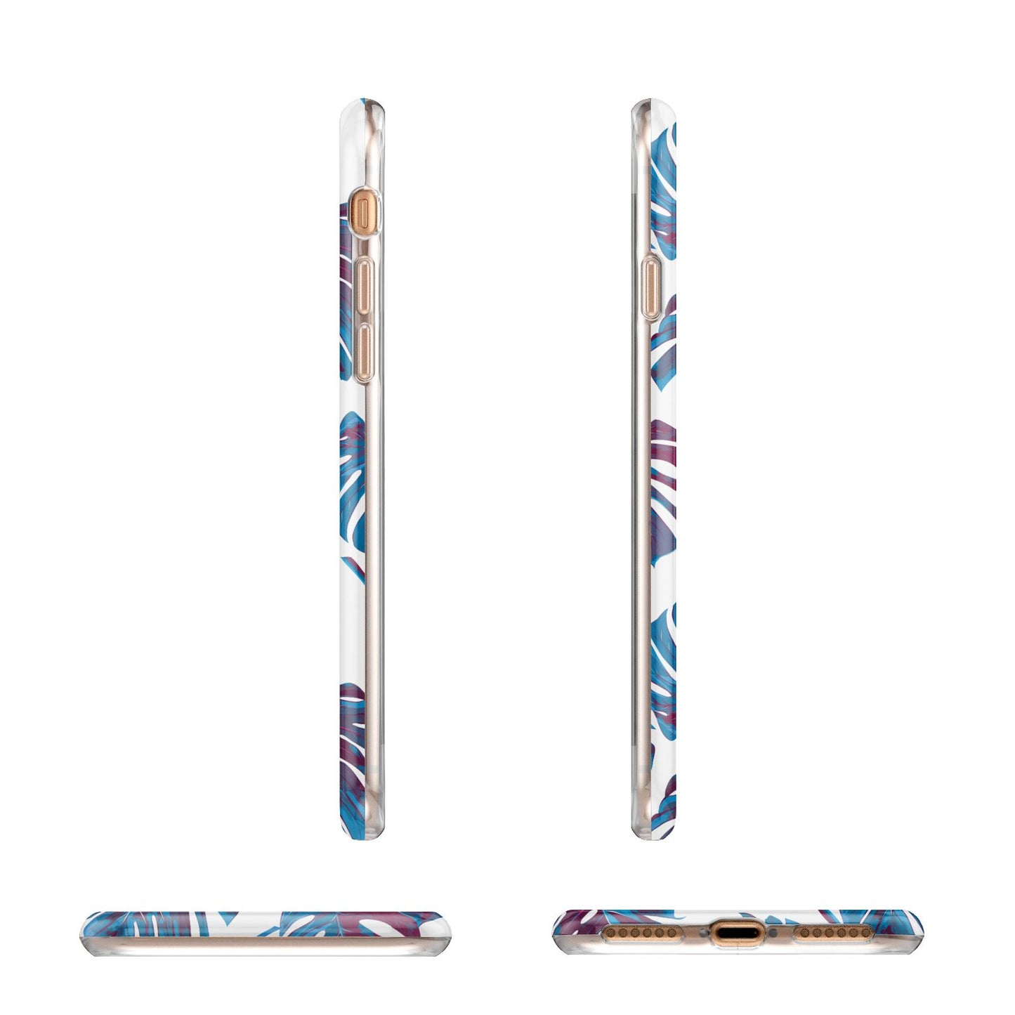Personalised Blue Monstera Leaves Apple iPhone Case