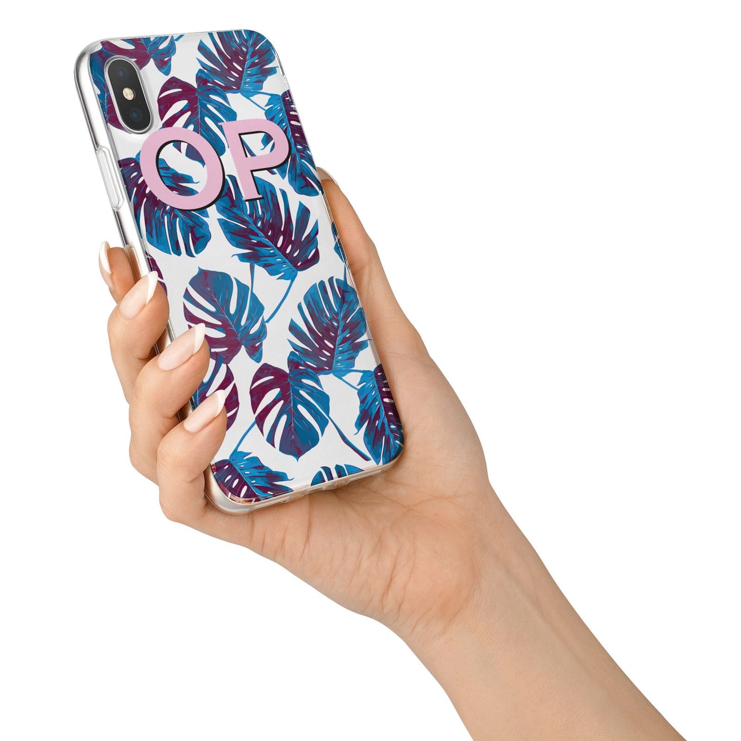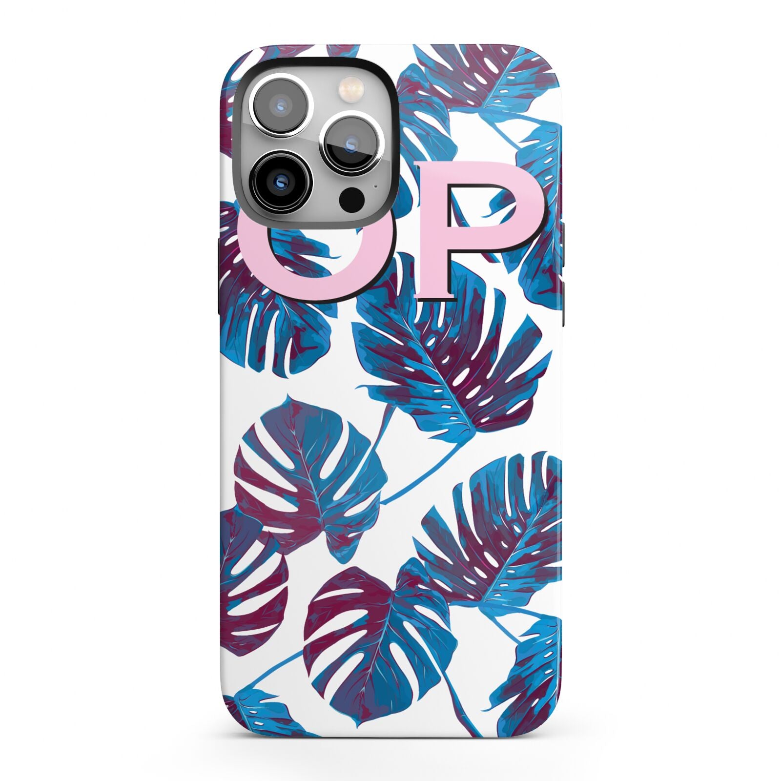 Our vibrant blue personalised tropical print iPhone Case, is perfect to kick start those summers vibes. Featuring blue monstera leaves and matching dusty pink initials, this is the perfect design to protect you phone this summer. Add between one and three initials for a truly bespoke phone case.