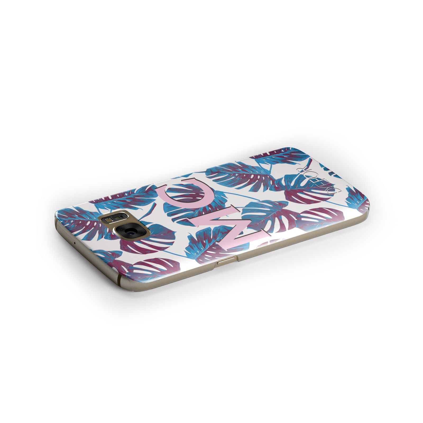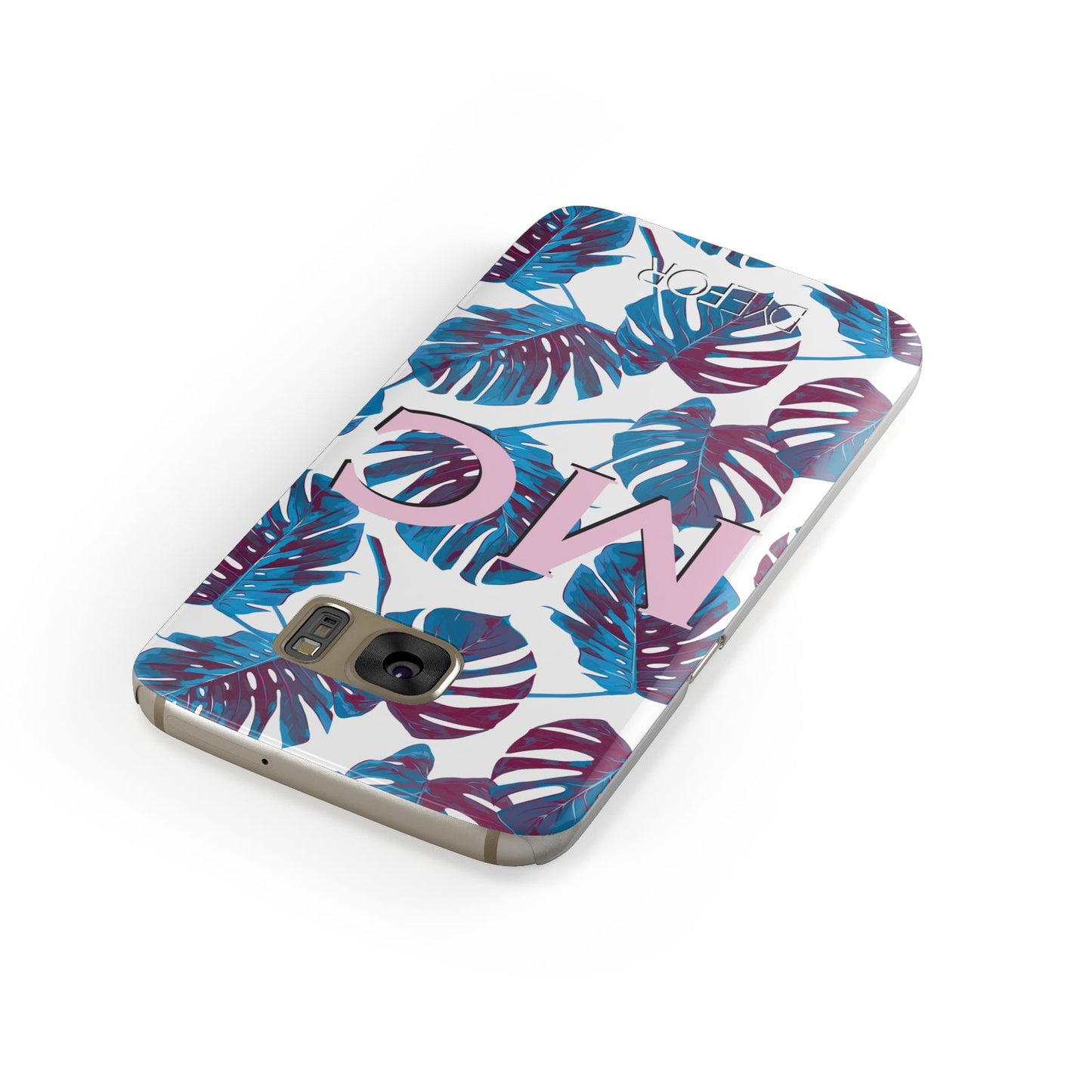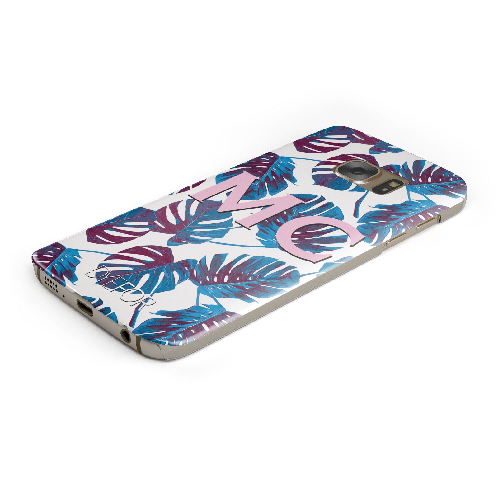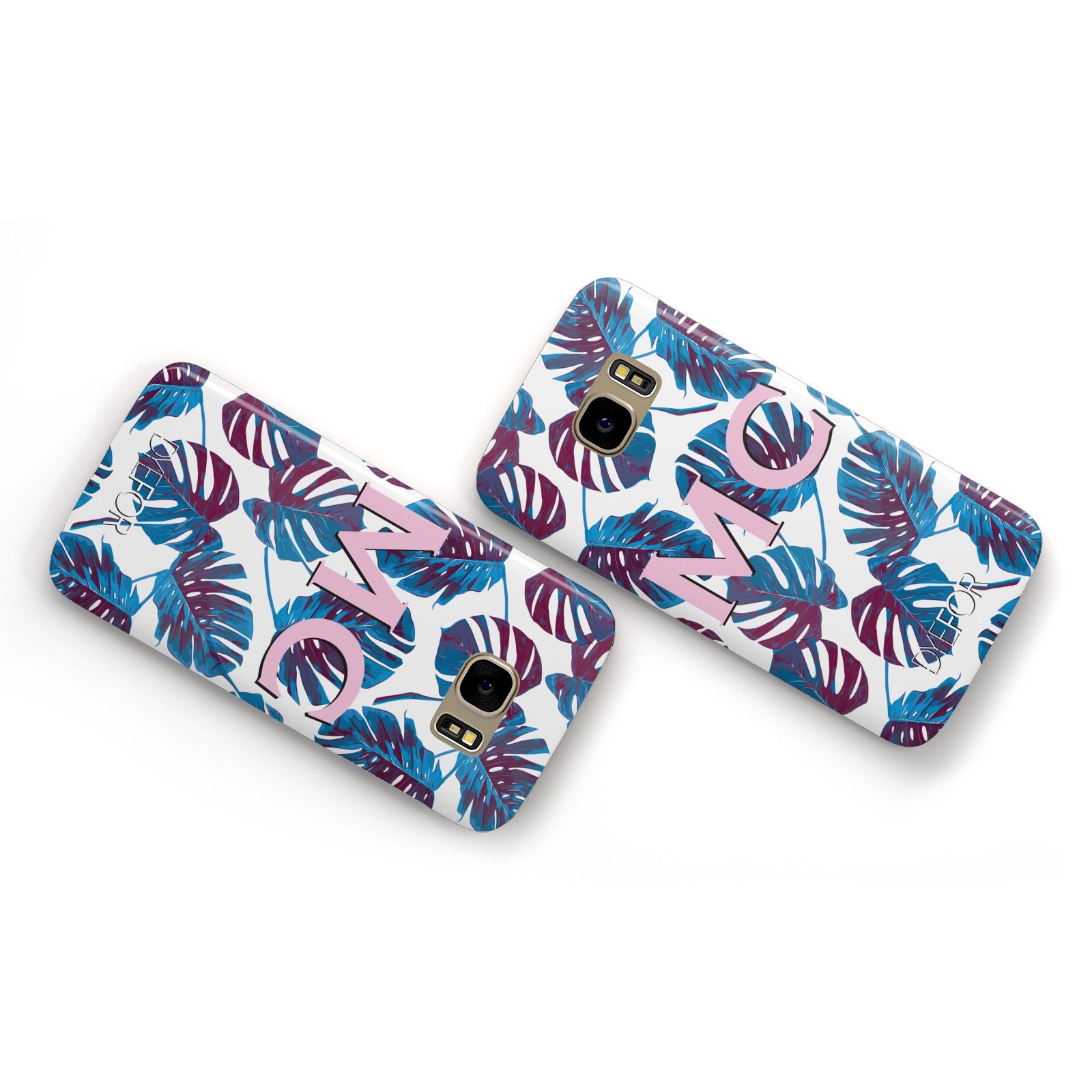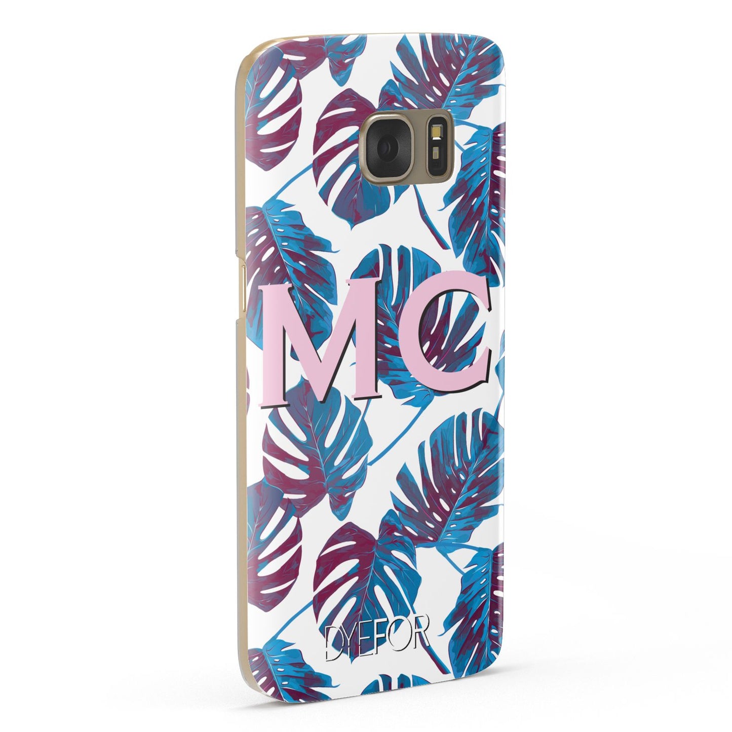 Personalised Blue Monstera Leaves Samsung Galaxy Case