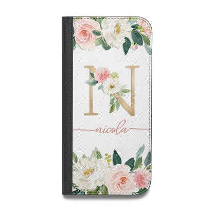 Personalised Blush Floral Monogram Vegan Leather Flip iPhone Case