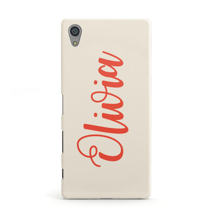 Personalised Cream Red Name Sony Case
