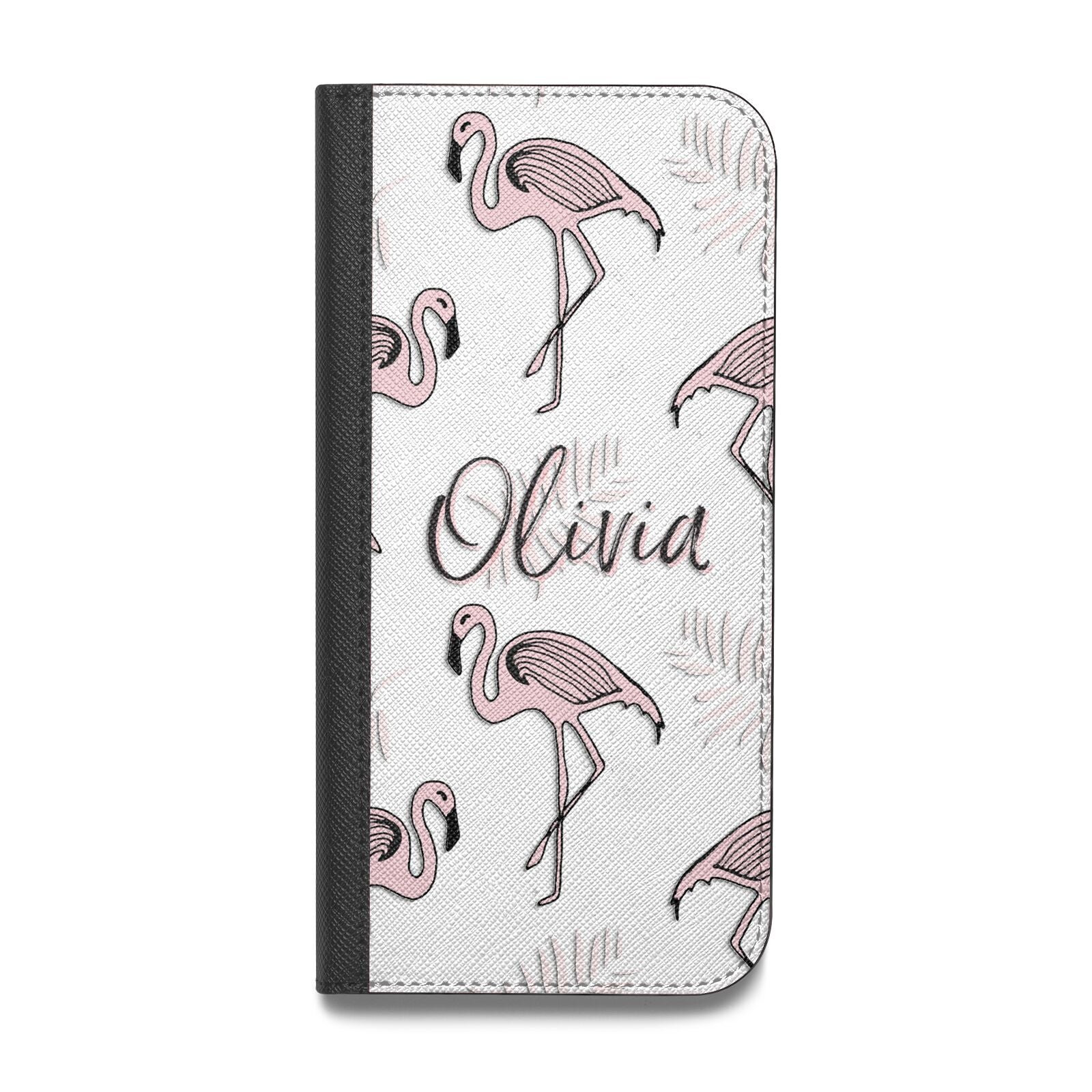 Personalised Cute Pink Flamingo Vegan Leather Flip iPhone Case
