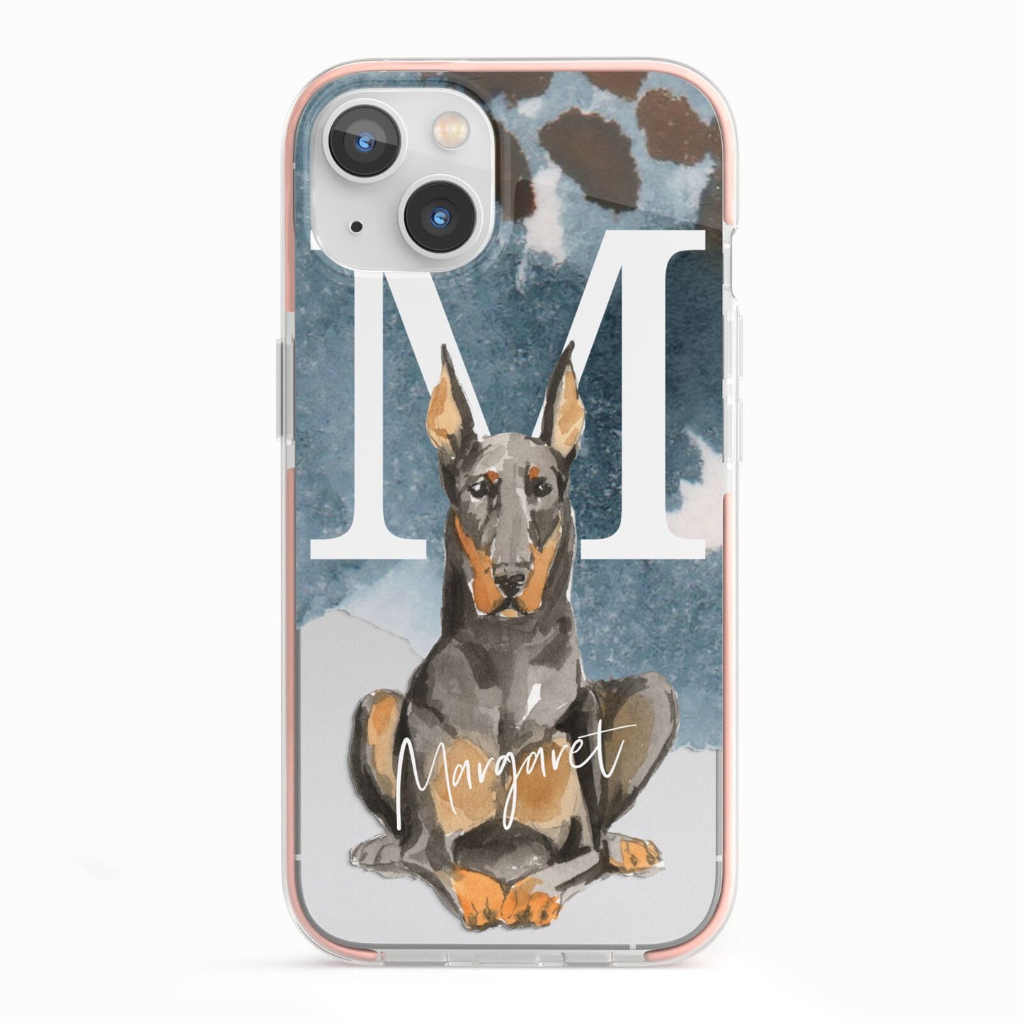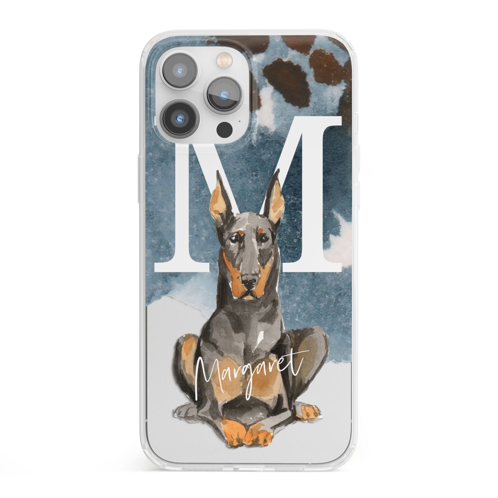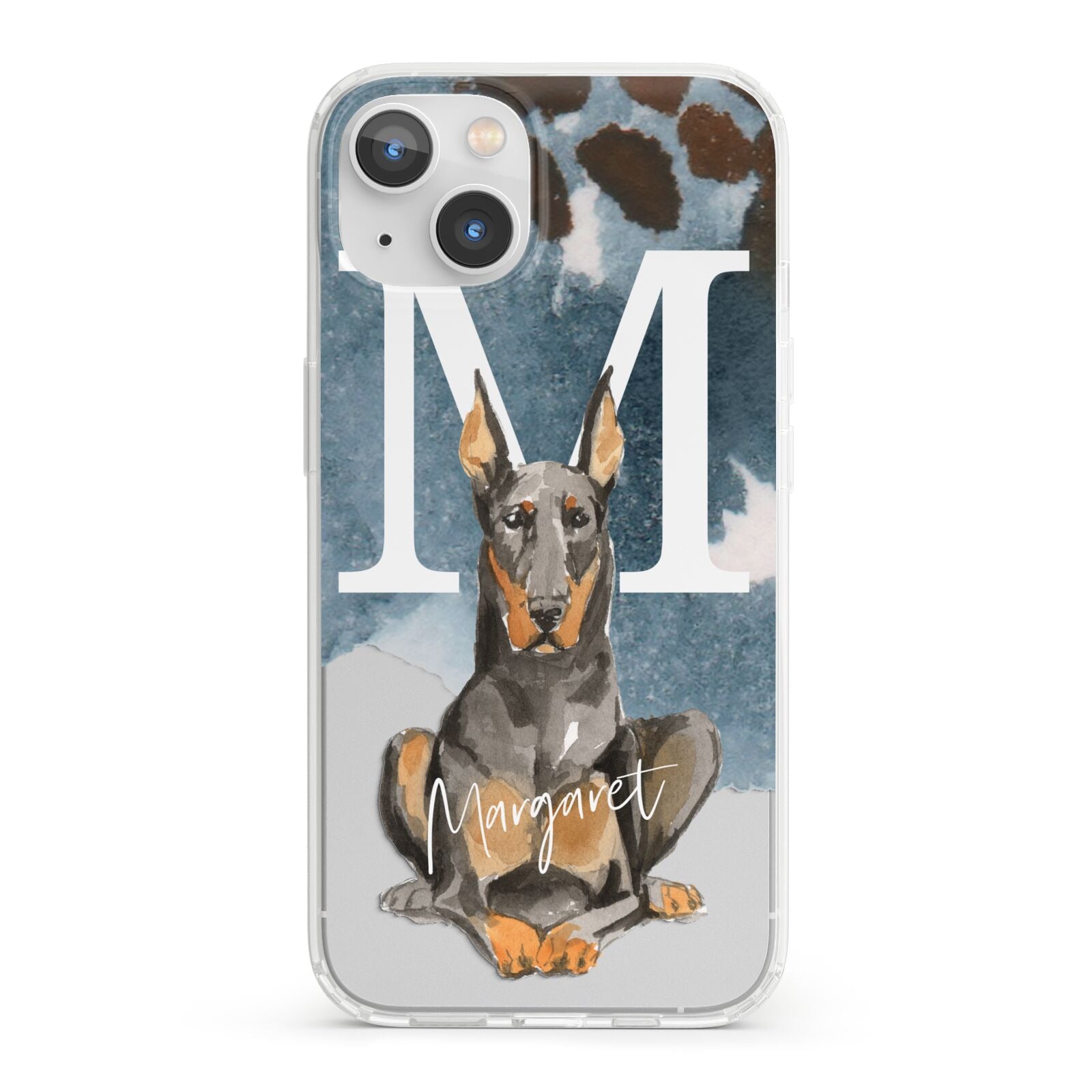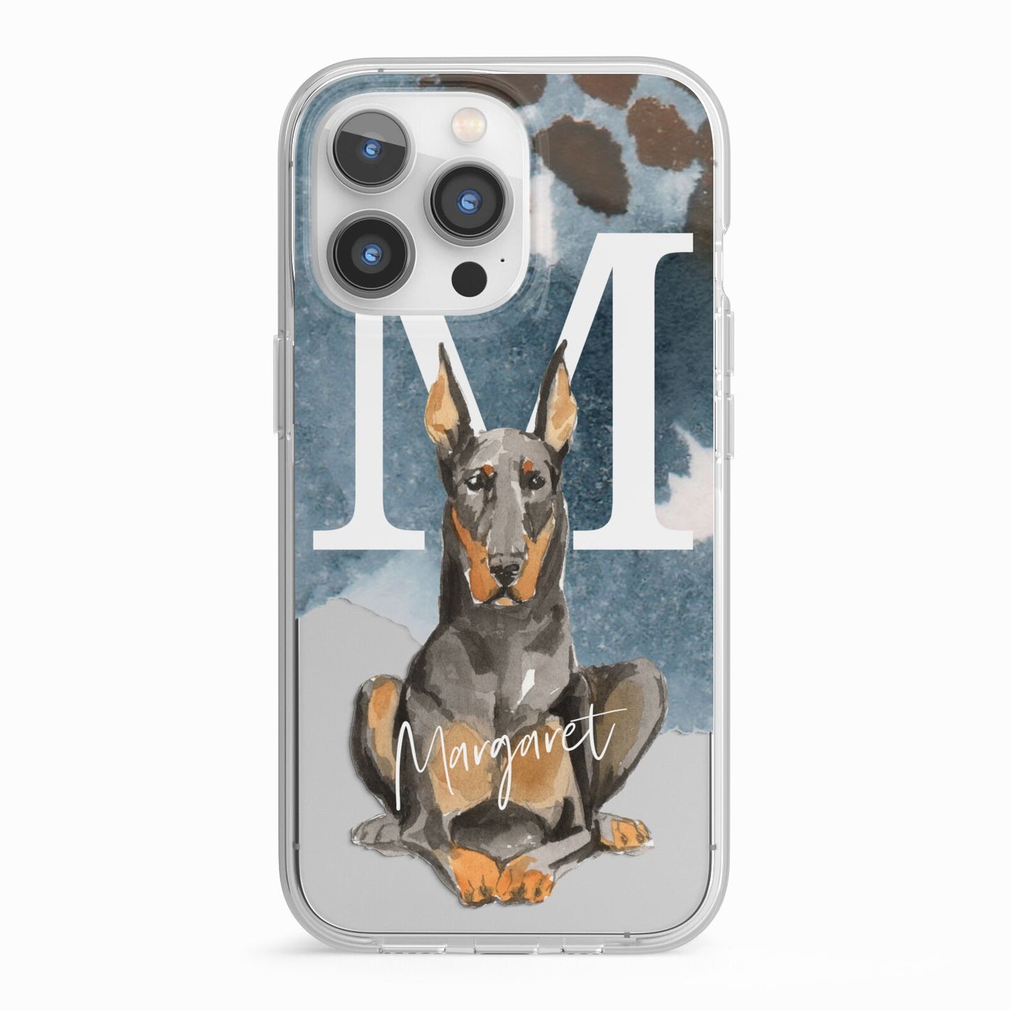 This great Personalised Doberman Dog Apple iPhone Case is a watercolour illustration of a doberman dog, set against a dark blue backdrop. This design can be customised with a large monogram, and a name. This great design is ideal for any dog lover, or for someone with a pet doberman. This pattern is great to personalise and is available across a number of our products.