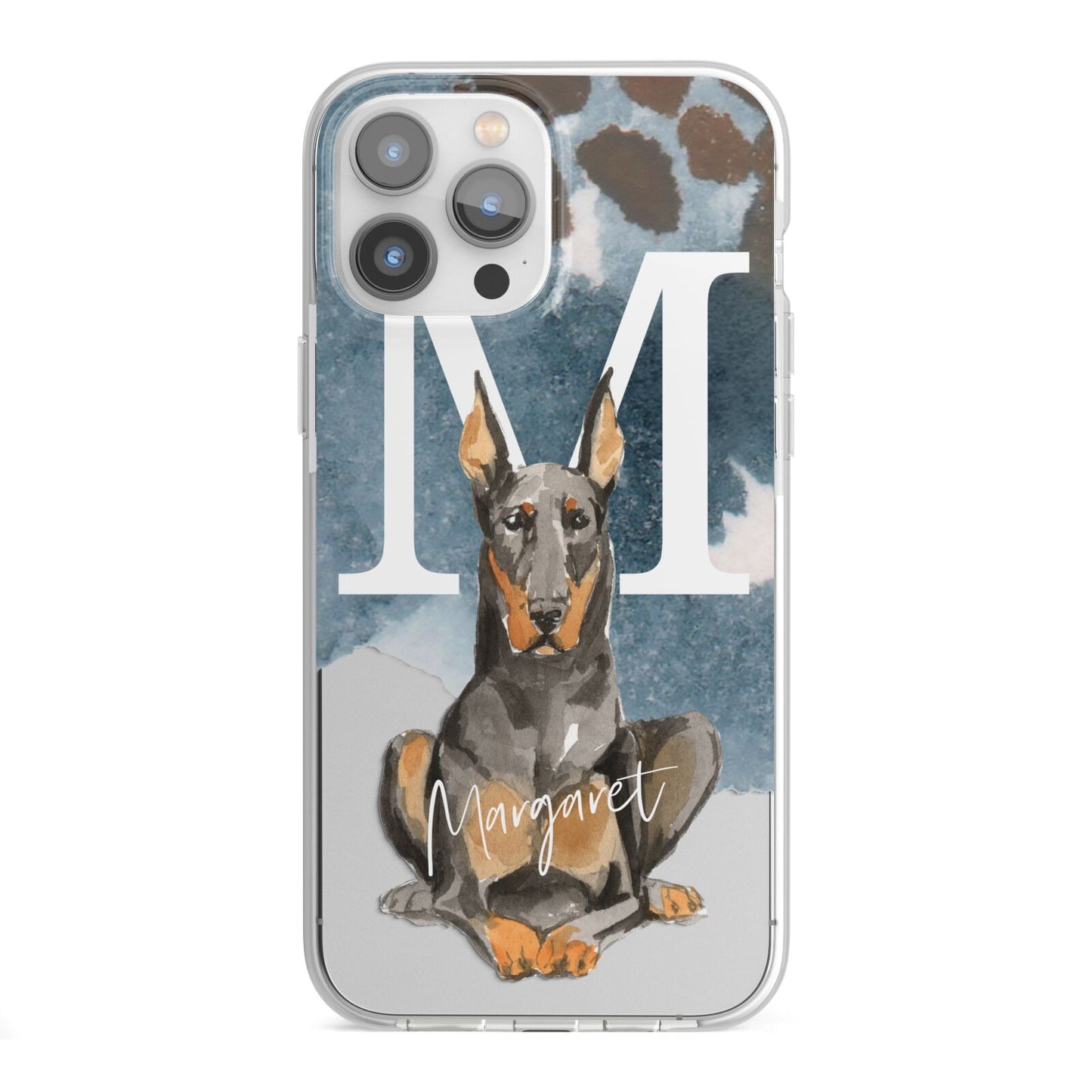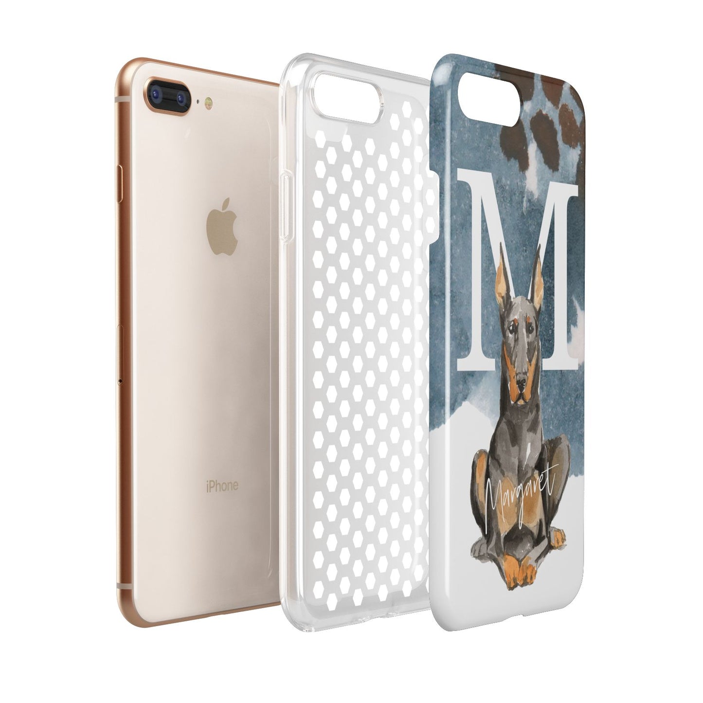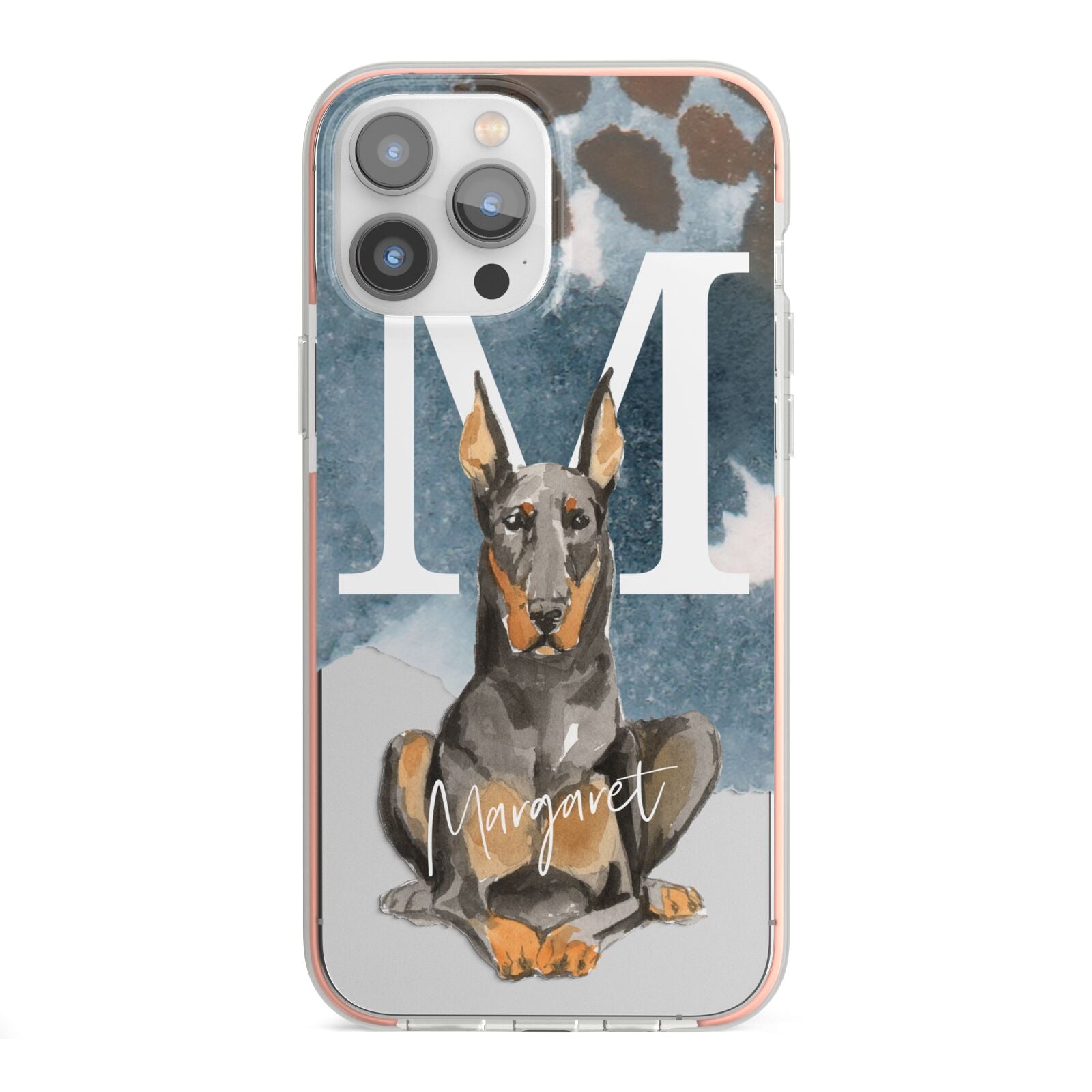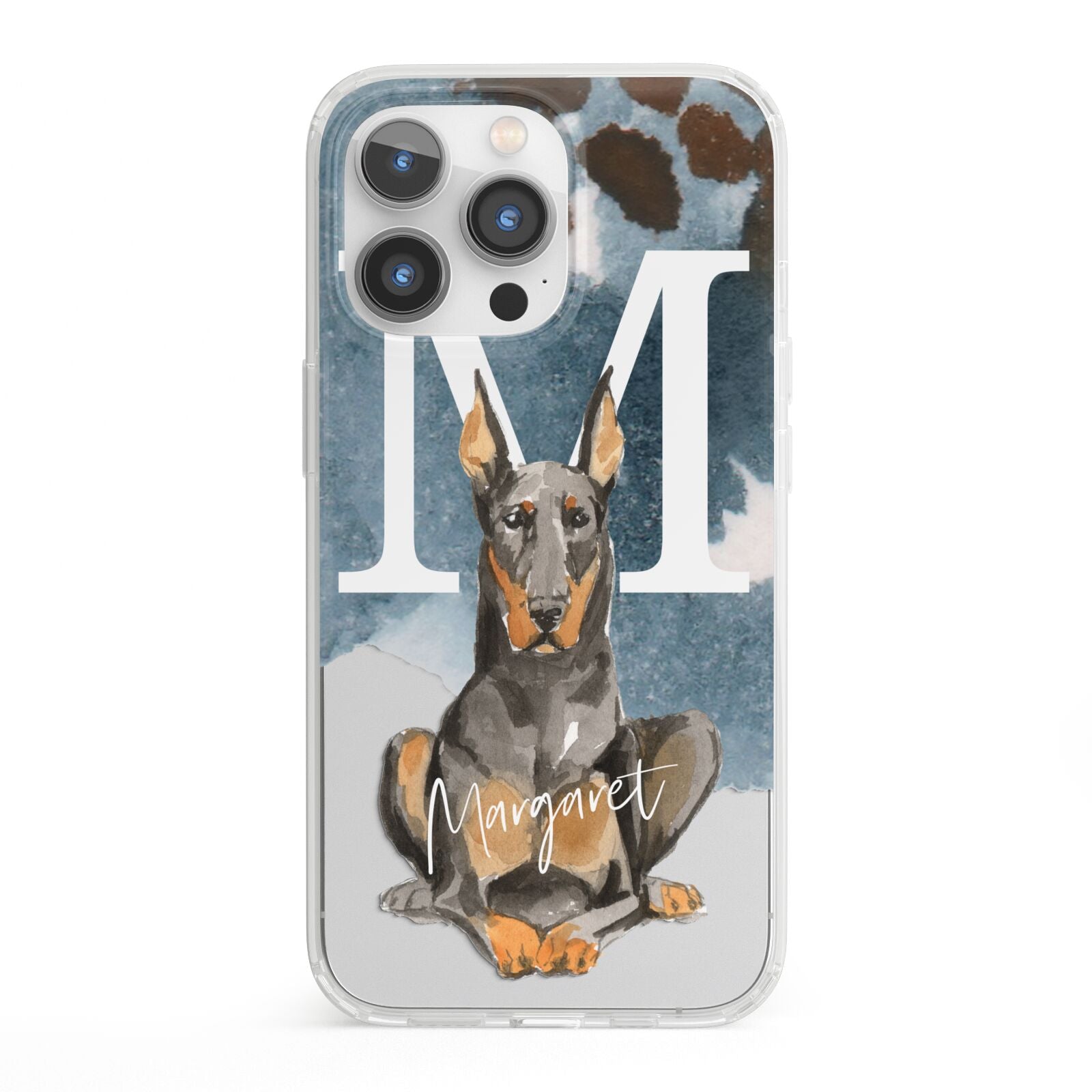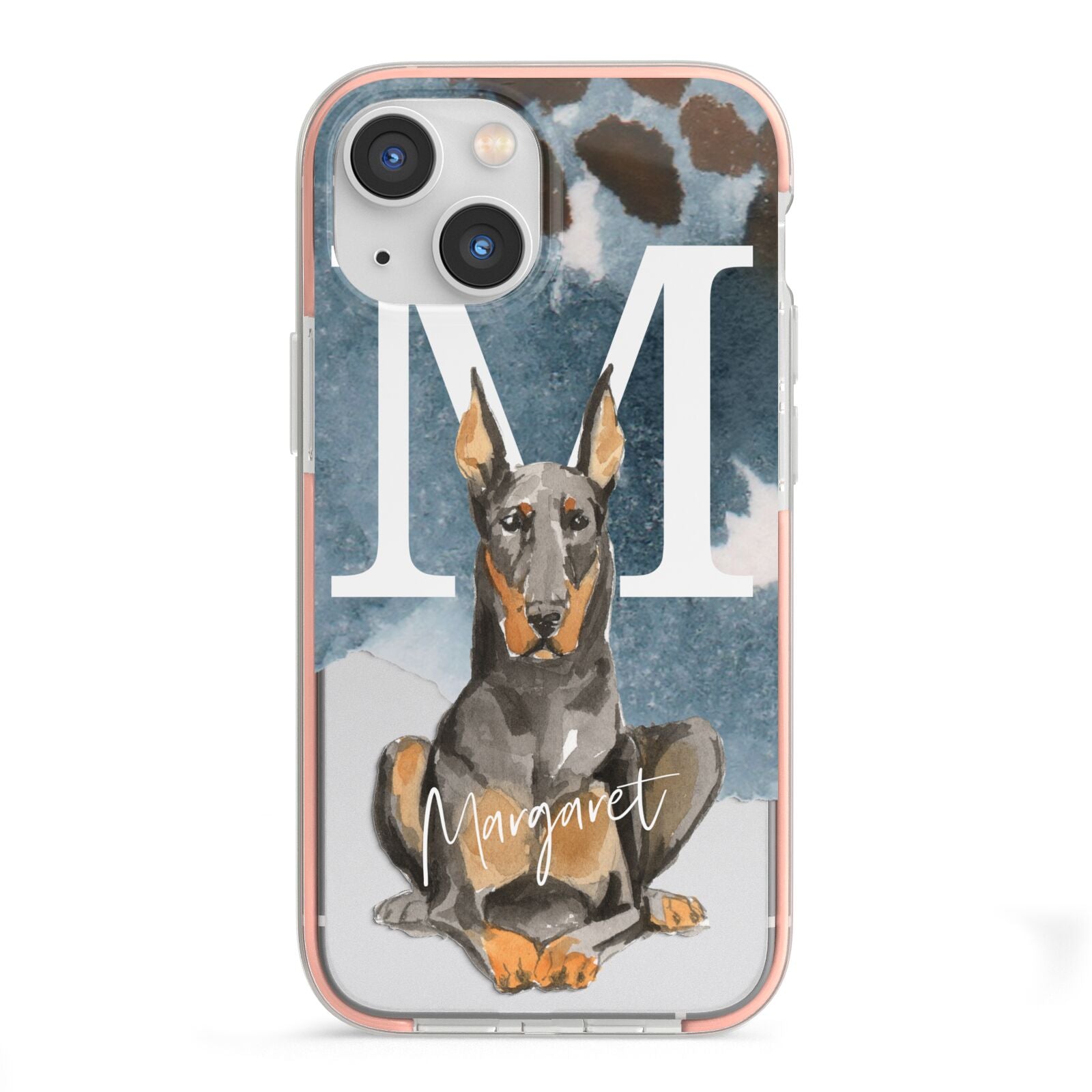 This great Personalised Doberman Dog Apple iPhone Case is a watercolour illustration of a doberman dog, set against a dark blue backdrop. This design can be customised with a large monogram, and a name. This great design is ideal for any dog lover, or for someone with a pet doberman. This pattern is great to personalise and is available across a number of our products.