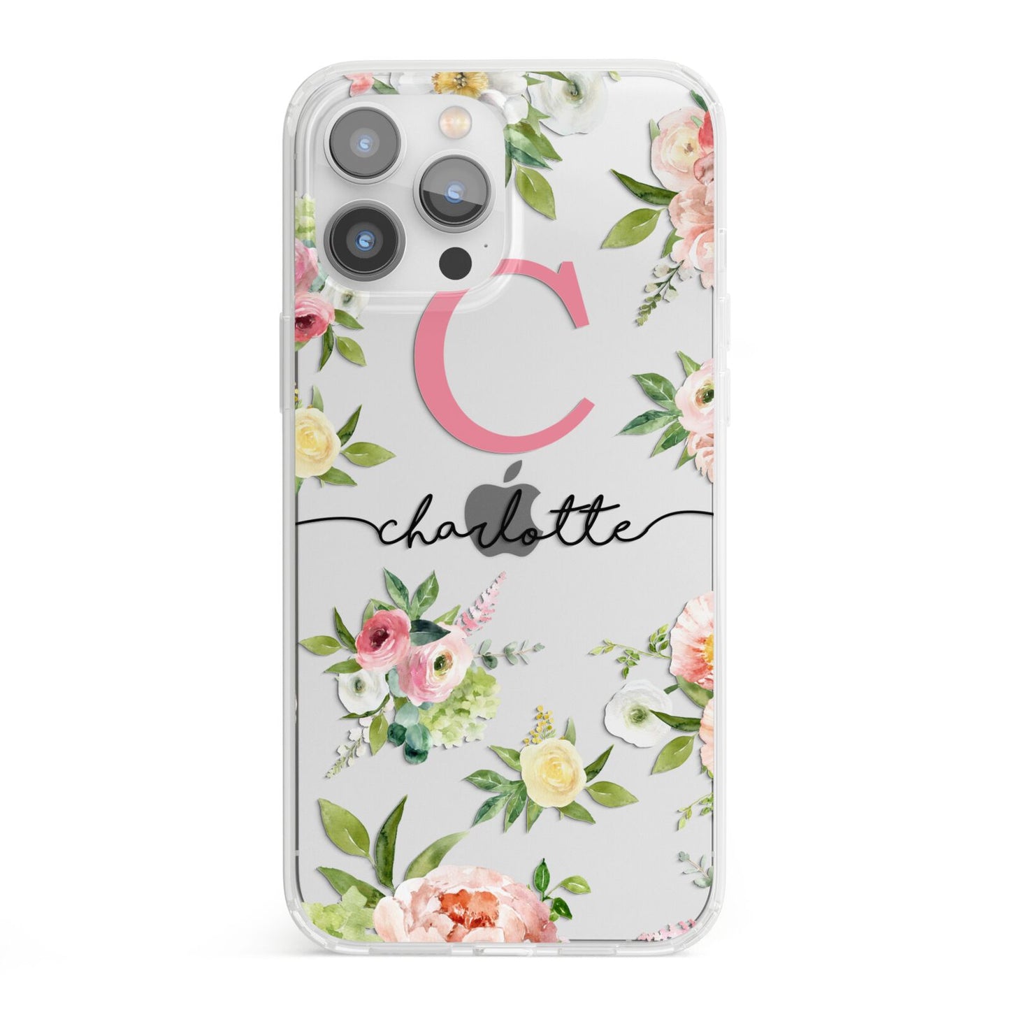 This elegant Personalised Floral Apple iPhone Case is a watercolour floral design, with a prominent pink monogram initial to the top of the design, sitting above a black handwritten name. Perfect for Mother's Day or for spring or summer, you can personalise this design with any details to suit the recipient. The background of this design is transparent, which will show as see through on our clear plastic products, making for a striking clear floral design.