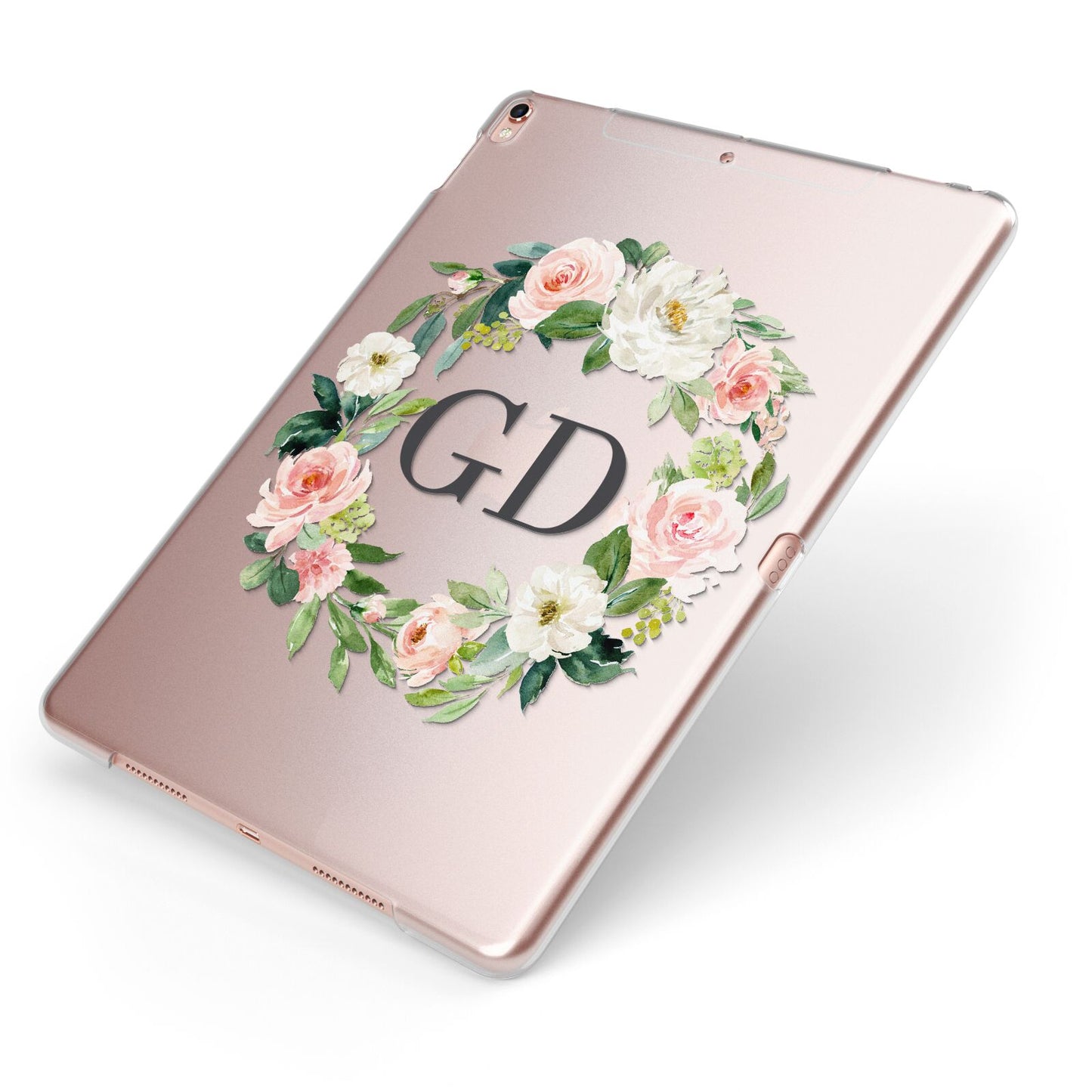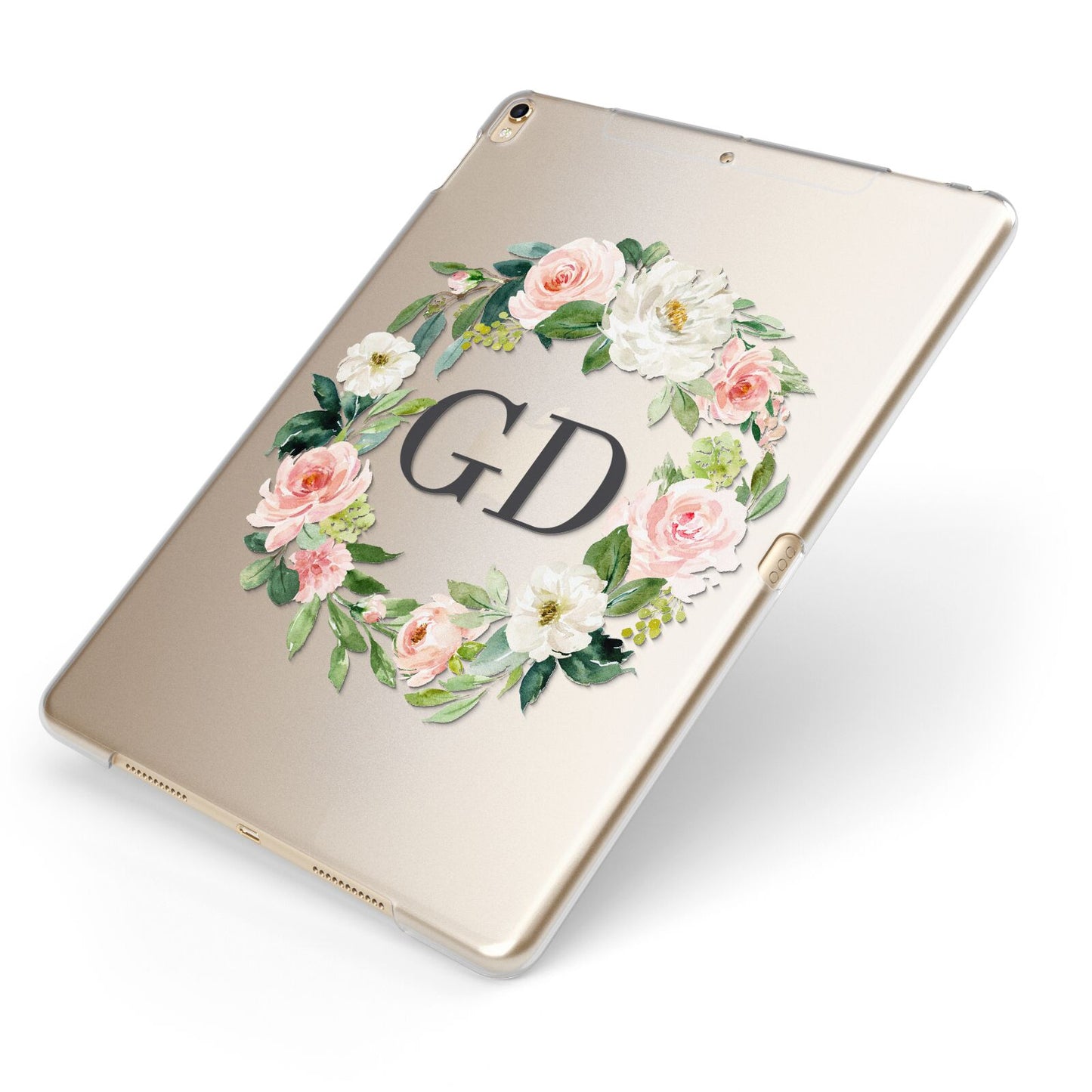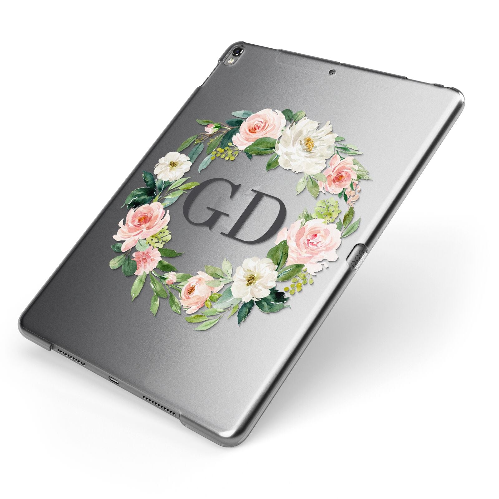 This Personalised floral wreath iPad Case is set against a transparent background and contains beautiful watercolour florals. Personalise this iPad Case with a choice of two initials and add a touch of summer to your life with this florally little number.
