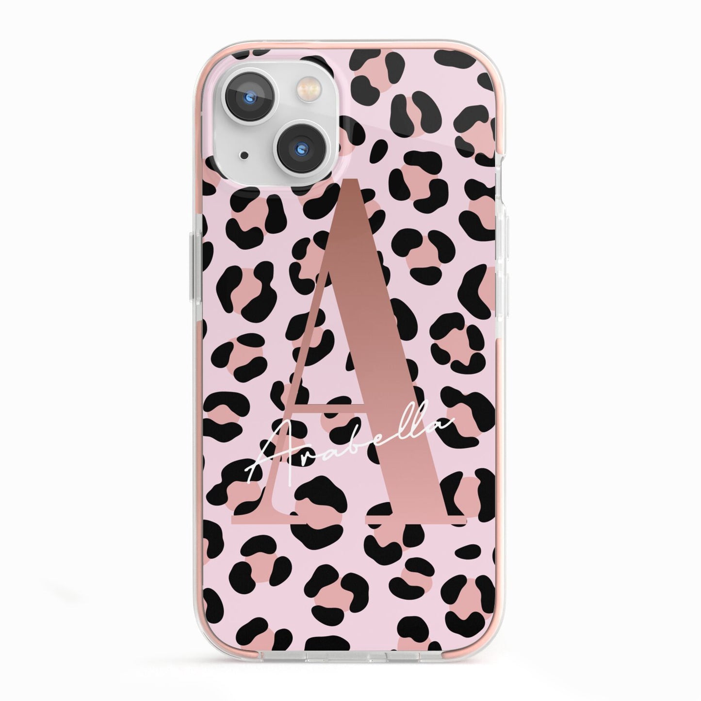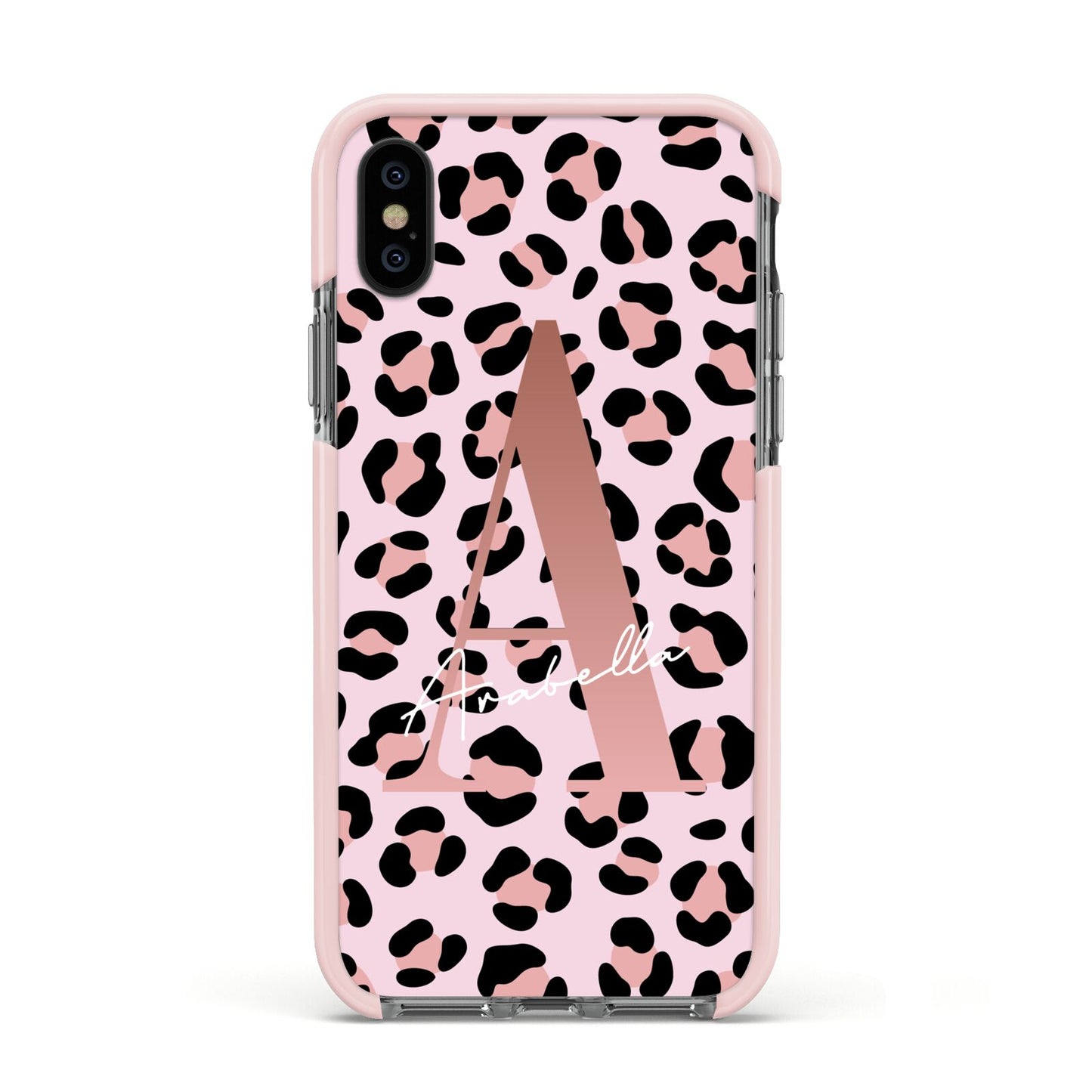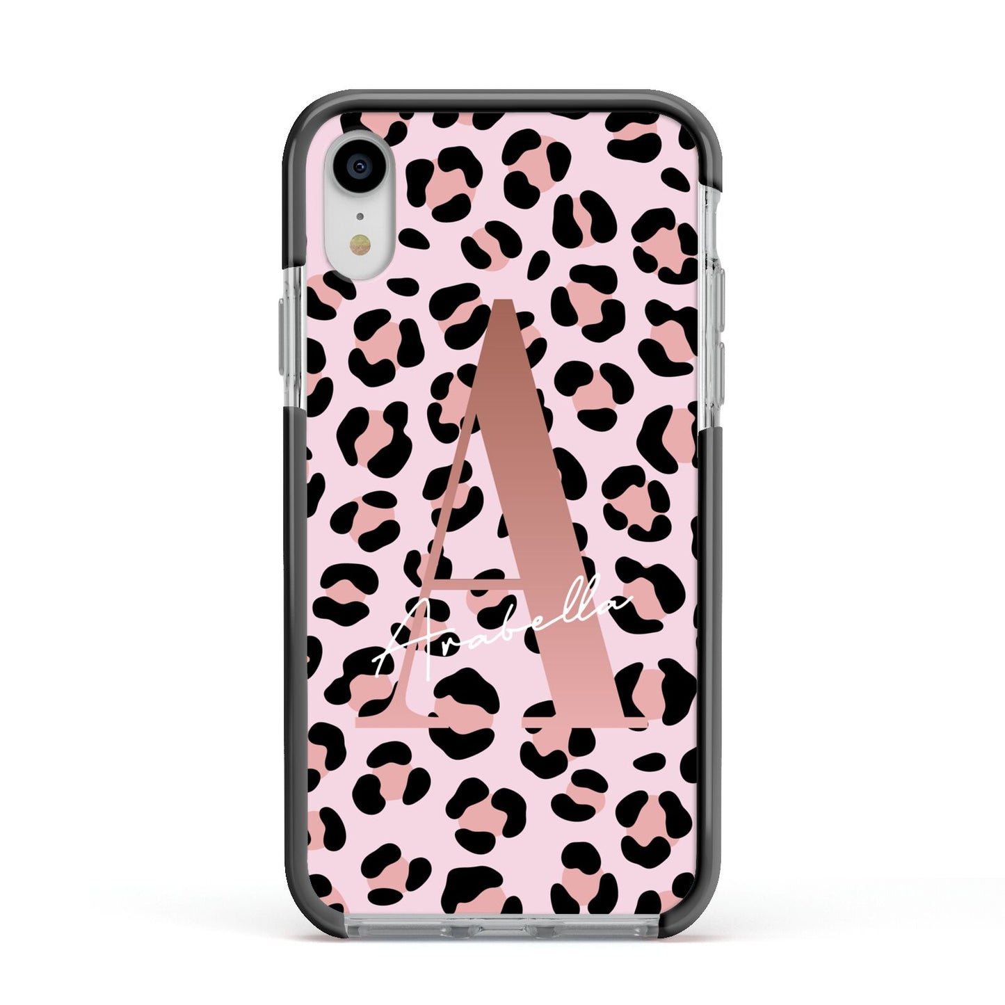 Our Personalised Leopard Print Initial Apple iPhone Case is a pink and black leopard print design, with a large rose gold initial and a white name. These colours are so on trend at the moment, and so is leopard print. We just love the way these colours compliment each other. Add your details to make a stunning personalised phone case today.