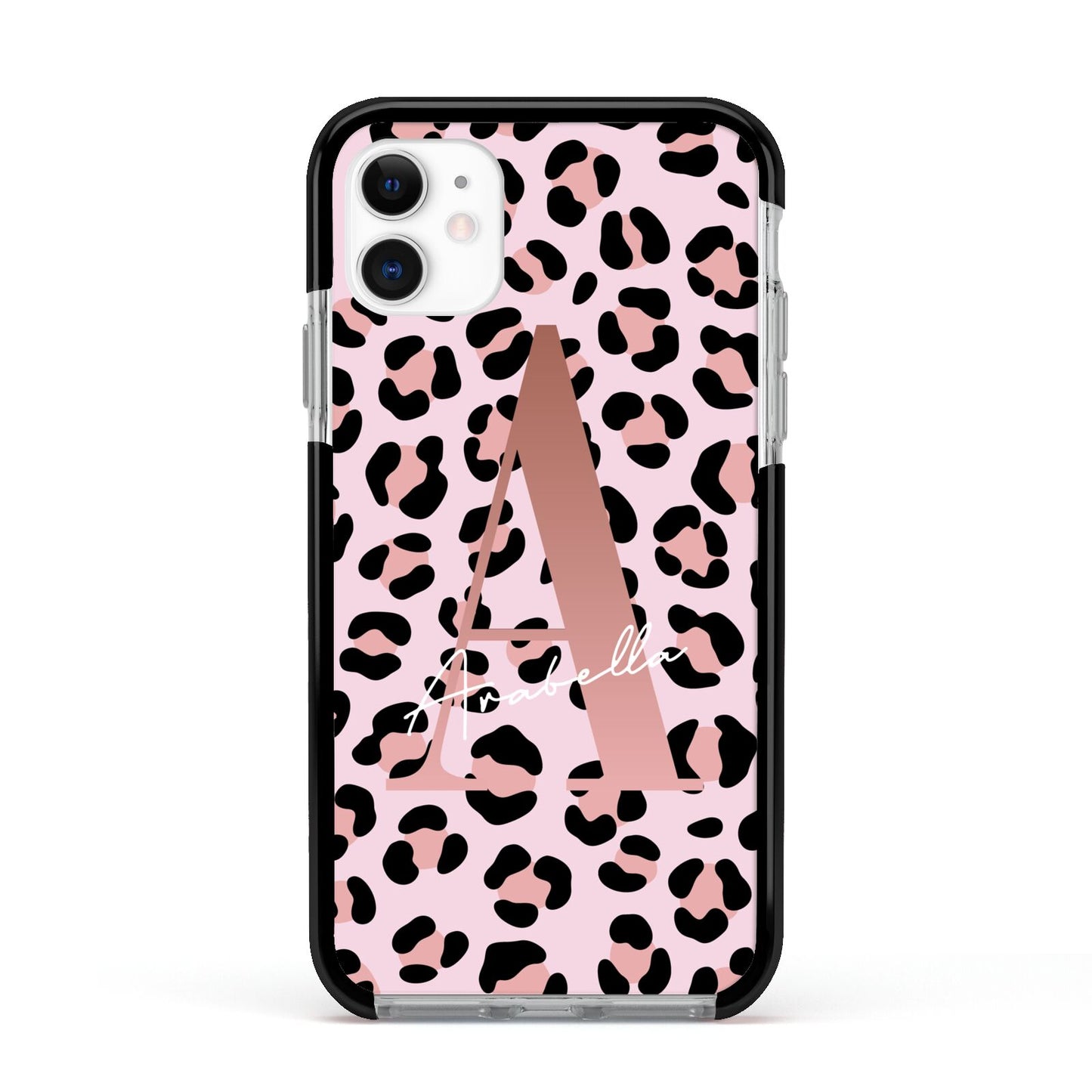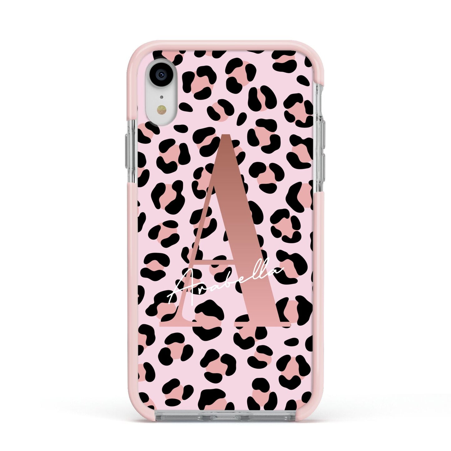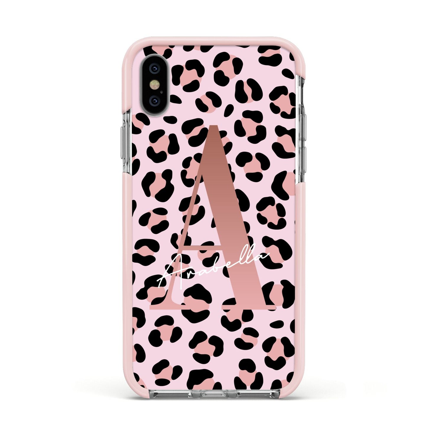 Our Personalised Leopard Print Initial Apple iPhone Case is a pink and black leopard print design, with a large rose gold initial and a white name. These colours are so on trend at the moment, and so is leopard print. We just love the way these colours compliment each other. Add your details to make a stunning personalised phone case today.