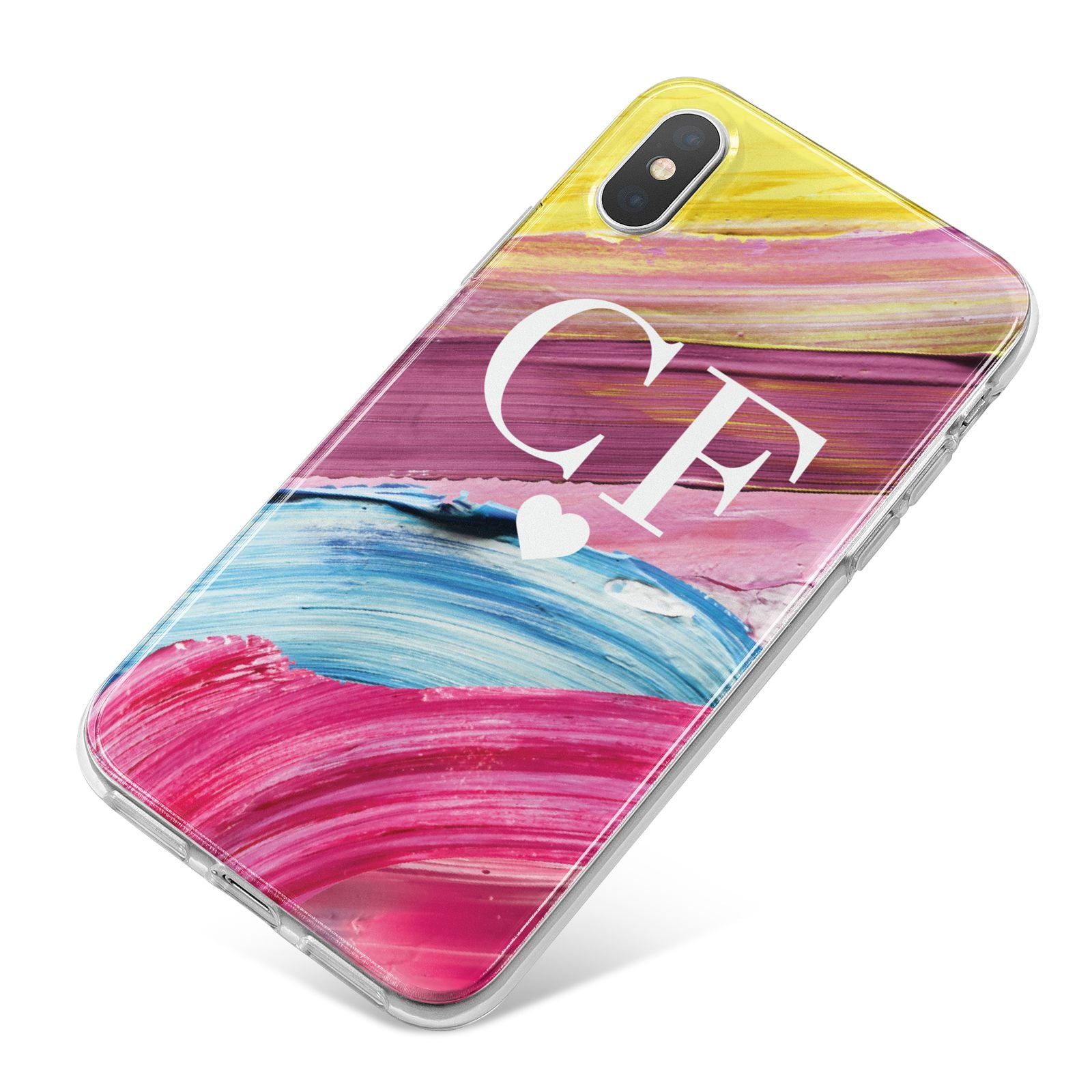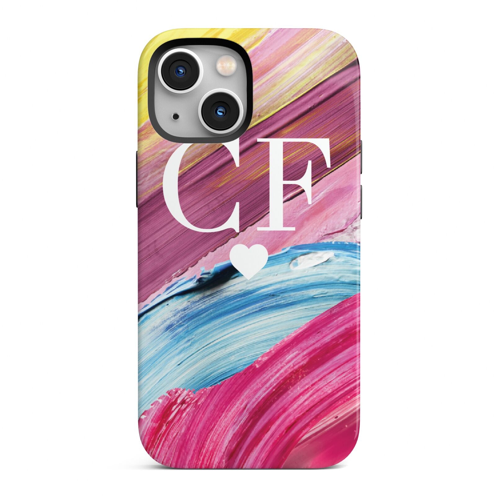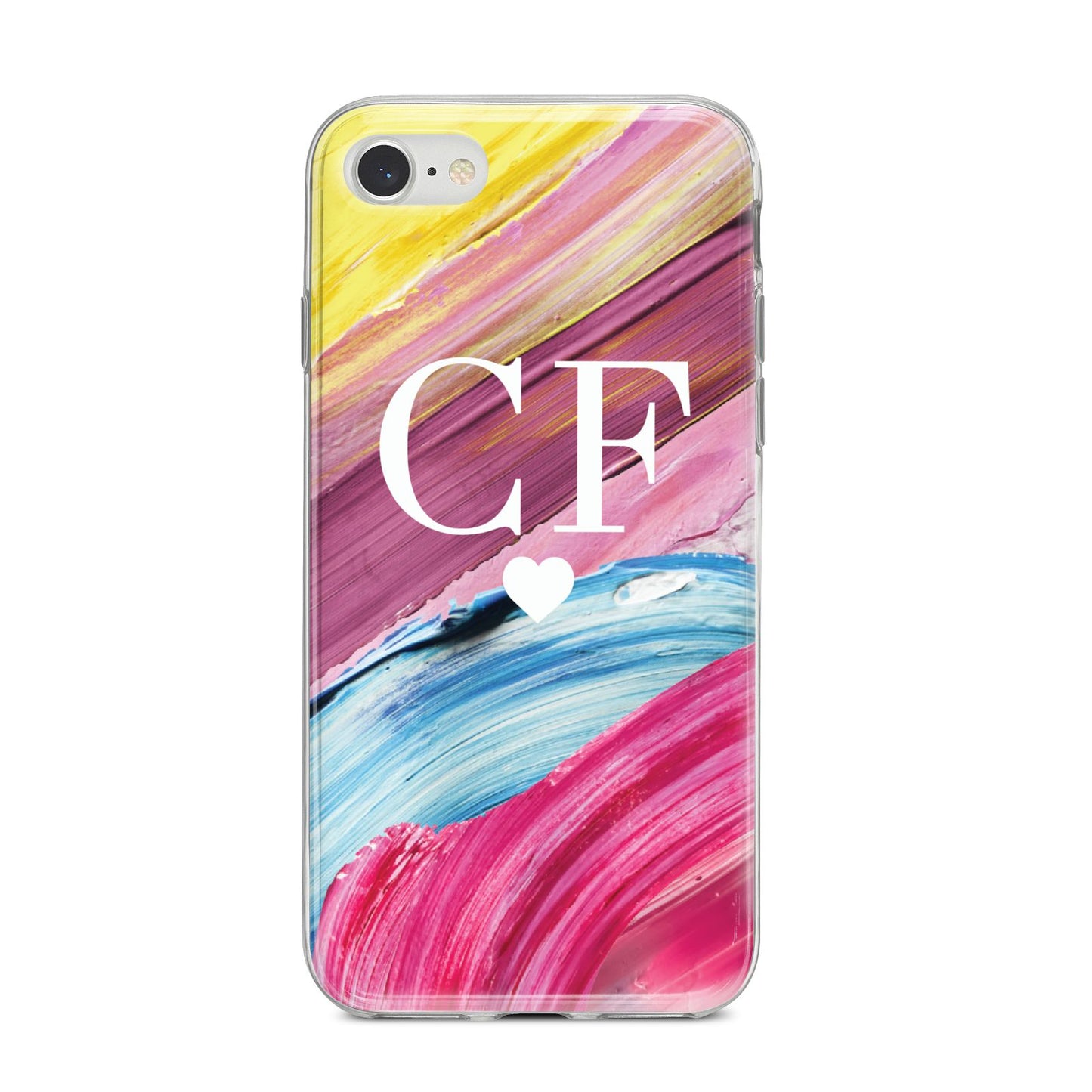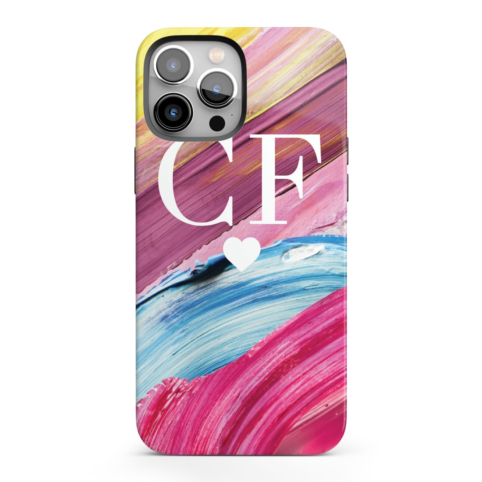 Personalised Pink & Blue Paint Initials Apple iPhone Case