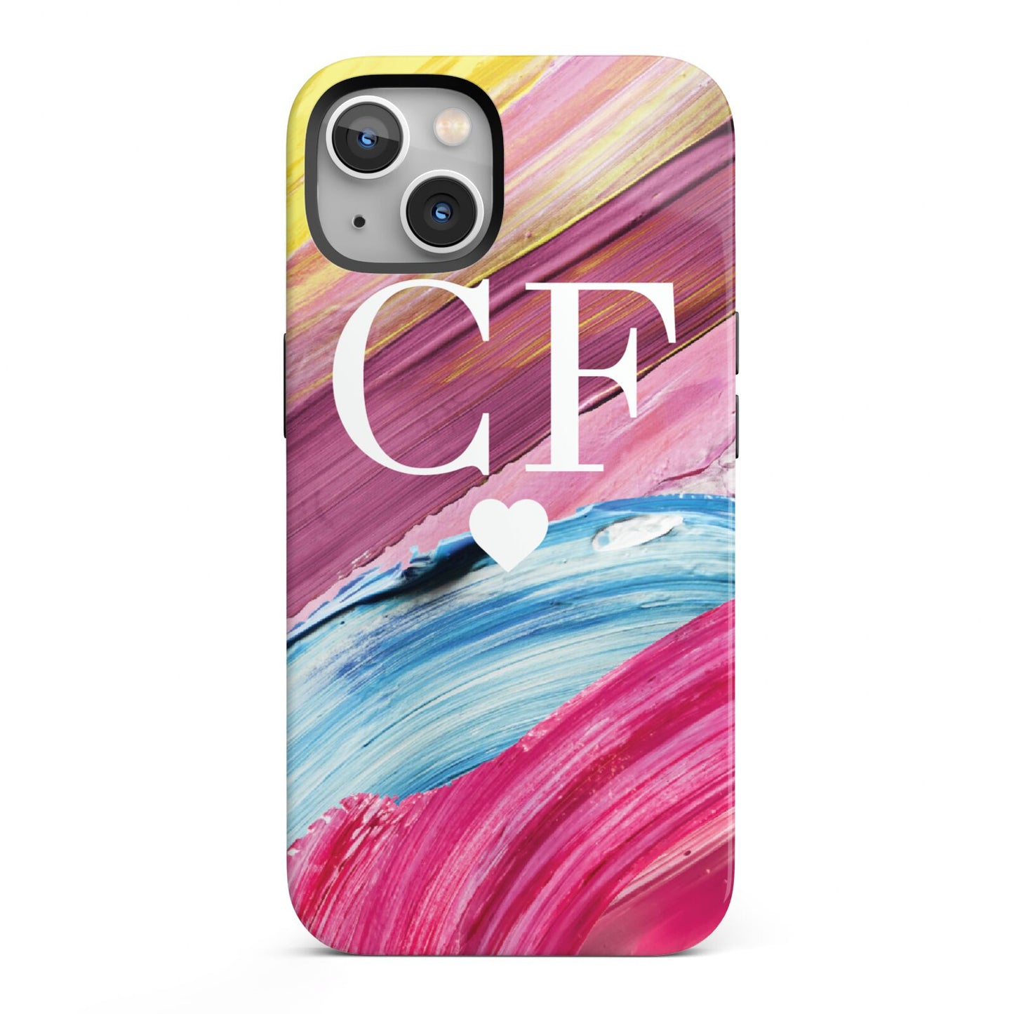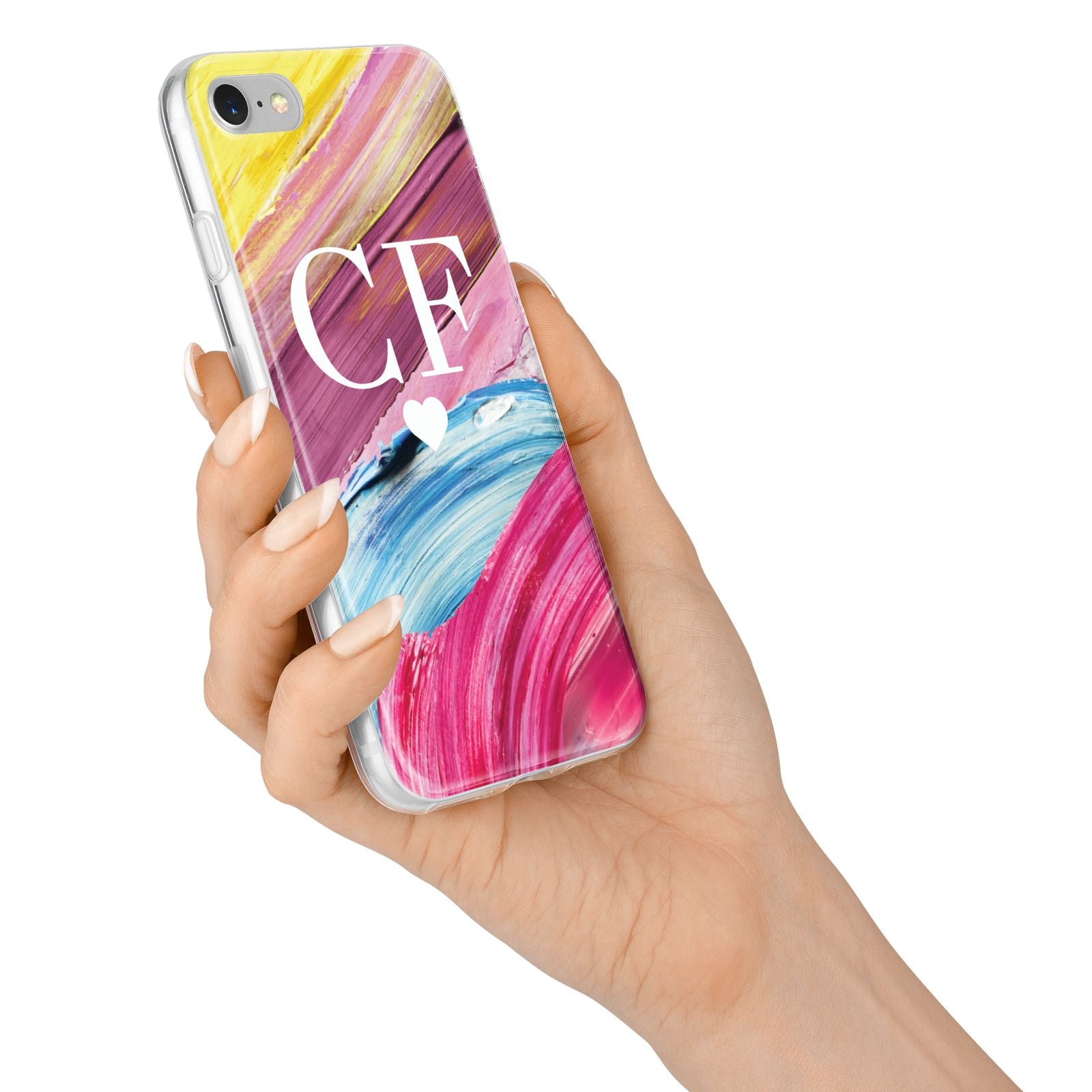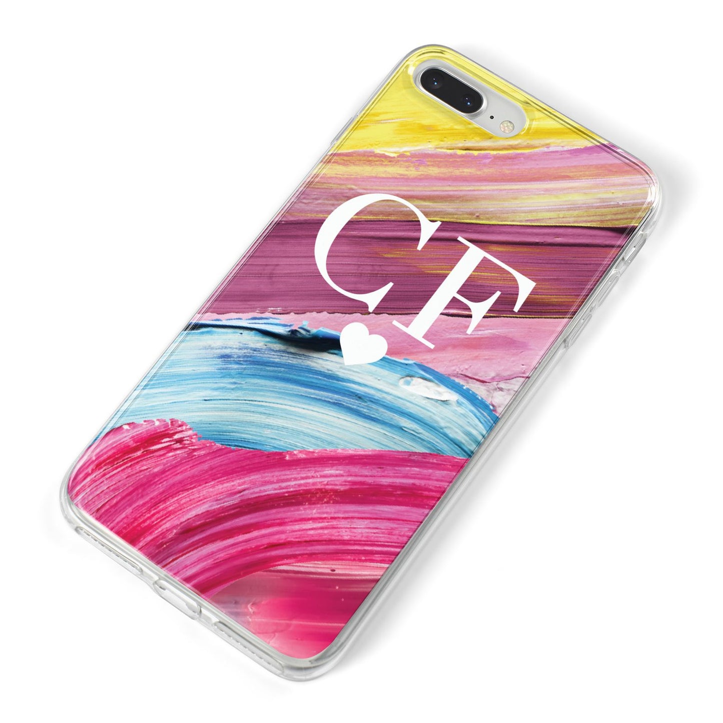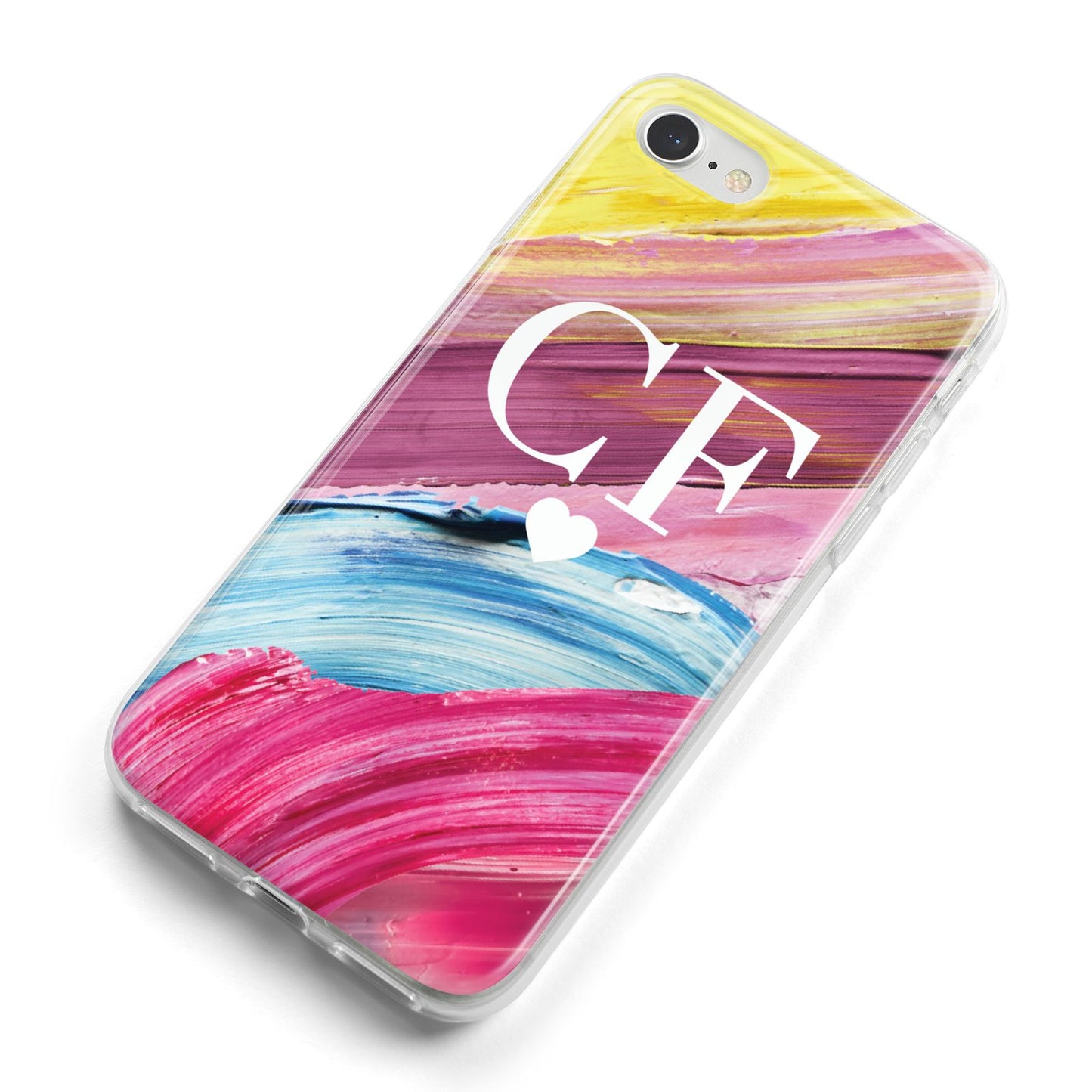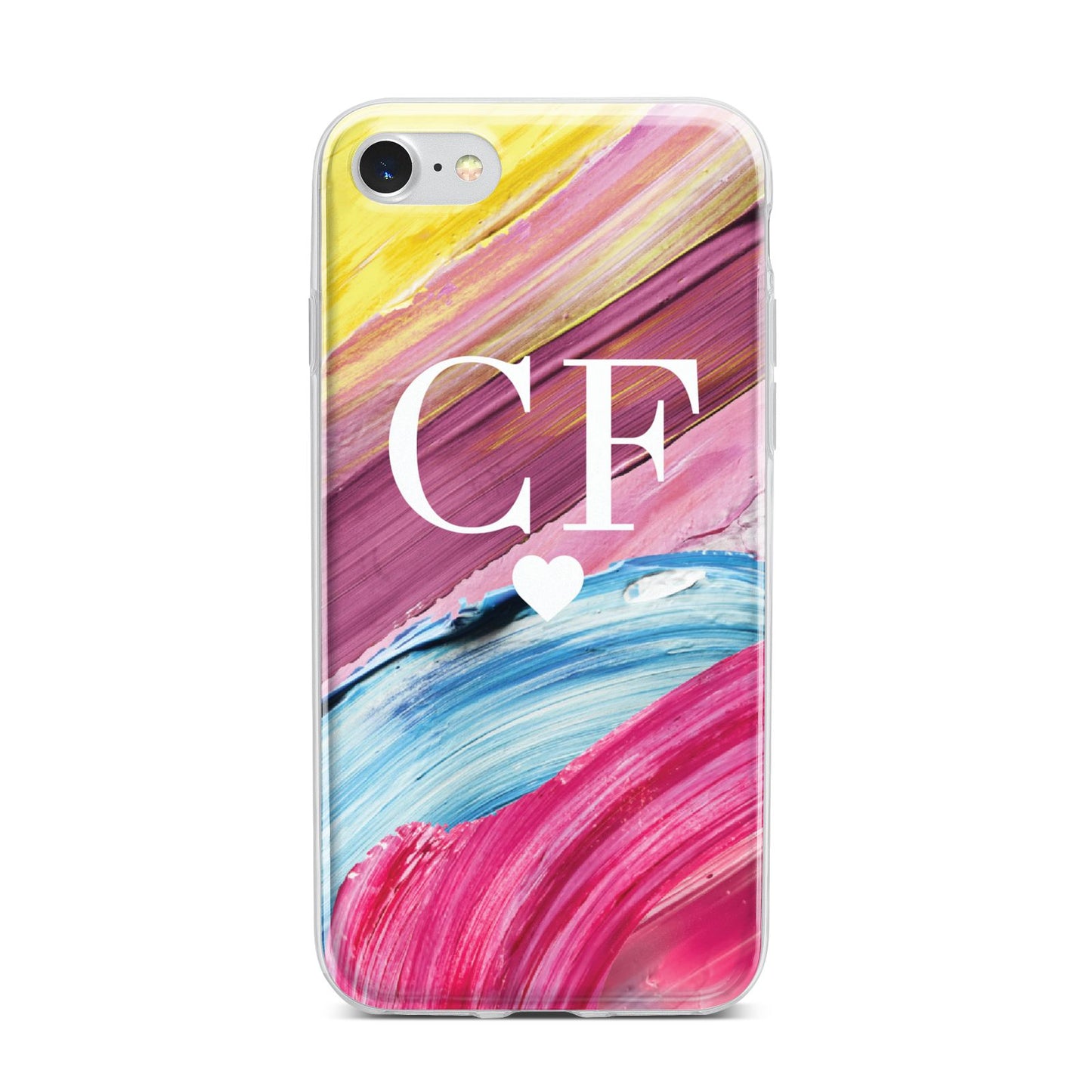 Personalised Pink & Blue Paint Initials Apple iPhone Case