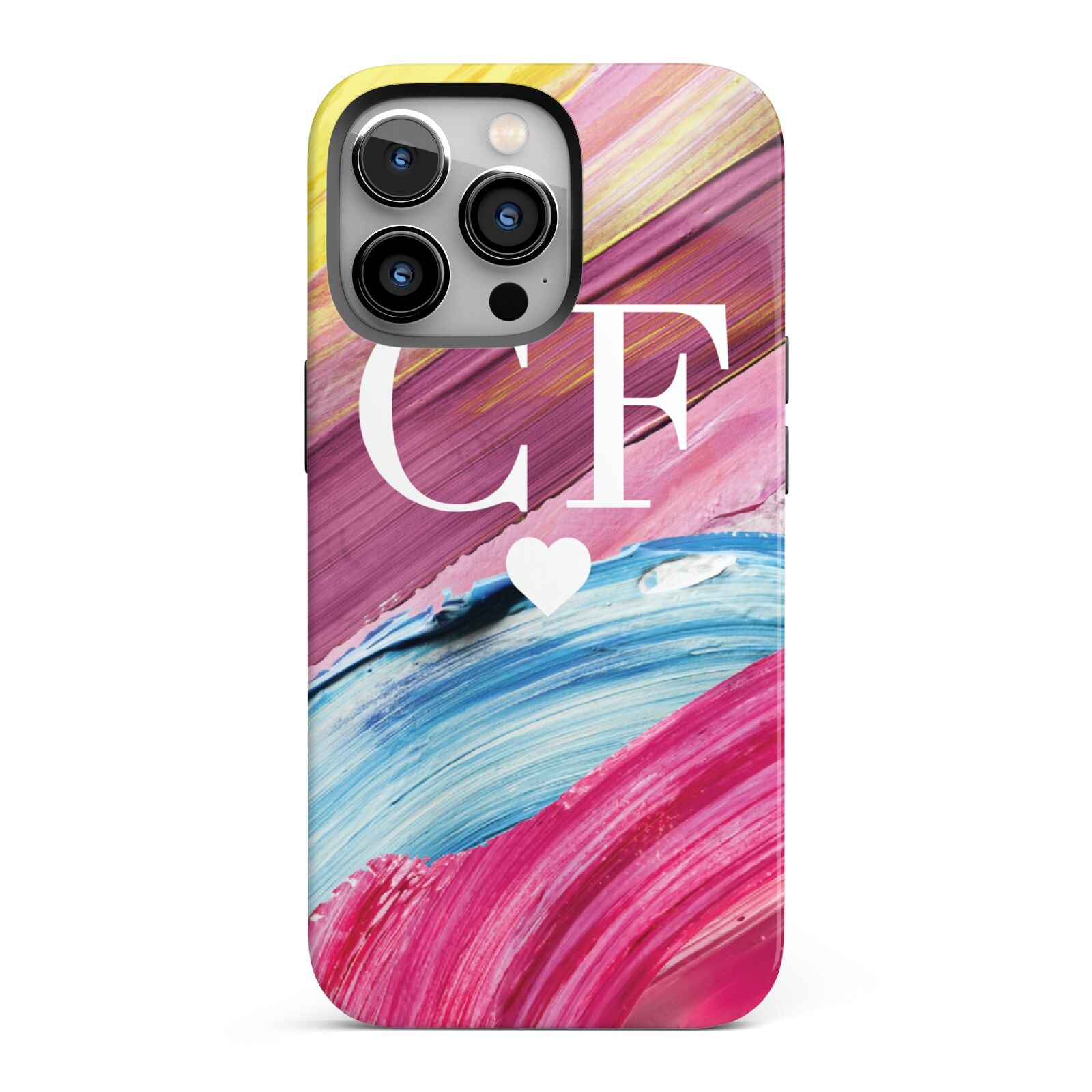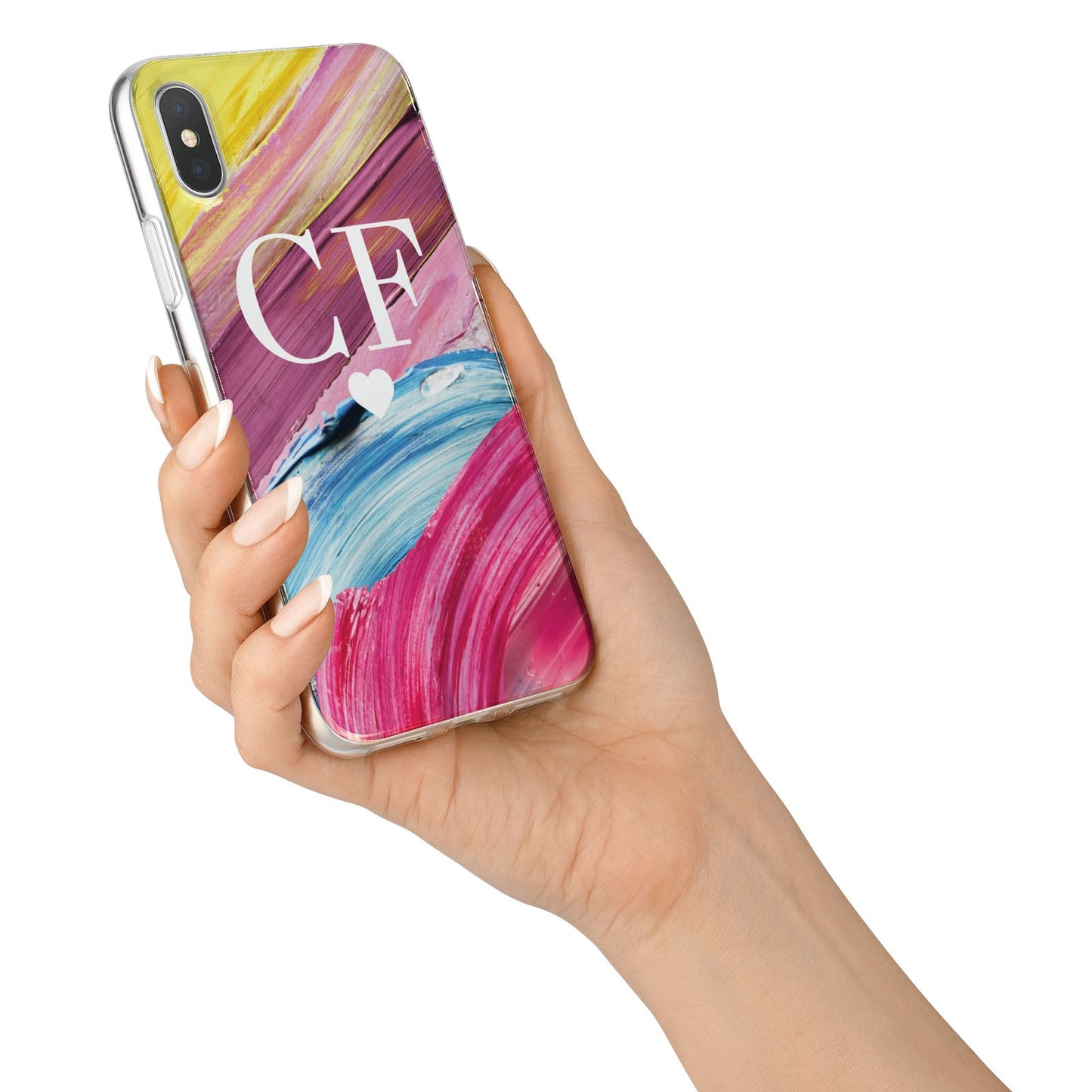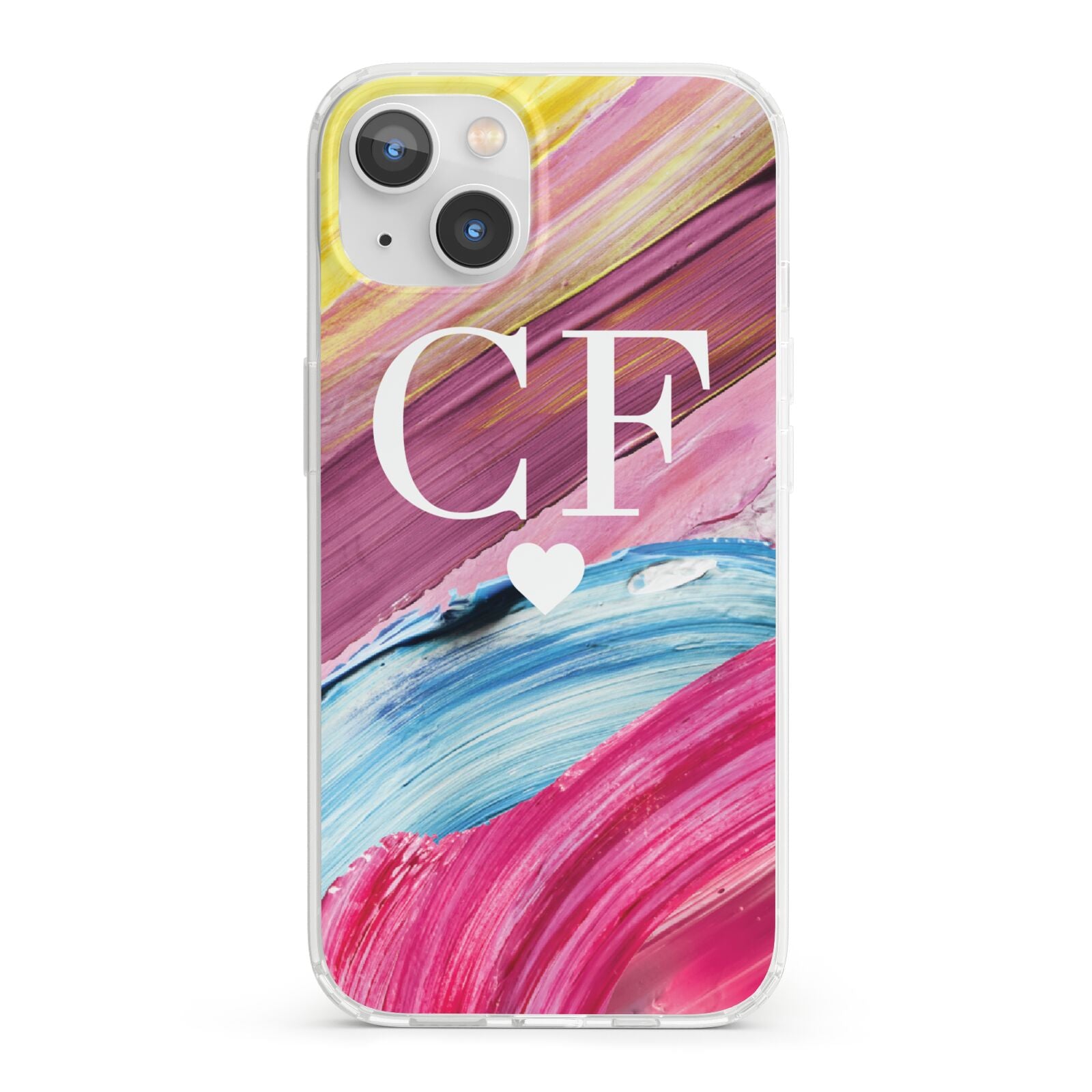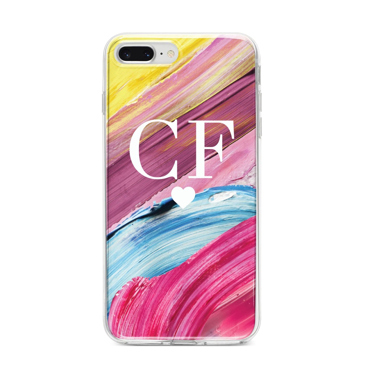 Personalised Pink & Blue Paint Initials Apple iPhone Case