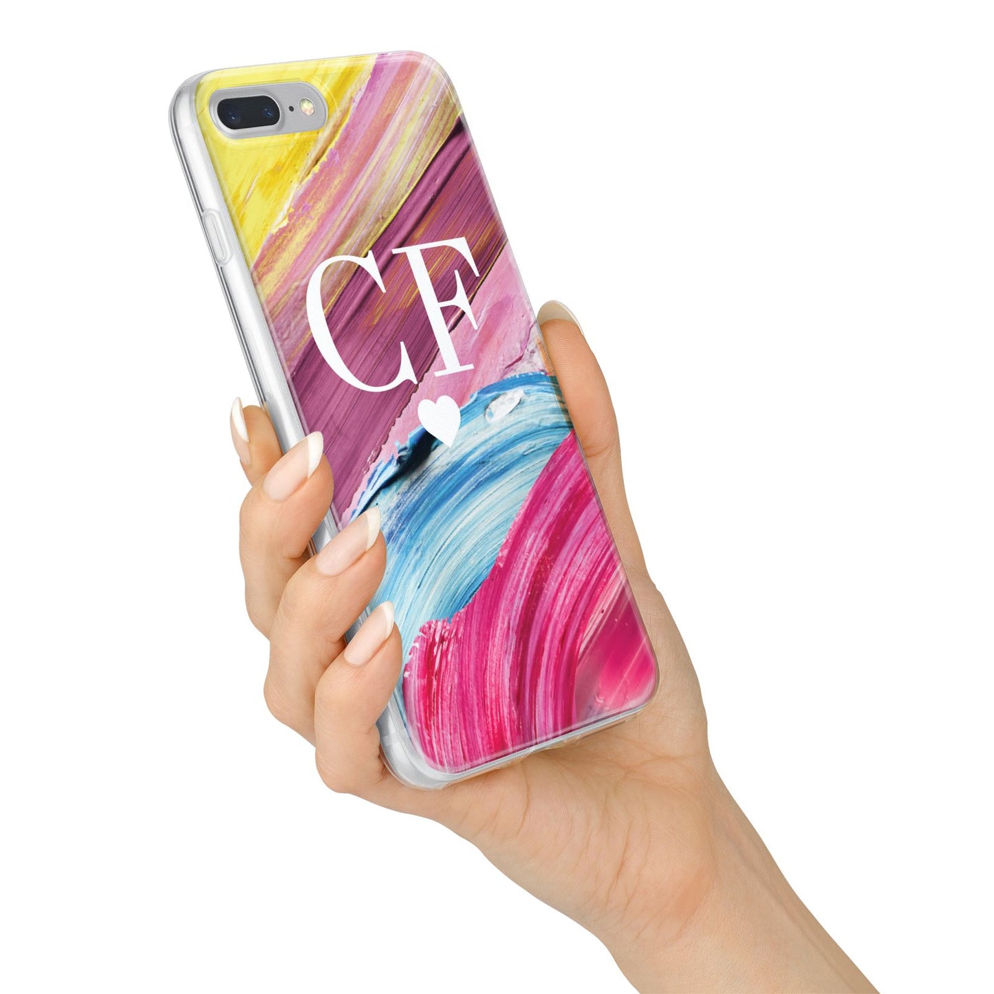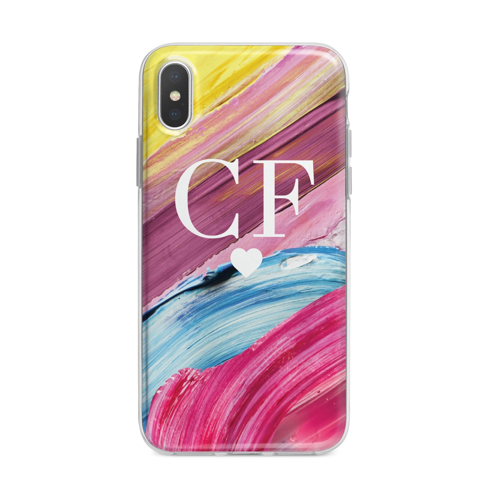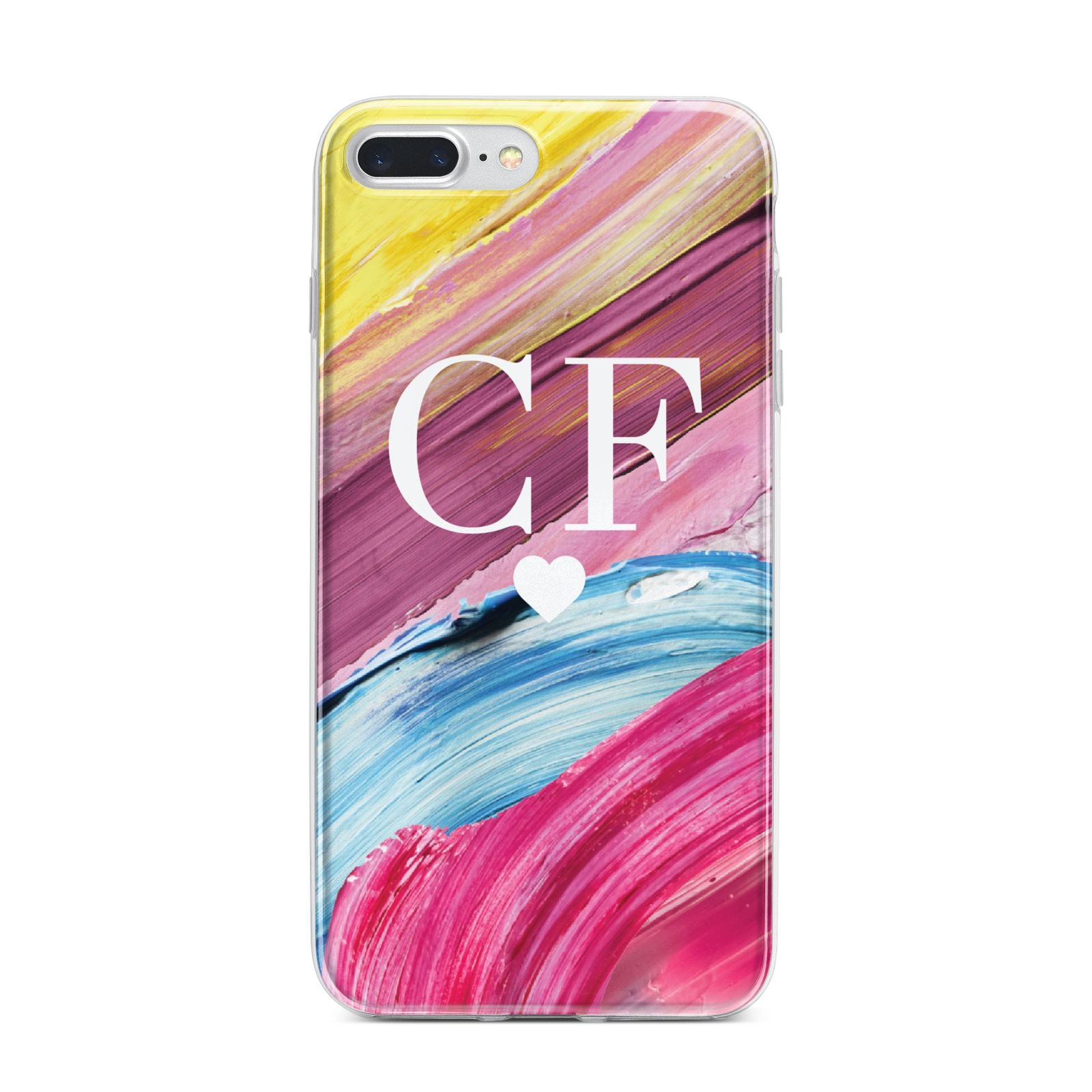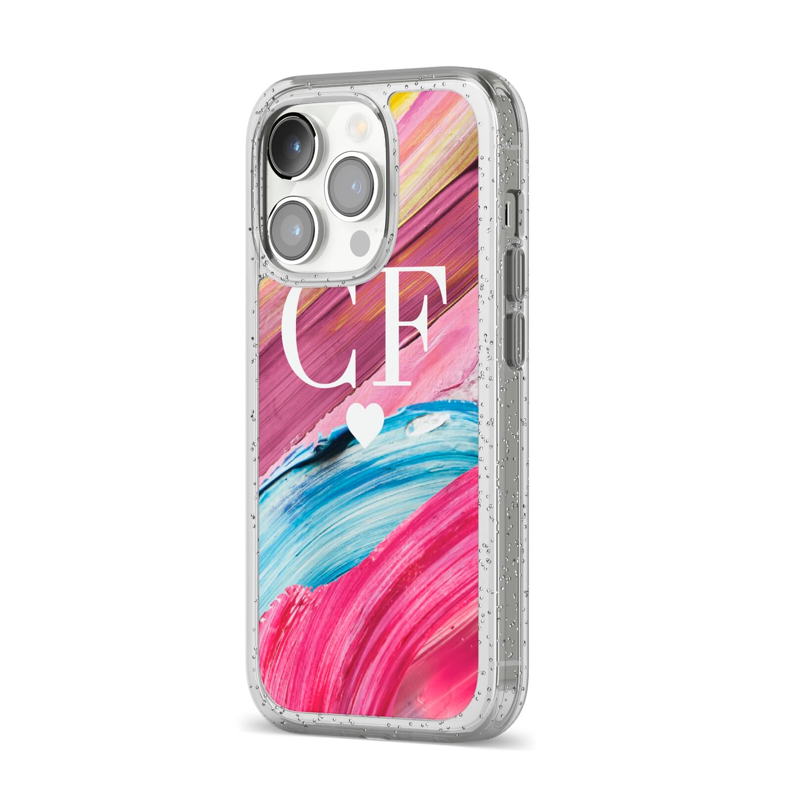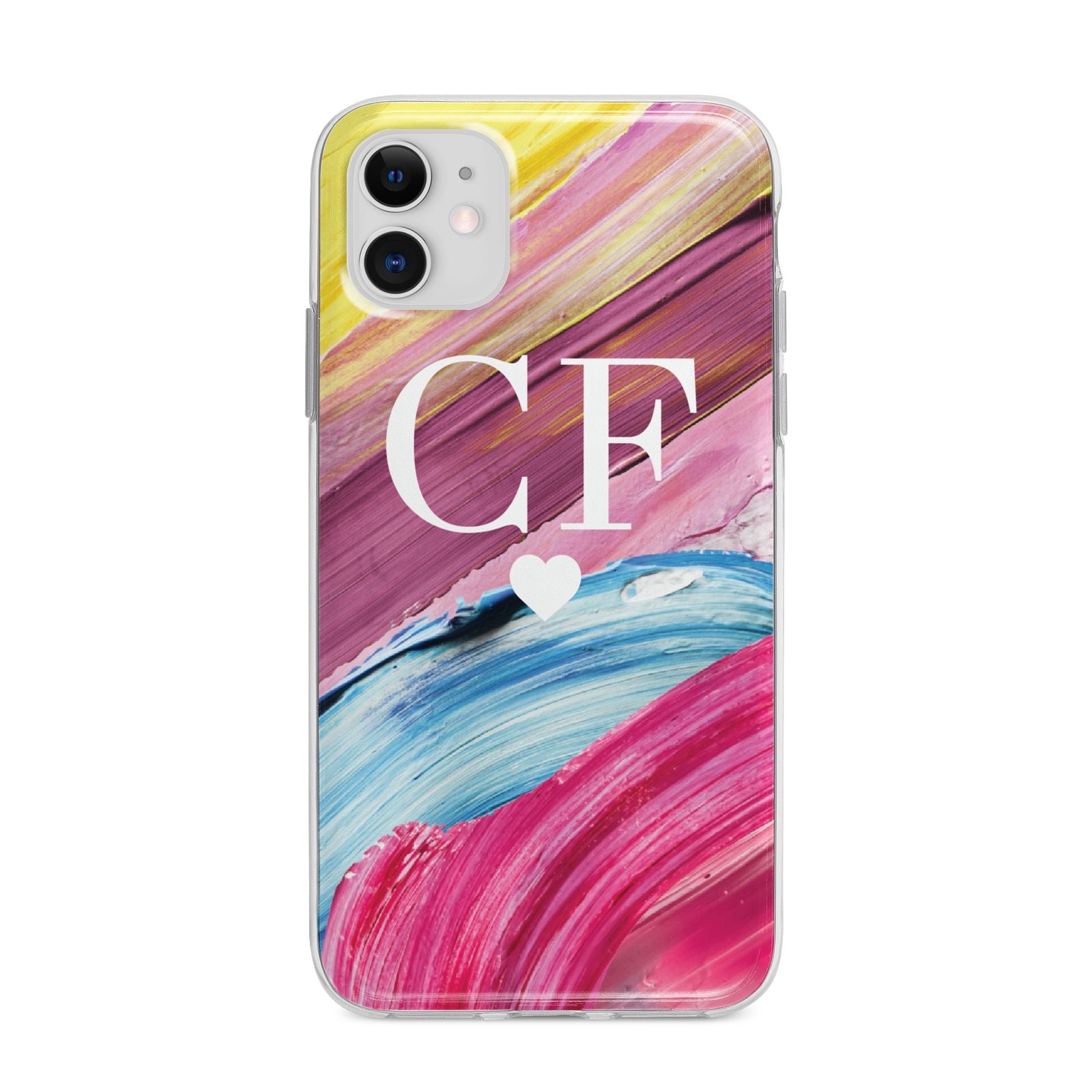 Personalised Pink & Blue Paint Initials Apple iPhone Case