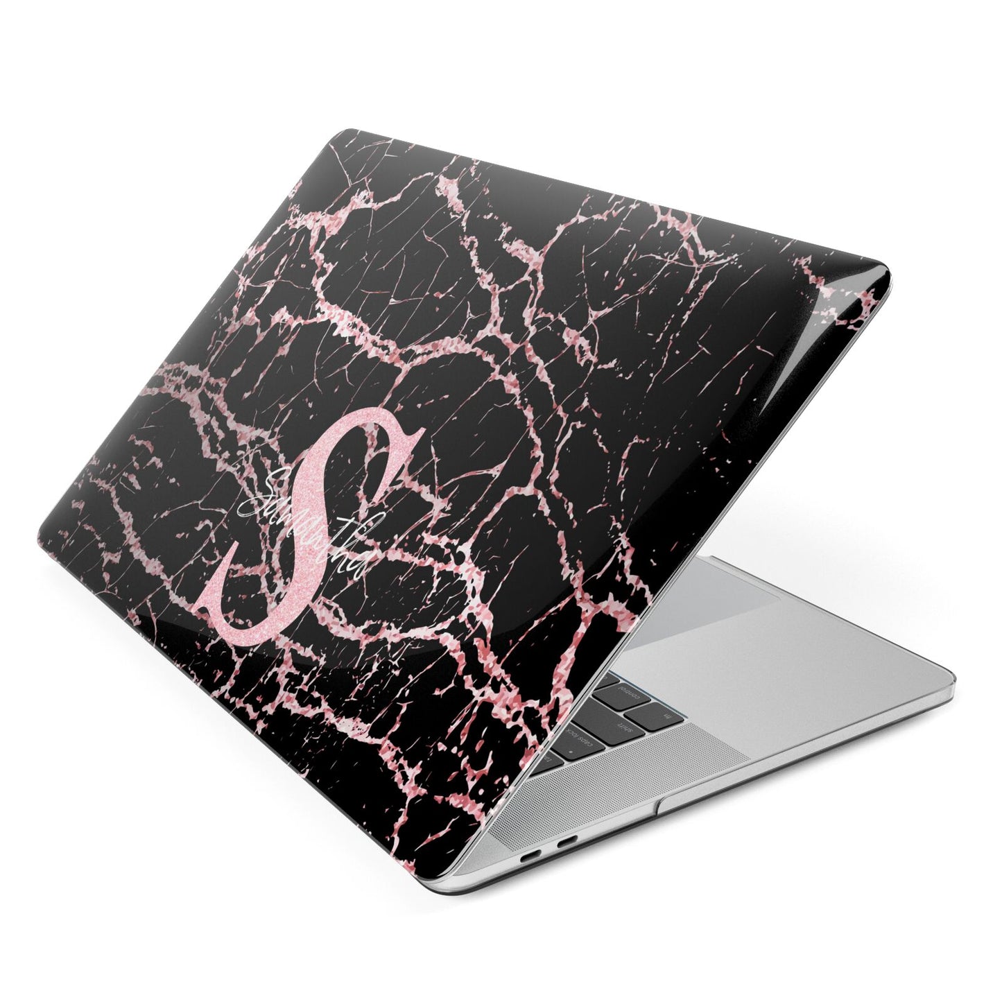 Personalised Pink Cracked Marble Glitter Initial Macbook Case