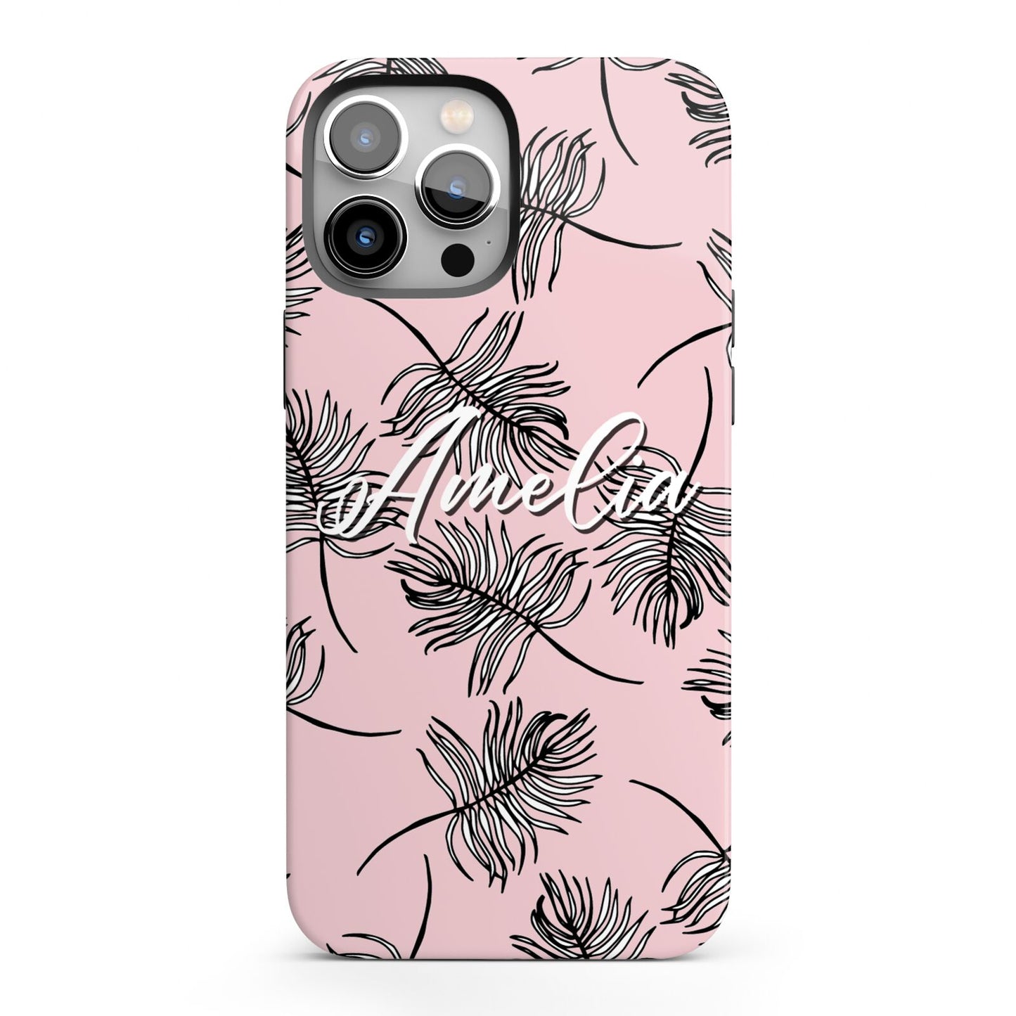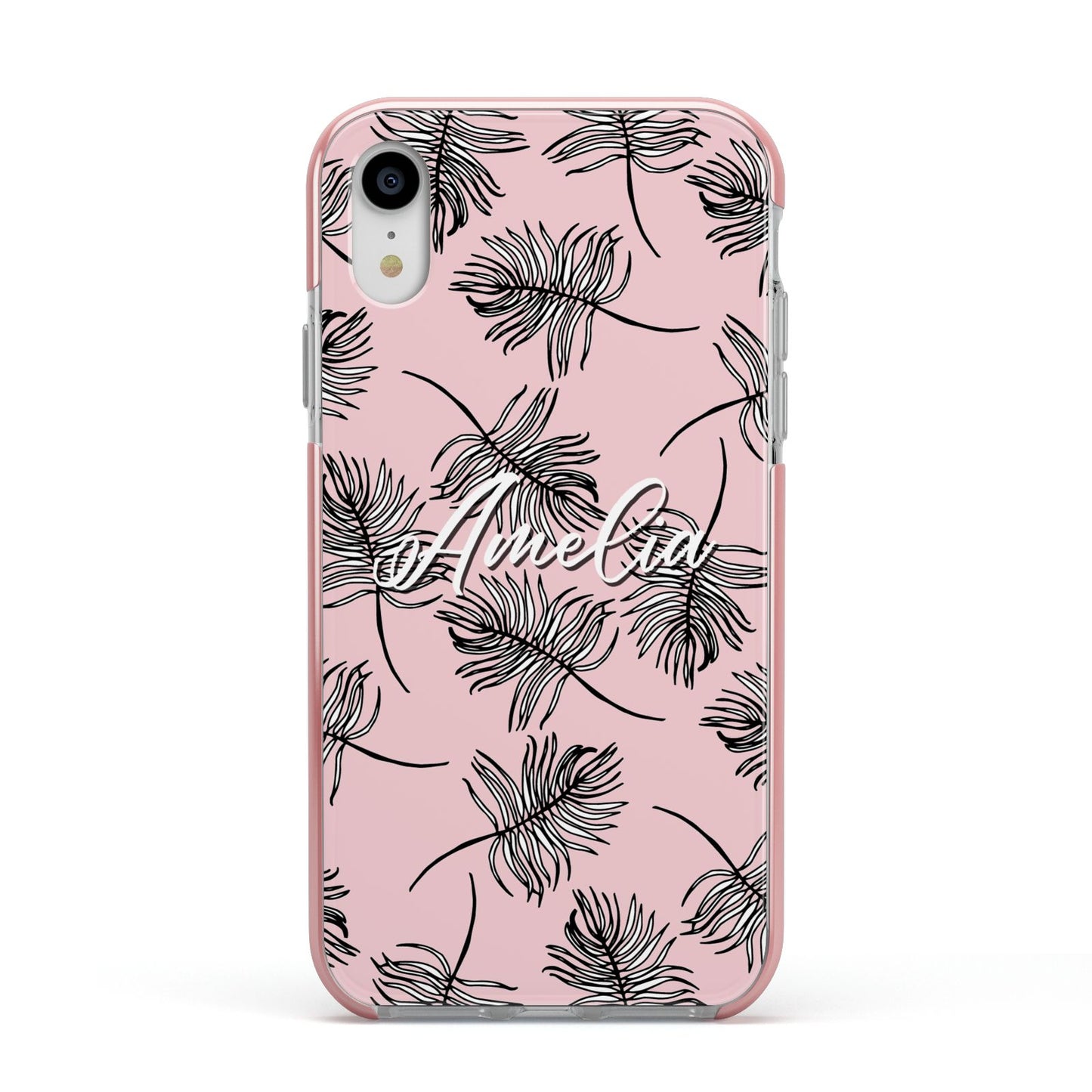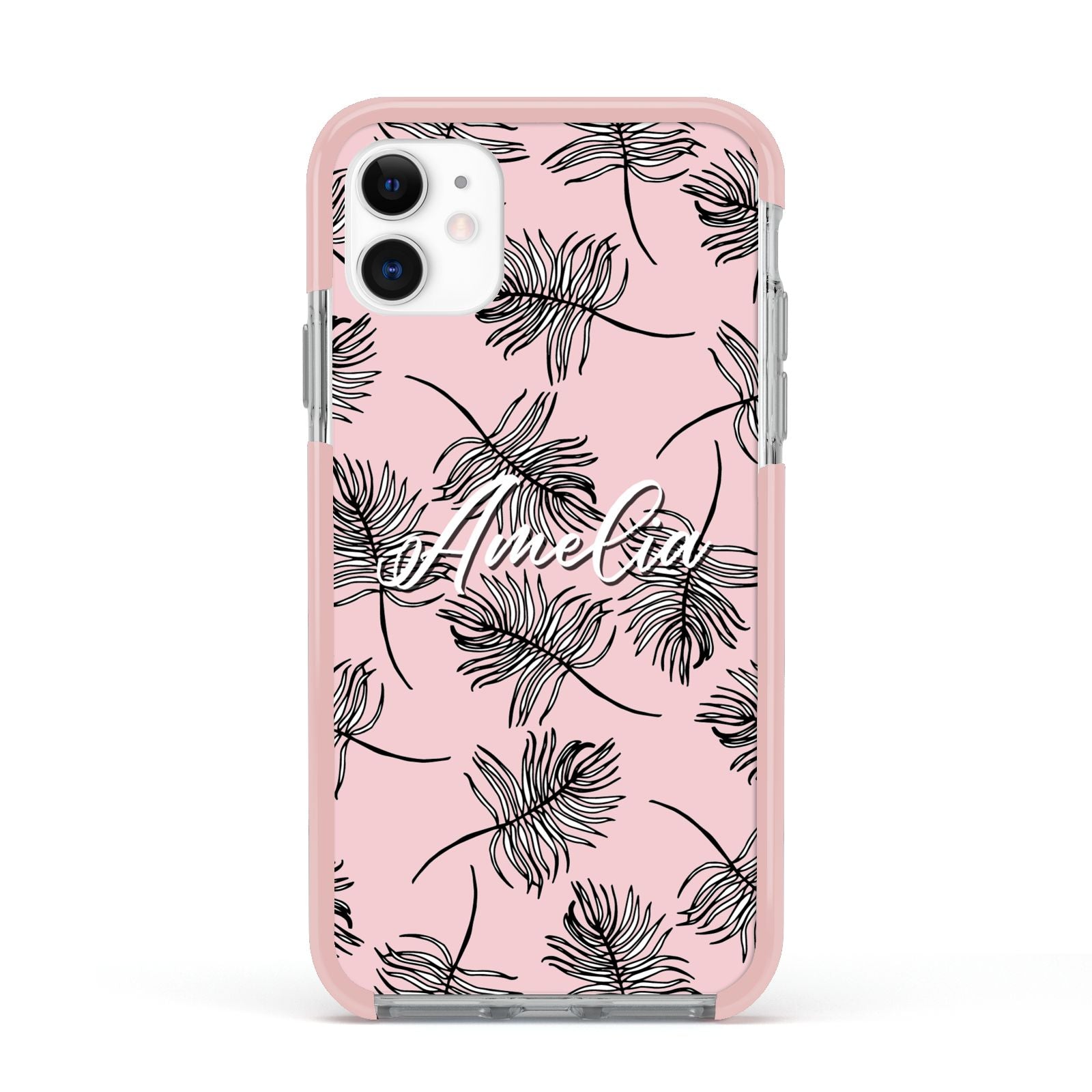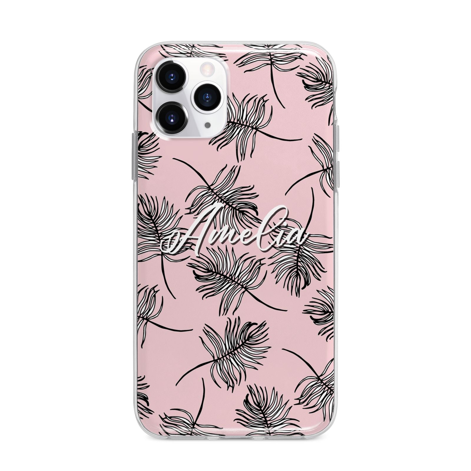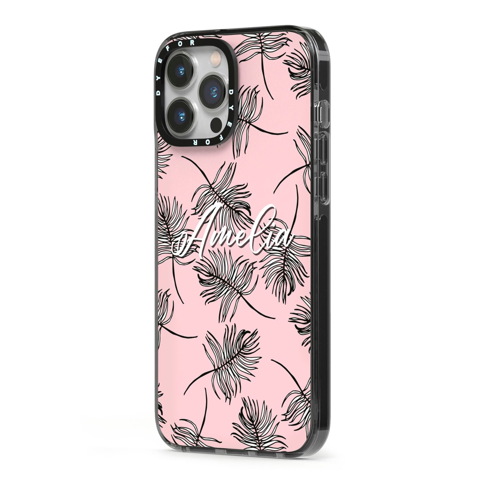 Personalised Pink Monochrome Tropical Leaf Apple iPhone Case