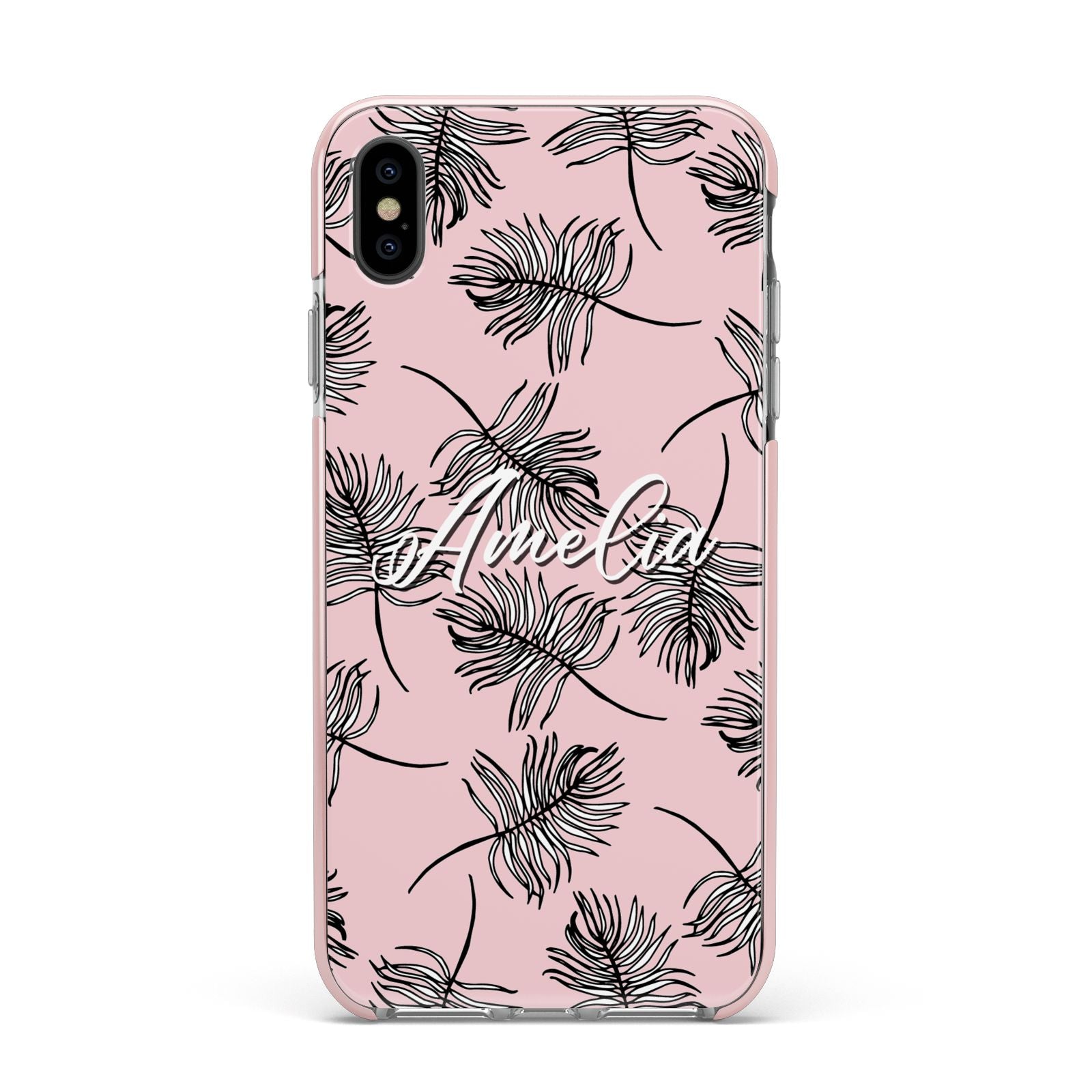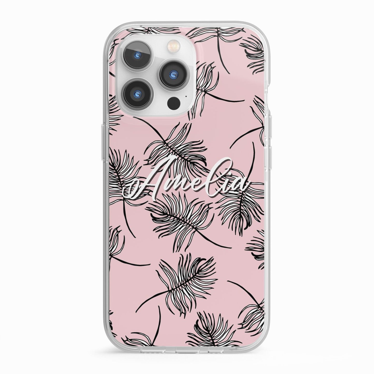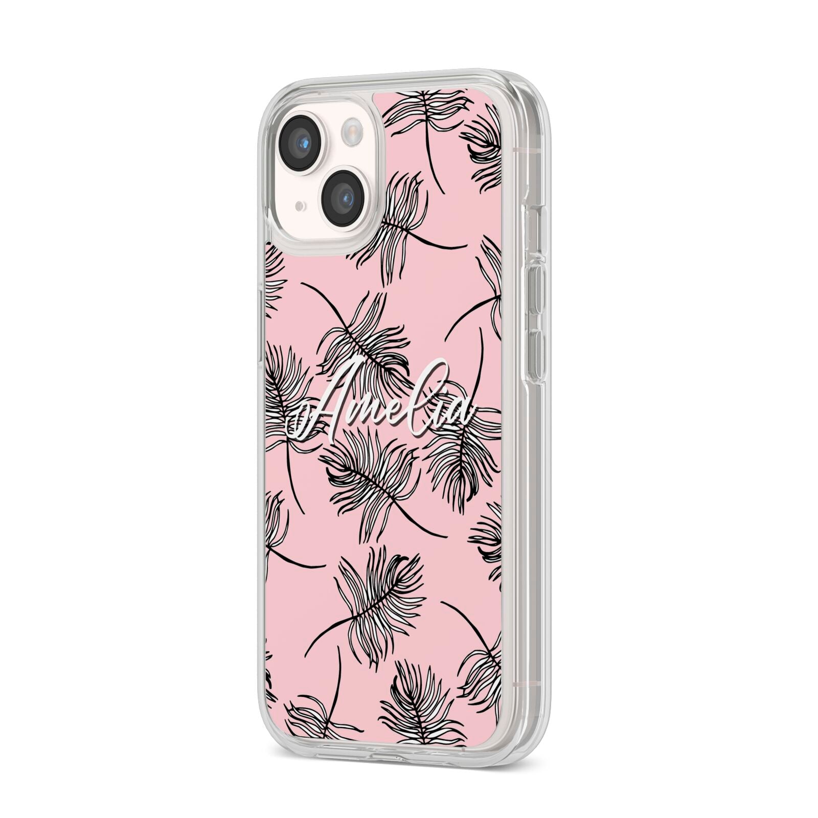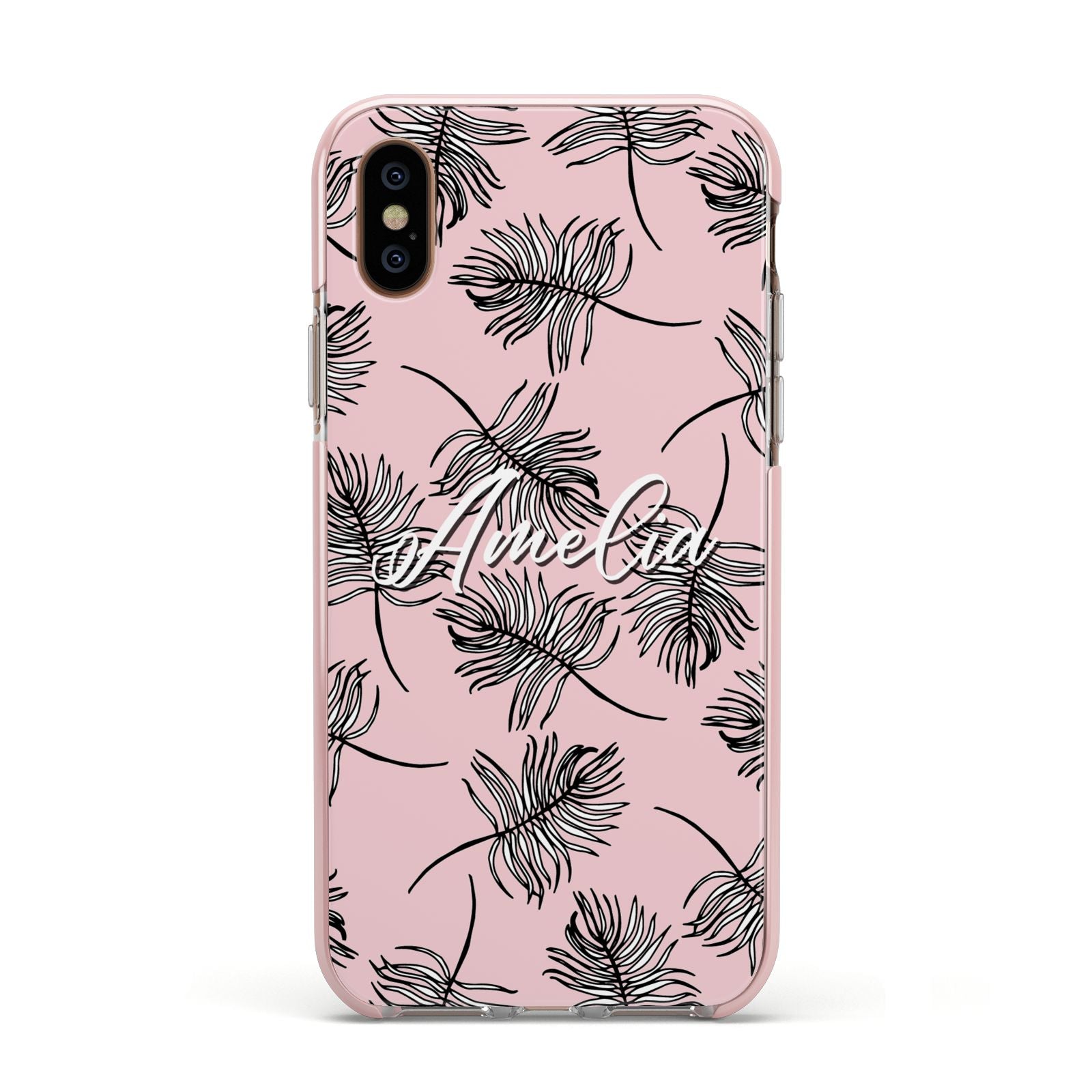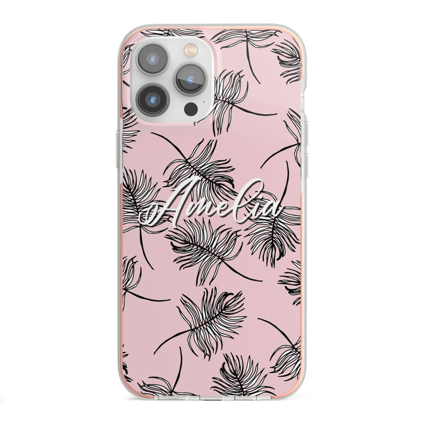 Personalised Pink Monochrome Tropical Leaf Apple iPhone Case