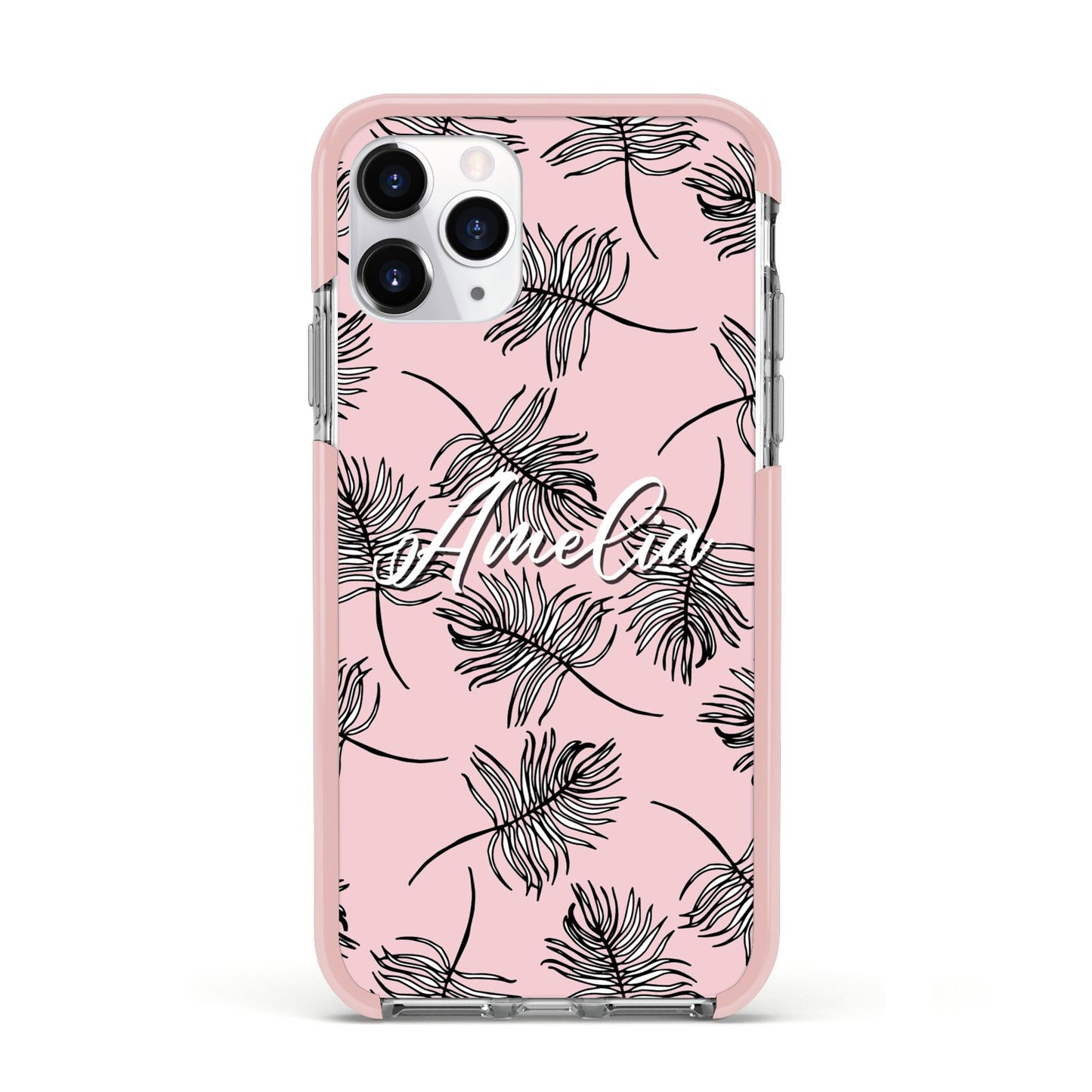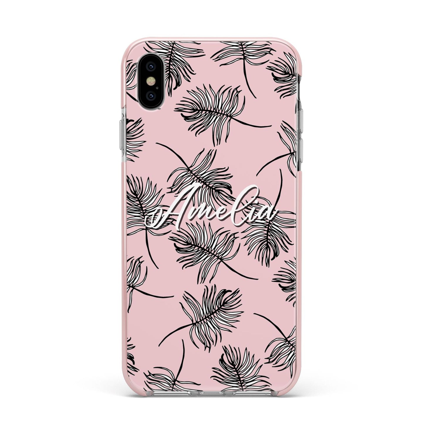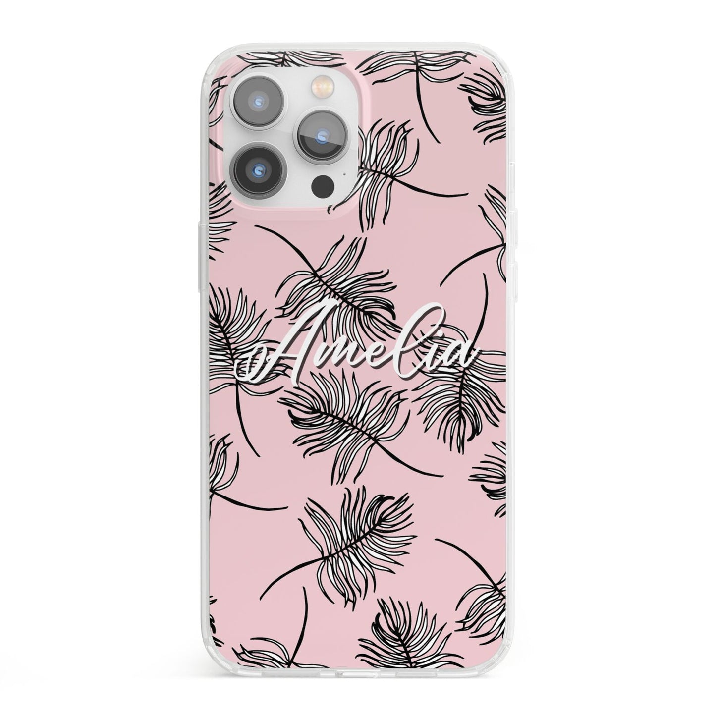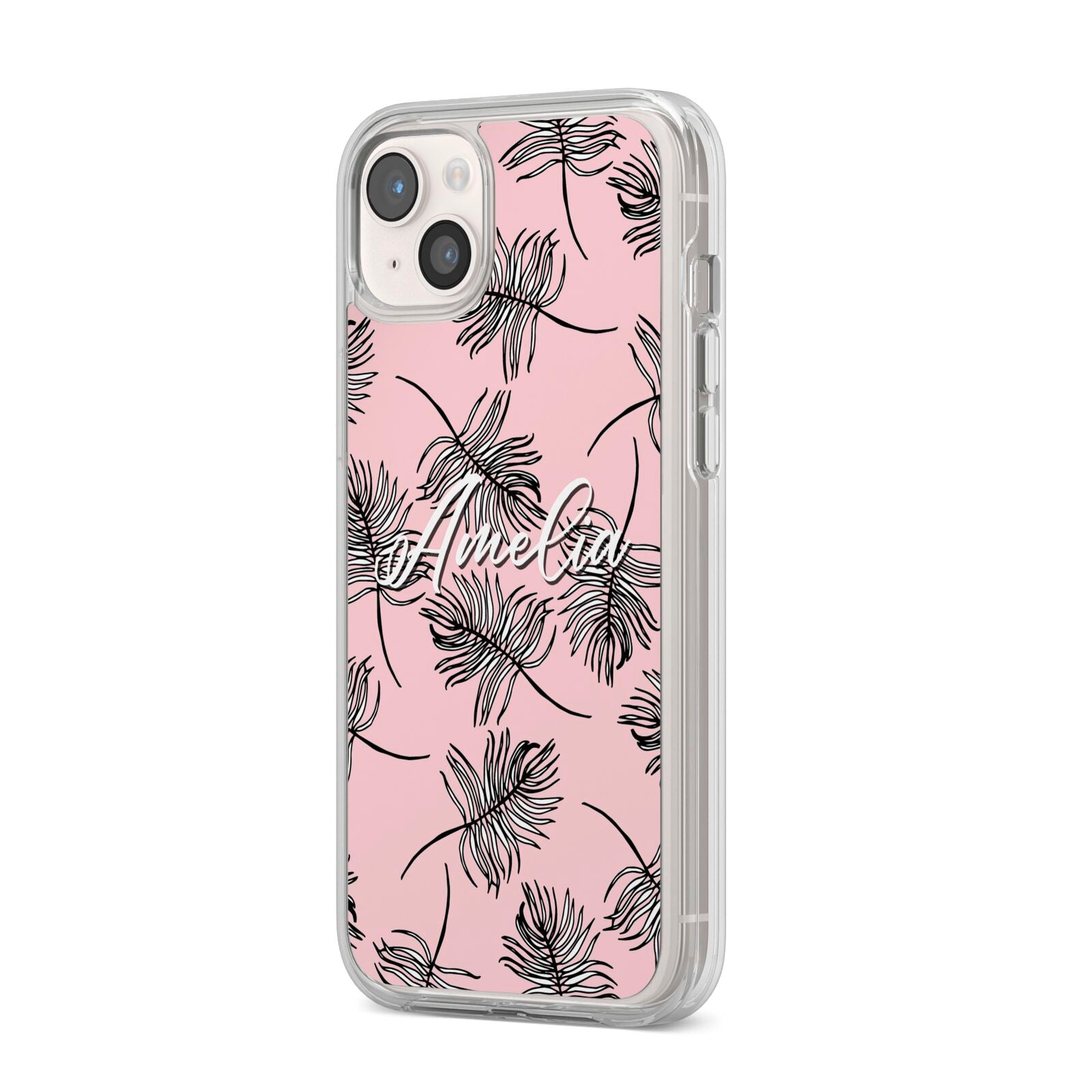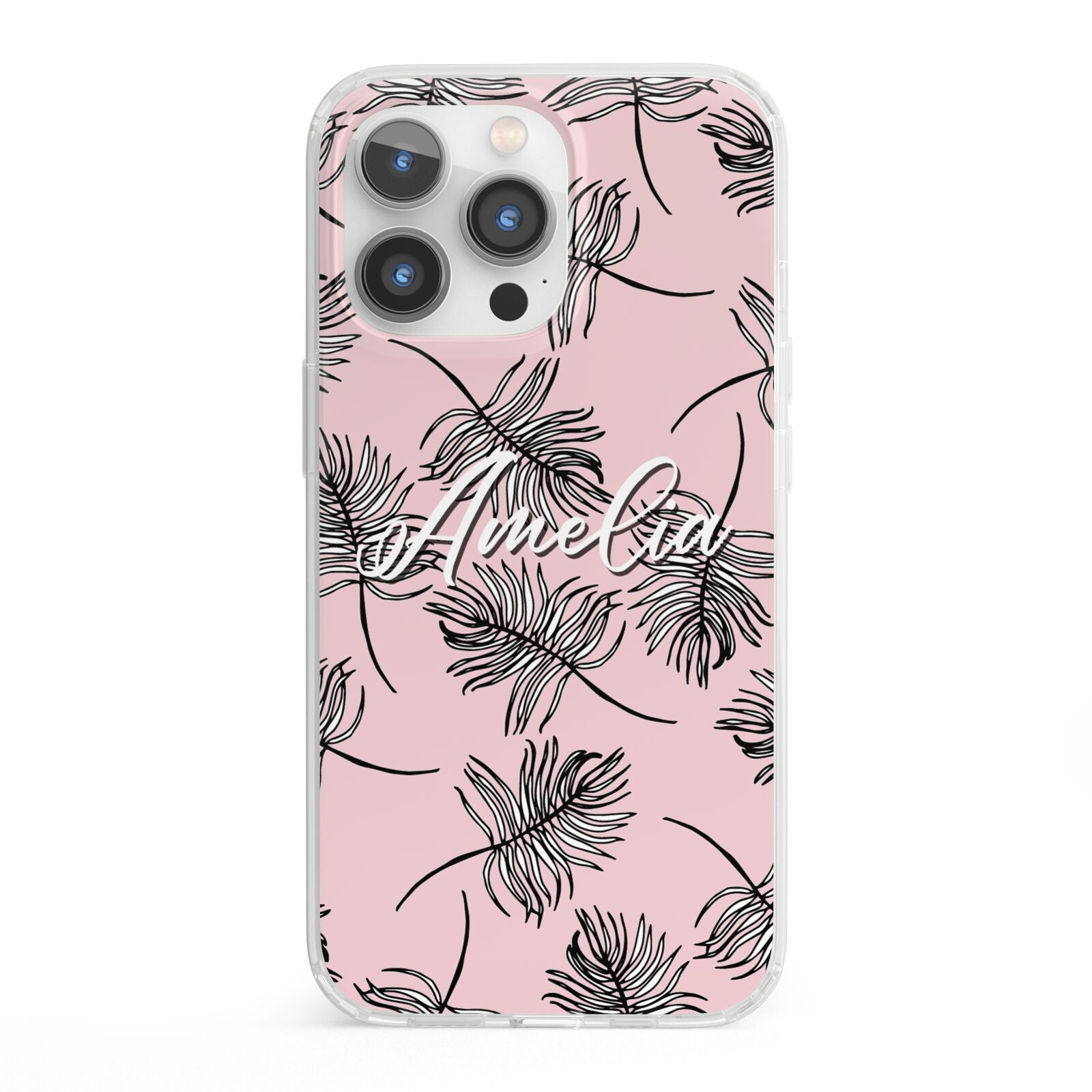 Personalised Pink Monochrome Tropical Leaf Apple iPhone Case