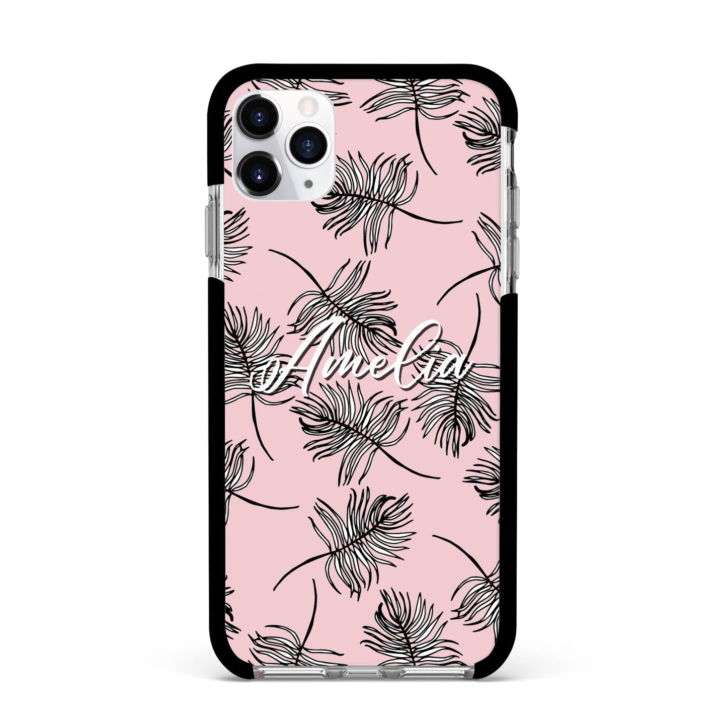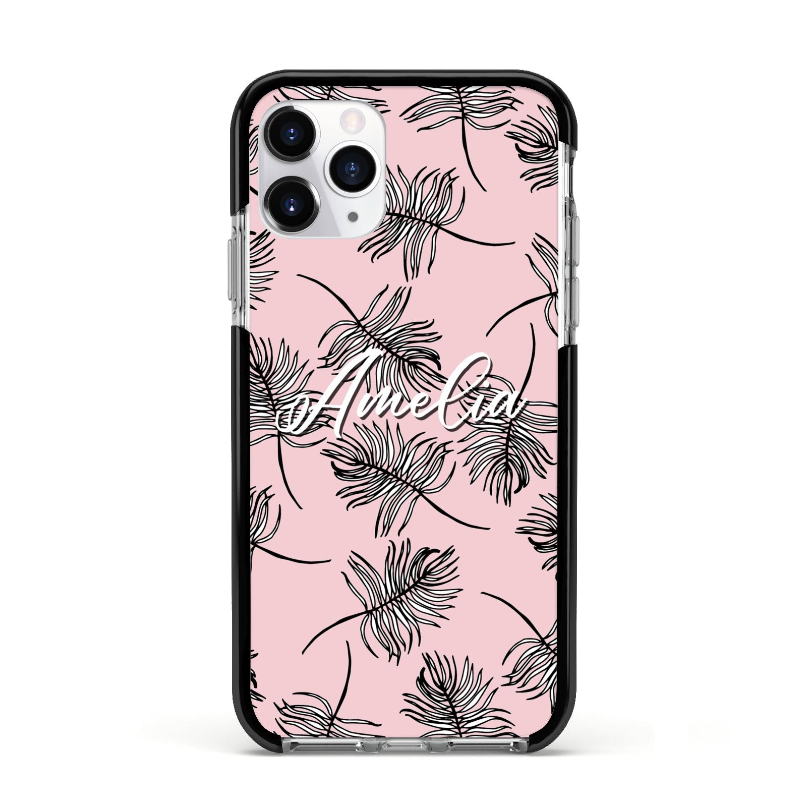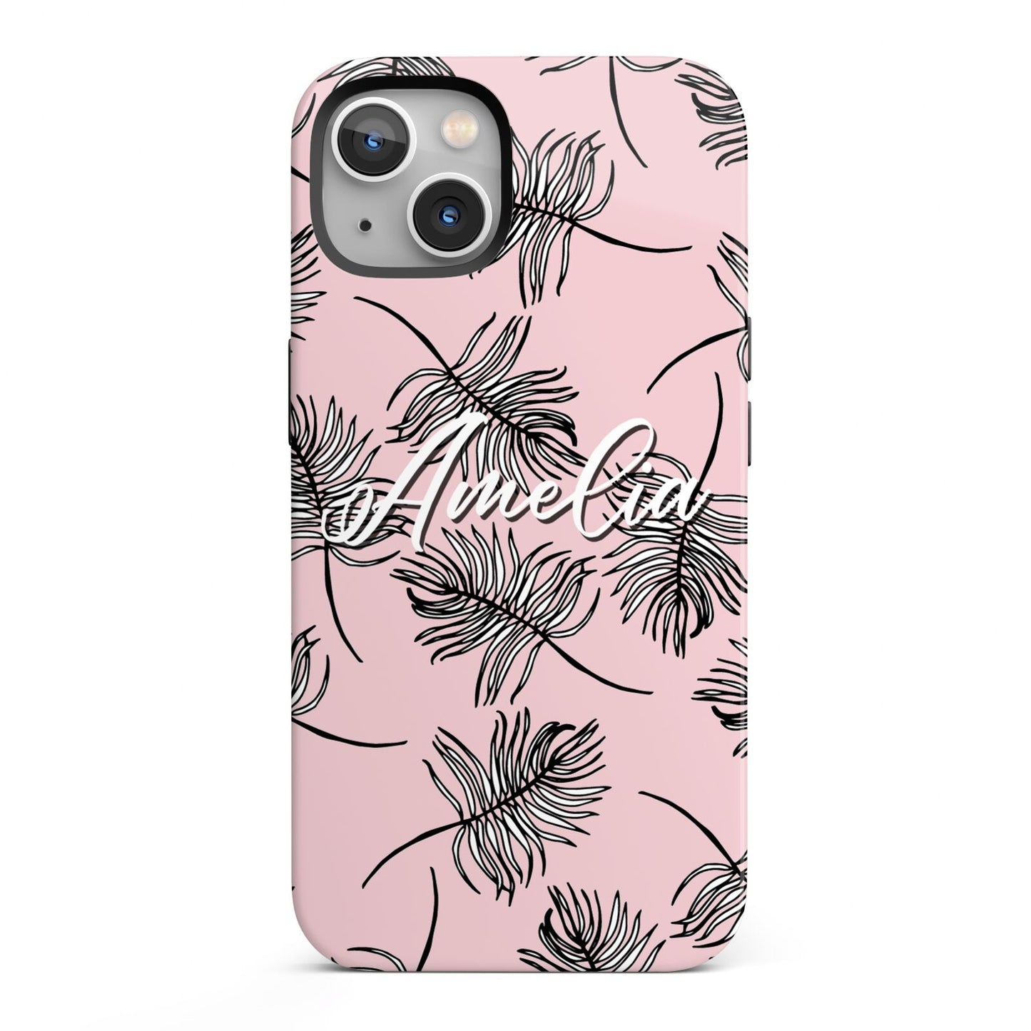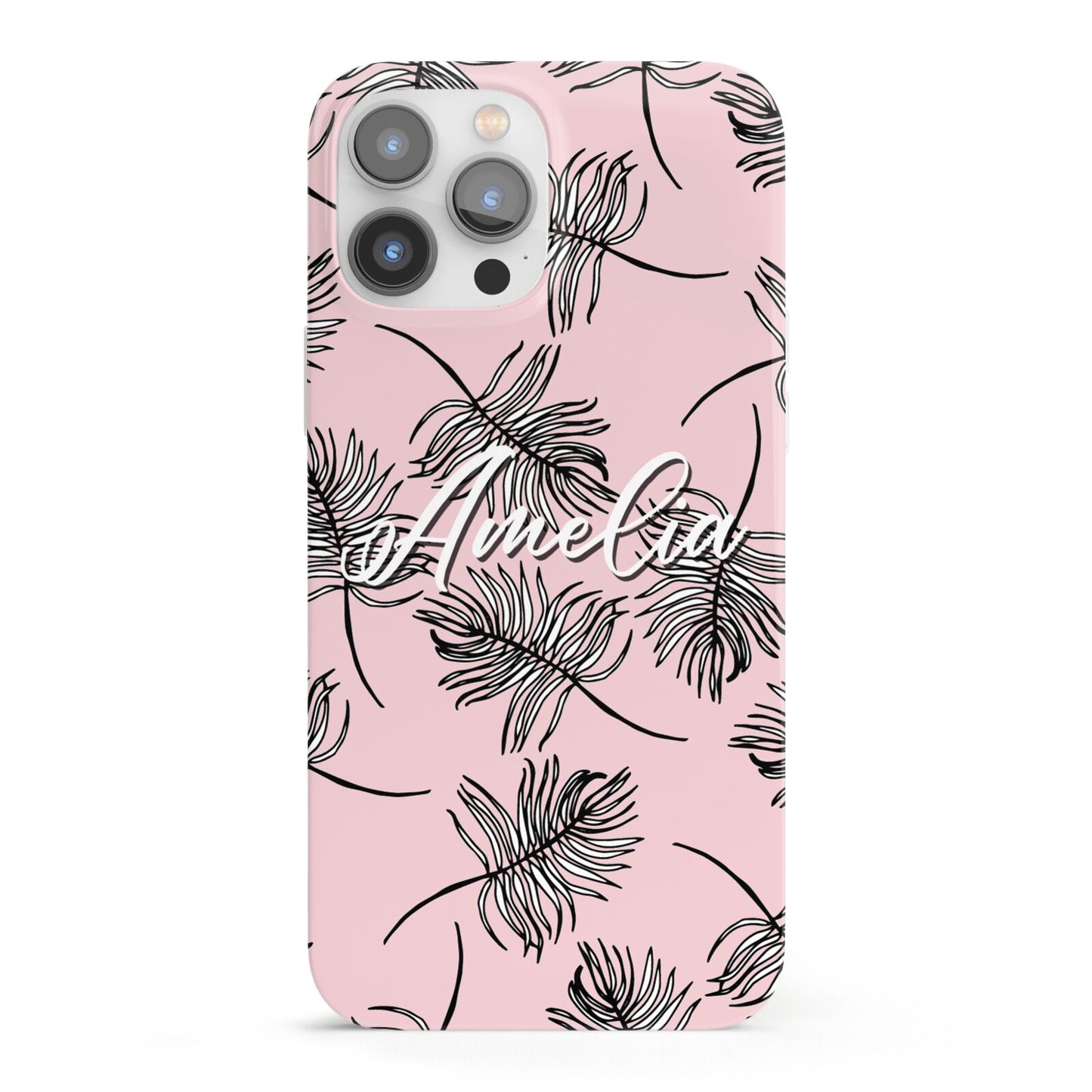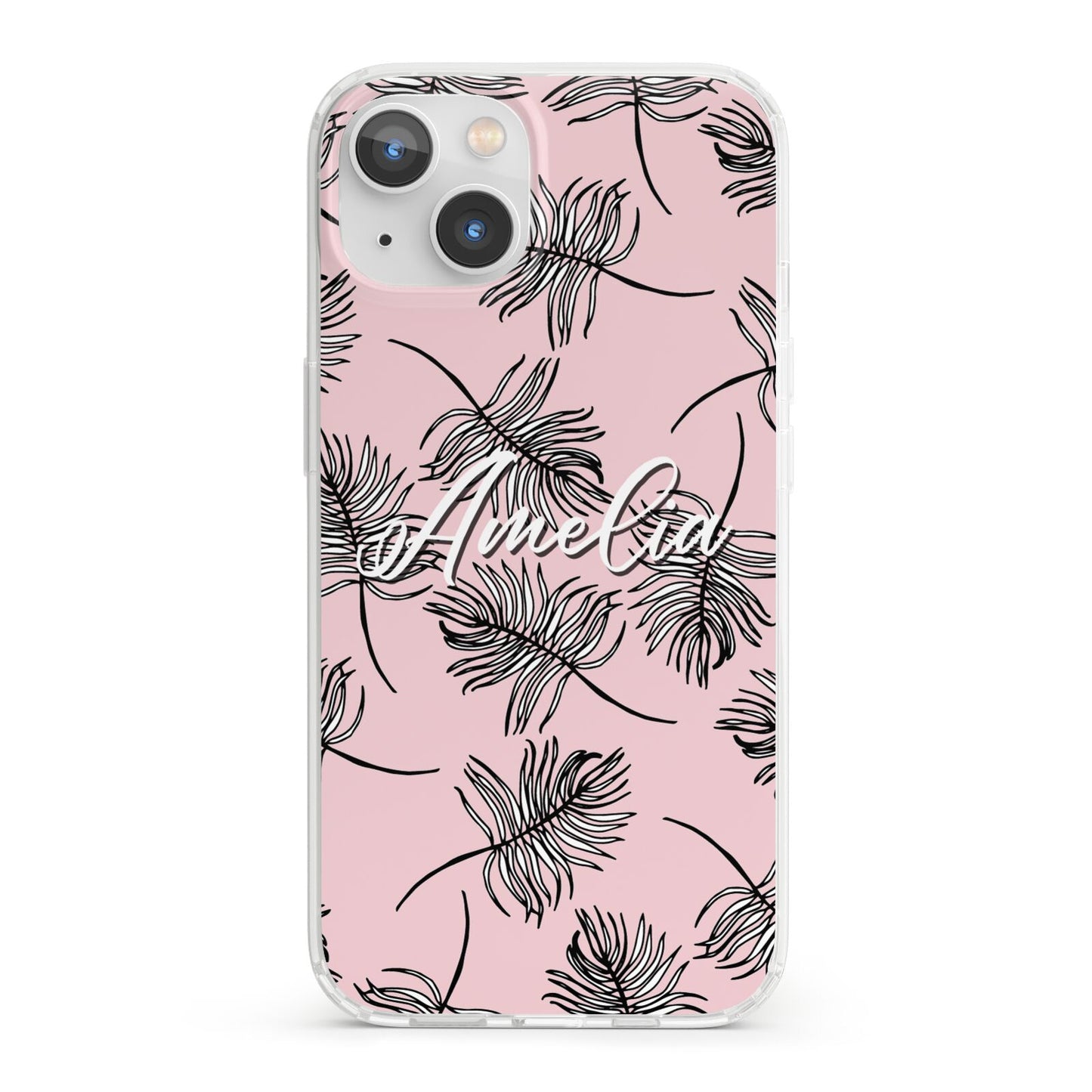 Personalised Pink Monochrome Tropical Leaf Apple iPhone Case