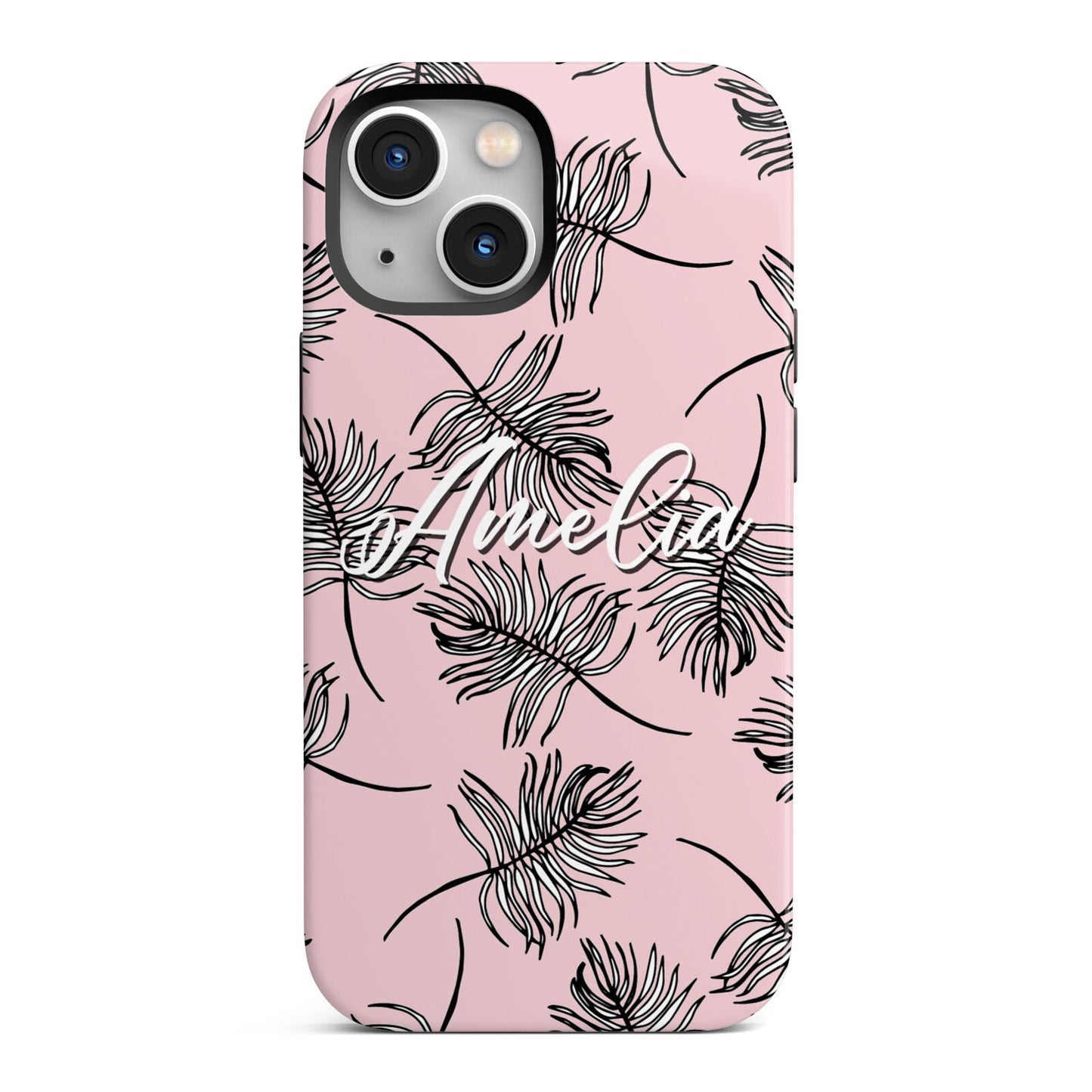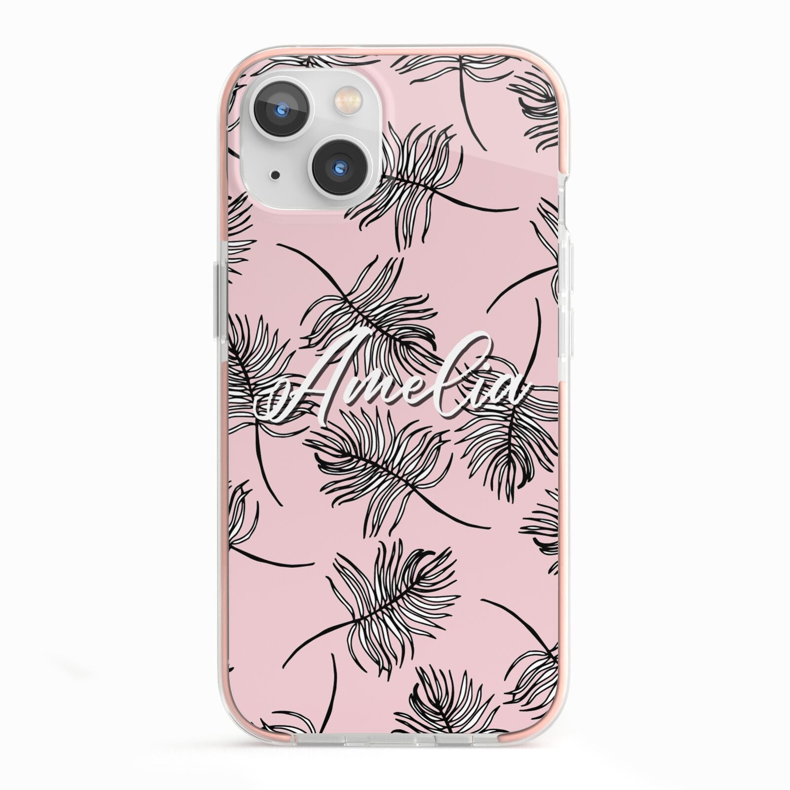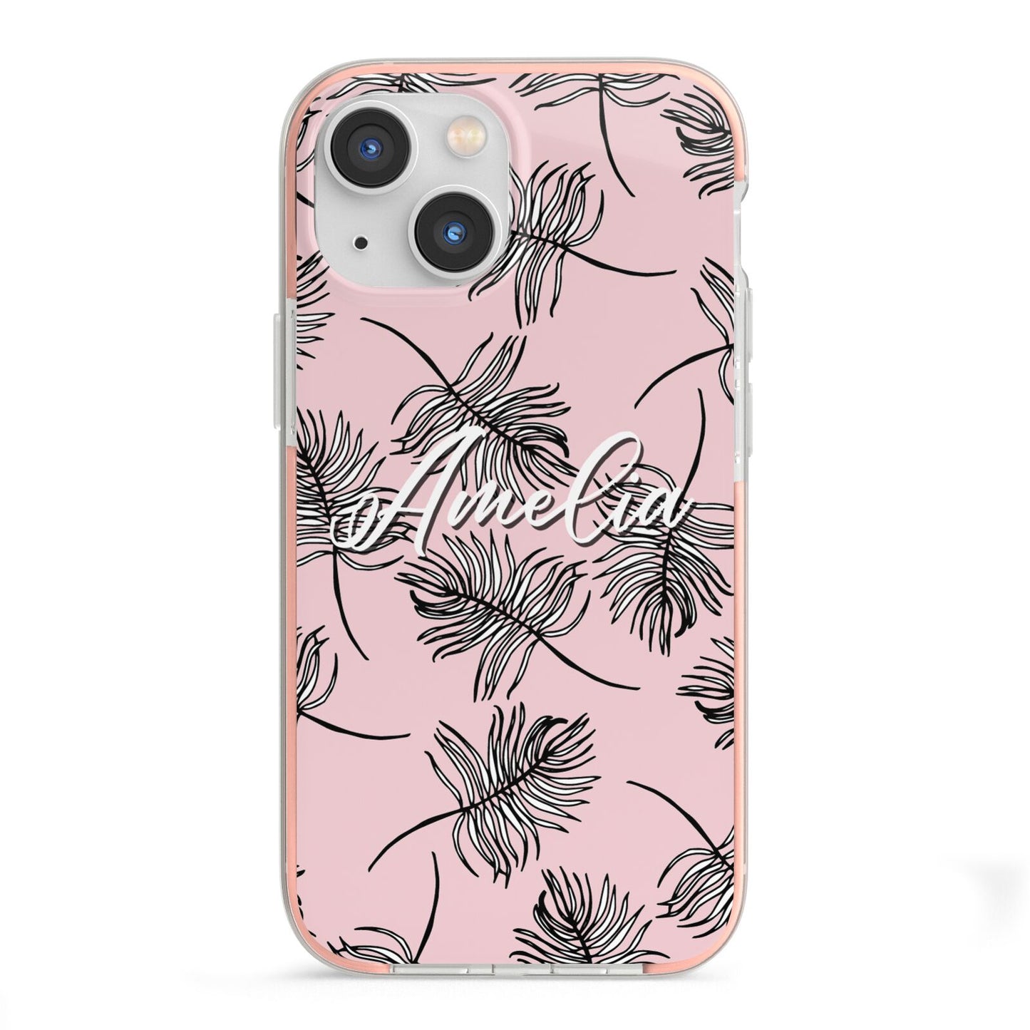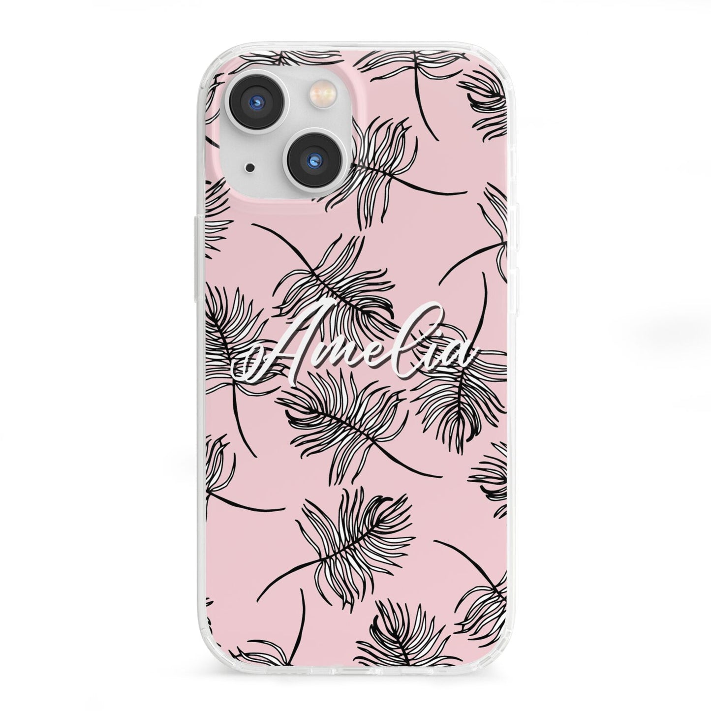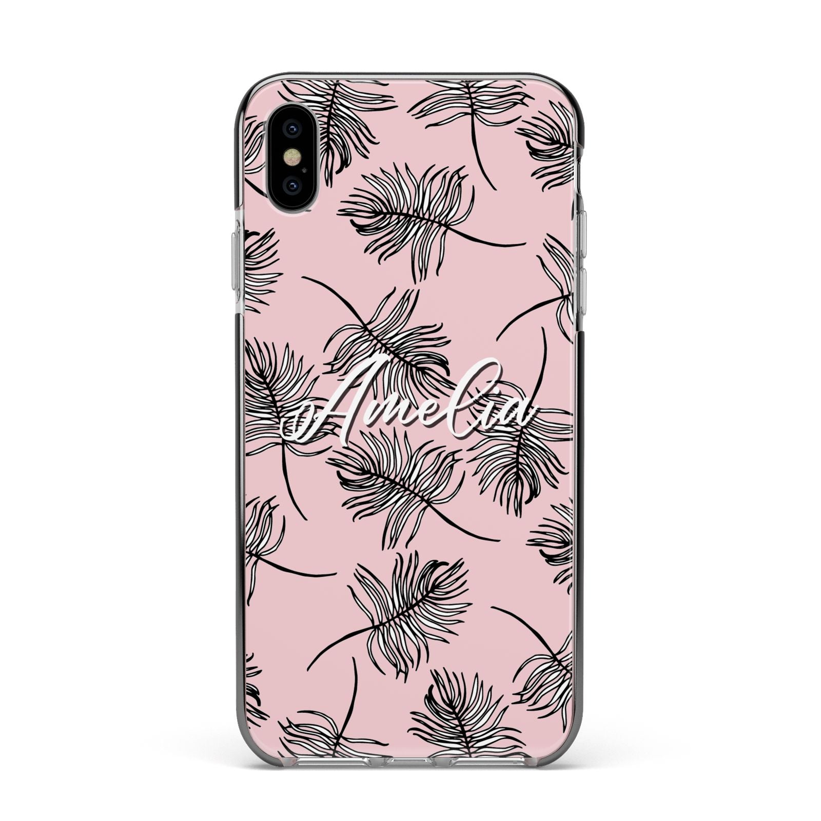Personalised Pink Monochrome Tropical Leaf Apple iPhone Case