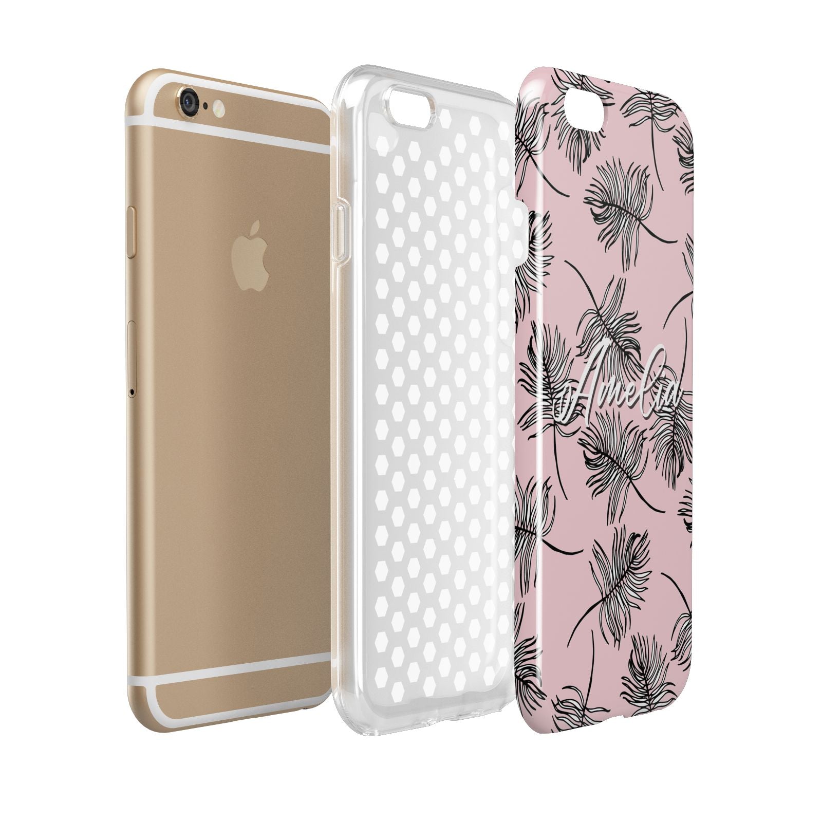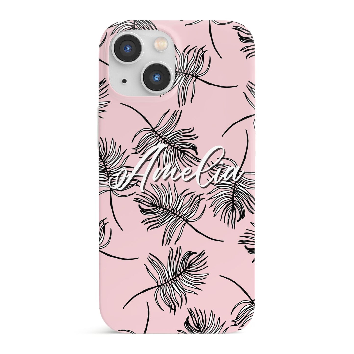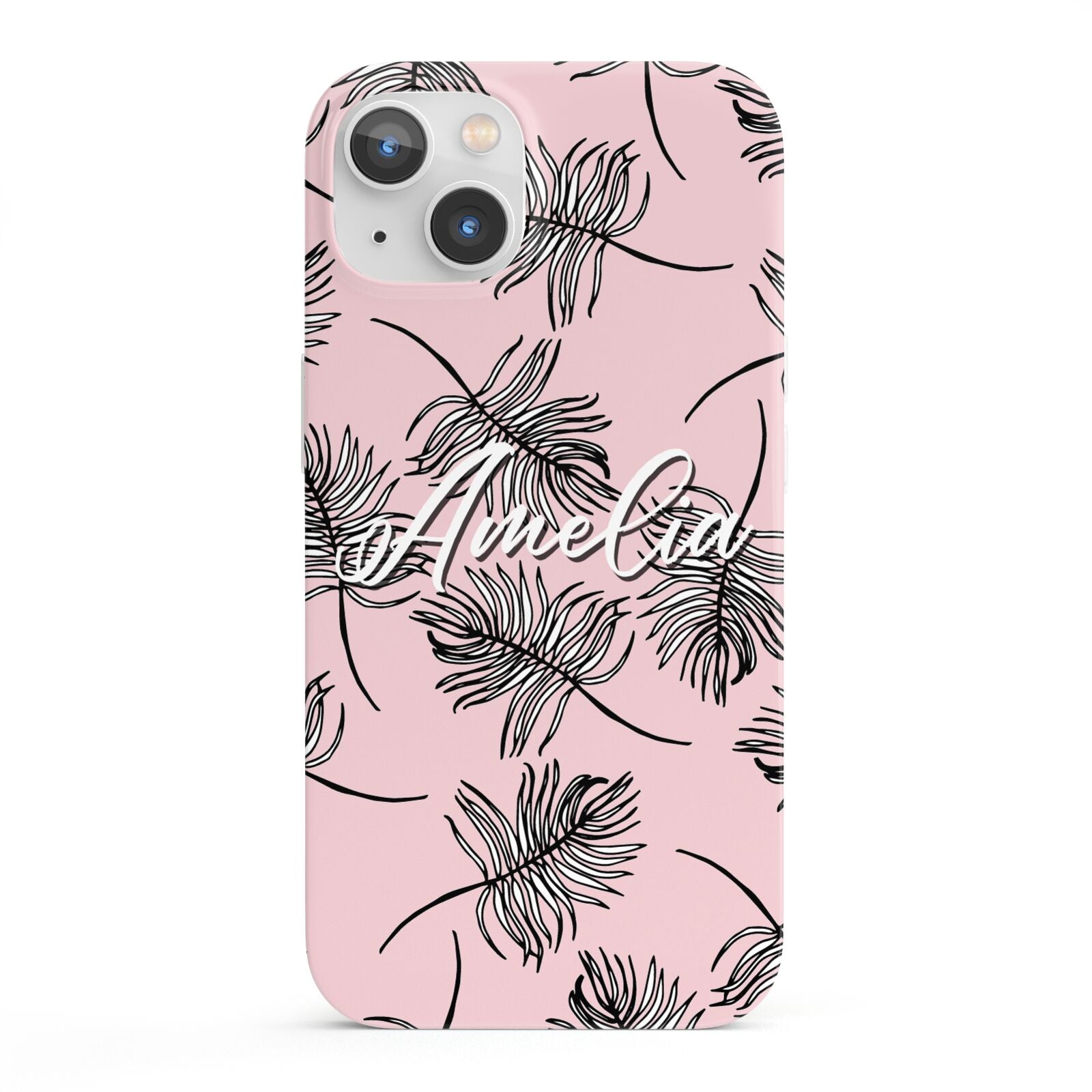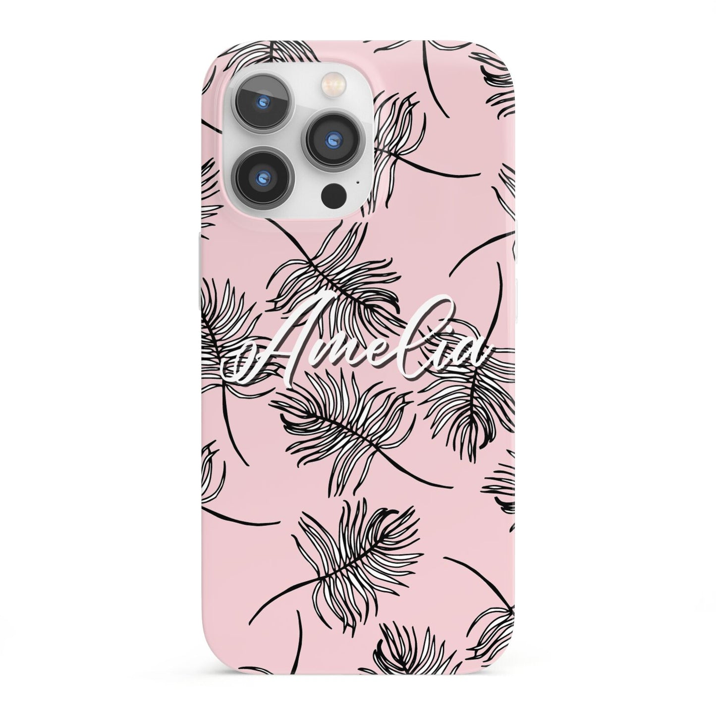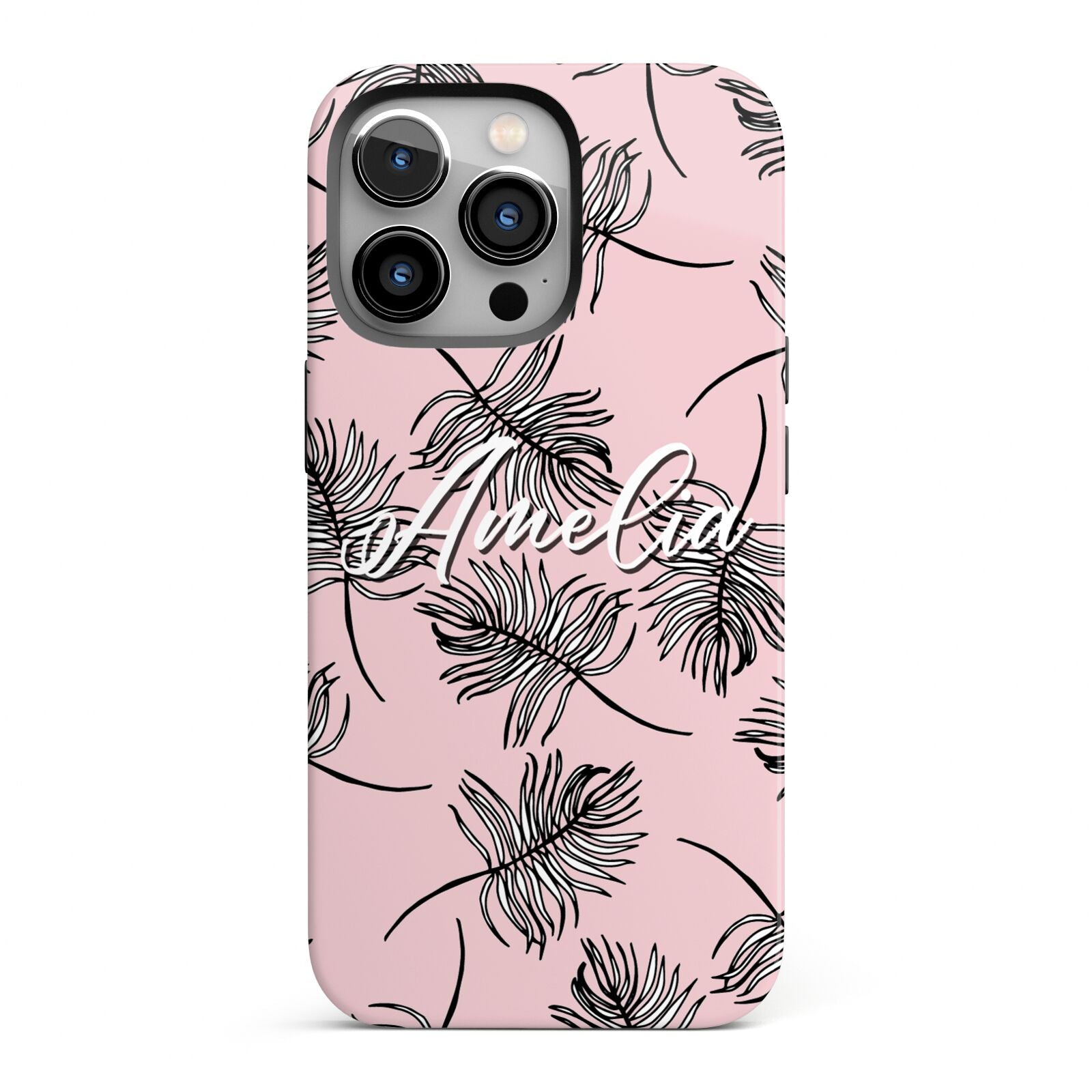 Personalised Pink Monochrome Tropical Leaf Apple iPhone Case