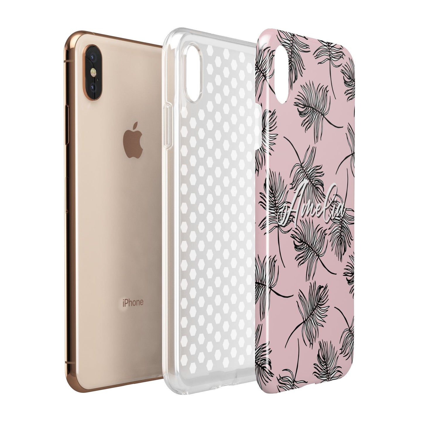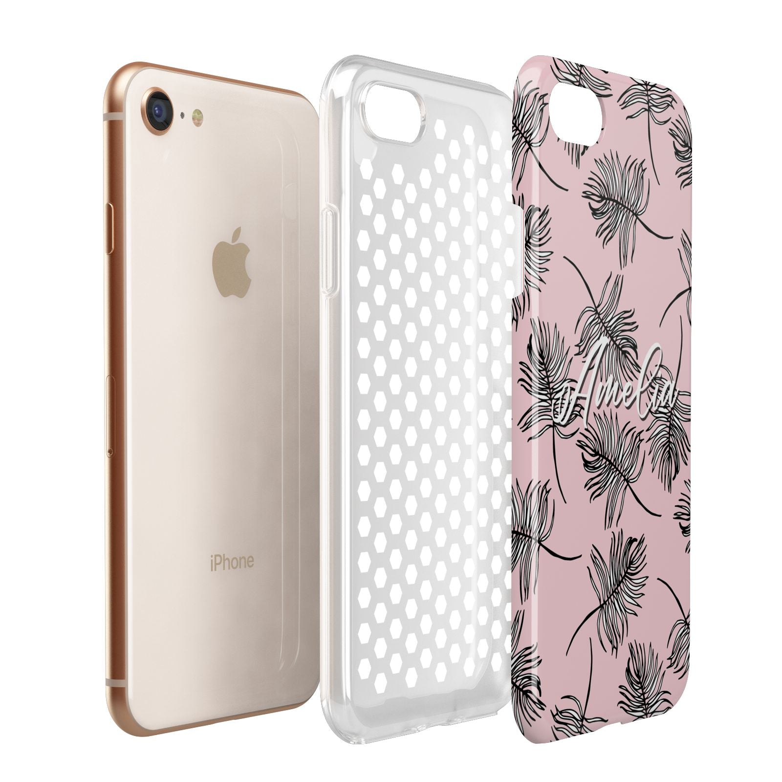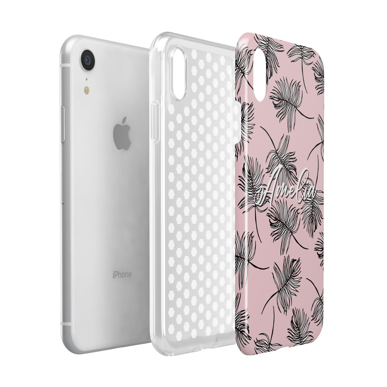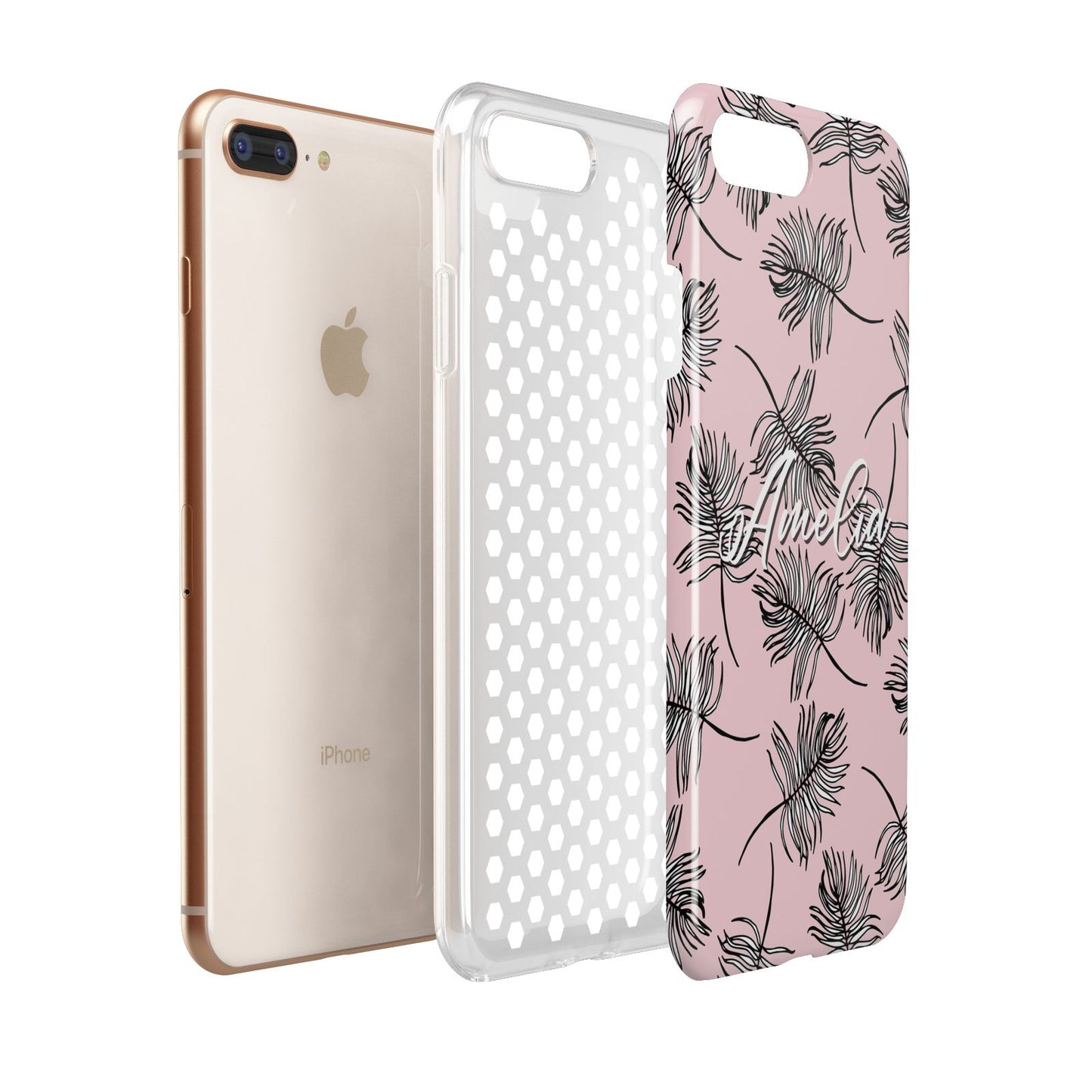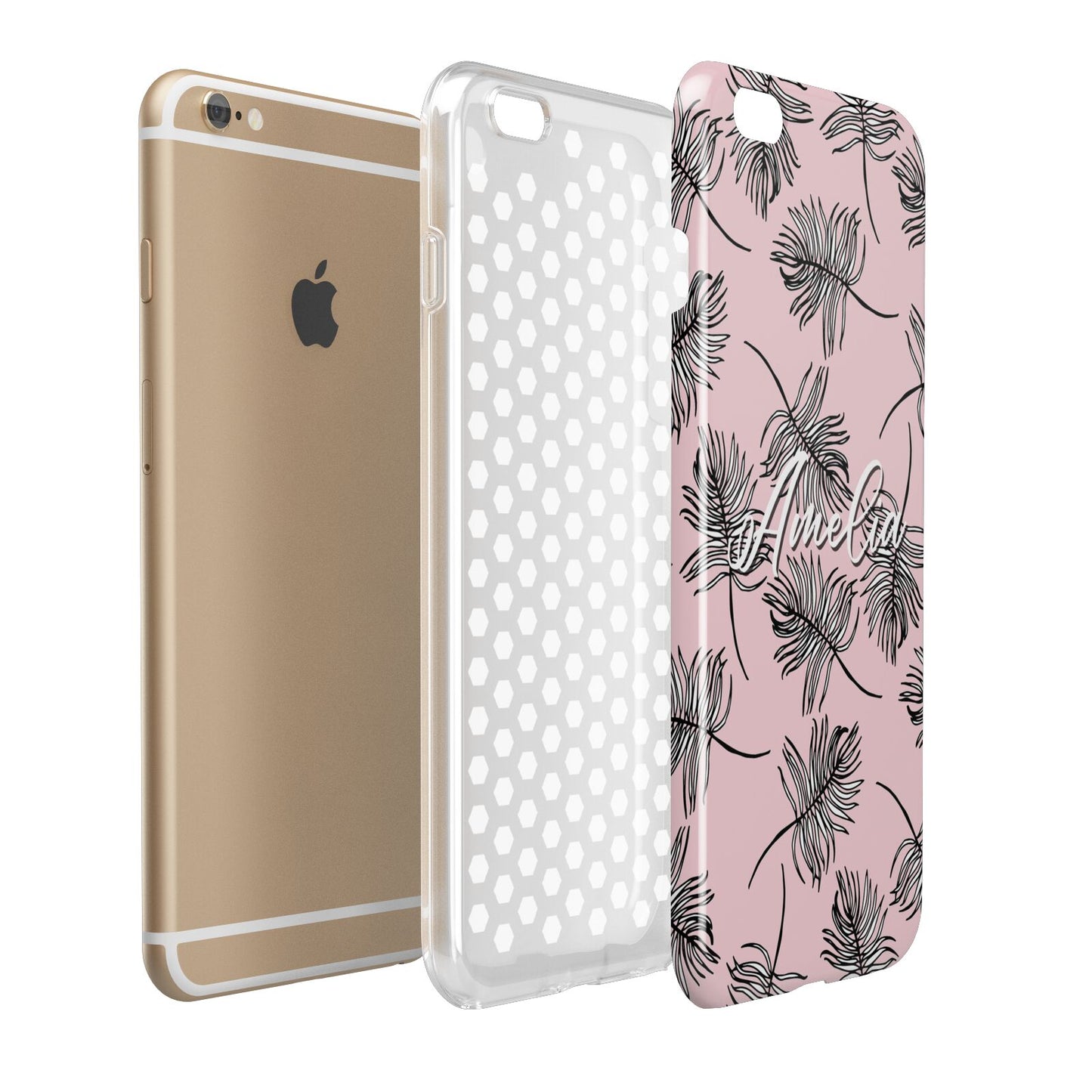 Personalised Pink Monochrome Tropical Leaf Apple iPhone Case