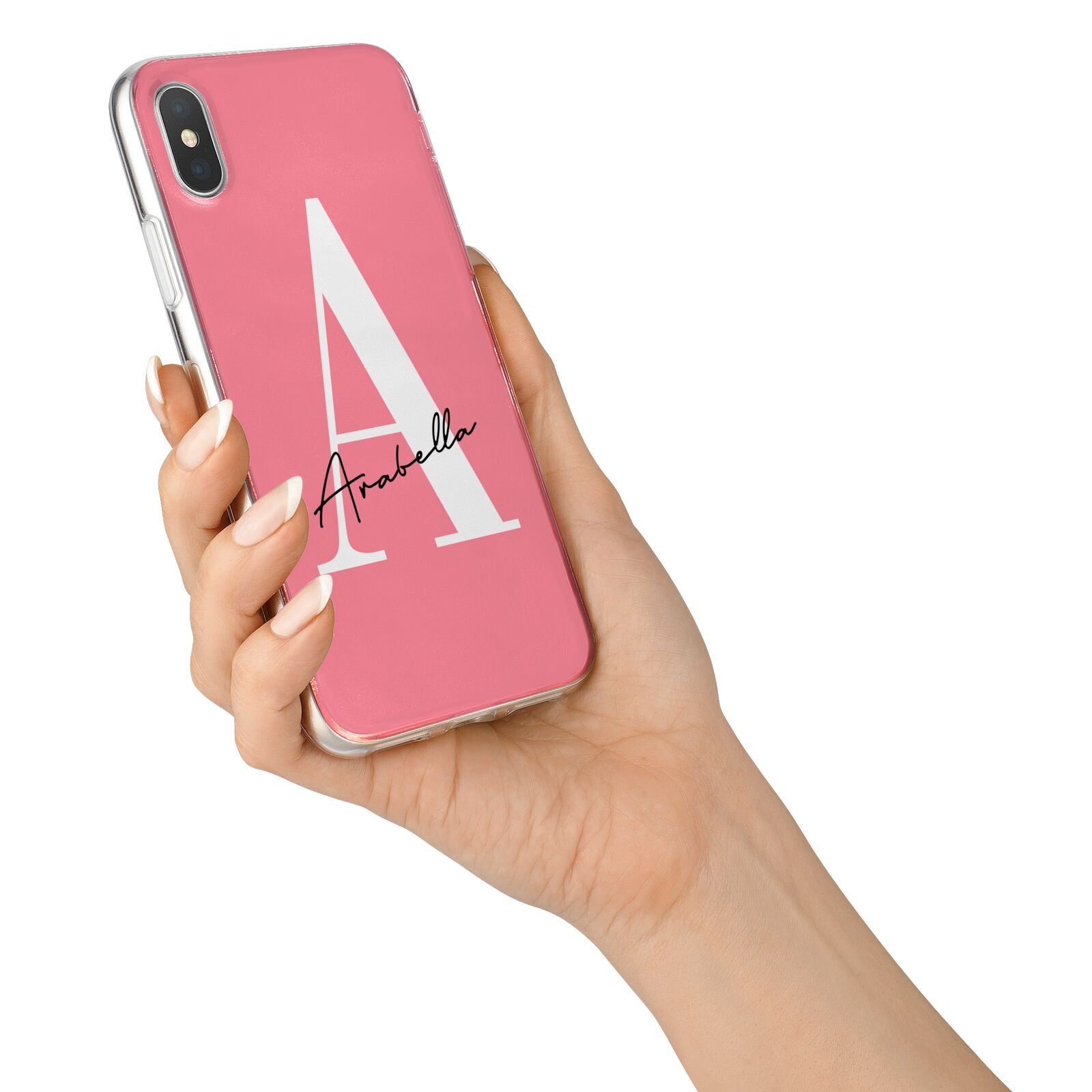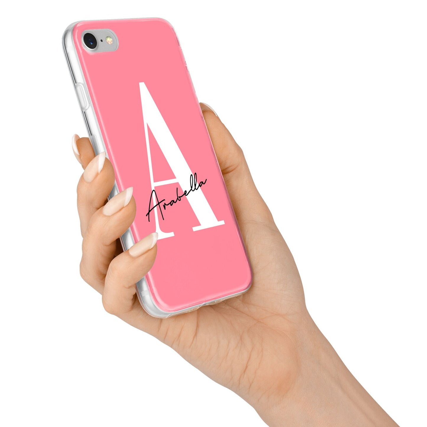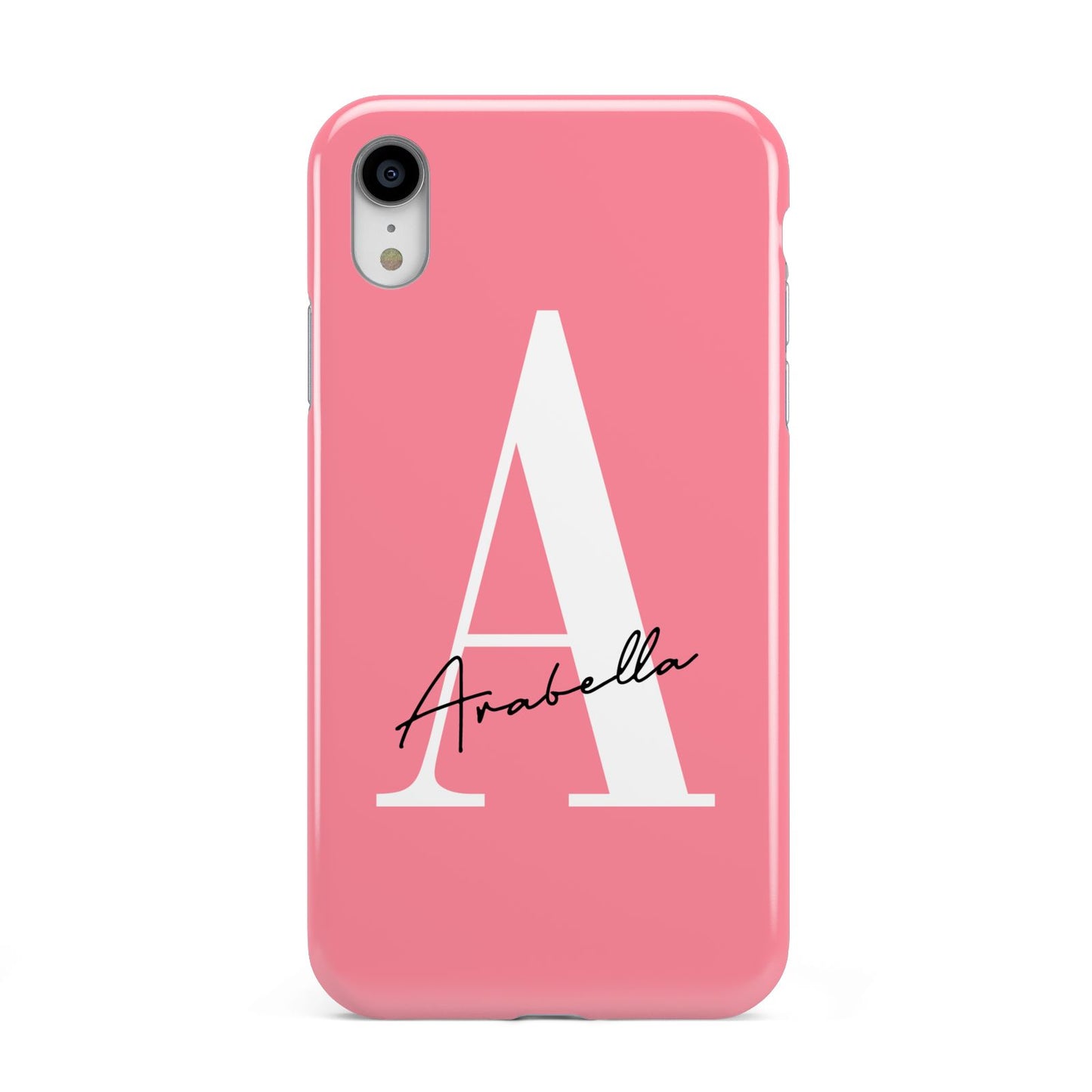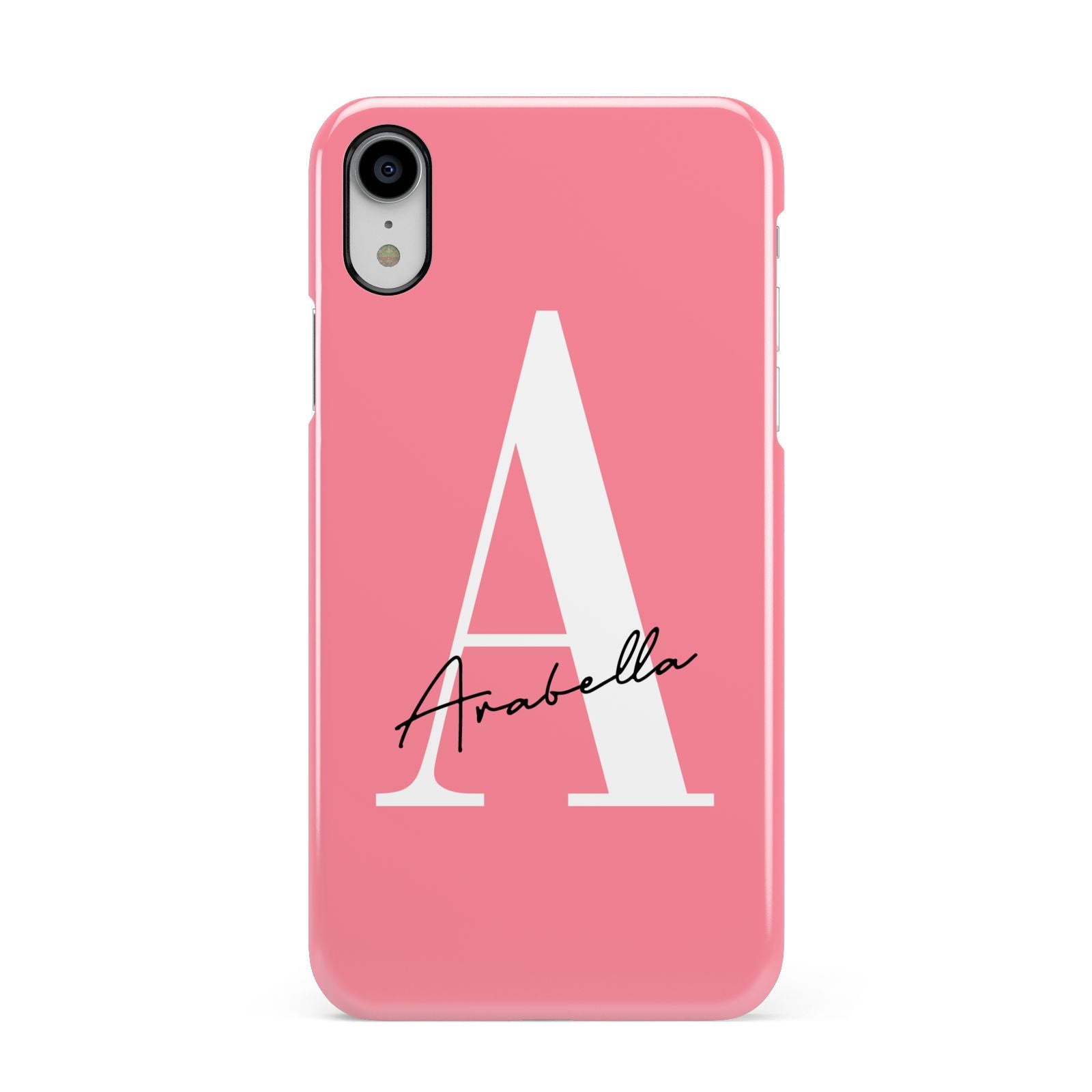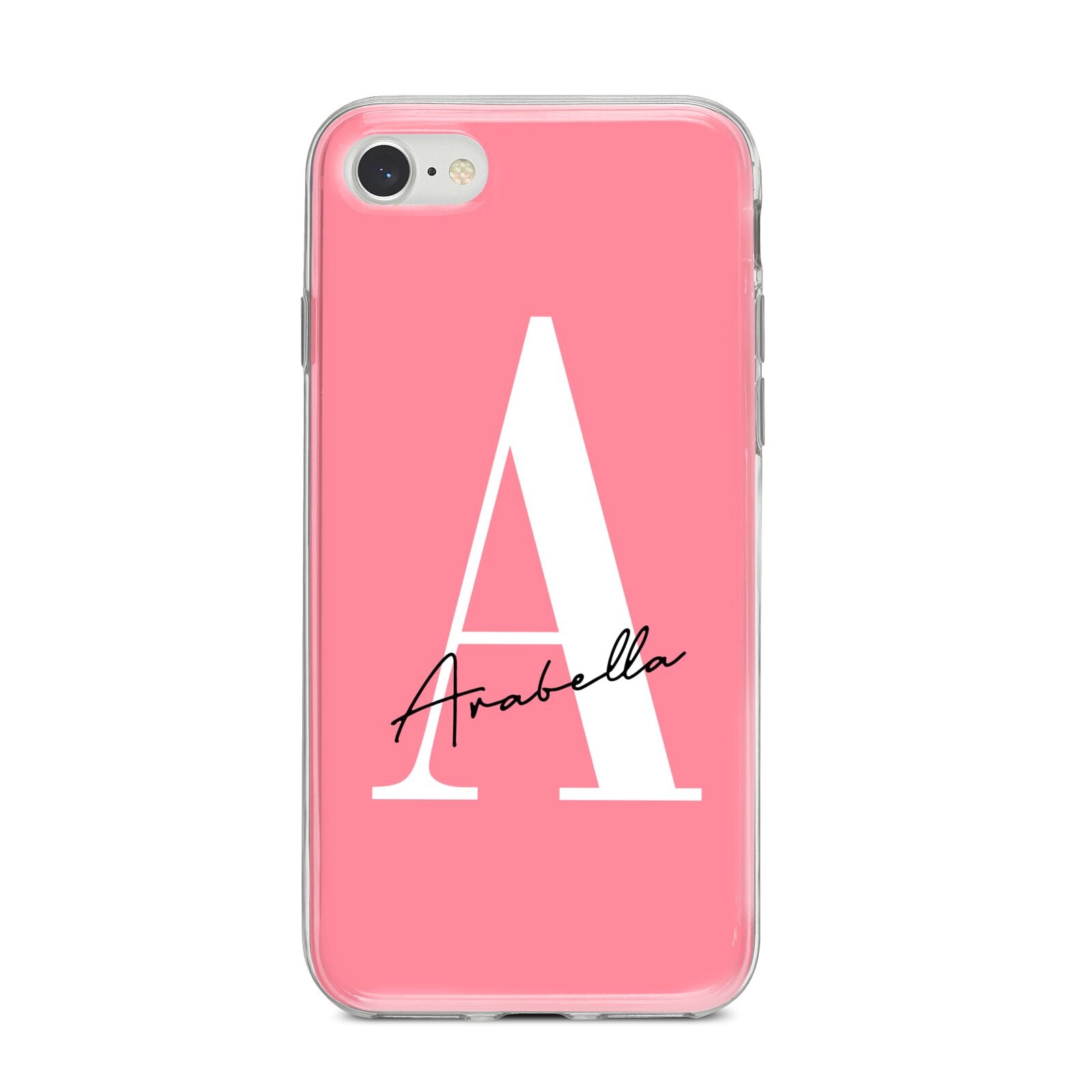 Our fab looking Personalised Pink White Initial Apple iPhone Case is a simple block colour of pink, with a large white initial and black handwritten name. Sometimes simple is best, and we just love how effective this design is. The name is printed in our signature font, and it looks stunning against the pink and white. Add your monogram and name to this phone case to make it your own.