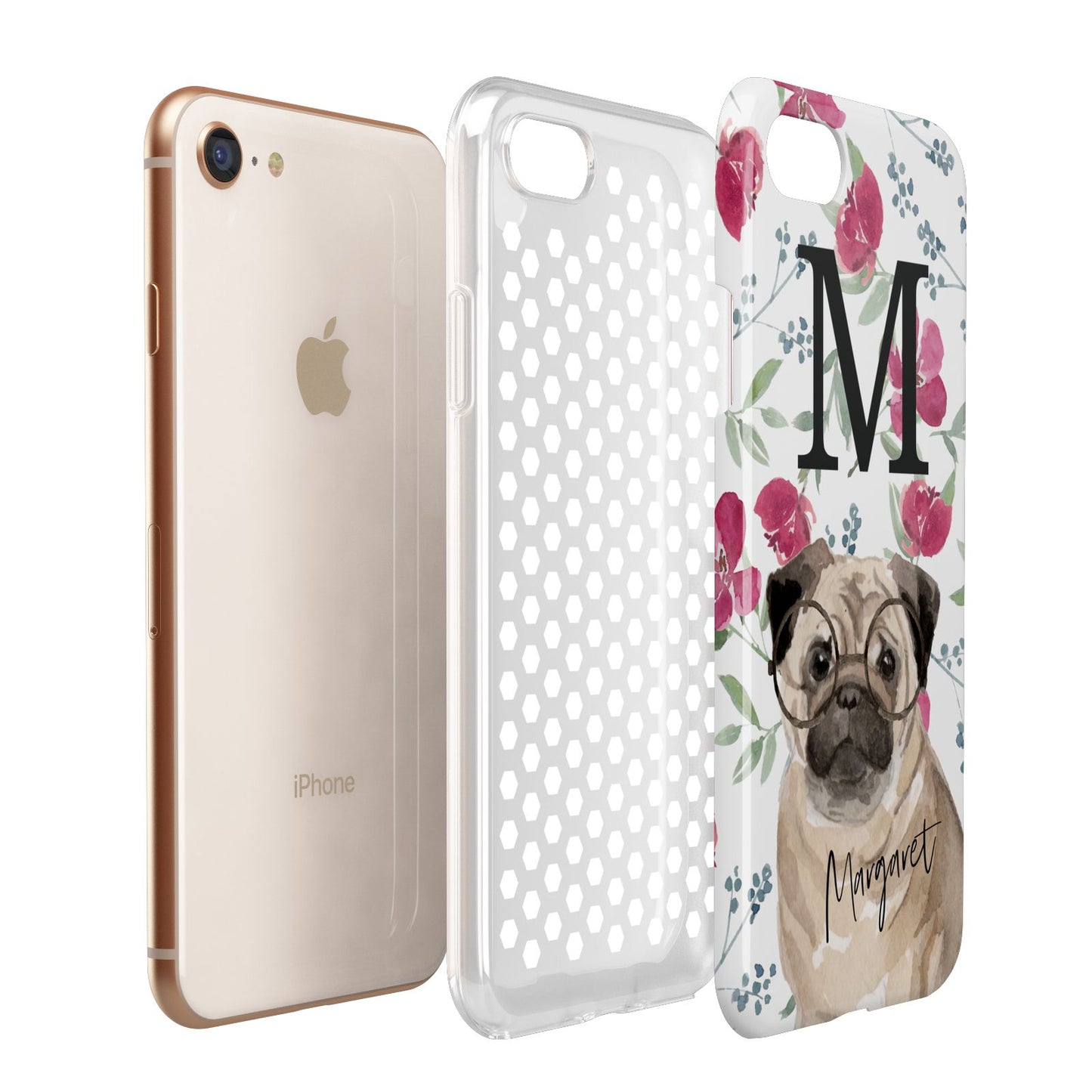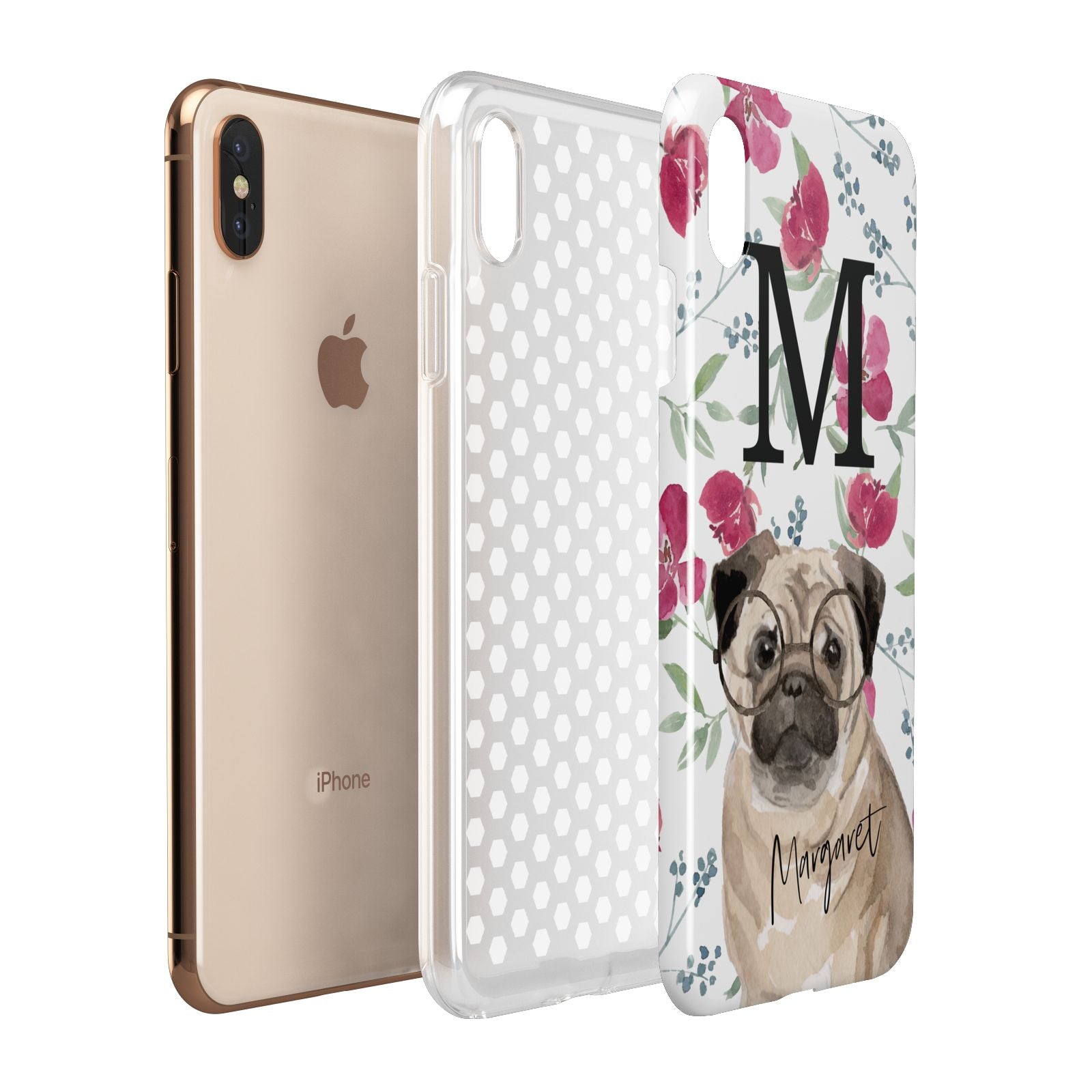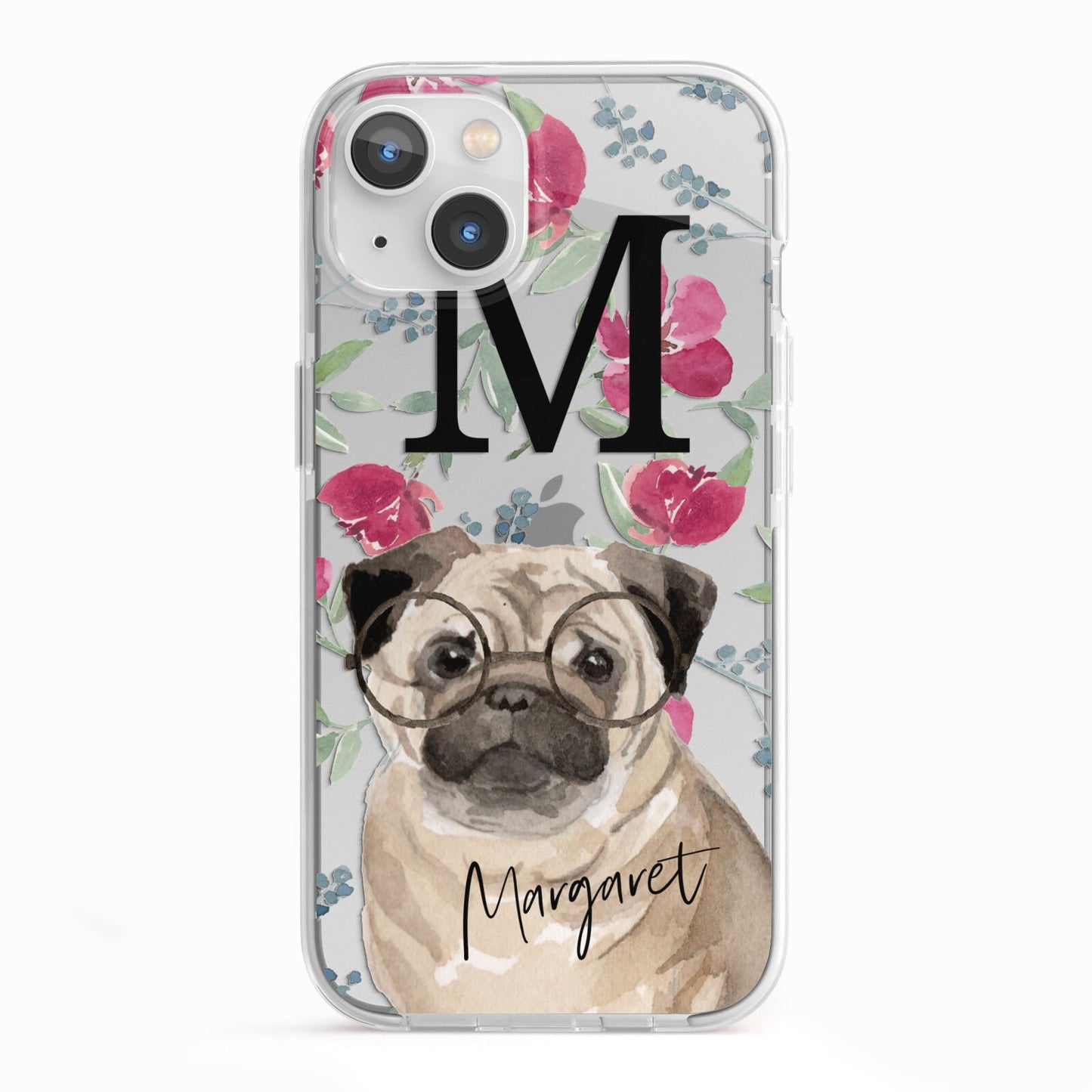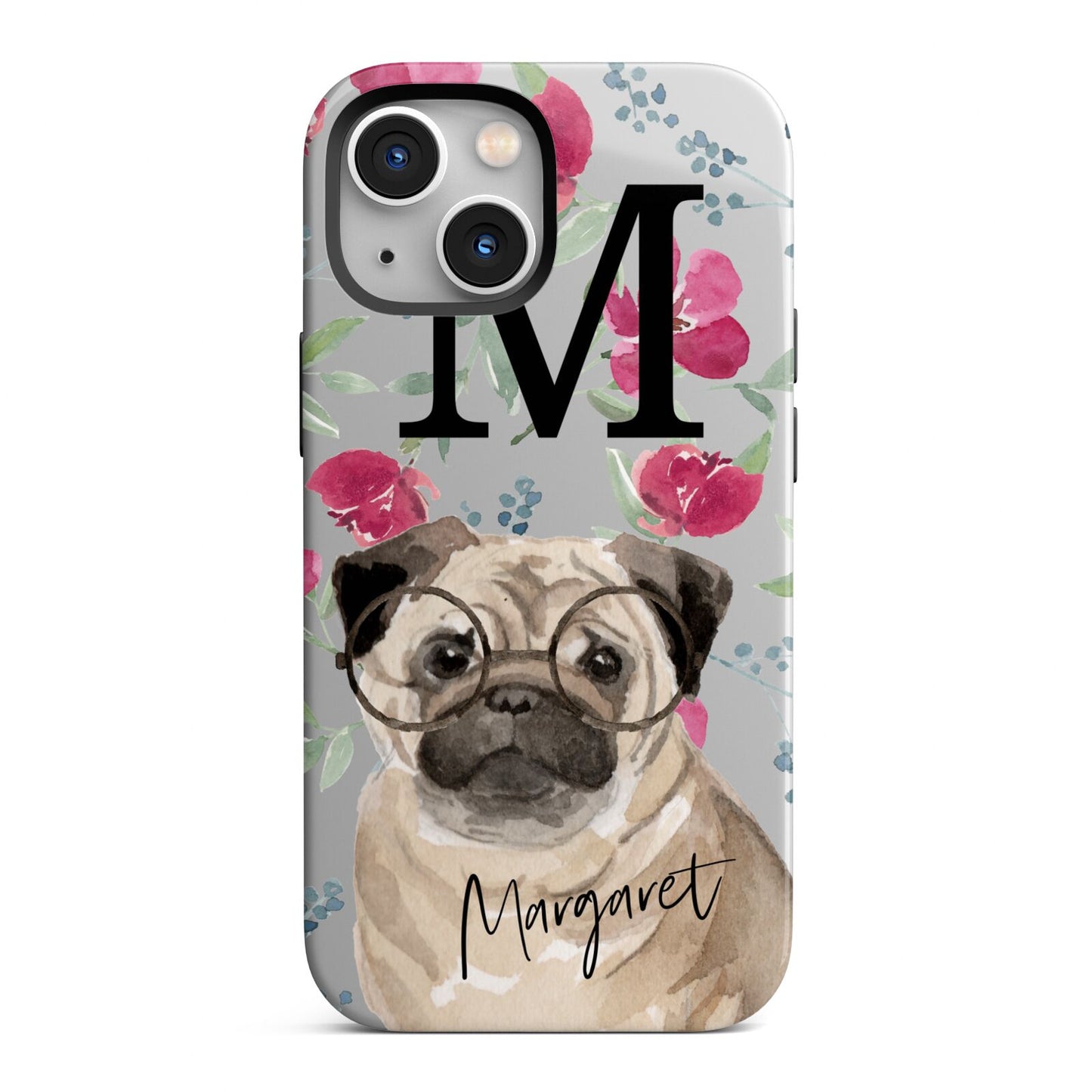 This cute Personalised Pug Dog Apple iPhone Case is a watercolour illustration of an adorable pet pug dog, wearing fun glasses. The design also includes some pretty flowers, and can be personalised with a large monogram and your name in our handwritten font. This design is just perfect for any dog lover, or of course a pug owner.