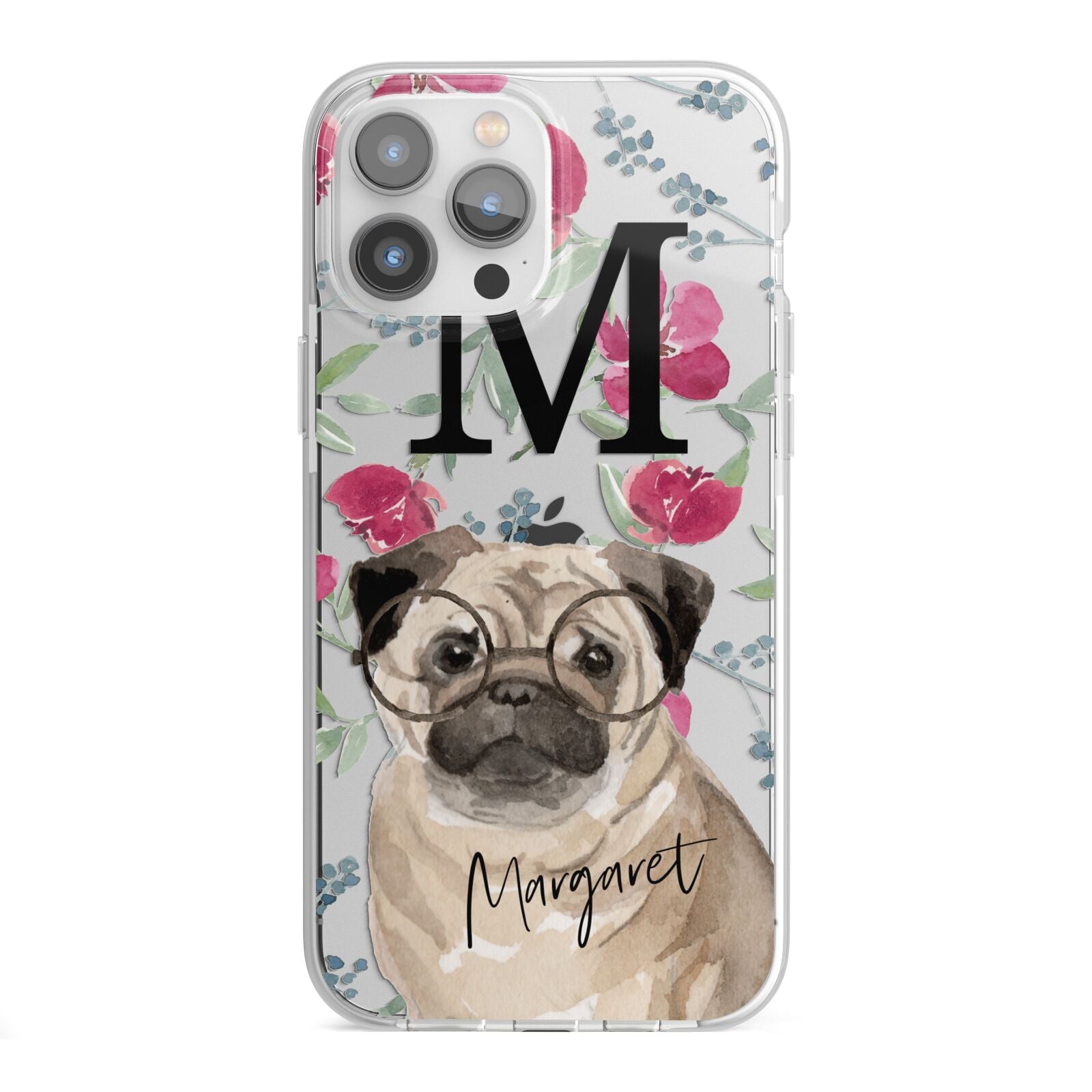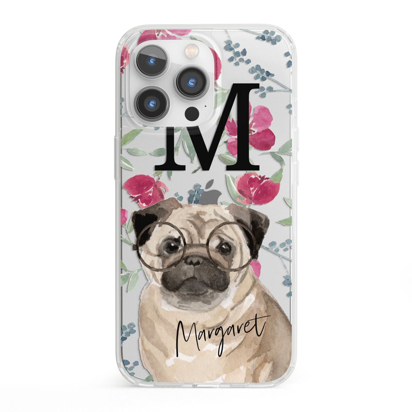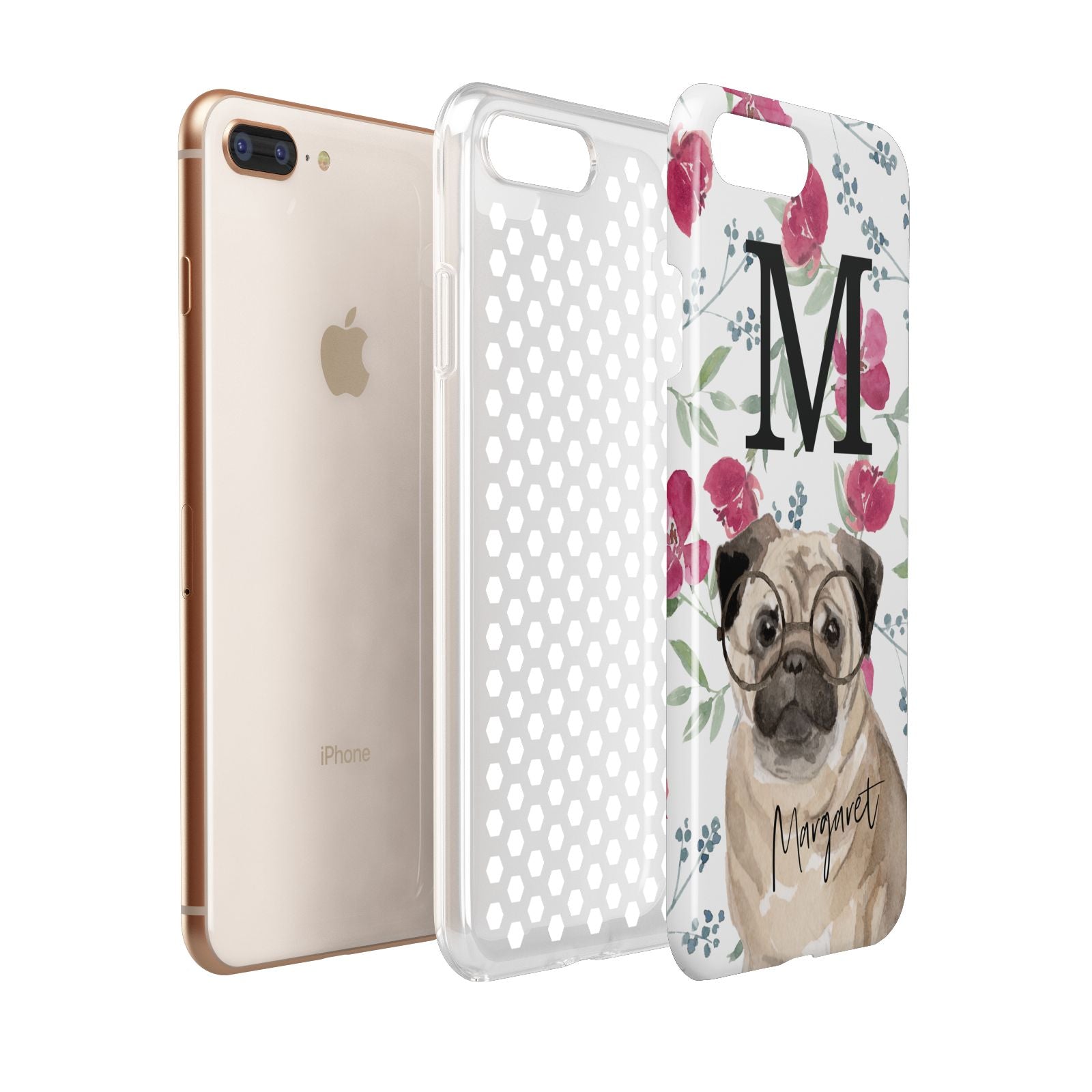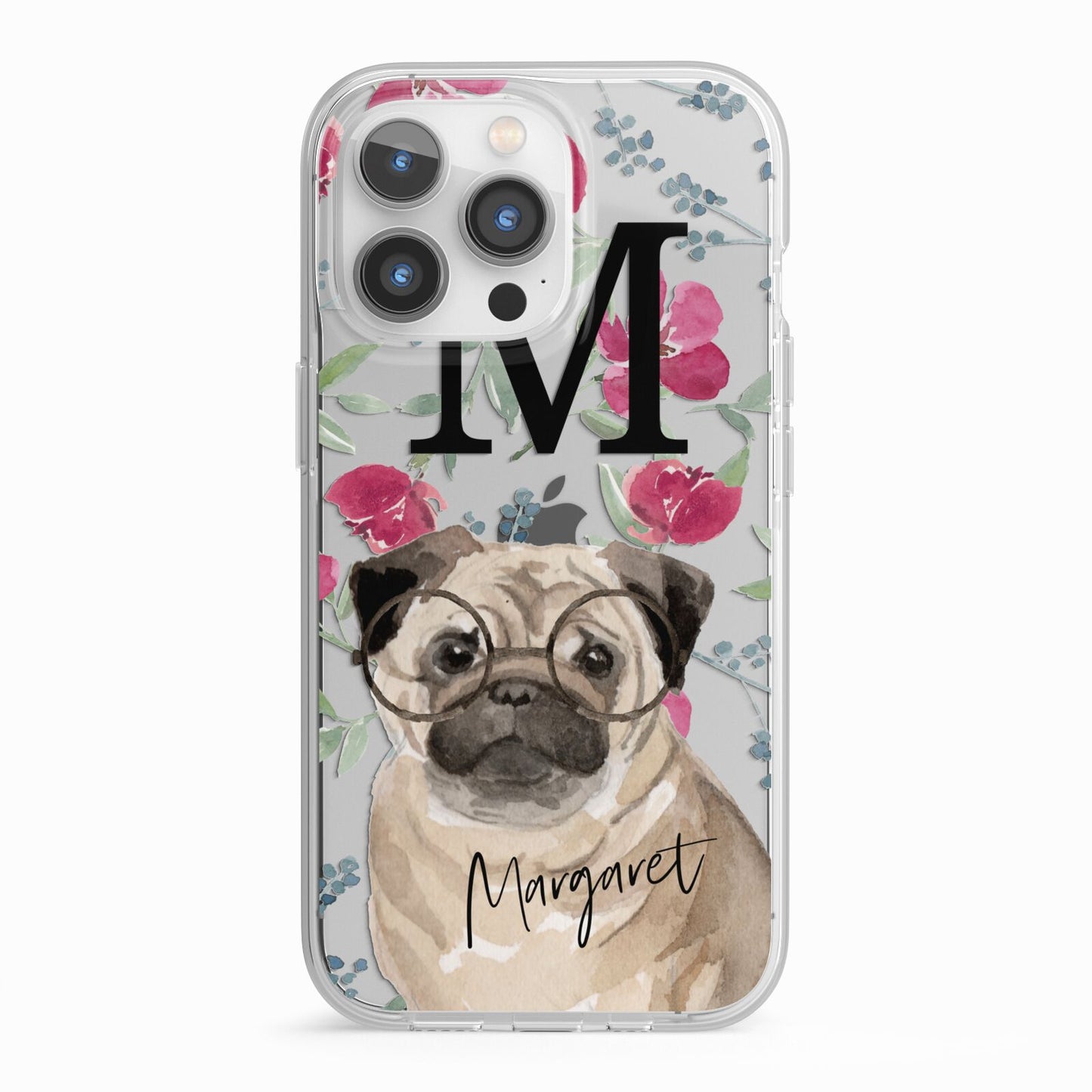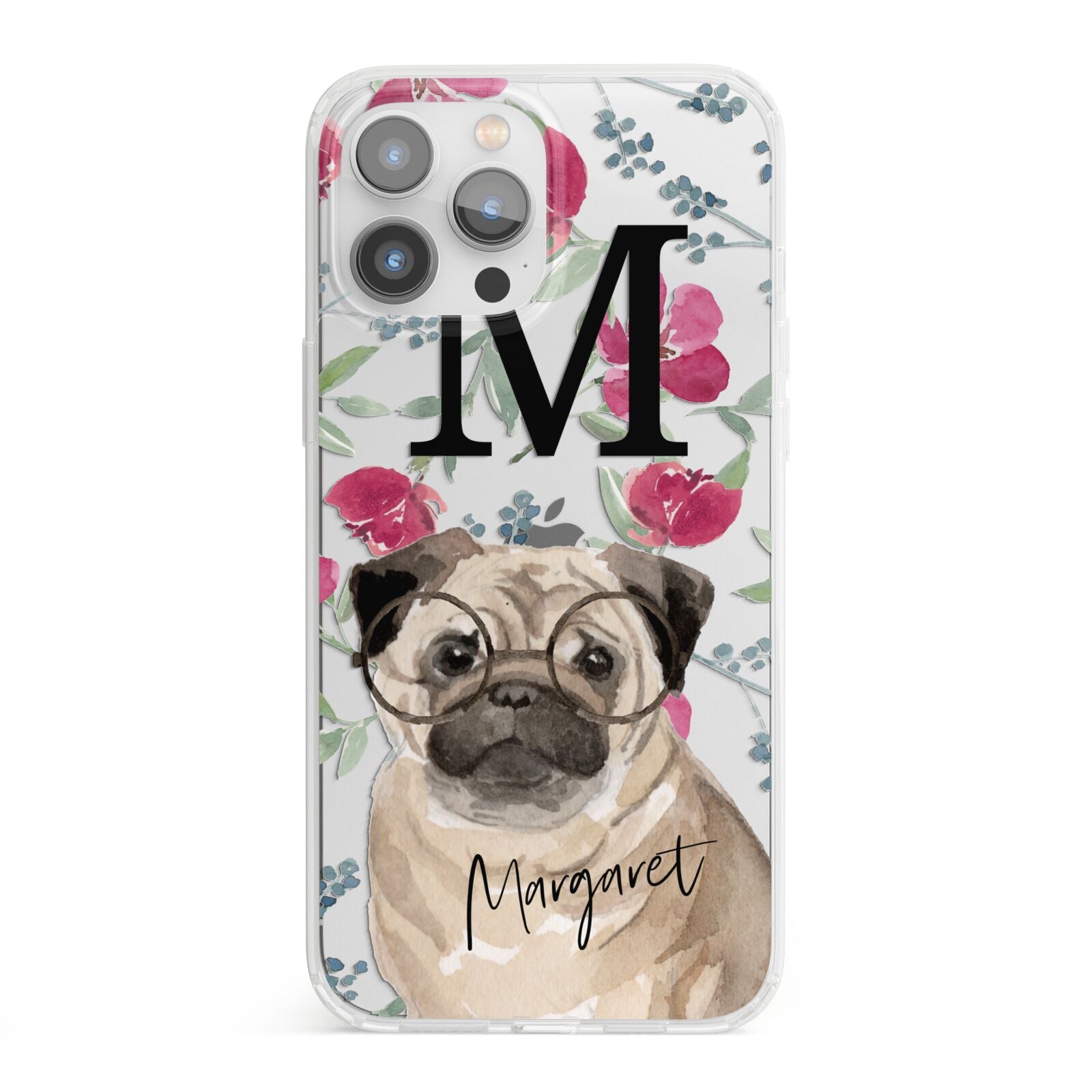 This cute Personalised Pug Dog Apple iPhone Case is a watercolour illustration of an adorable pet pug dog, wearing fun glasses. The design also includes some pretty flowers, and can be personalised with a large monogram and your name in our handwritten font. This design is just perfect for any dog lover, or of course a pug owner.