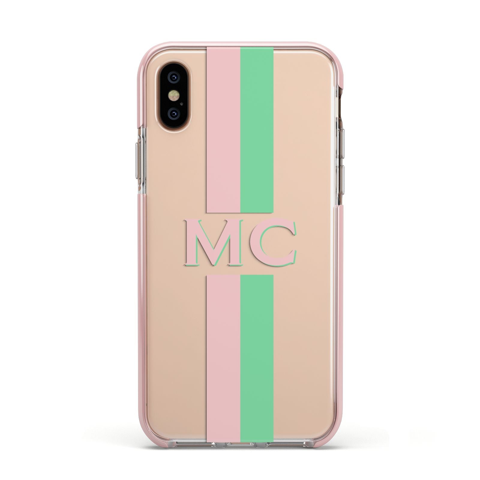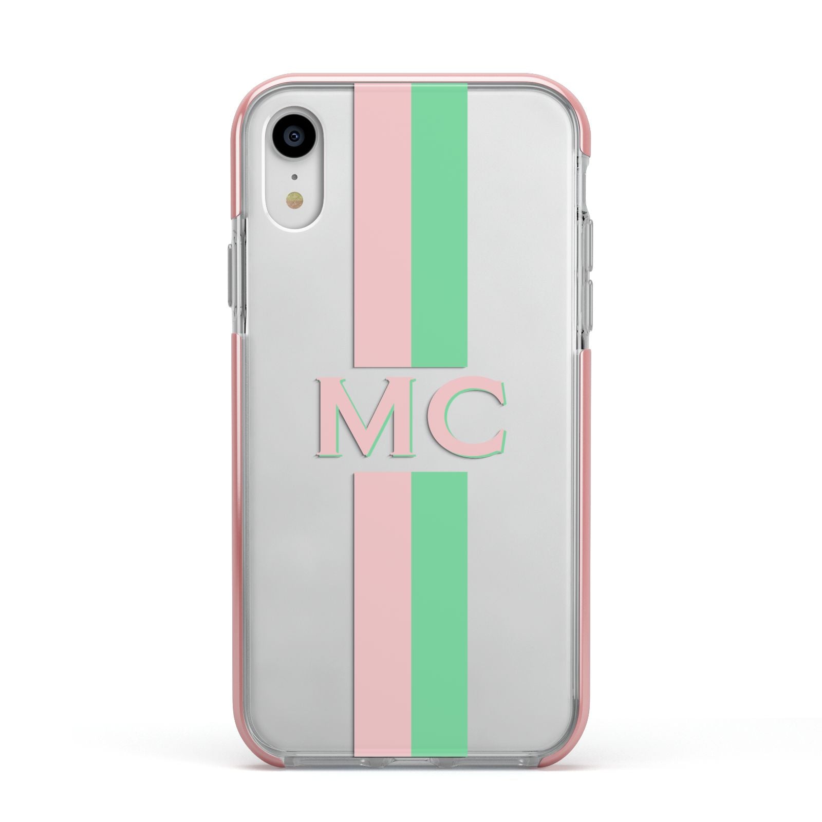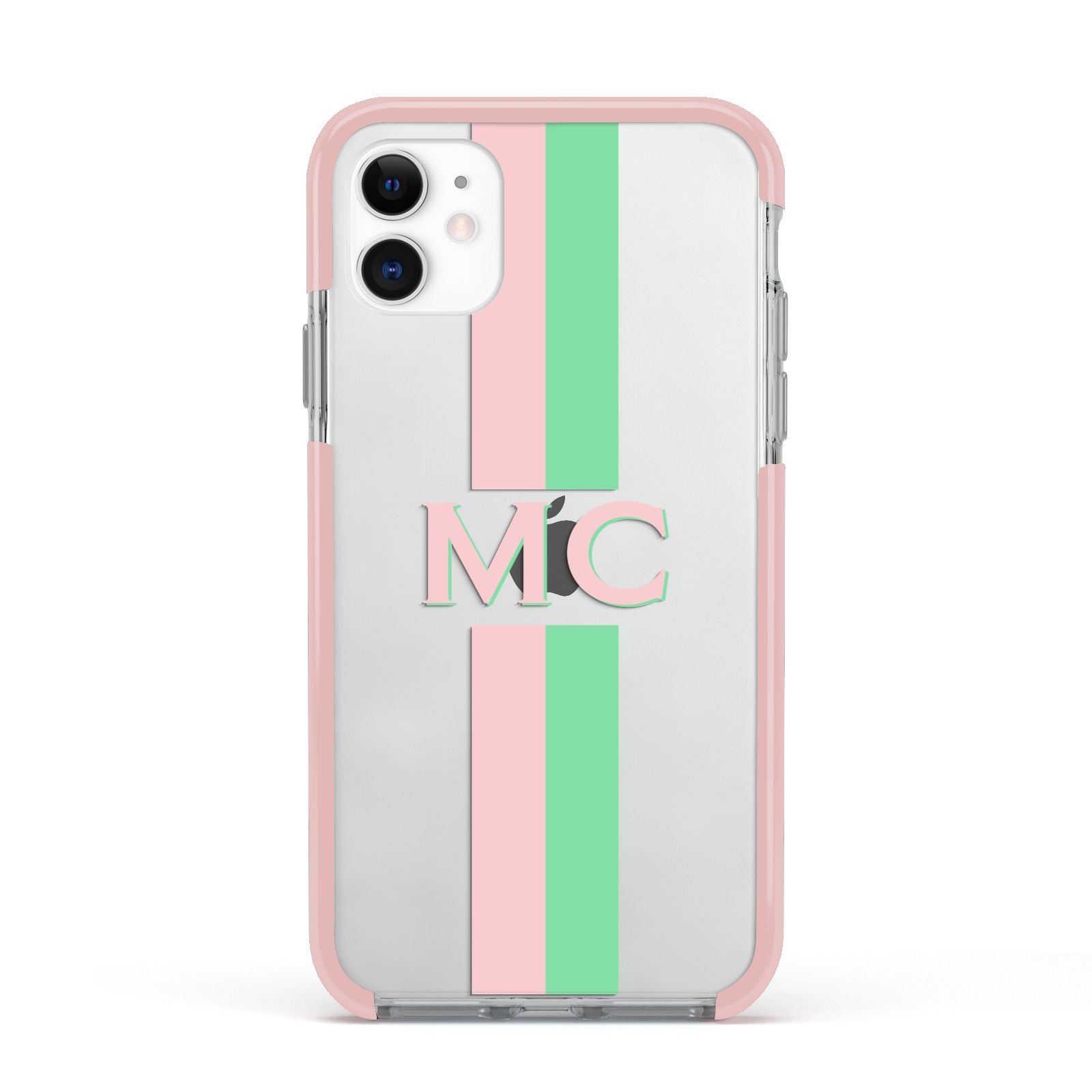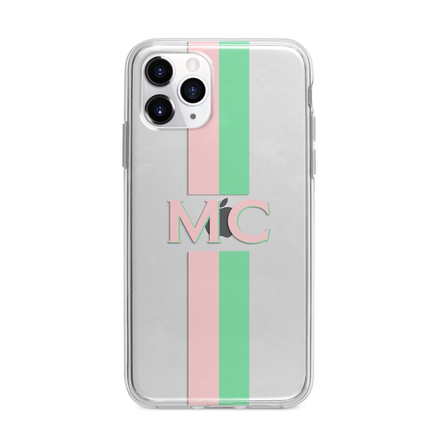Personalised Transparent Striped Pink & Green Apple iPhone Case
