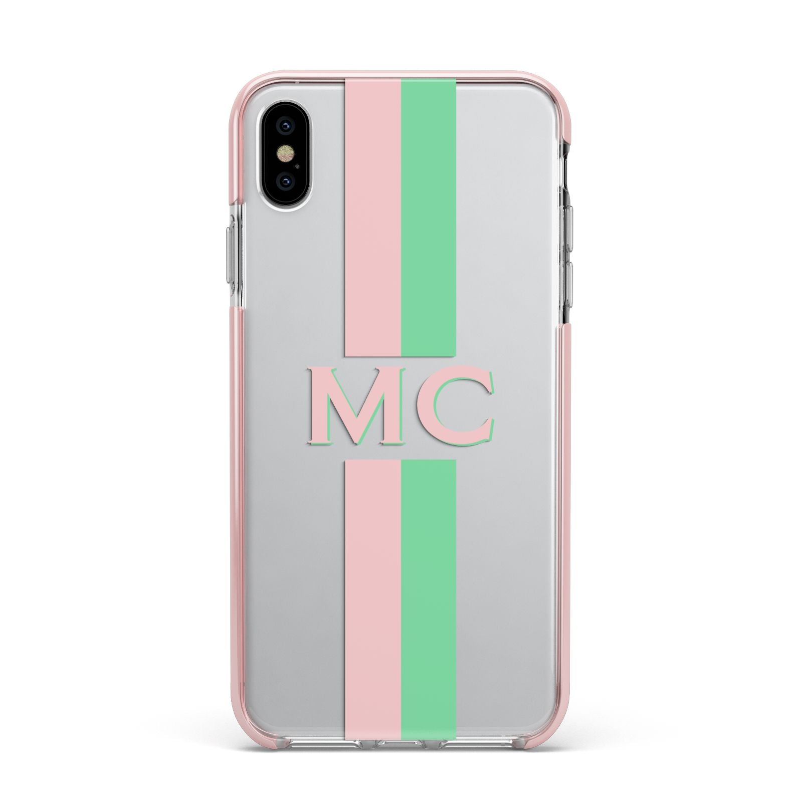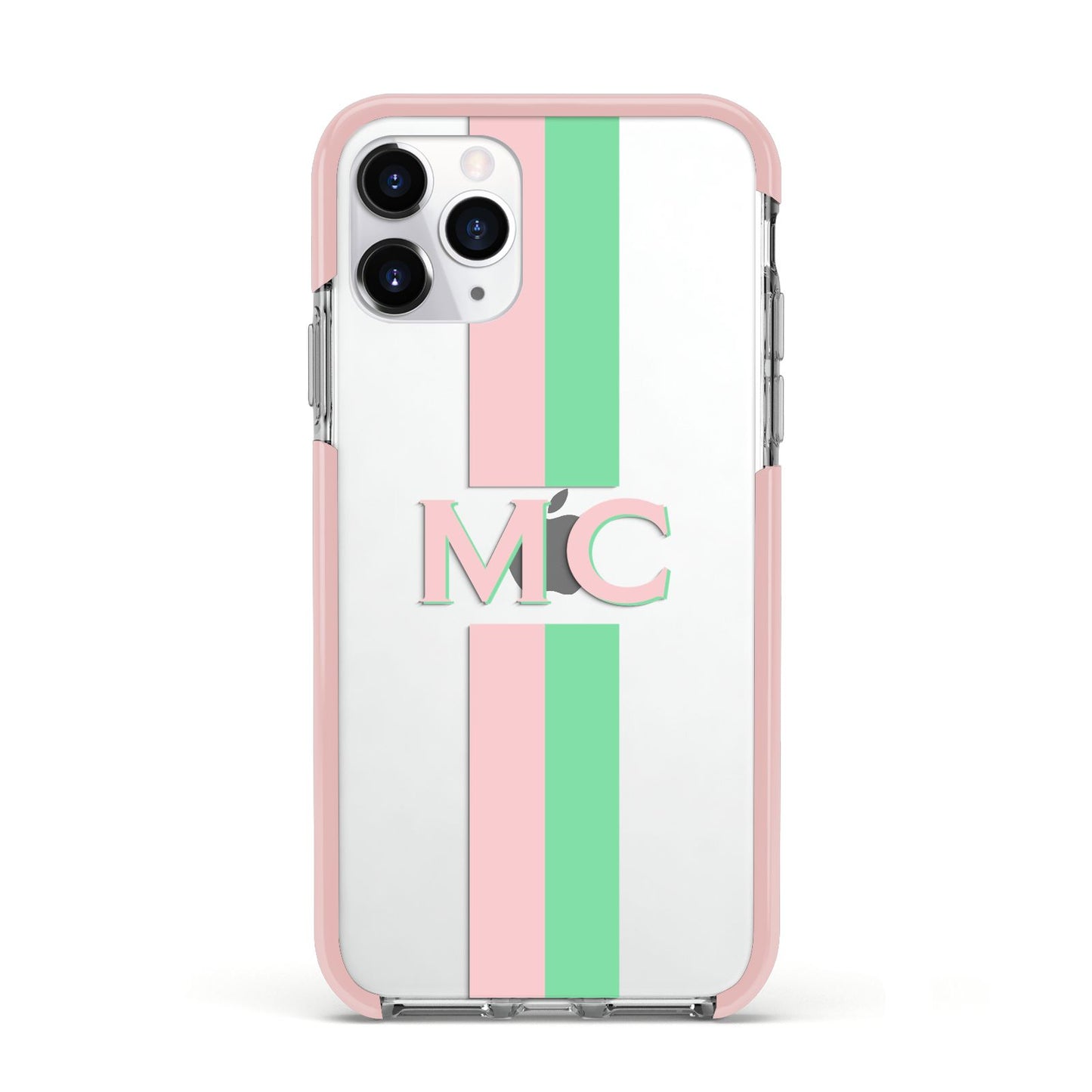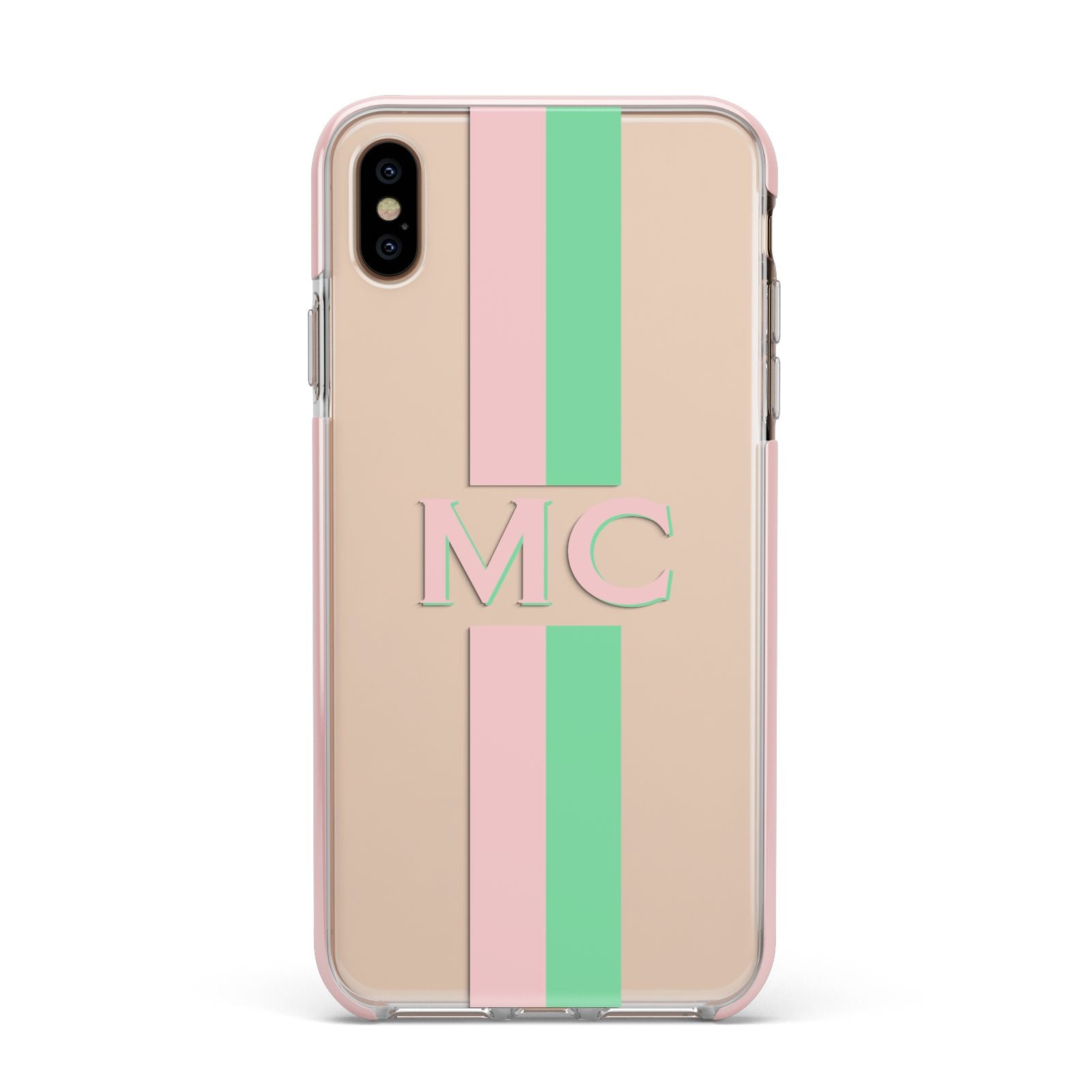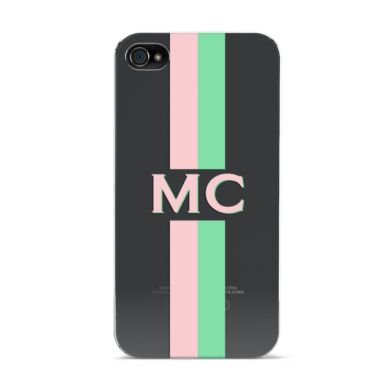 Personalised Transparent Striped Pink & Green Apple iPhone Case
