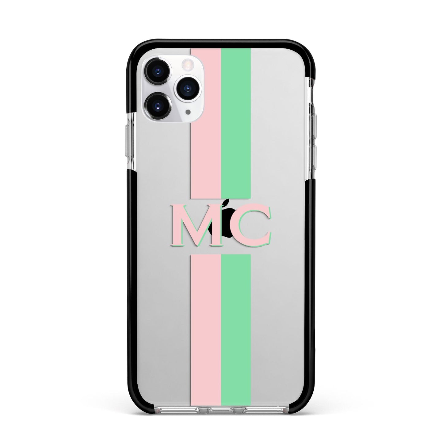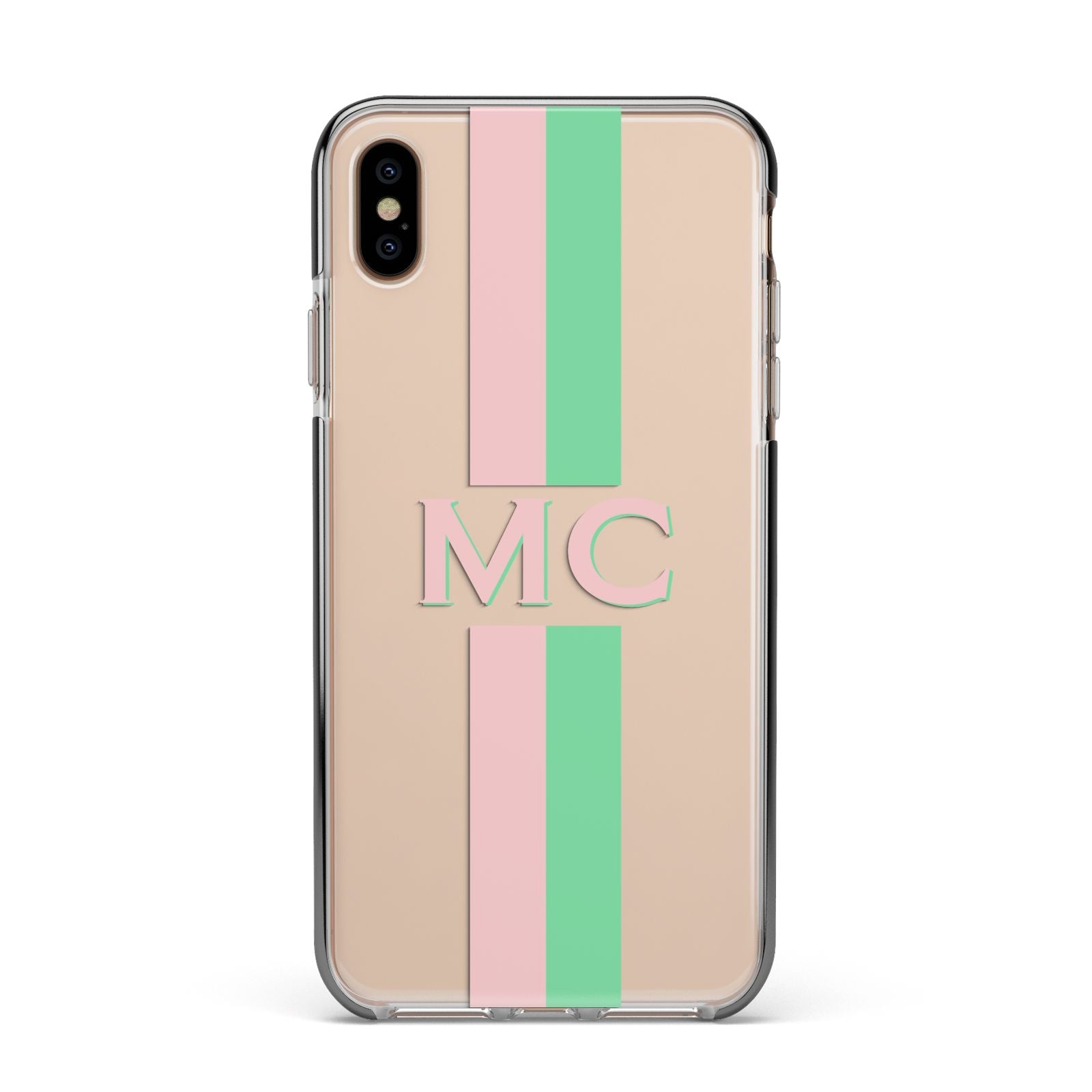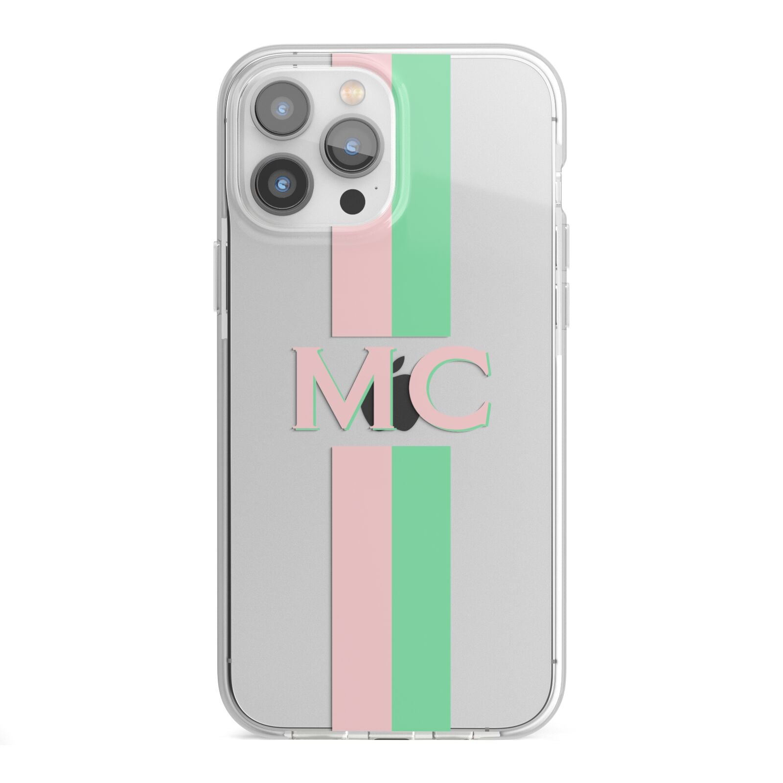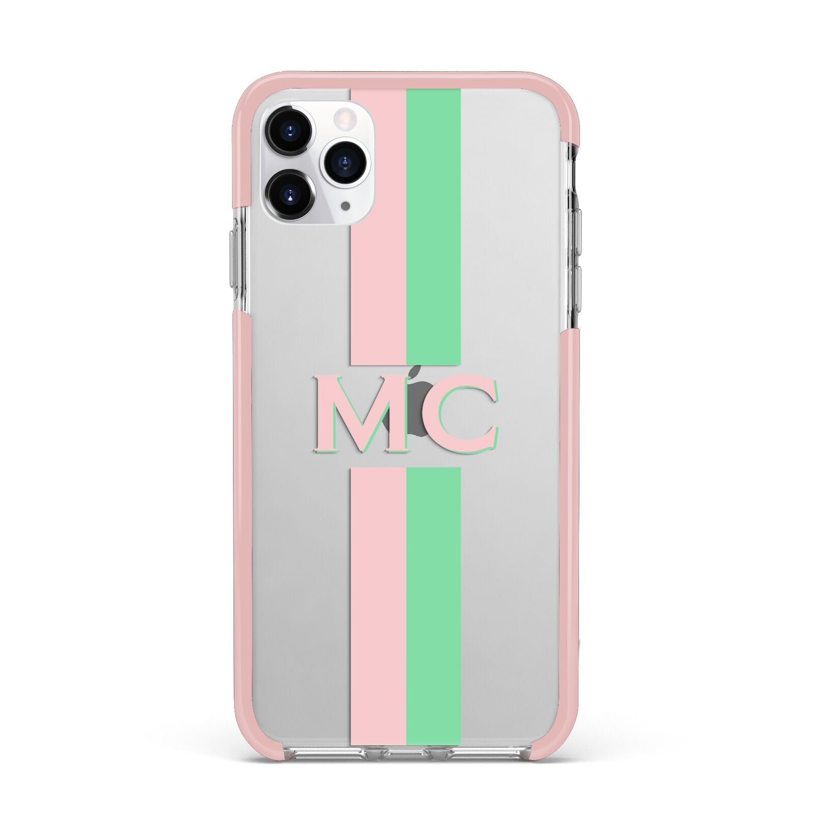 Personalised Transparent Striped Pink & Green Apple iPhone Case