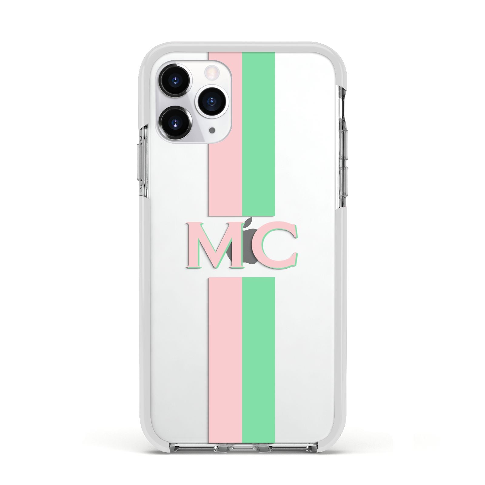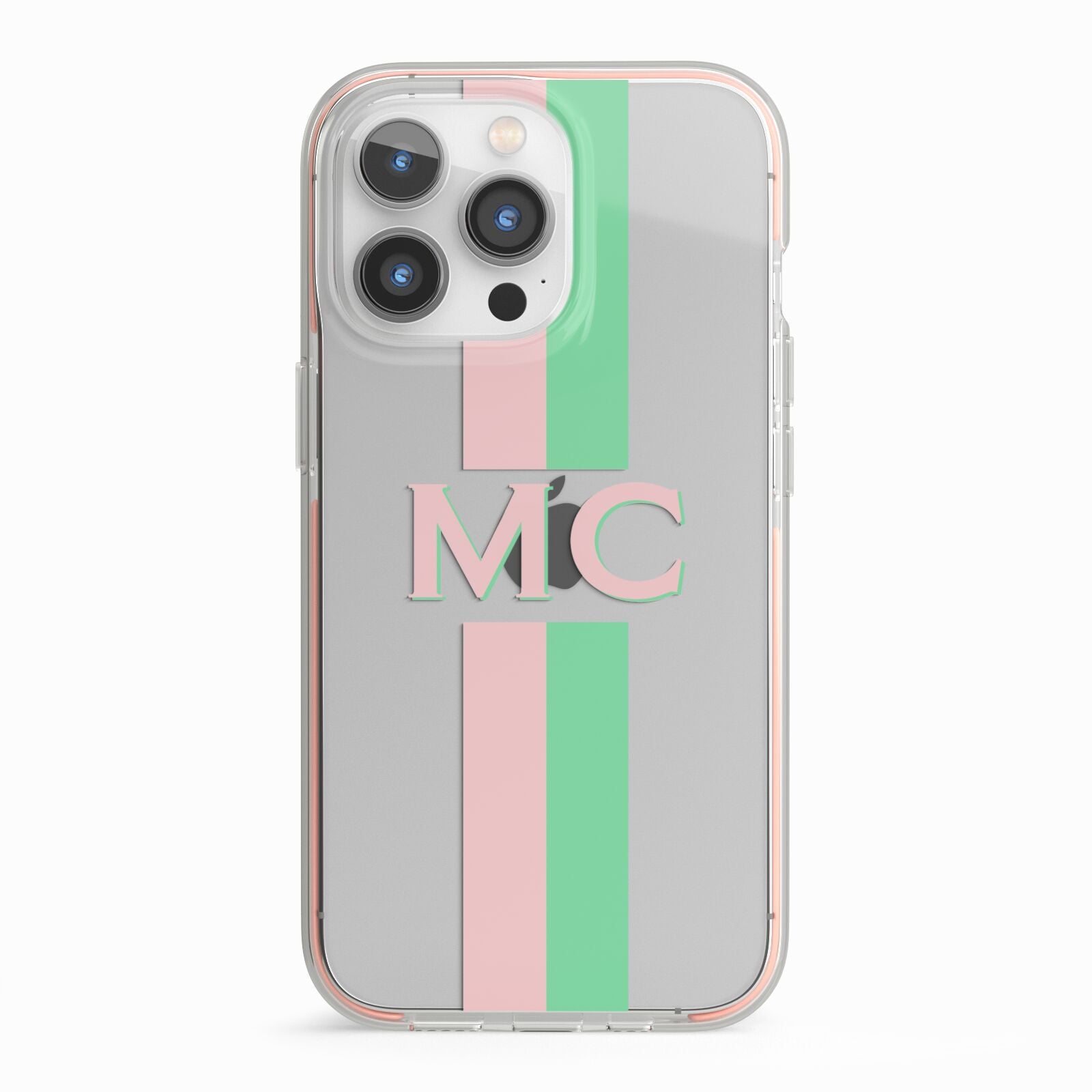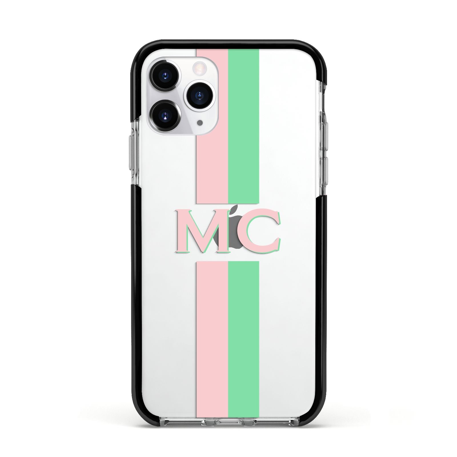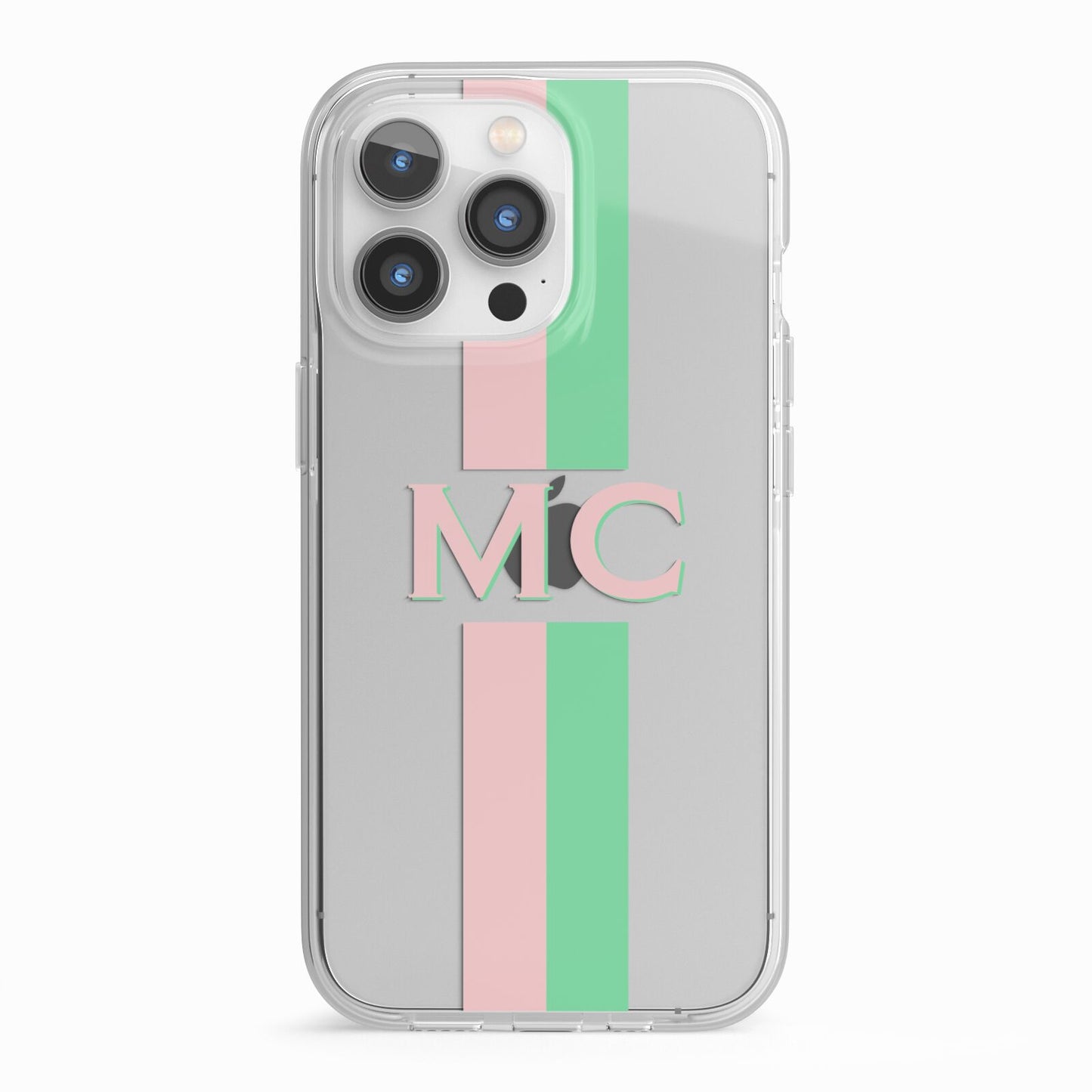 Personalised Transparent Striped Pink & Green Apple iPhone Case