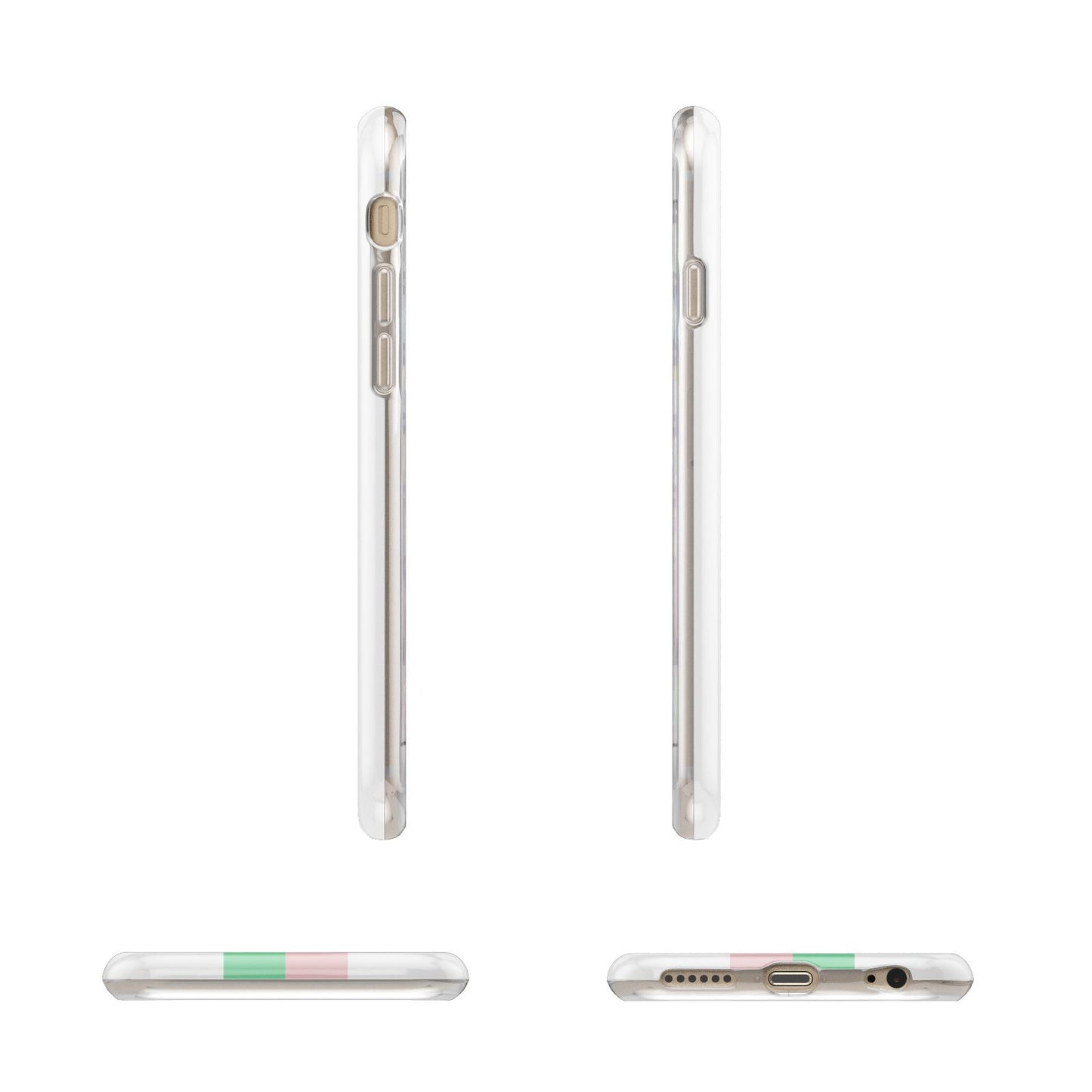 Our Personalised Transparent Striped Pink & Green iPhone Case is pastel colour heaven! These colours look amazing together and are just crying out for your to personalise with our signature drop shadow initials.