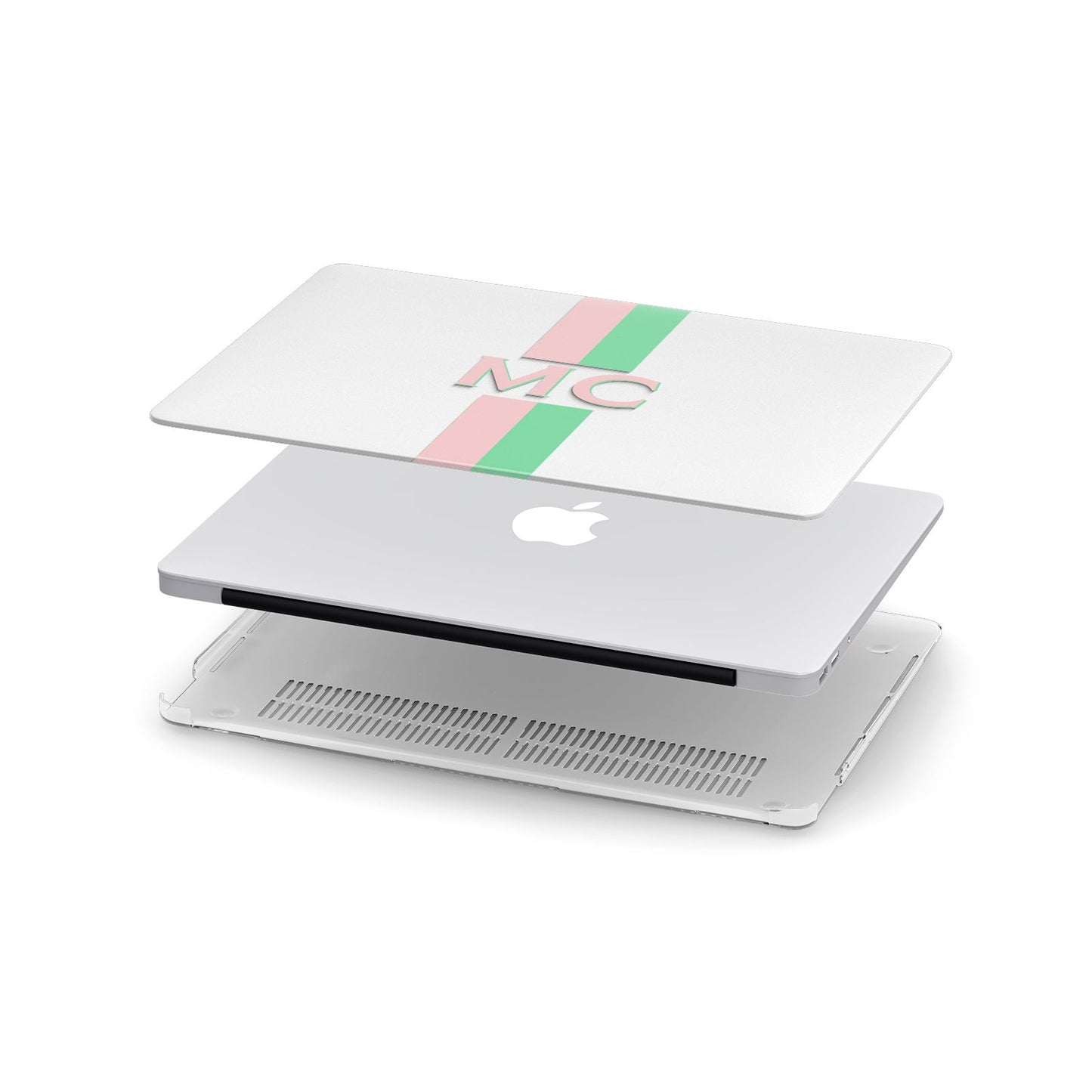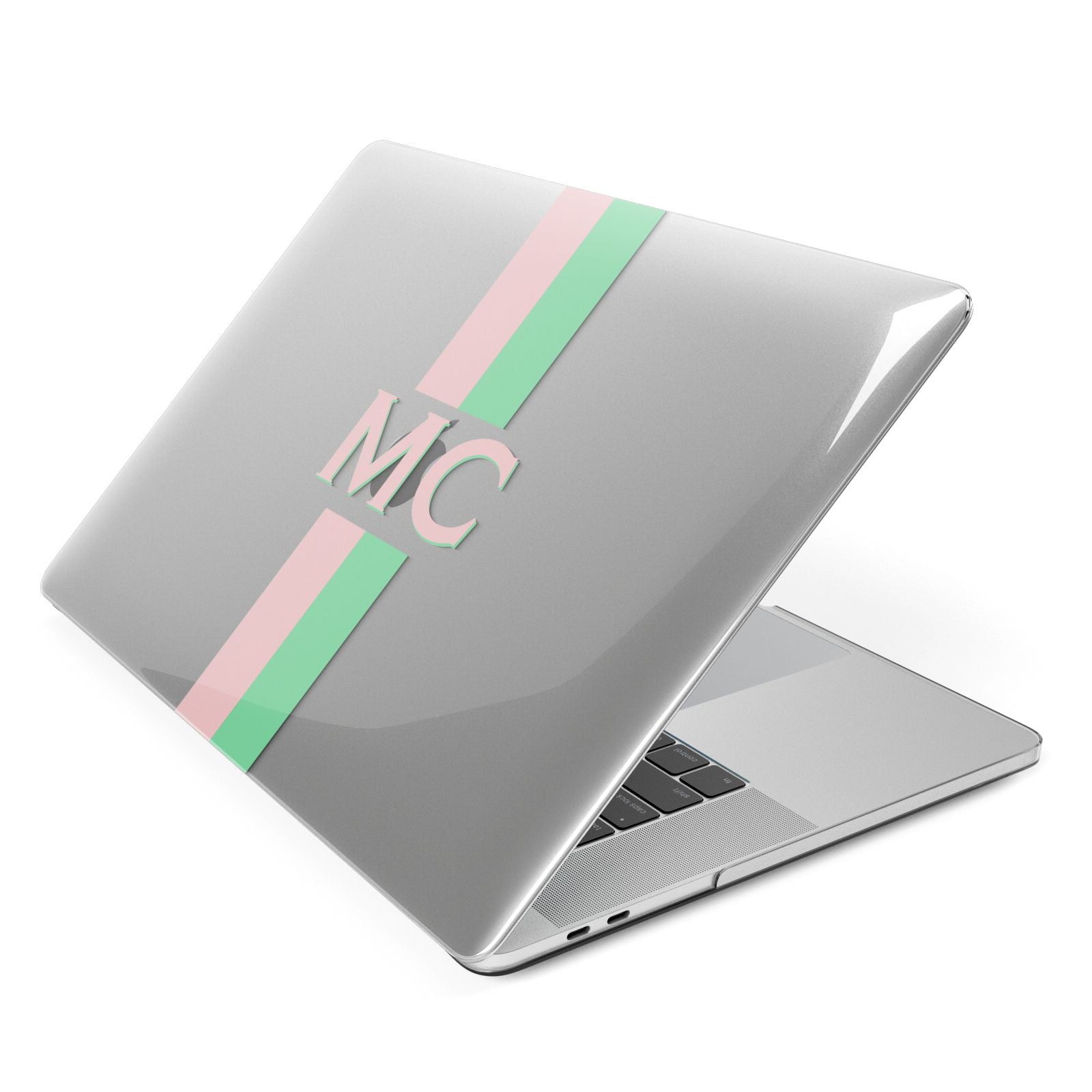 Personalised Transparent Striped Pink & Green Apple Macbook Case