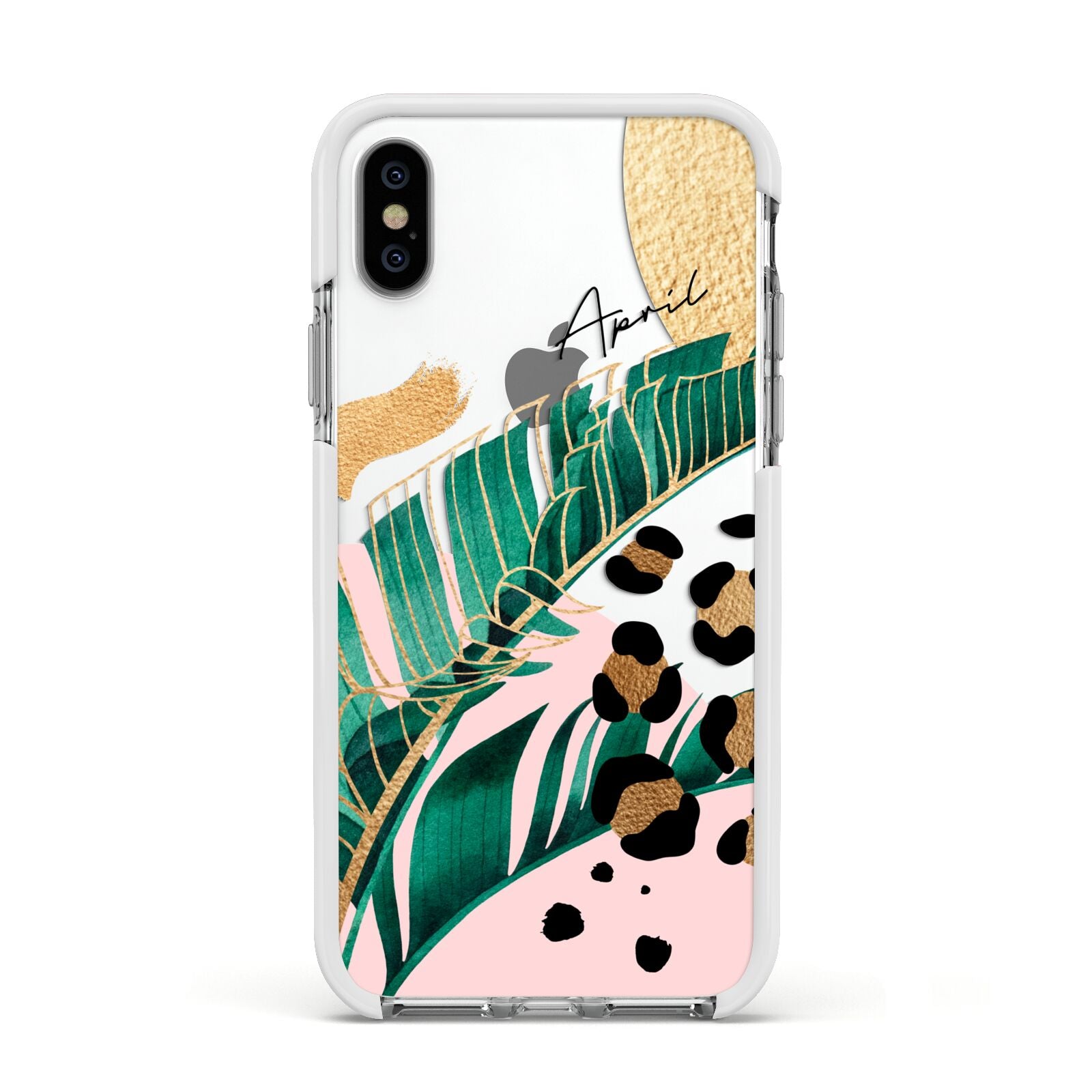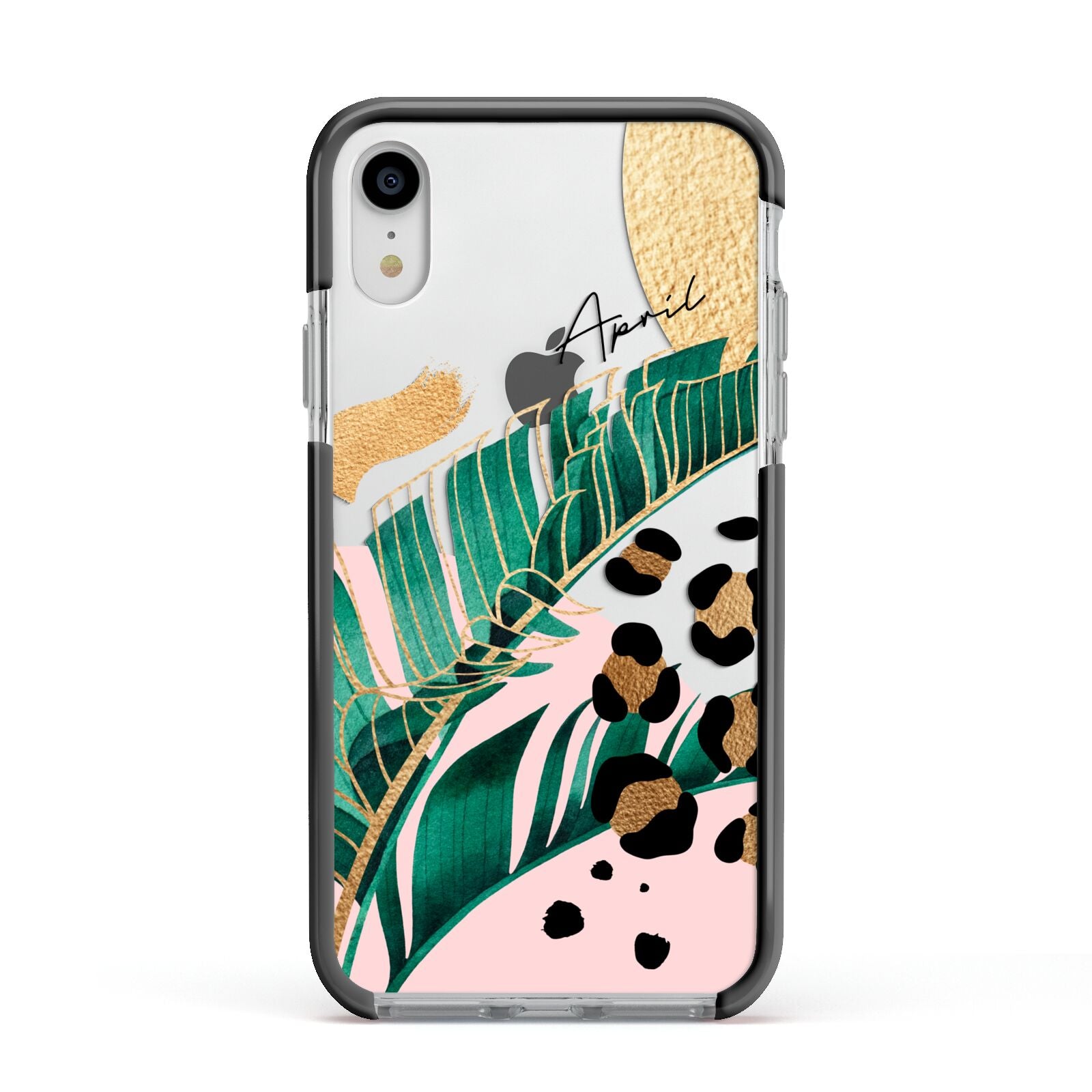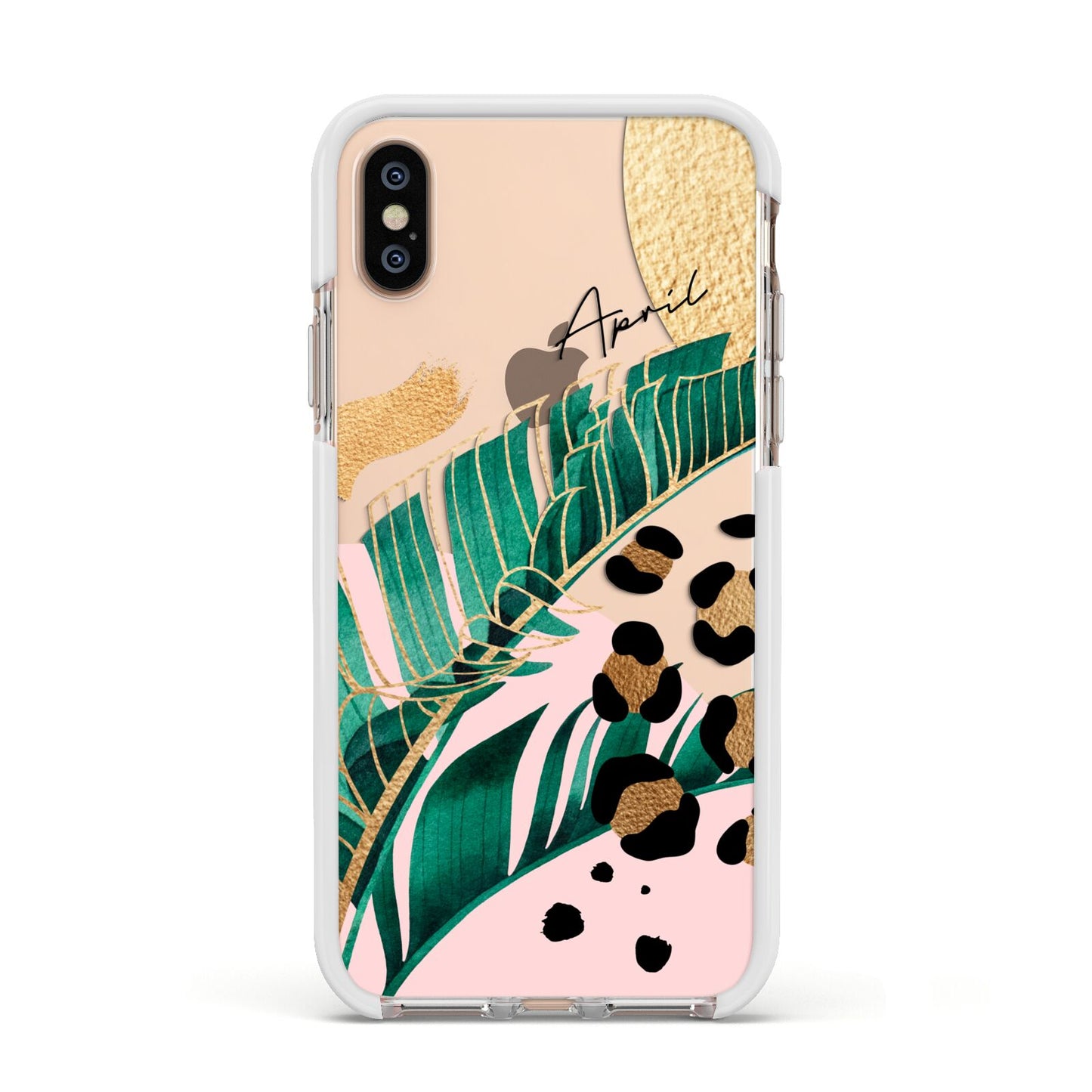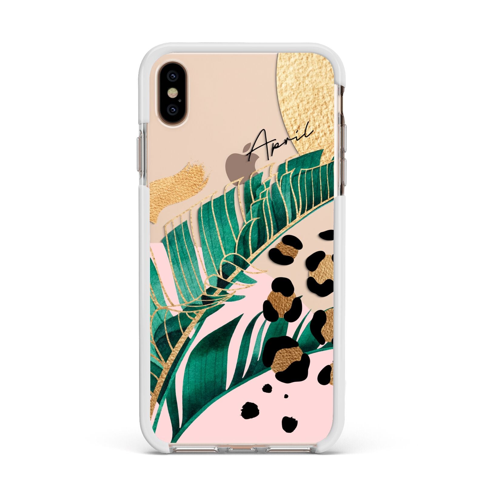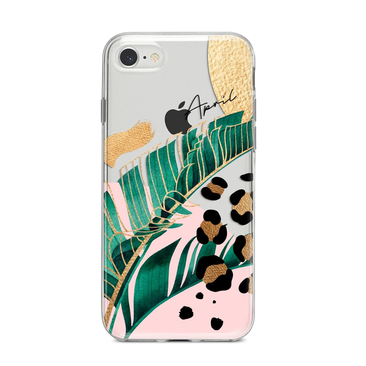 This Personalised Tropical Gold Apple iPhone Case is a watercolour design featuring tropical leaves, gold details and leopard print spots. Add your name to this phone case to own it.
