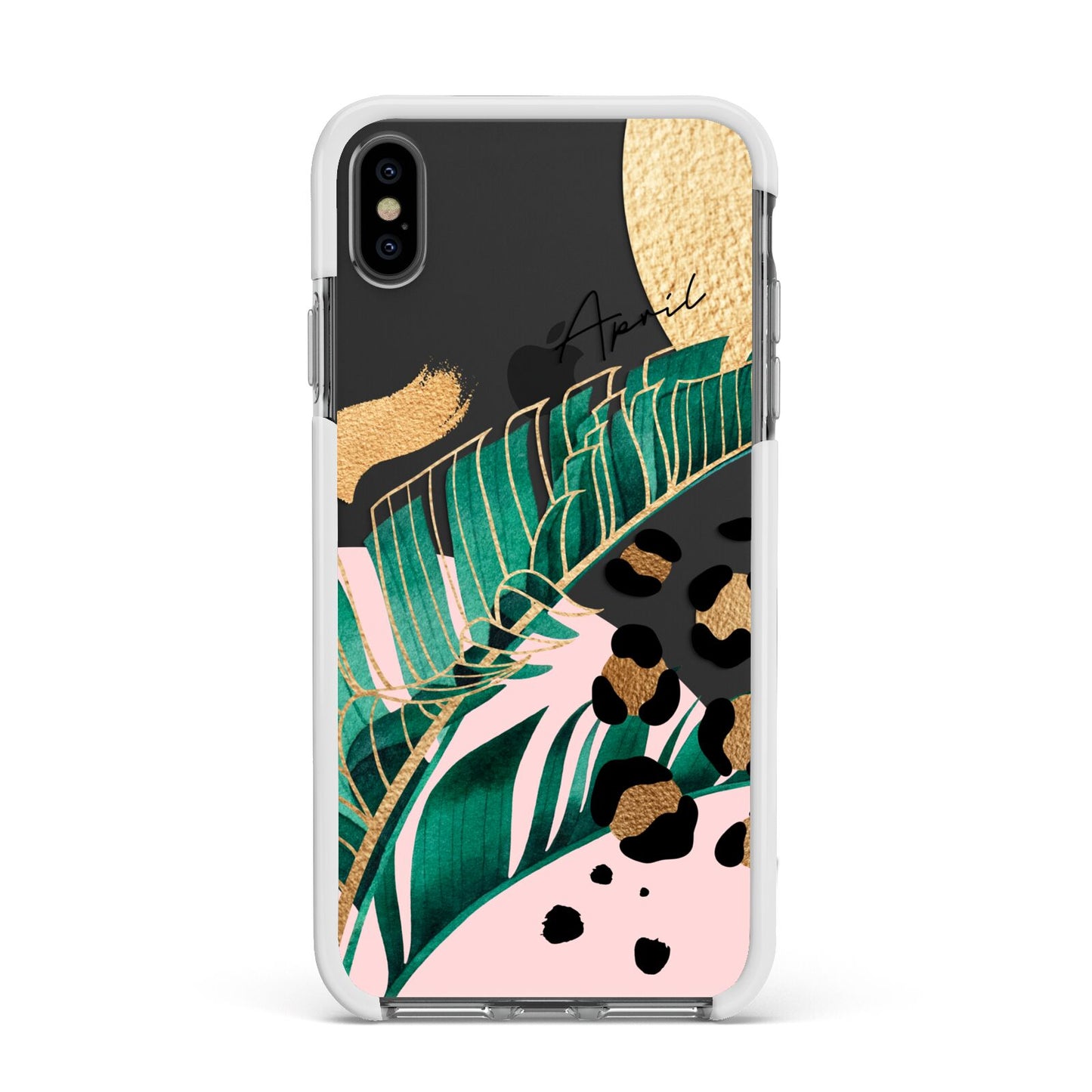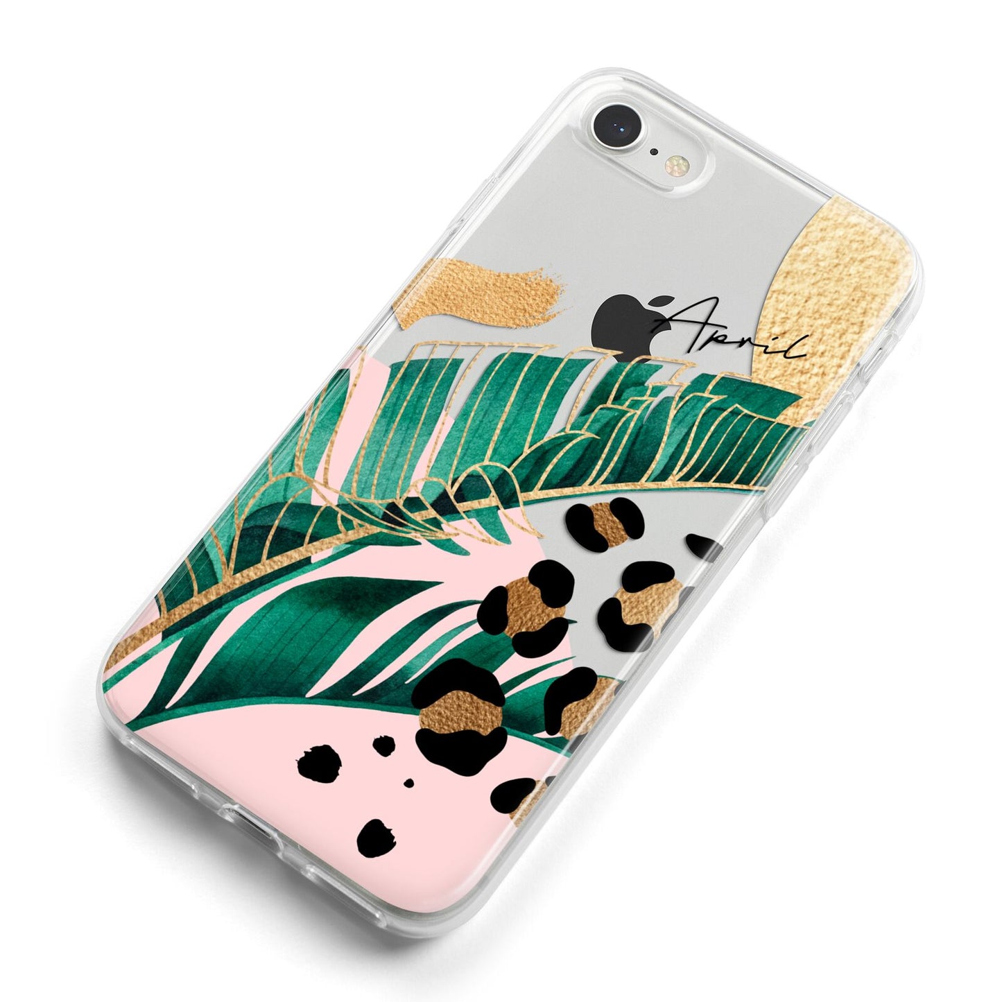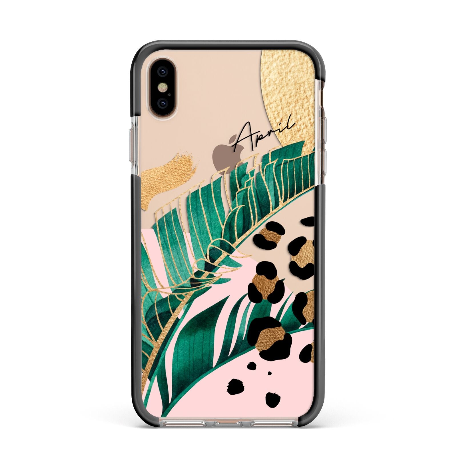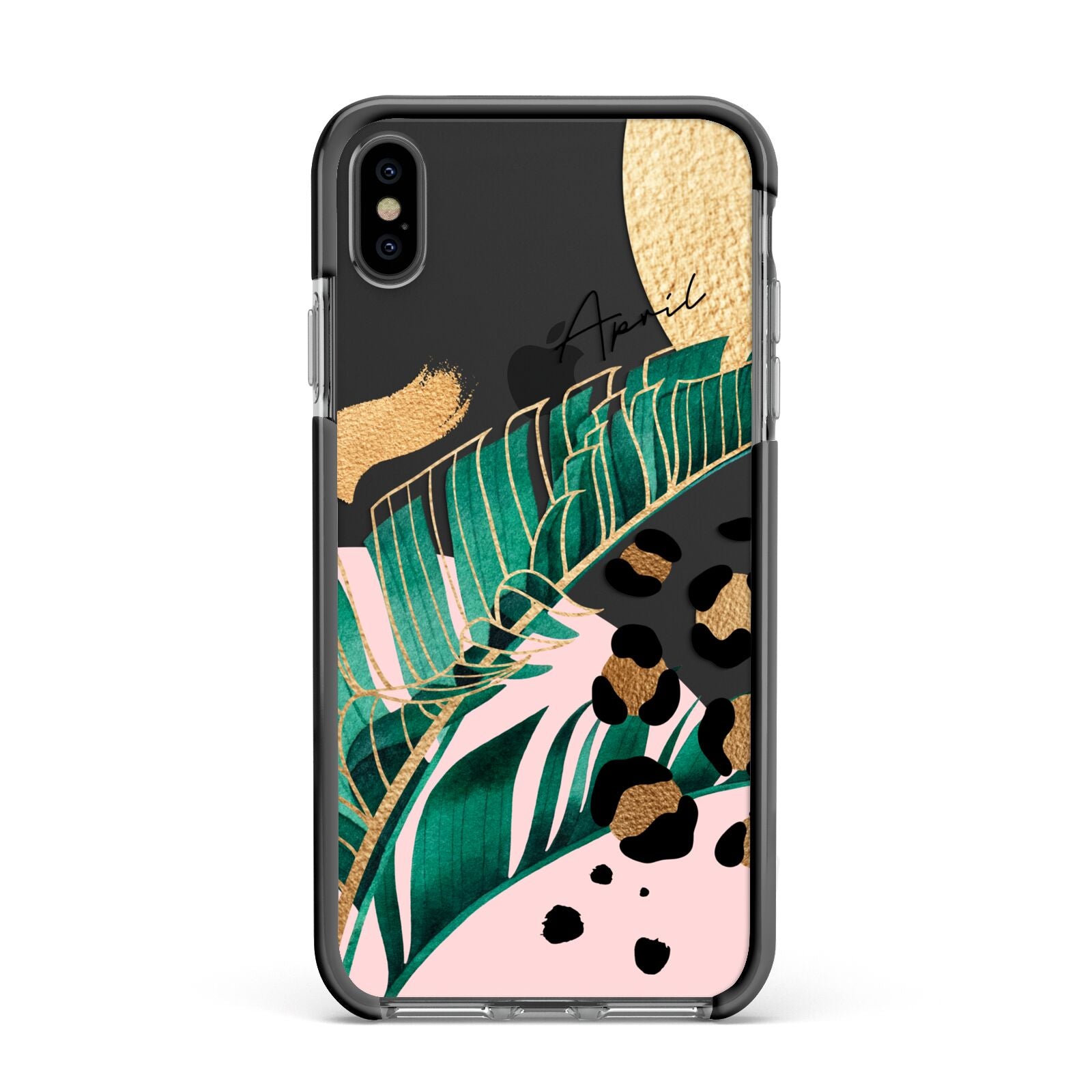 This Personalised Tropical Gold Apple iPhone Case is a watercolour design featuring tropical leaves, gold details and leopard print spots. Add your name to this phone case to own it.