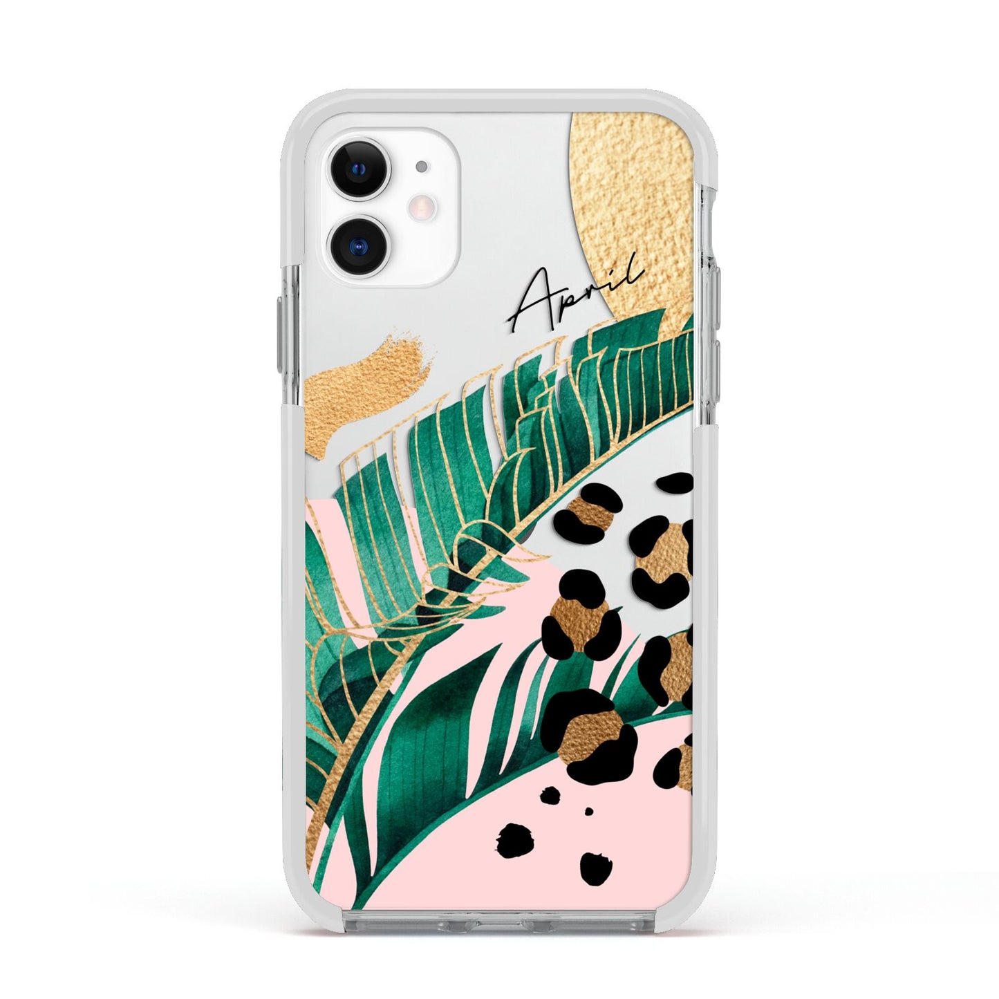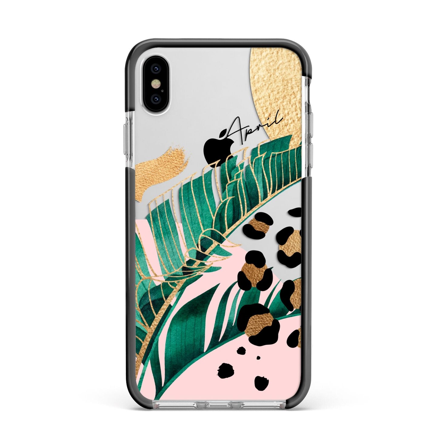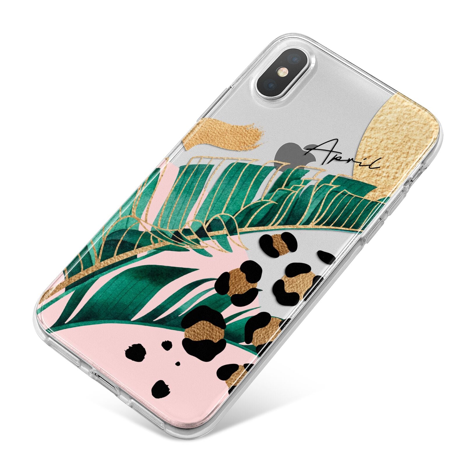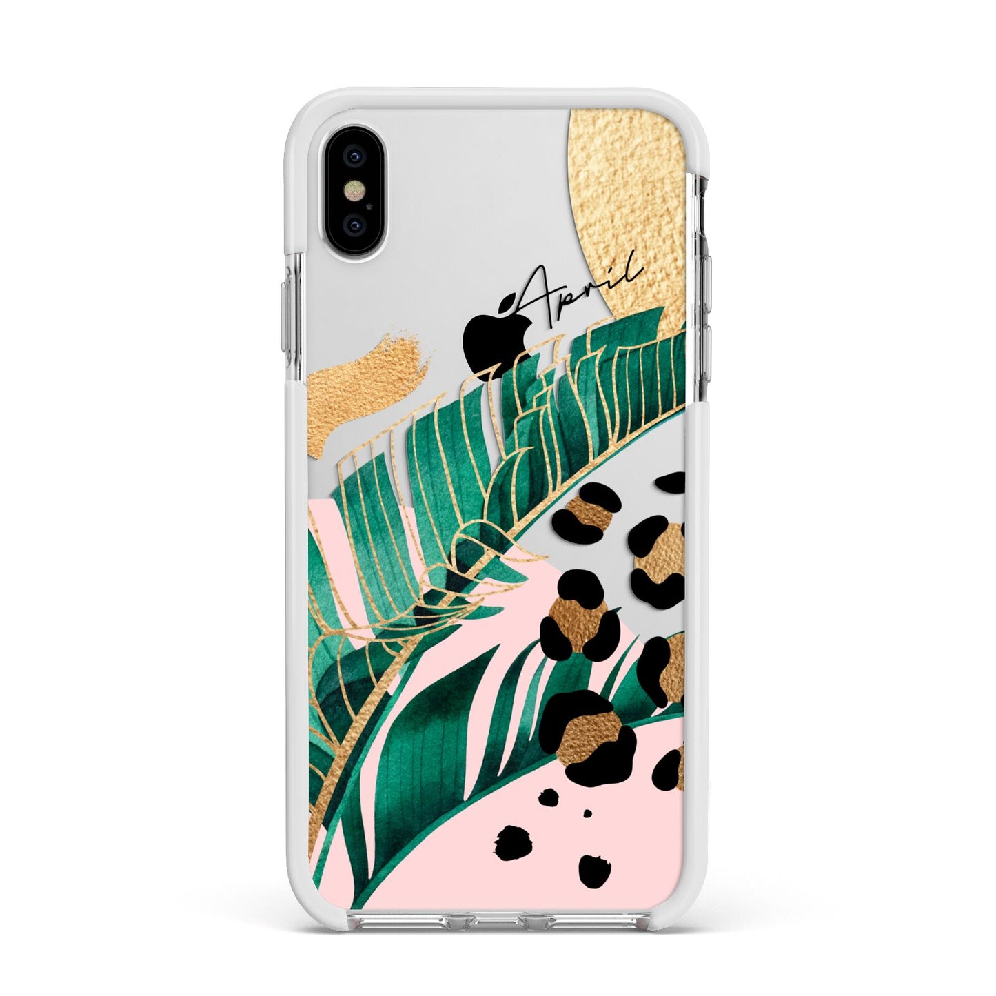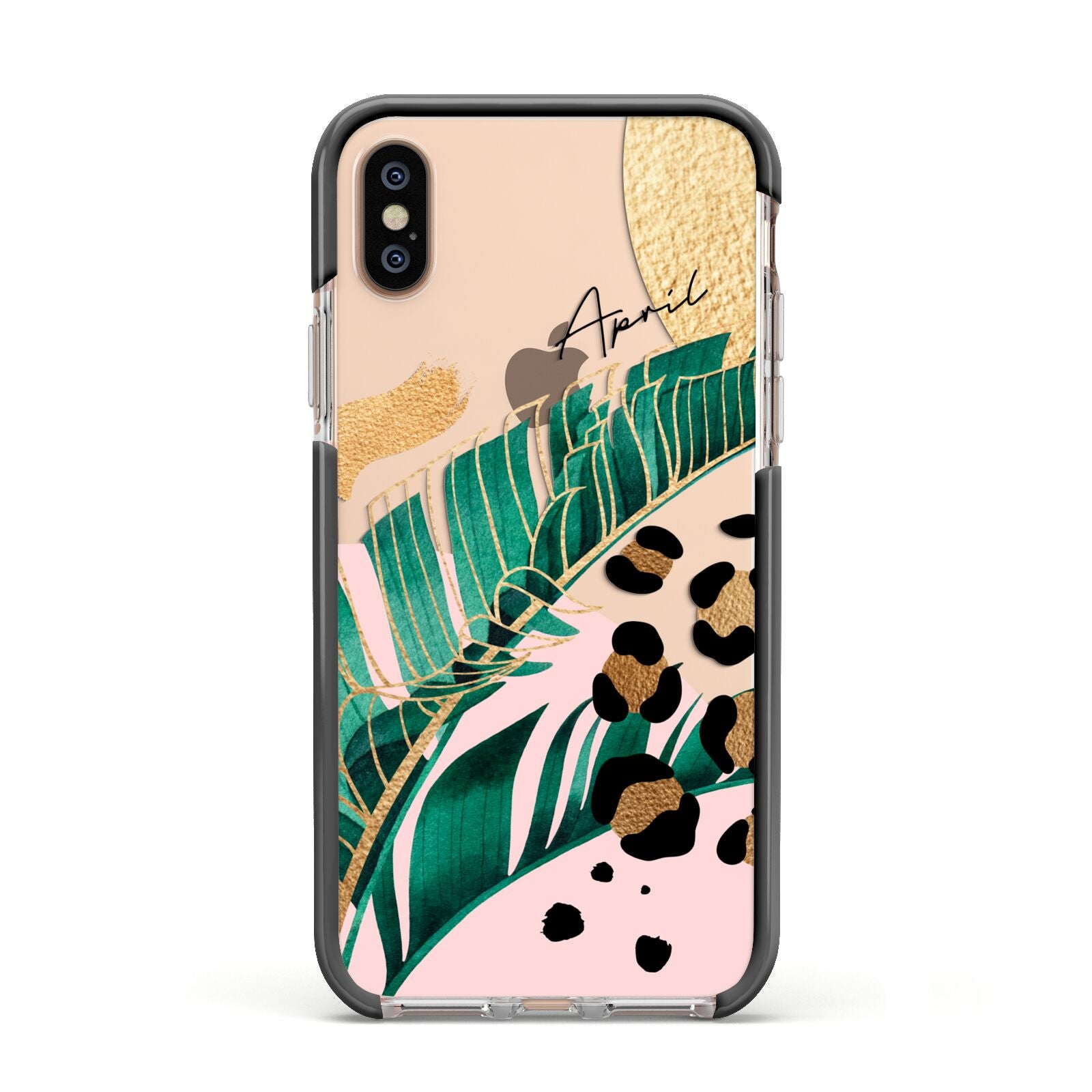 This Personalised Tropical Gold Apple iPhone Case is a watercolour design featuring tropical leaves, gold details and leopard print spots. Add your name to this phone case to own it.