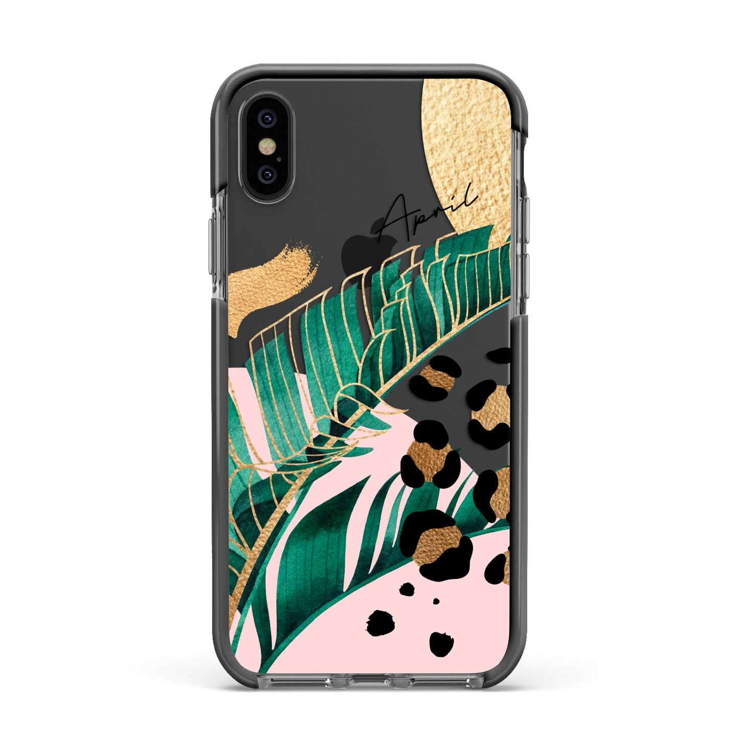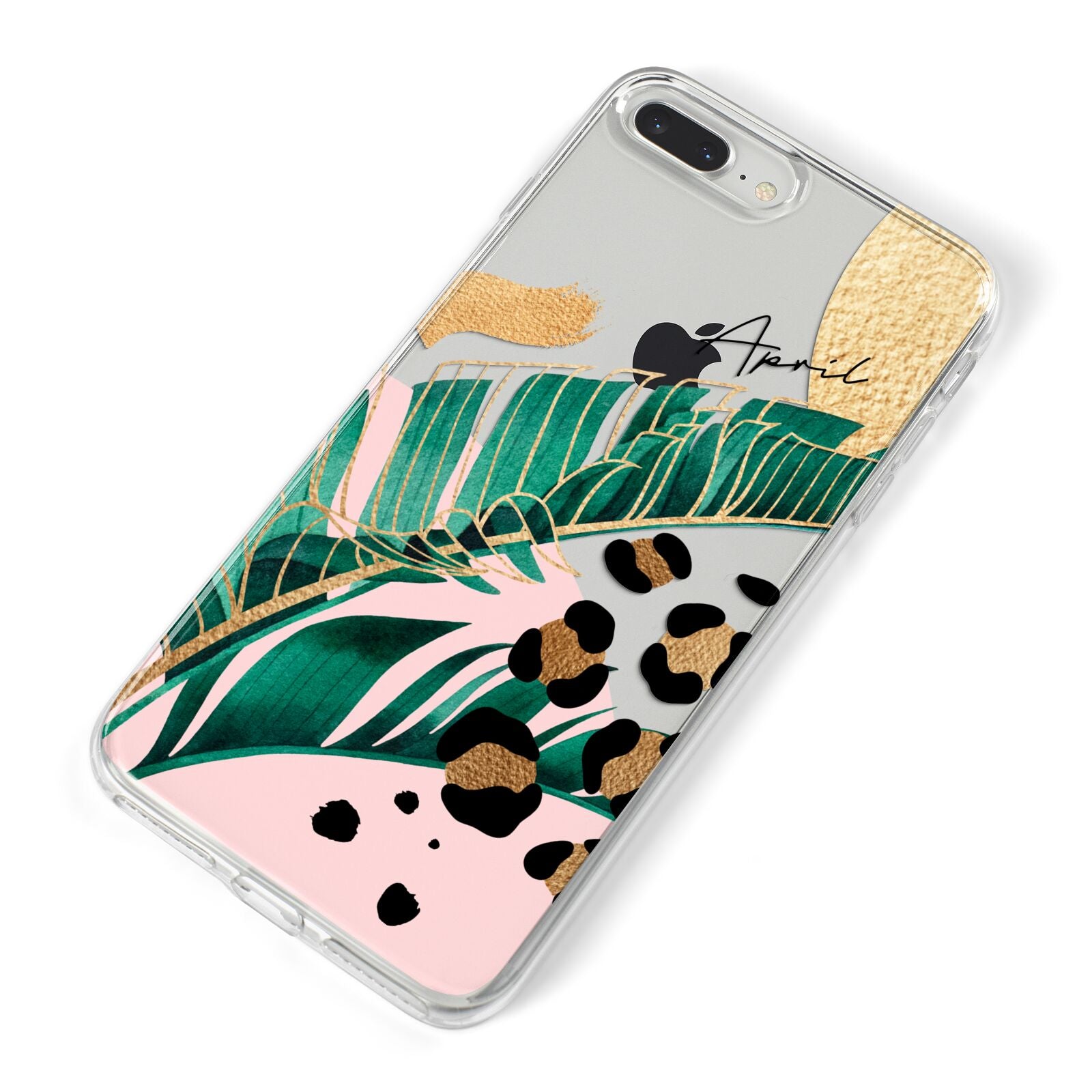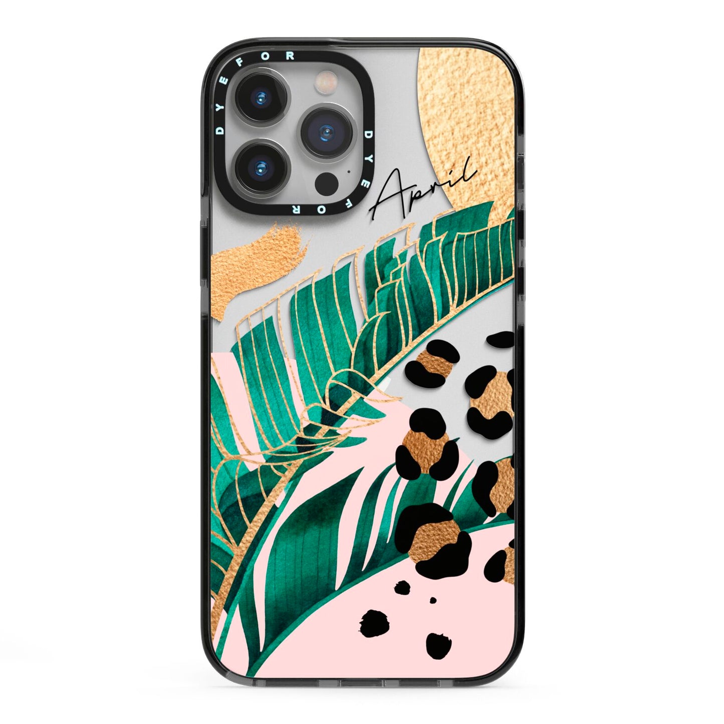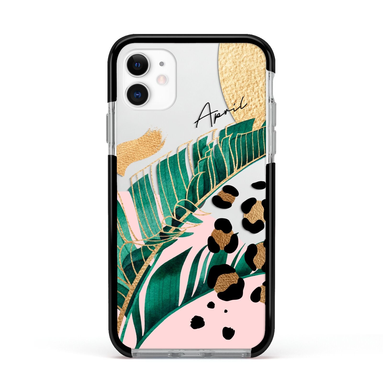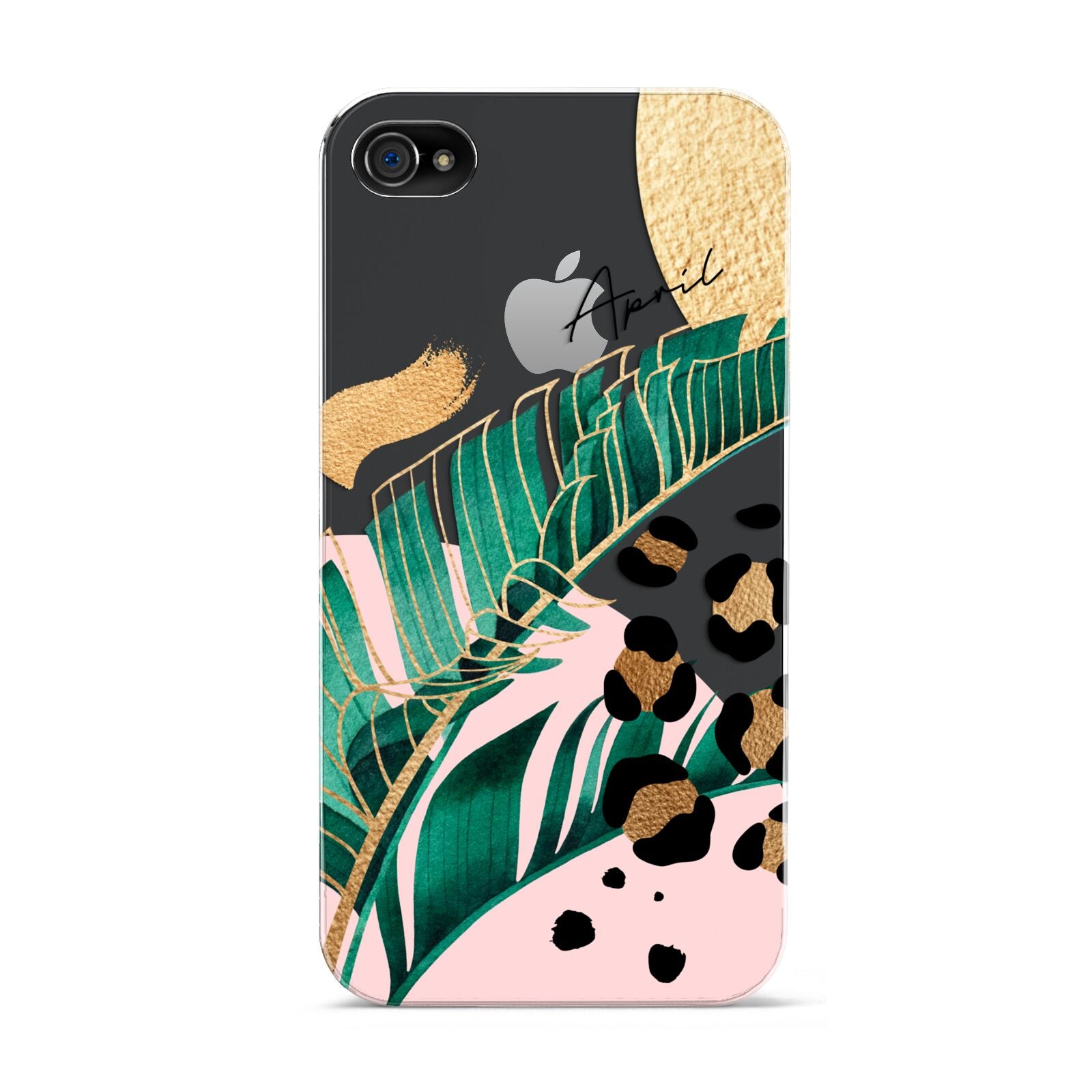 This Personalised Tropical Gold Apple iPhone Case is a watercolour design featuring tropical leaves, gold details and leopard print spots. Add your name to this phone case to own it.