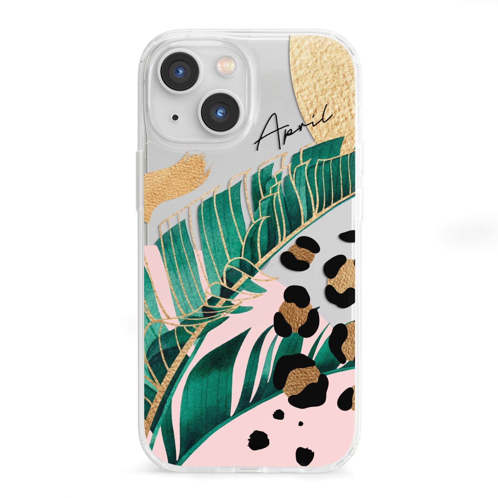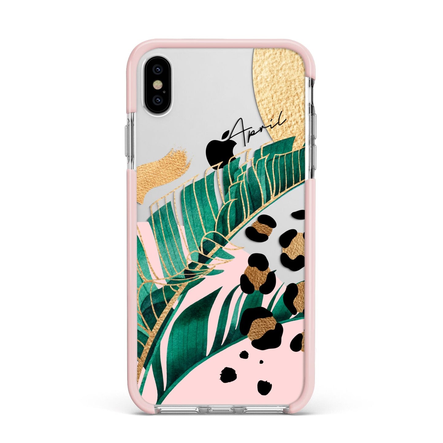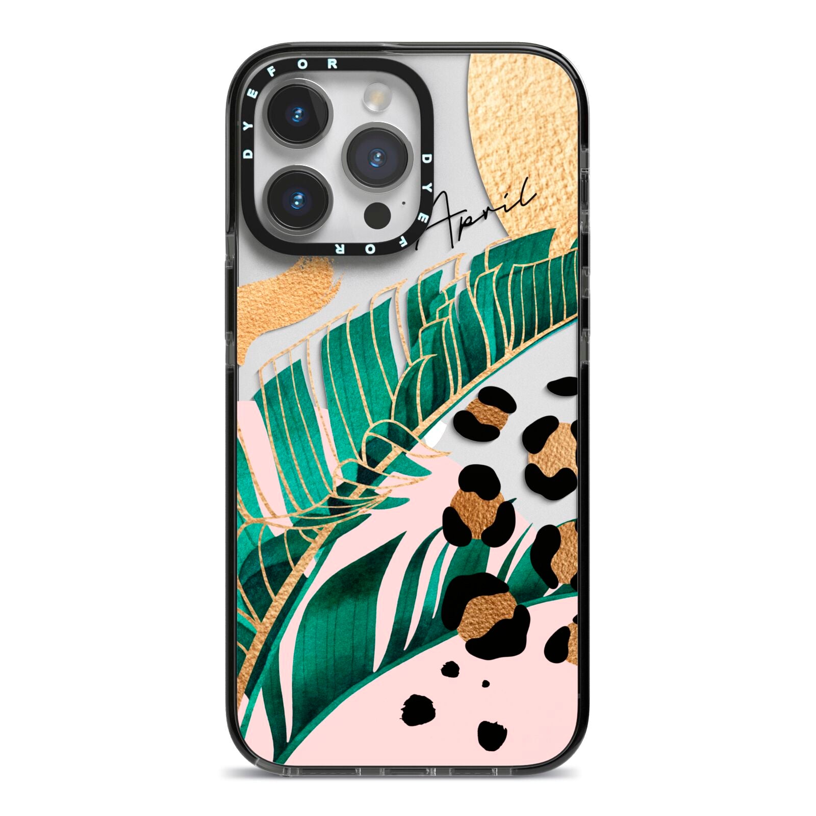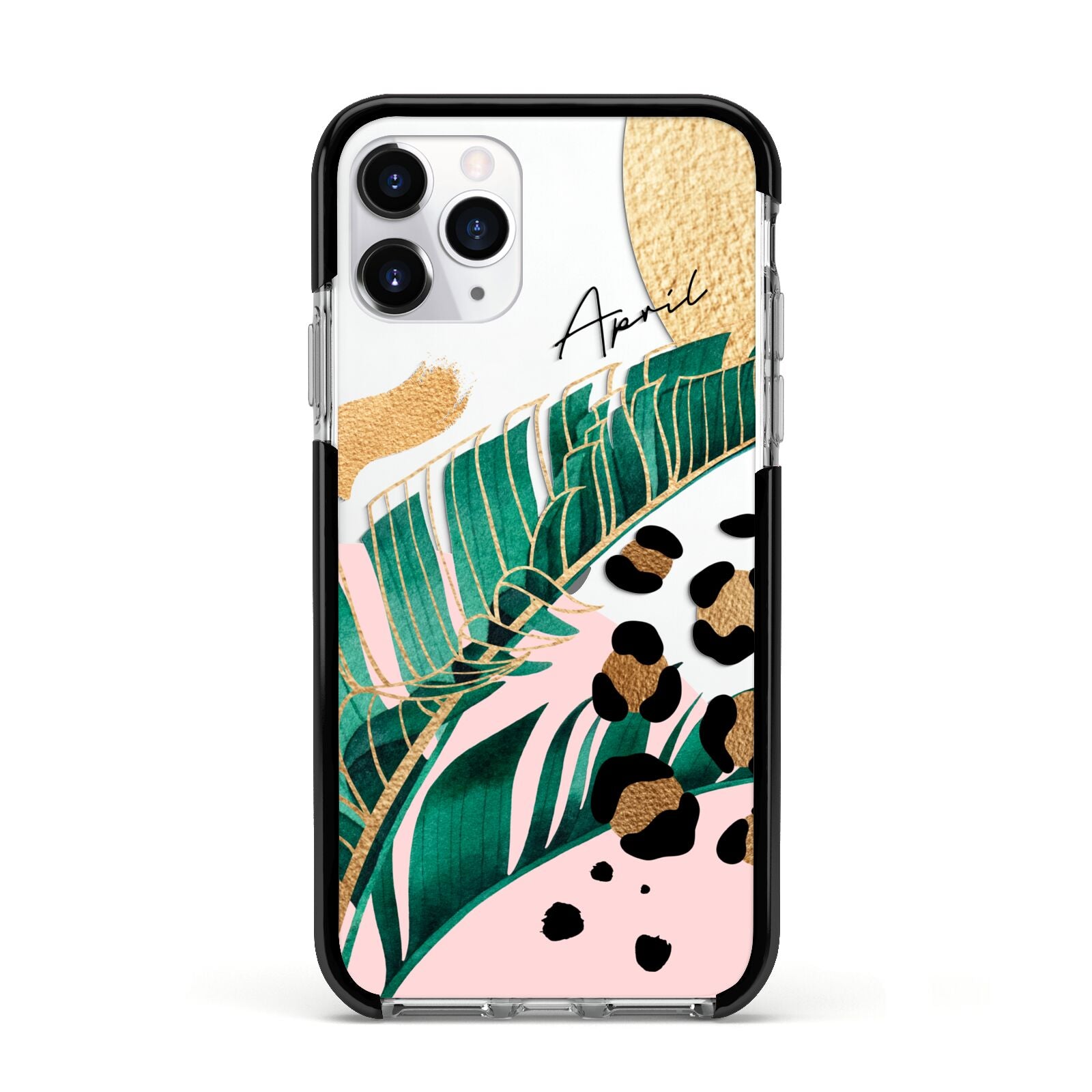 This Personalised Tropical Gold Apple iPhone Case is a watercolour design featuring tropical leaves, gold details and leopard print spots. Add your name to this phone case to own it.