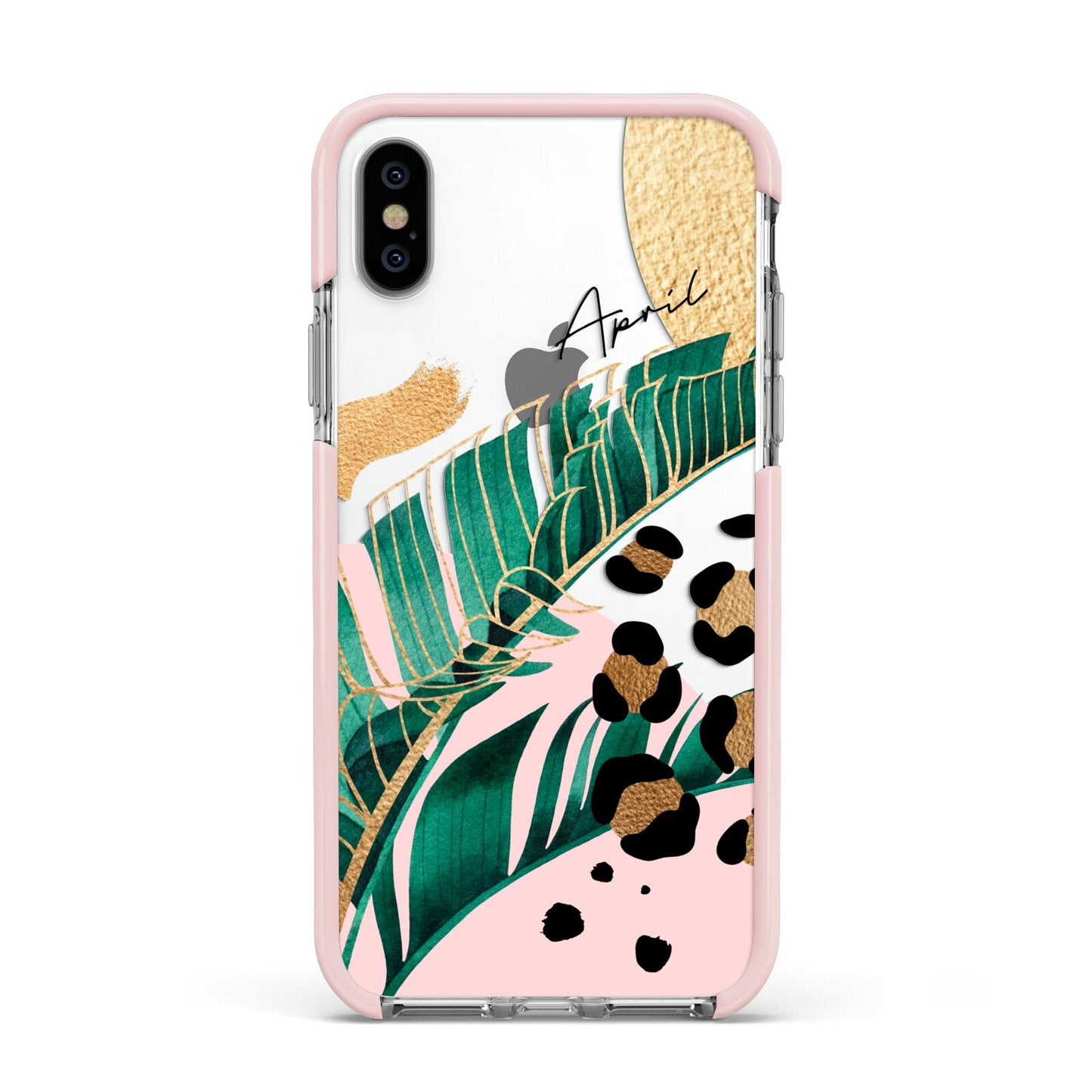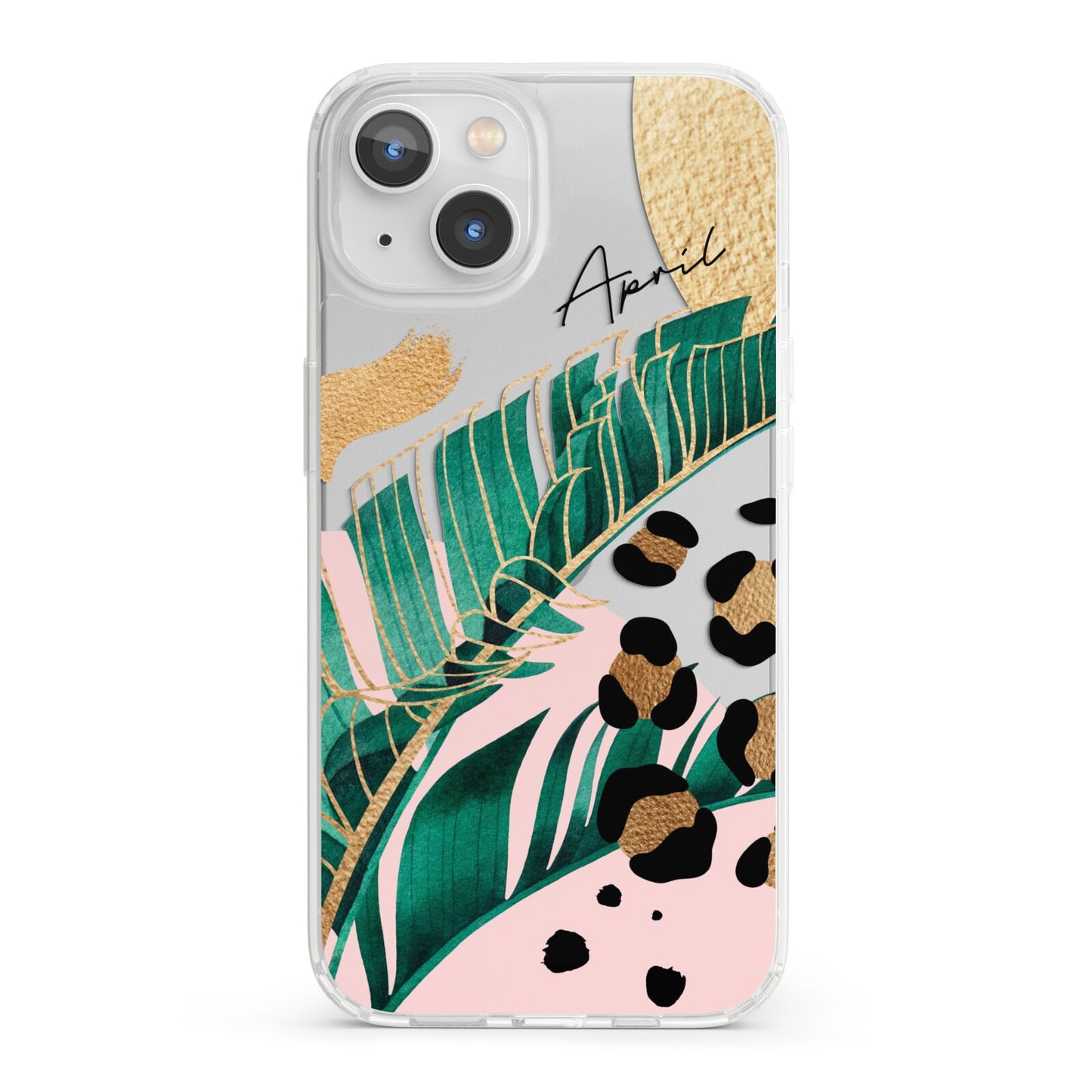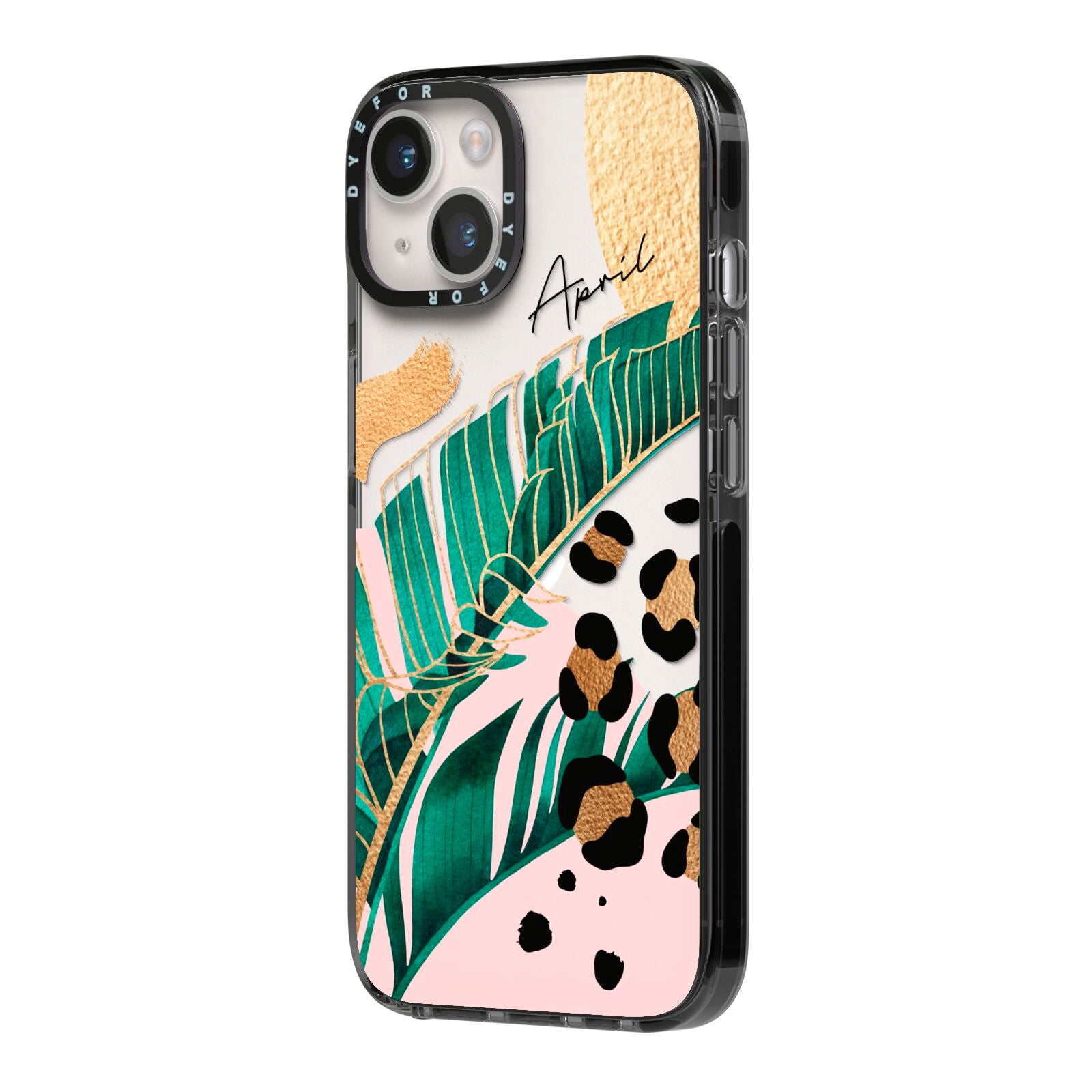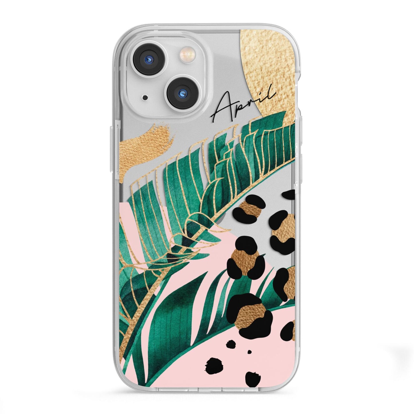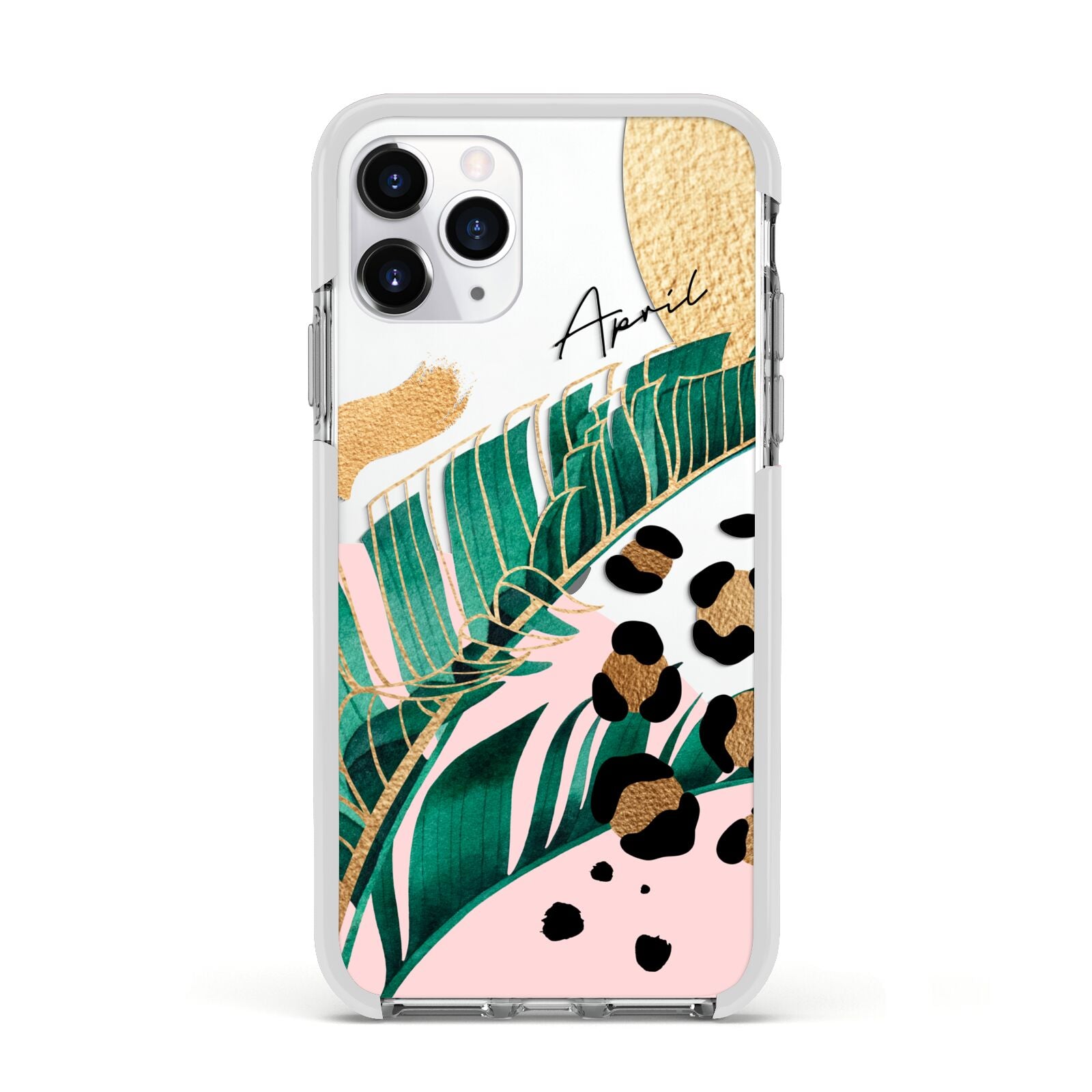 This Personalised Tropical Gold Apple iPhone Case is a watercolour design featuring tropical leaves, gold details and leopard print spots. Add your name to this phone case to own it.