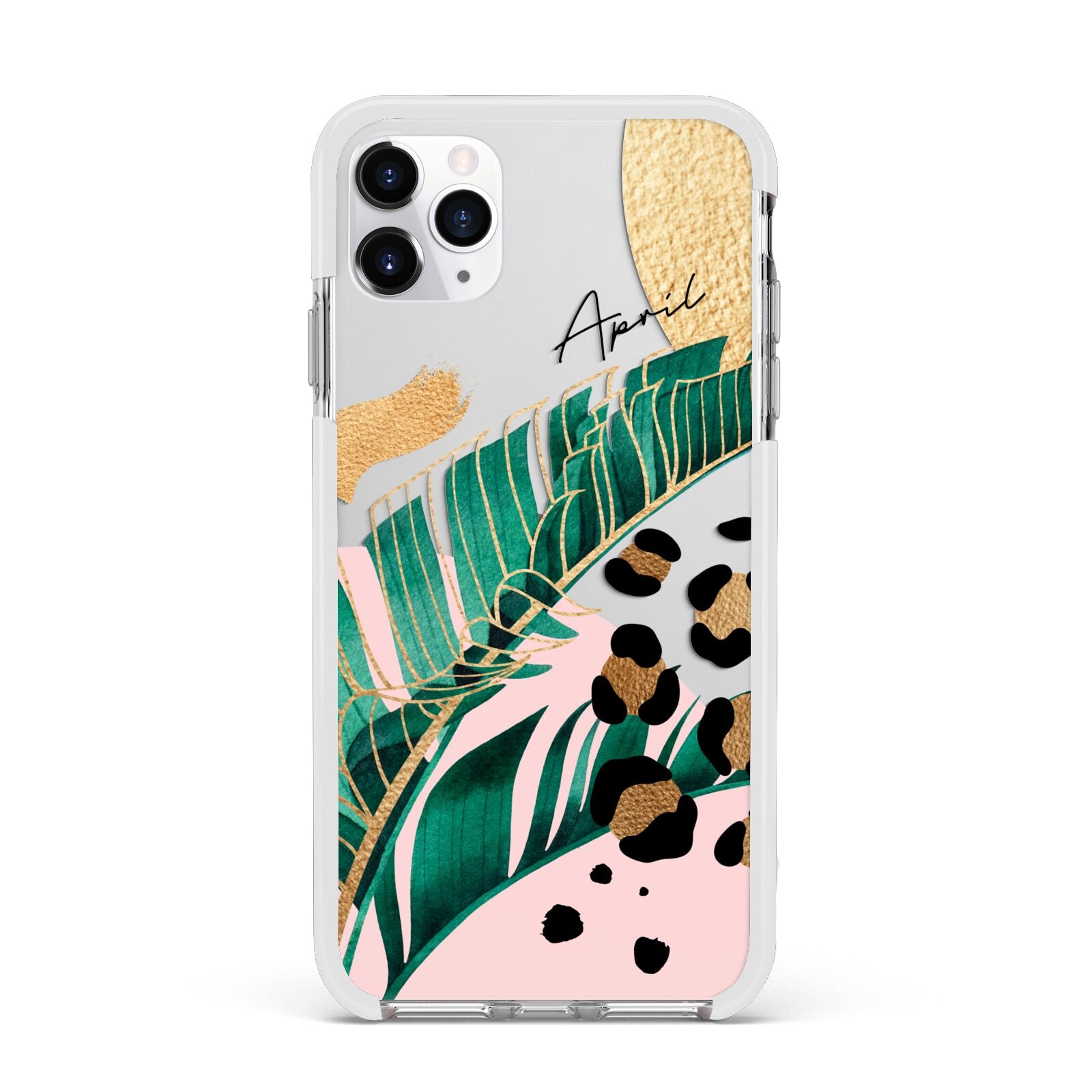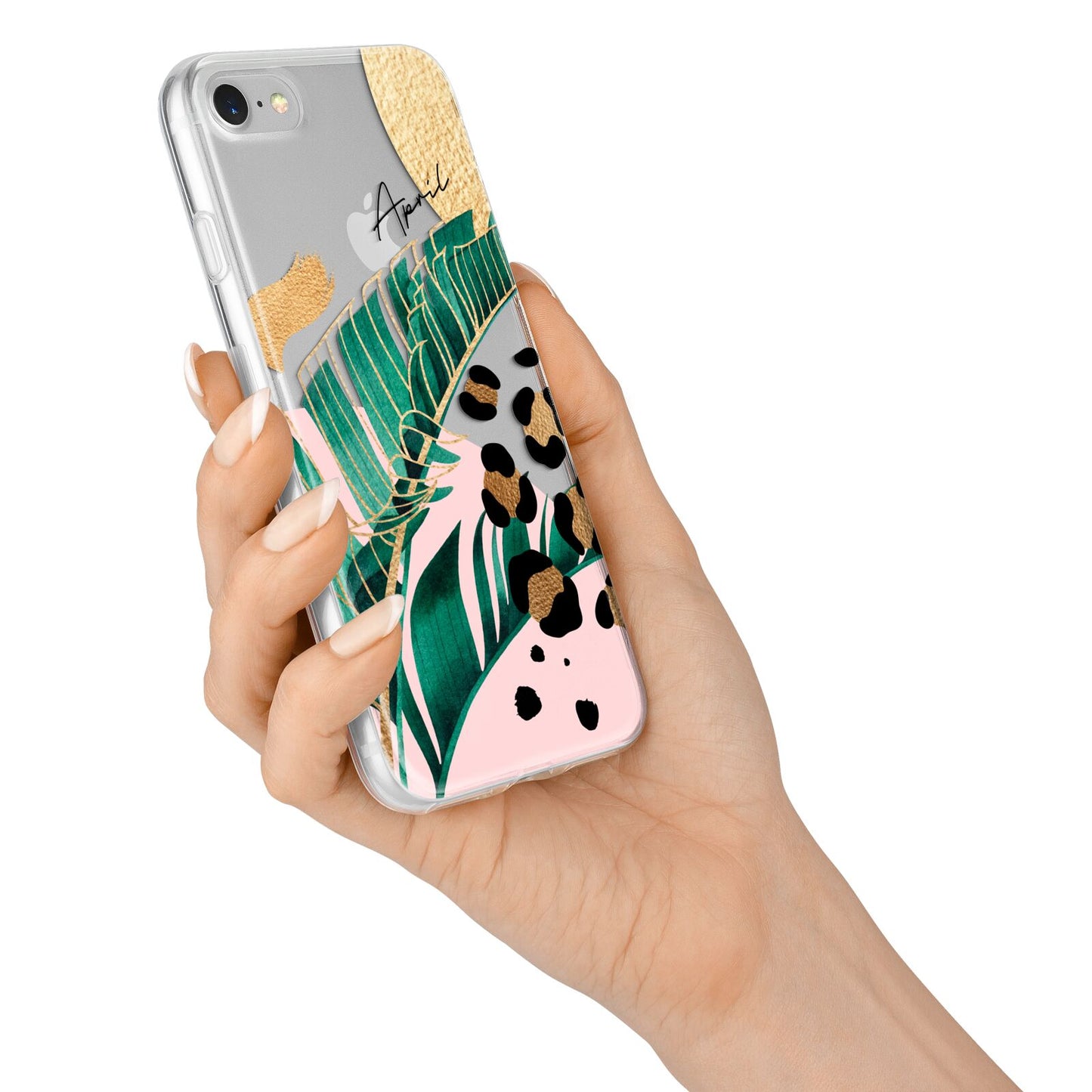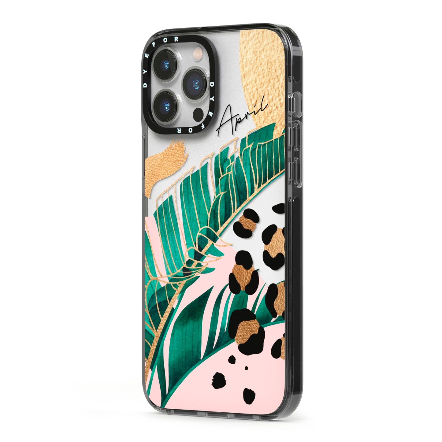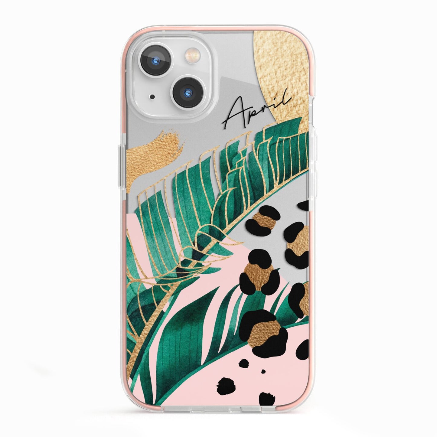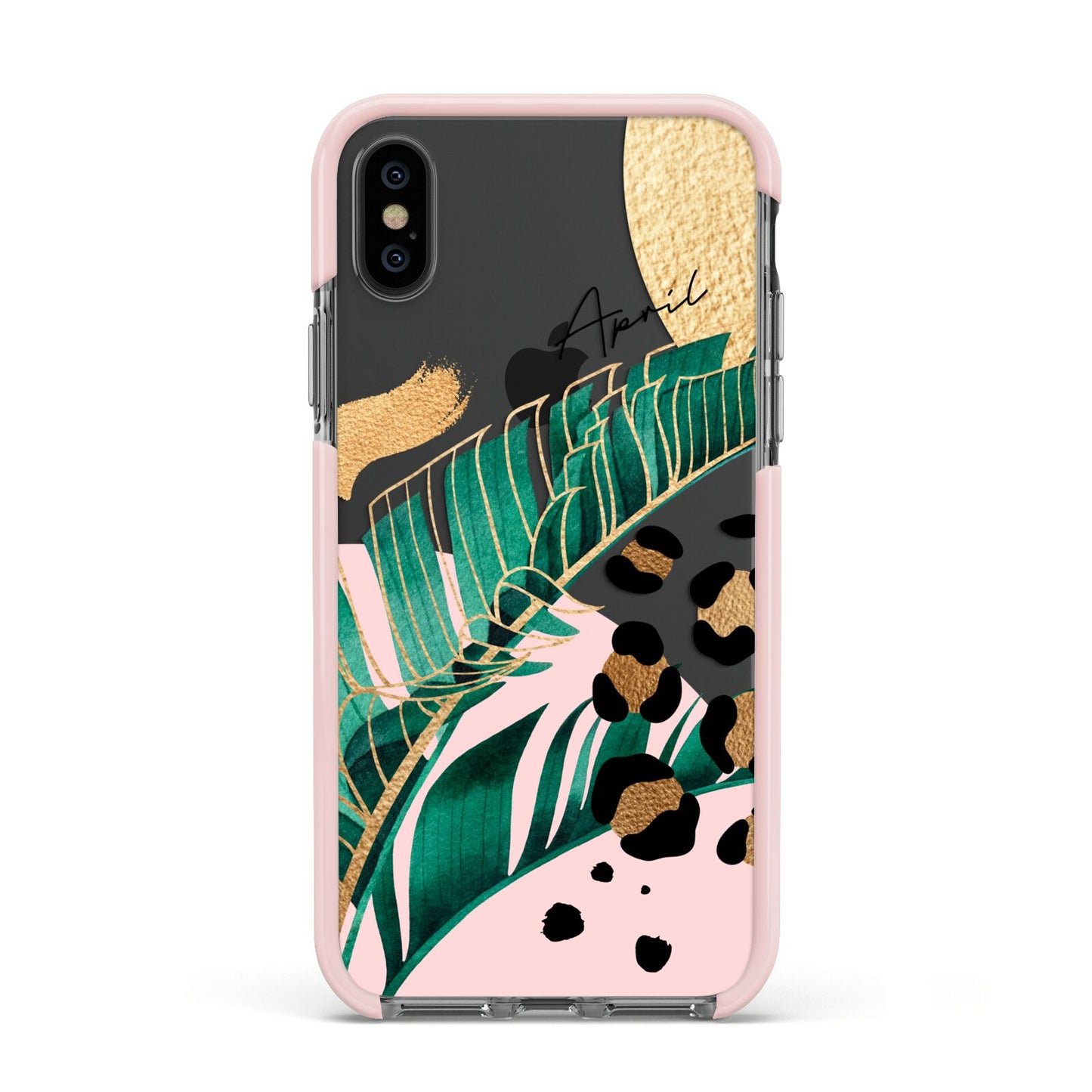 This Personalised Tropical Gold Apple iPhone Case is a watercolour design featuring tropical leaves, gold details and leopard print spots. Add your name to this phone case to own it.