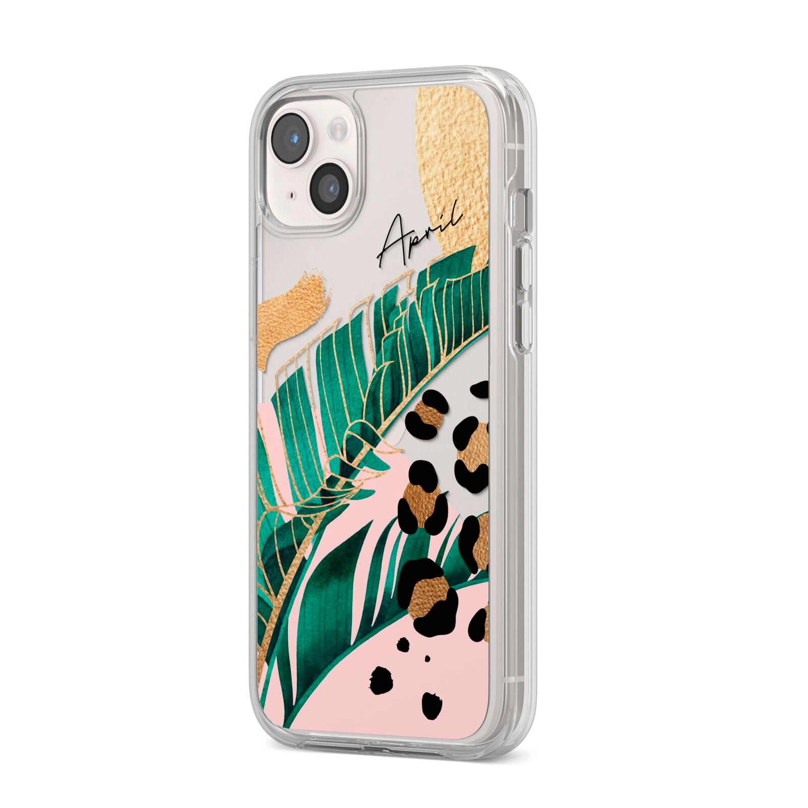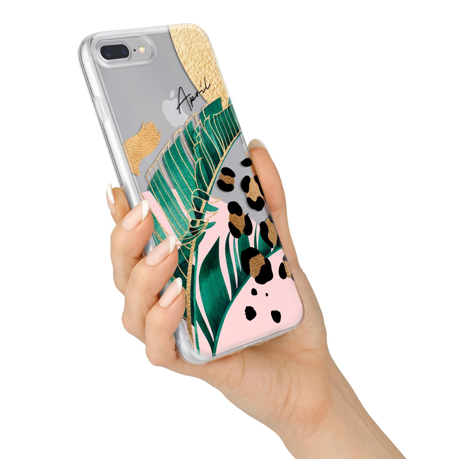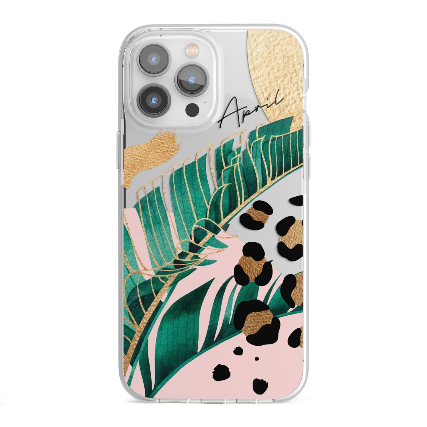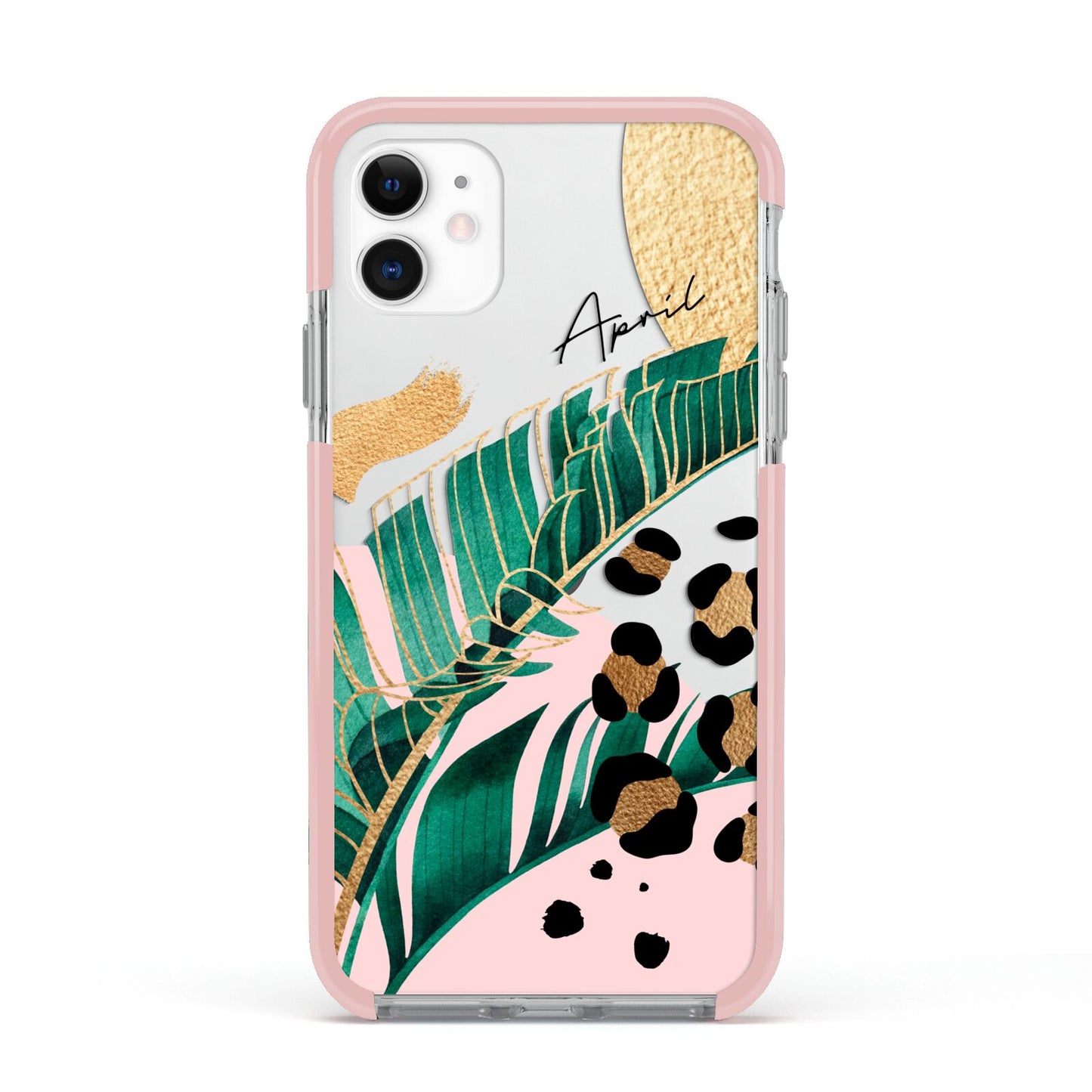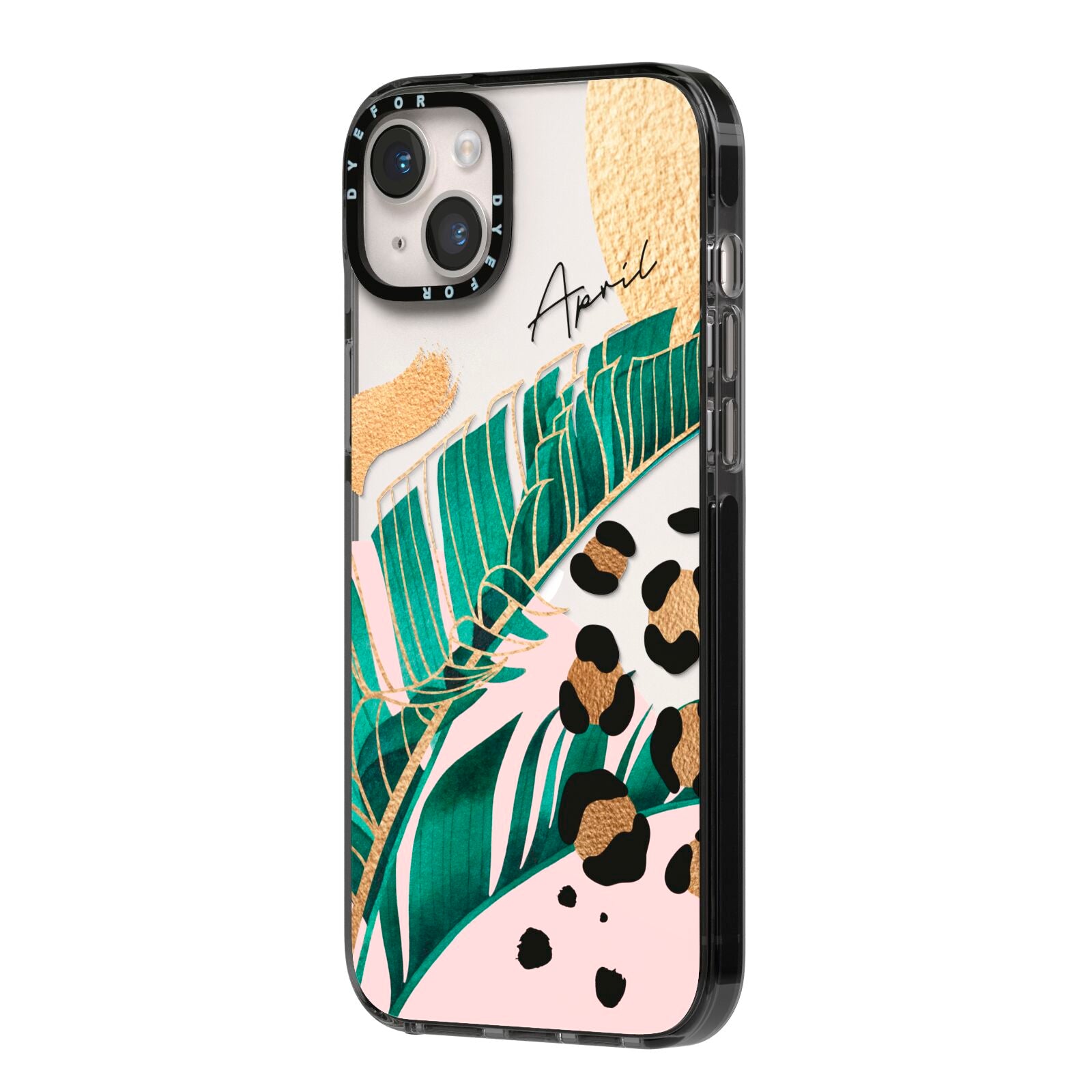 This Personalised Tropical Gold Apple iPhone Case is a watercolour design featuring tropical leaves, gold details and leopard print spots. Add your name to this phone case to own it.