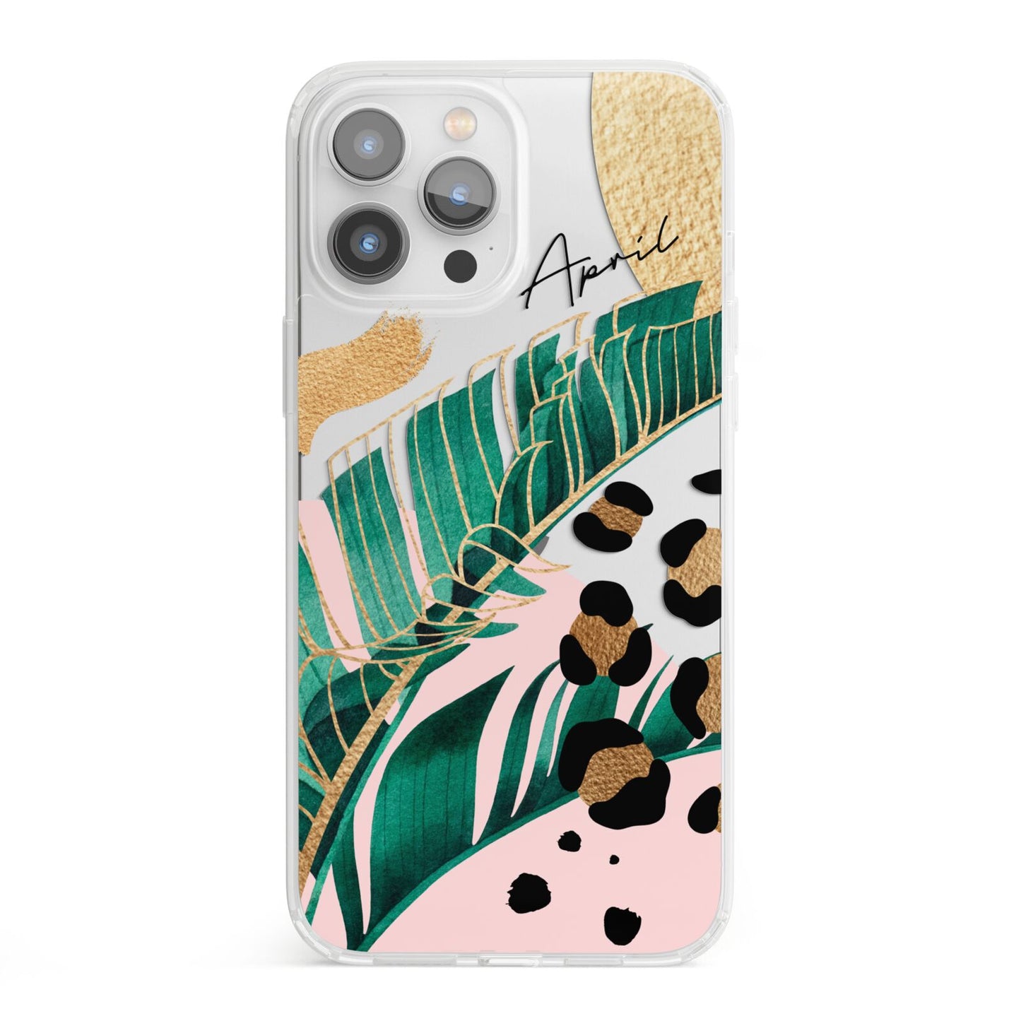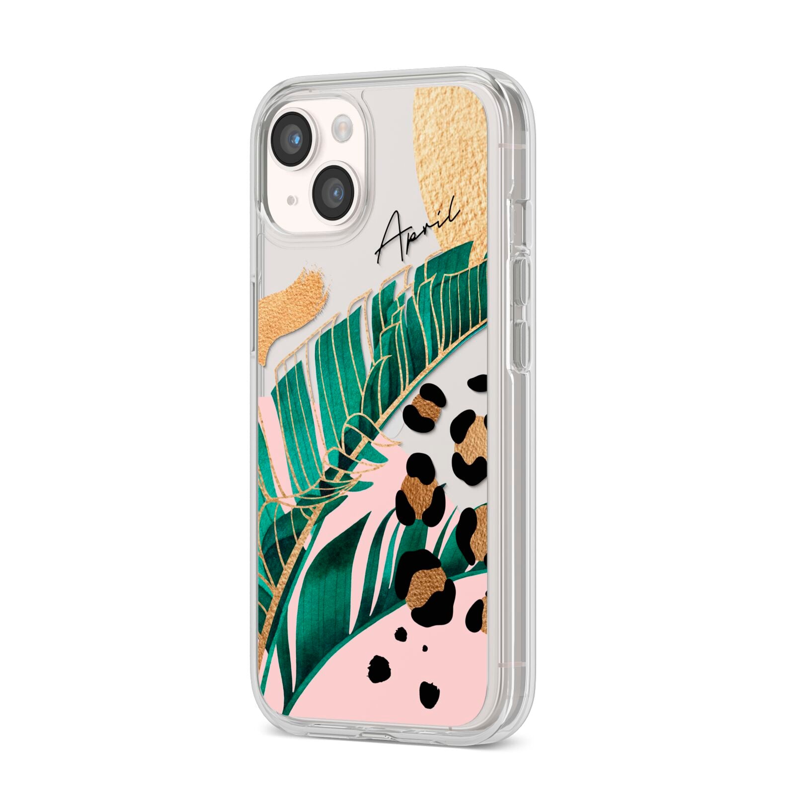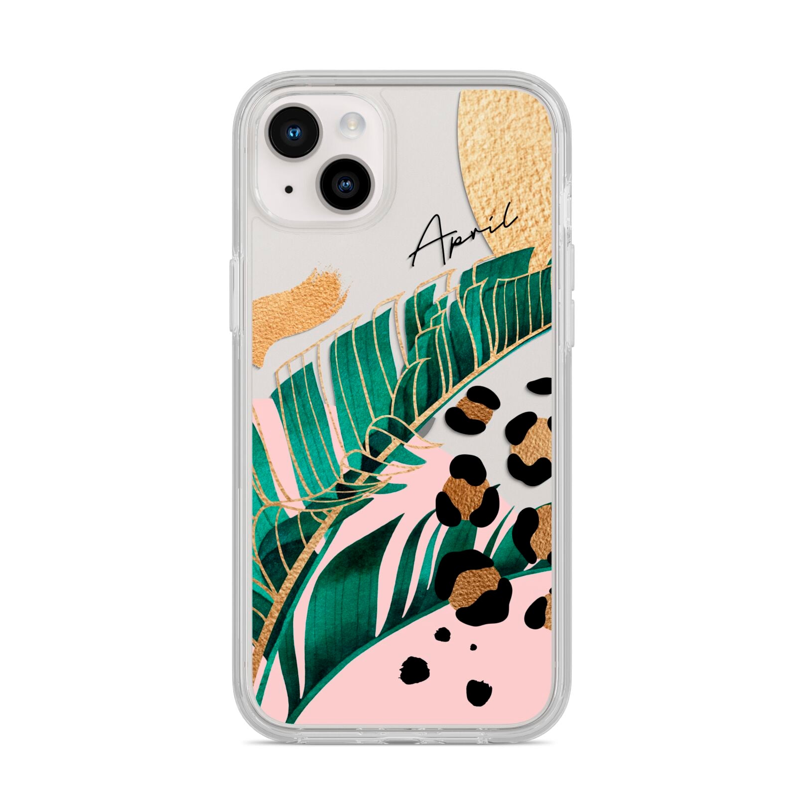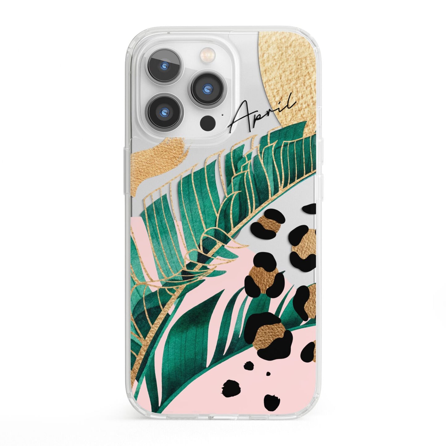 This Personalised Tropical Gold Apple iPhone Case is a watercolour design featuring tropical leaves, gold details and leopard print spots. Add your name to this phone case to own it.